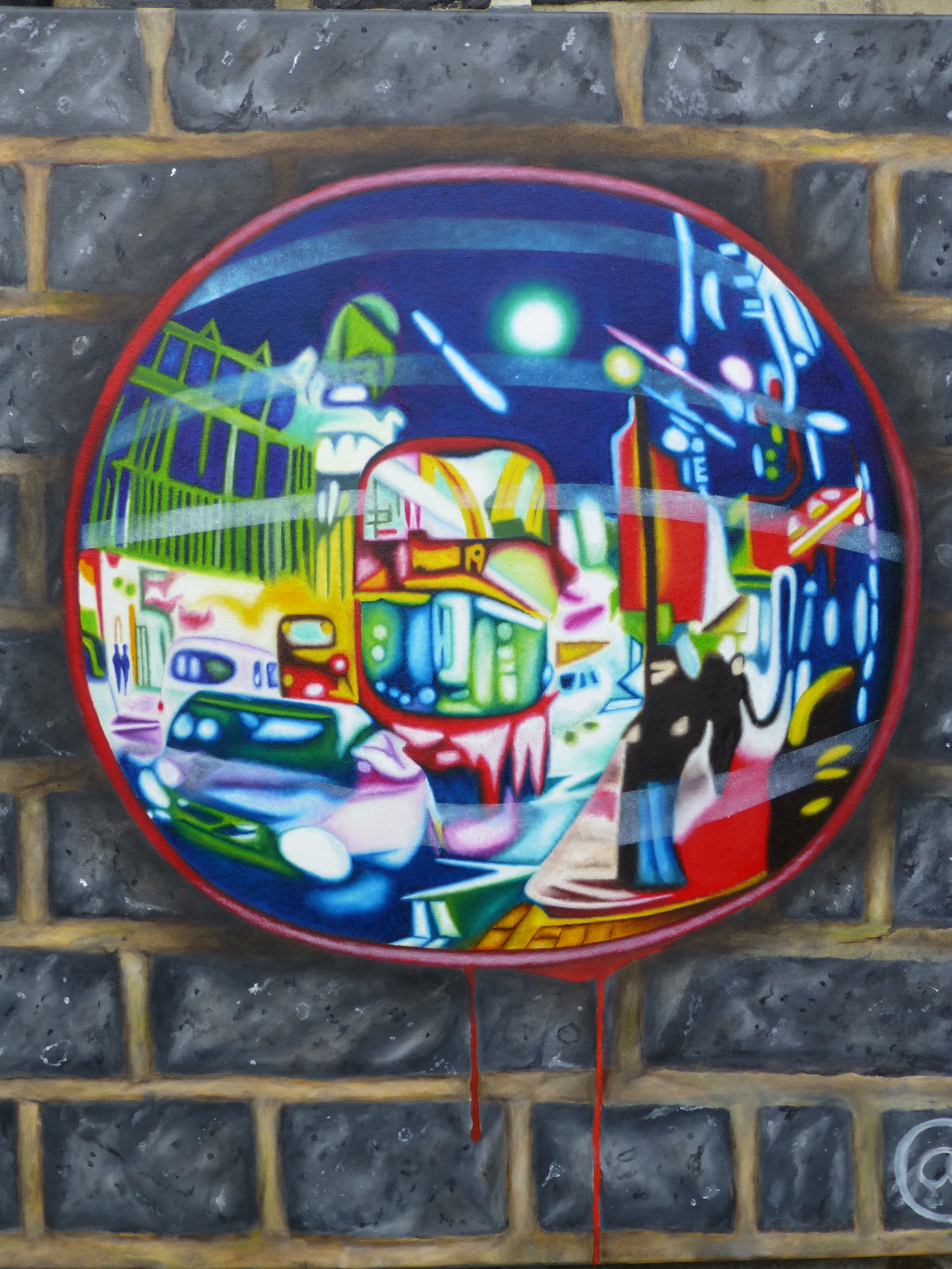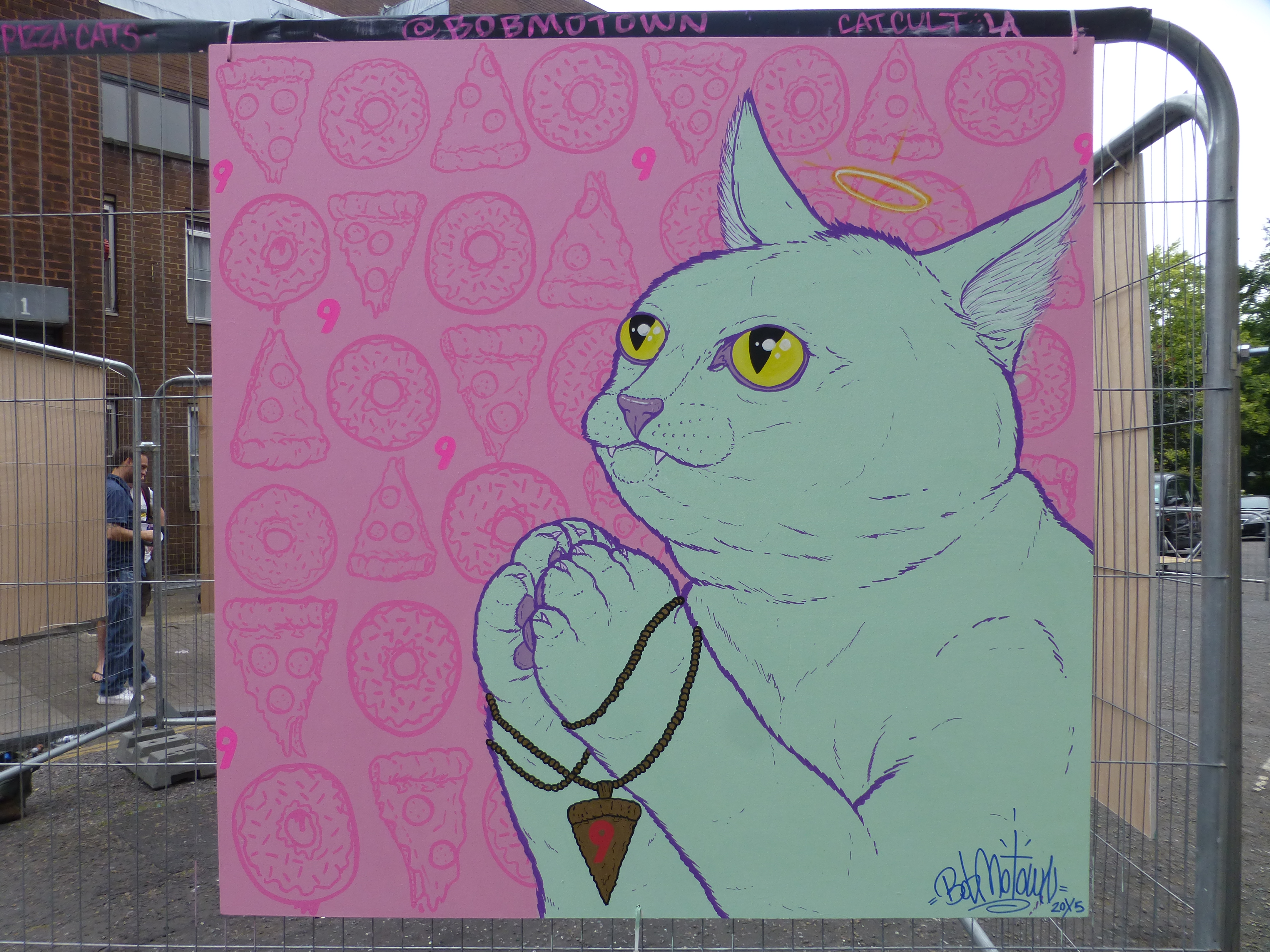 Surreal work by Bob Motown, love the pizza & doughnut background motif.