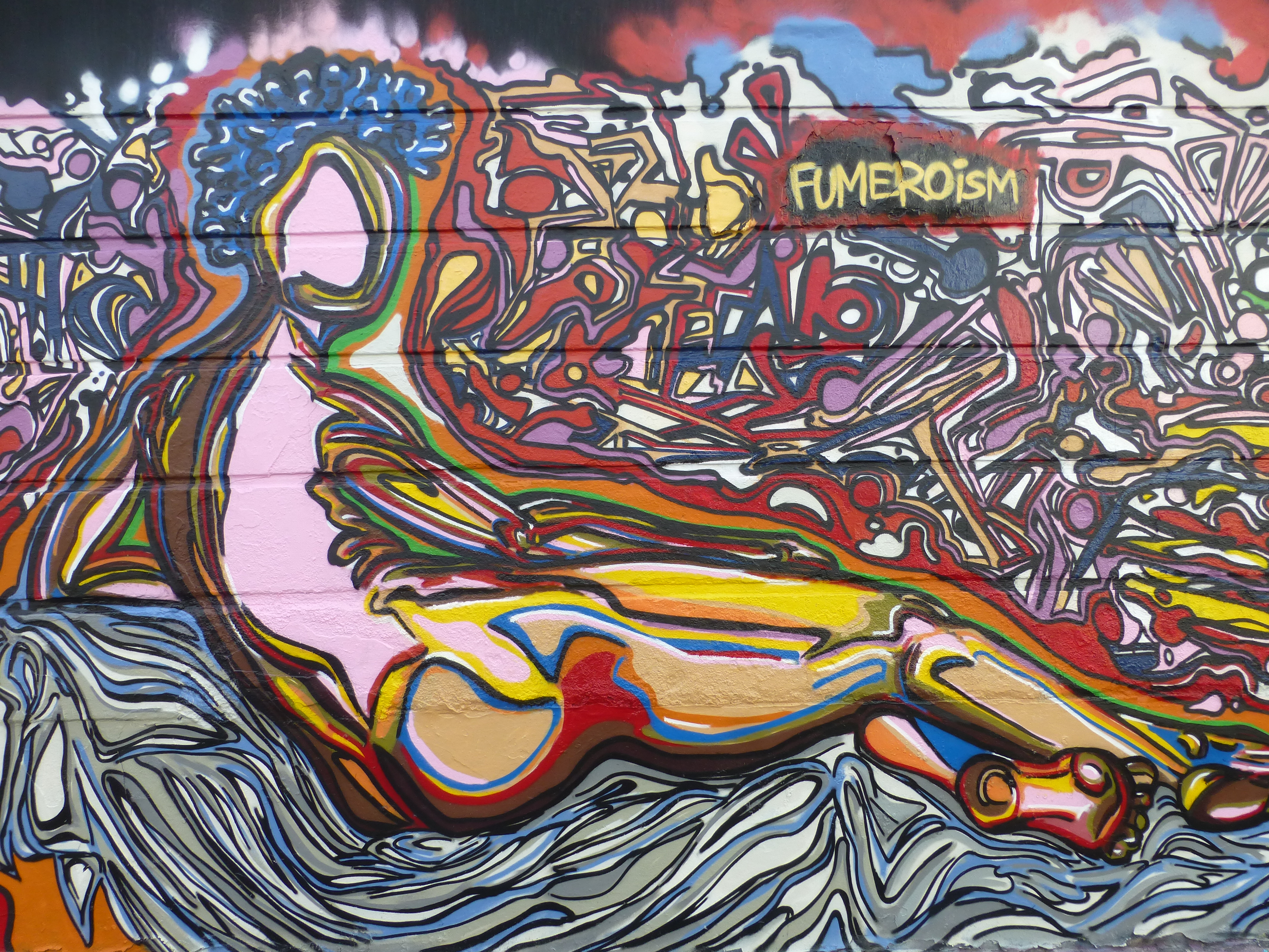 Fumeroism who became a graffiti artist from the age of thirteen which through his teenage years allowed him to develop his letter styles, colour schemes and creating characters. From this Fumero went to the School of Visual Arts in New York City, as a cartooning/illustration major and it was here that he developed his distinctly personal style and Fumeroism came to be. A style which focuses on the depiction of caricature driven, figurative works, setting to create a balance between the bold outlines and contrasting vivid colours that fill the work, setting to create an organic fluid energy.
