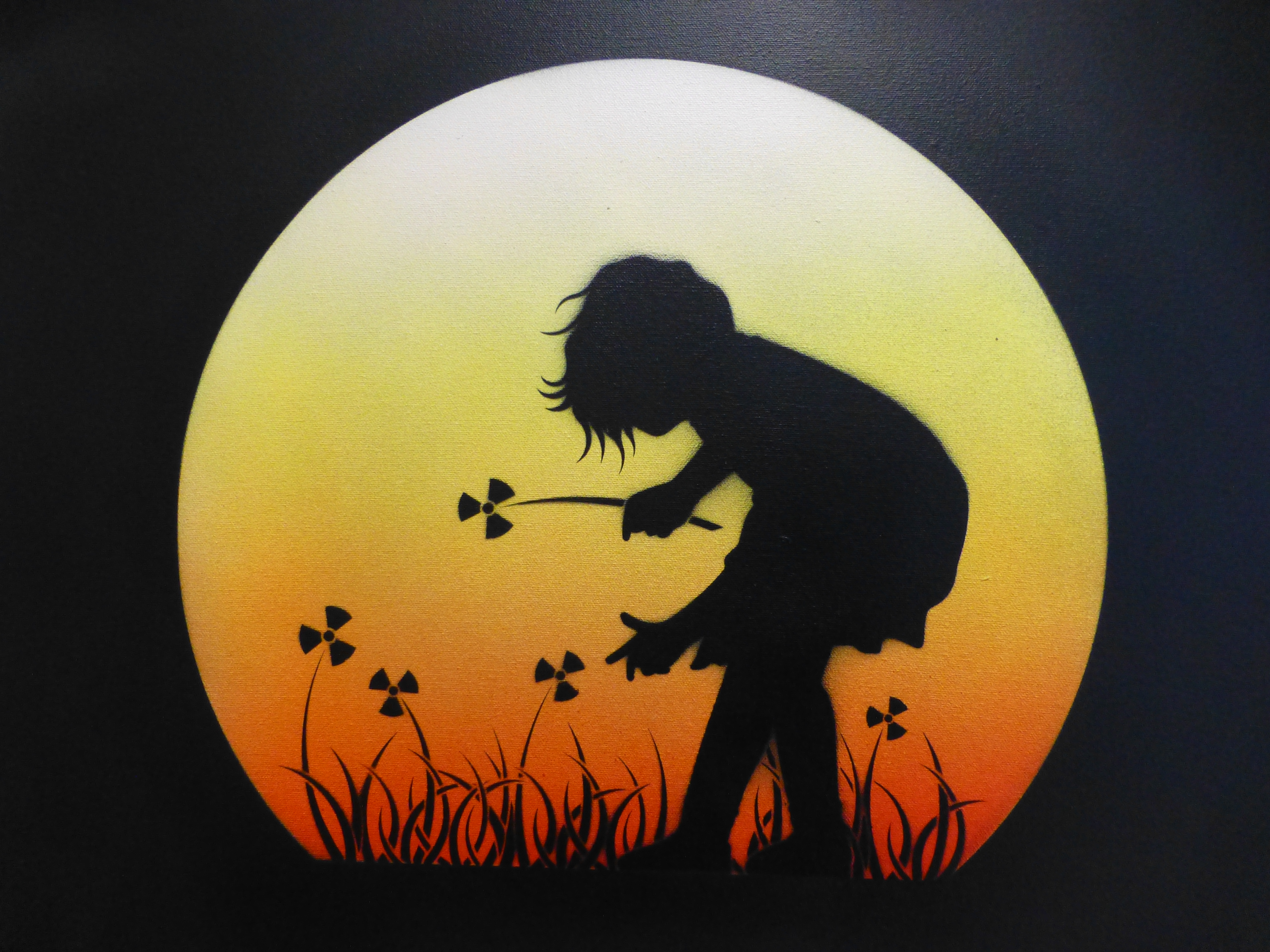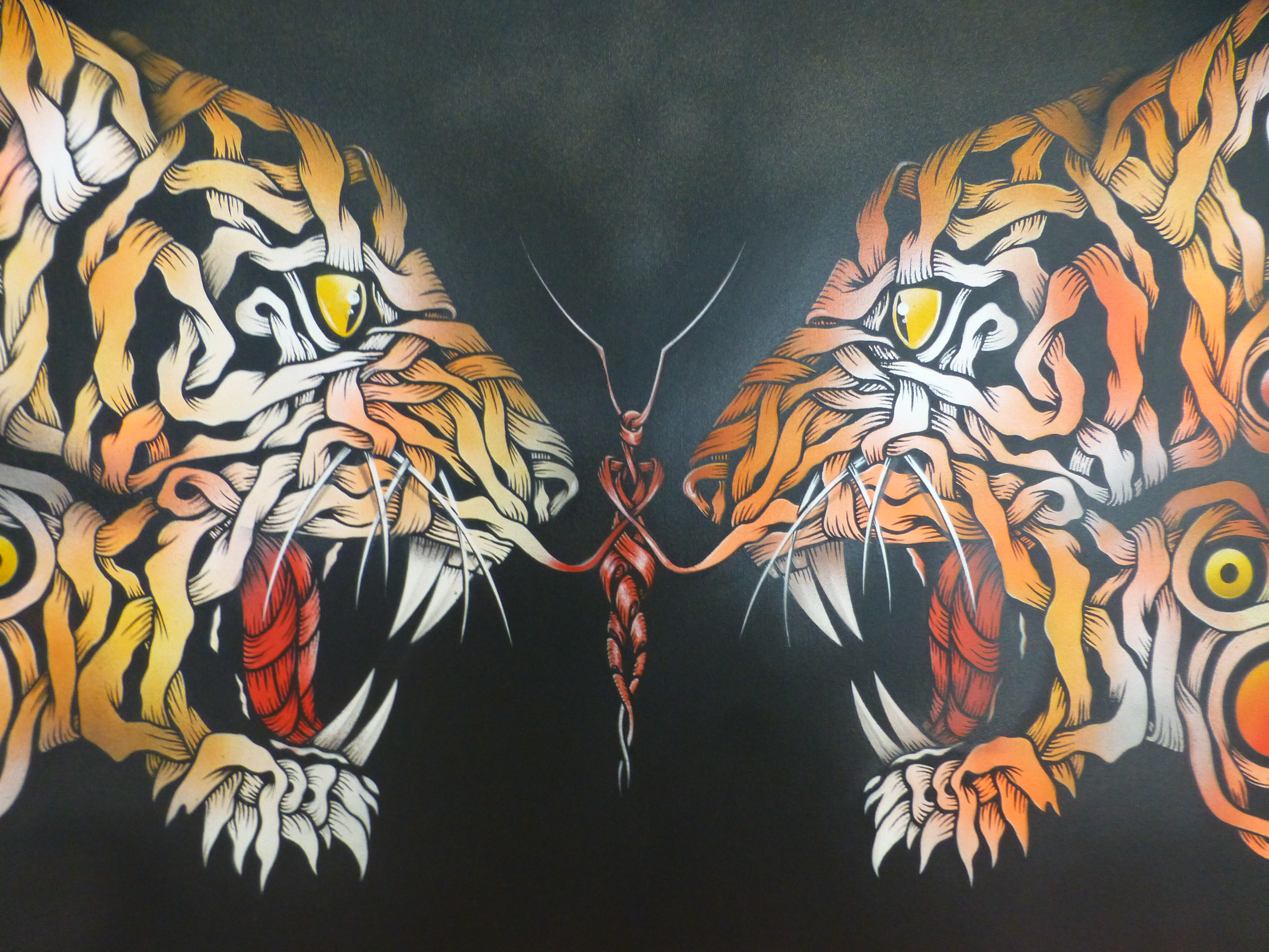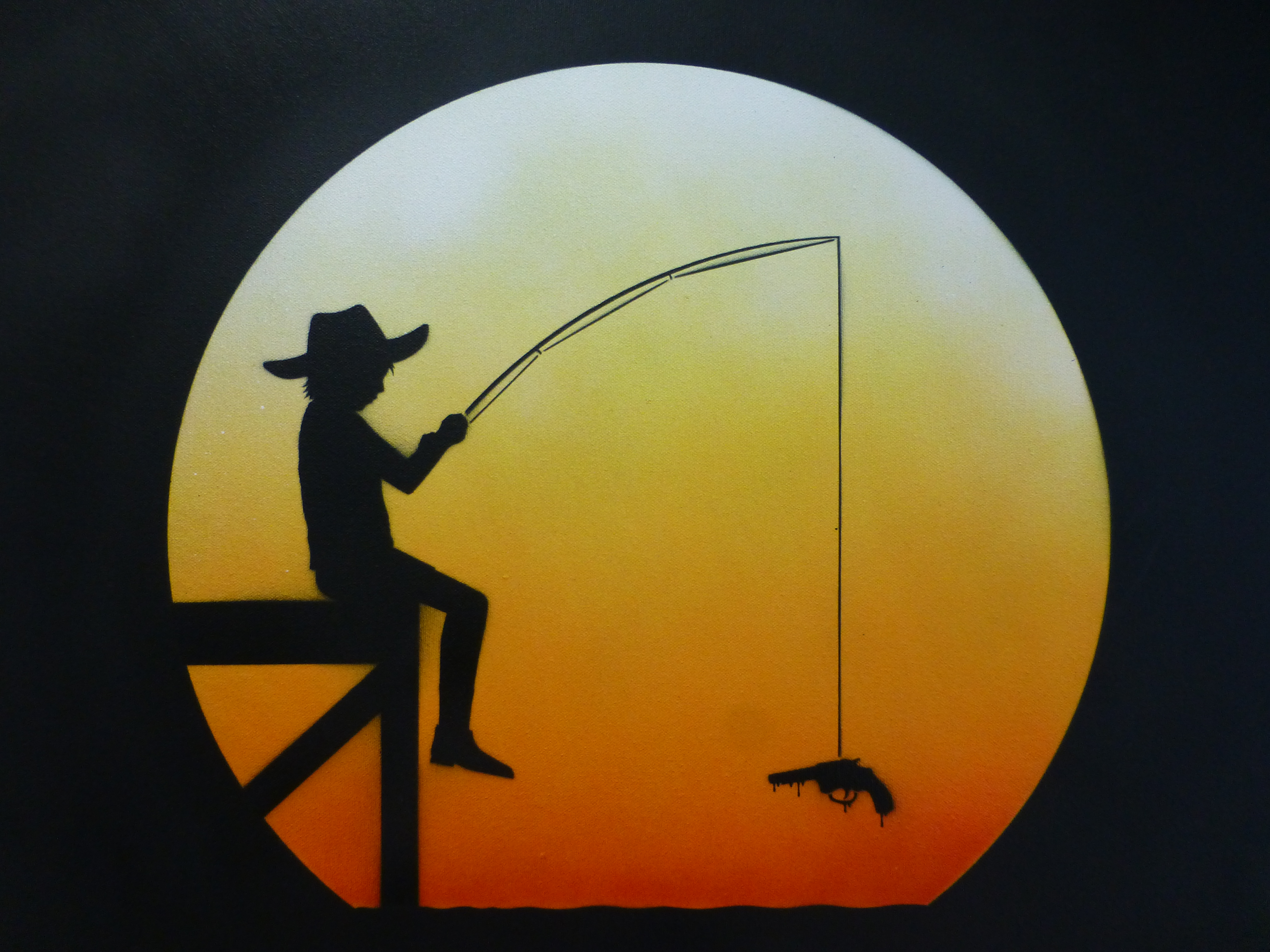 Otto’s painting styles range from the abstract and surreal to the stark and brutal. Working predominantly with oil paint, and incorporating practices such as collage, illustration and stencil. The themes behind his compositions read in a personal, metaphorical sense with a sharp, ironic touch. Otto has long been a major star on the London street art scene and it is easy to see why with his works offering a combination of the creative and fun with his ‘ribbon’ effect style creations which offer so much depth and intricacy to look at and lose yourself in, and offer a glimpse at his former career as an architect, countered by his stark and incredibly powerful silhouette pieces, which really do just stop you in your tracks and provide something to think about.