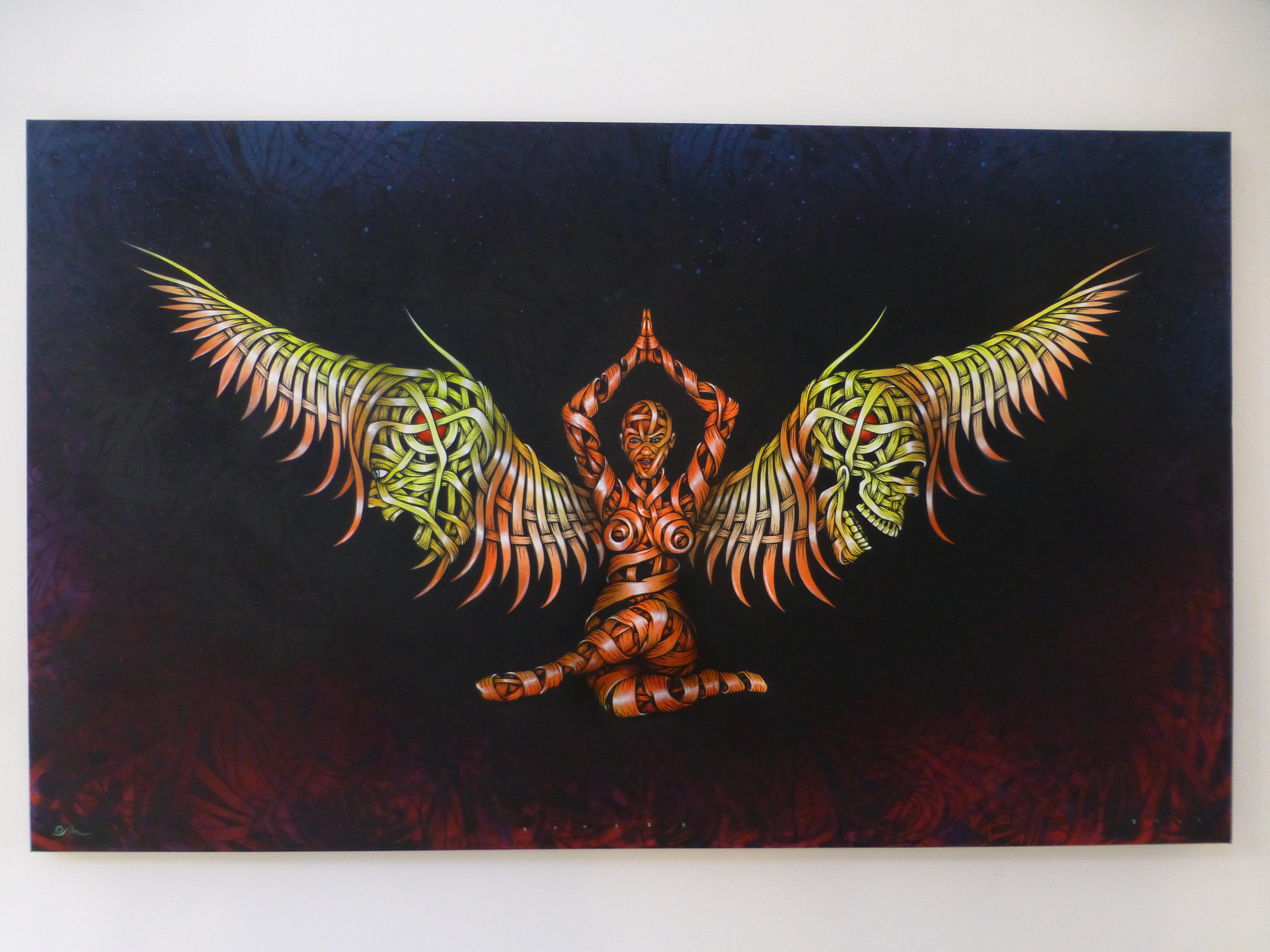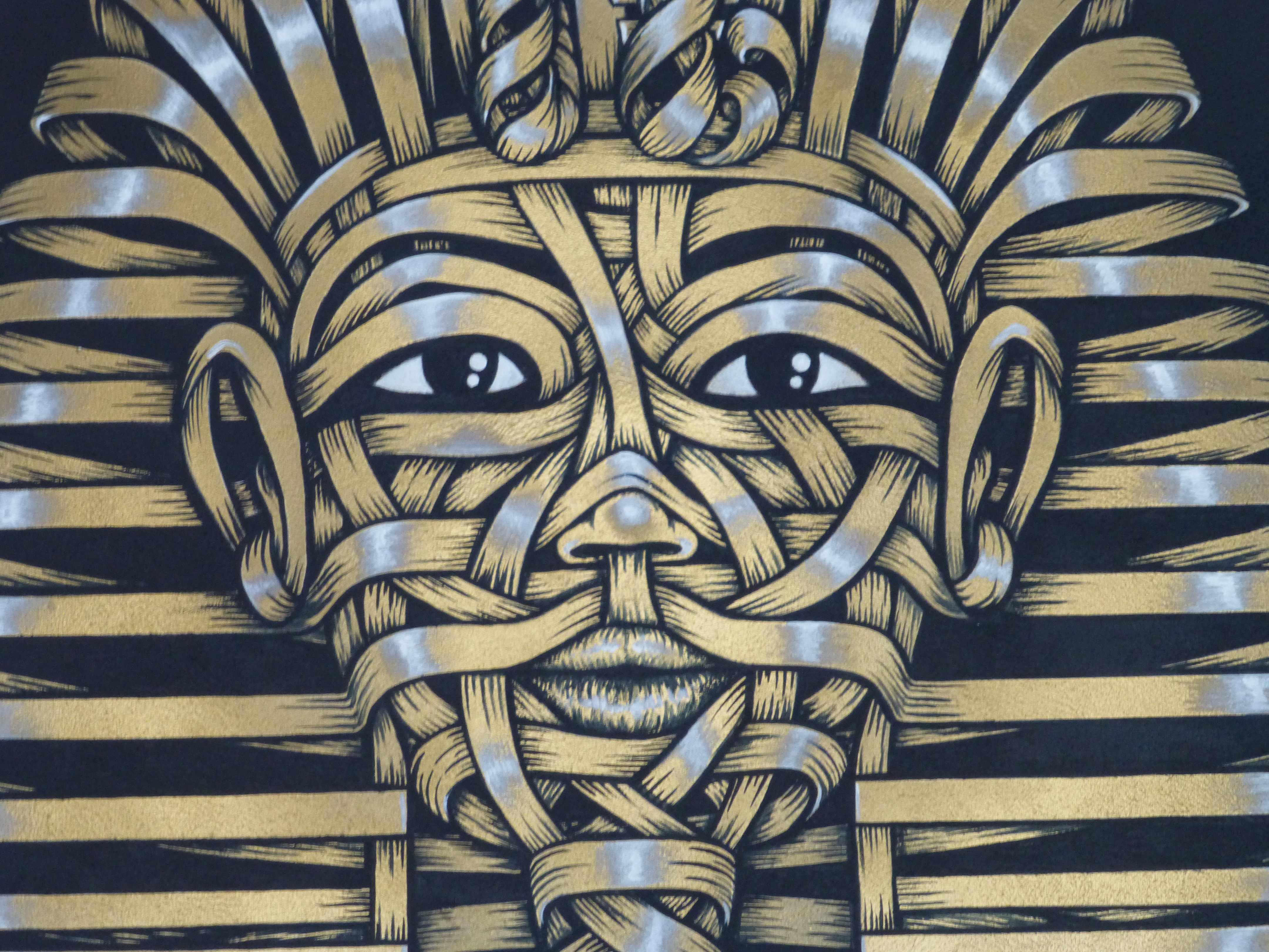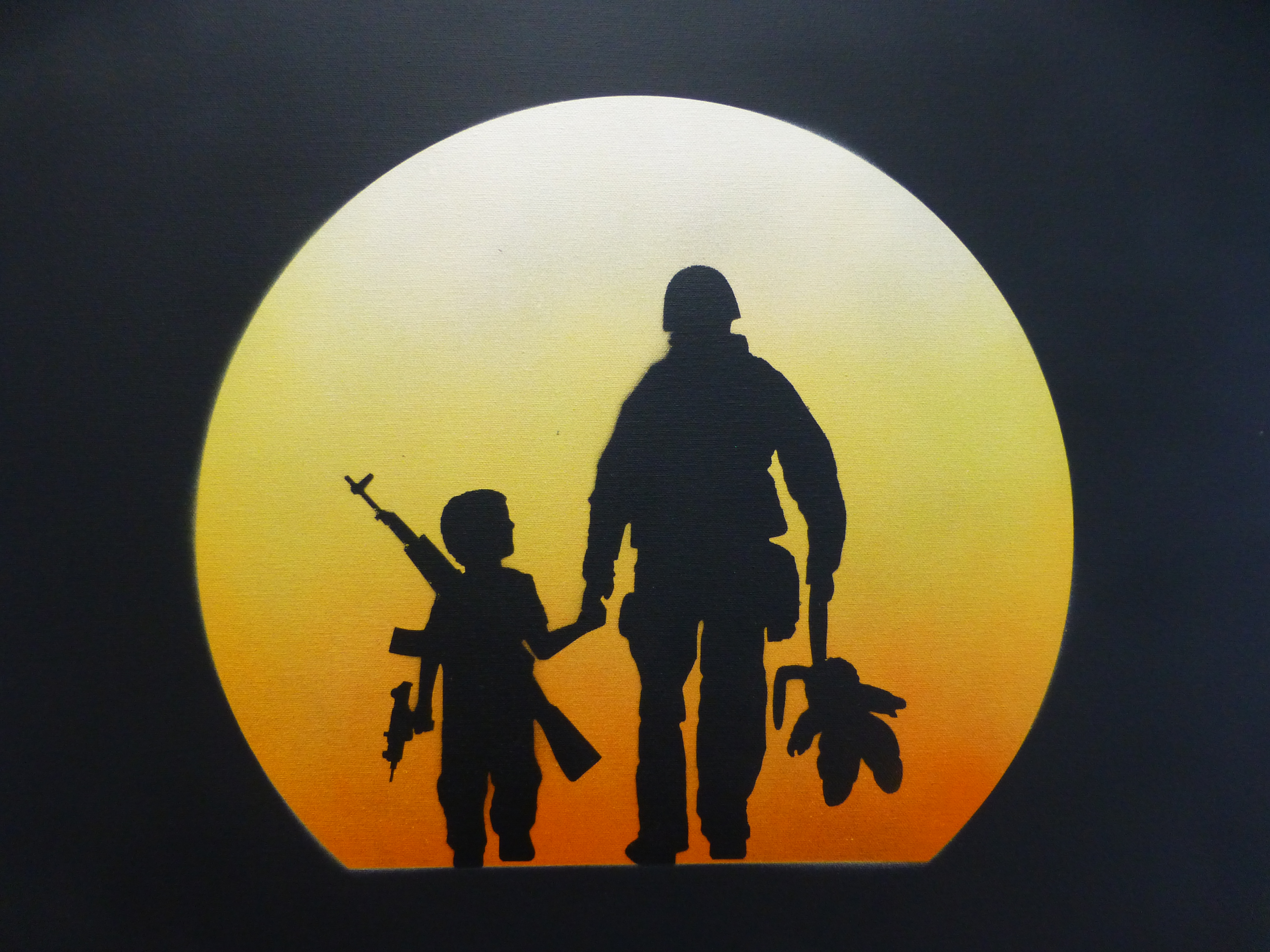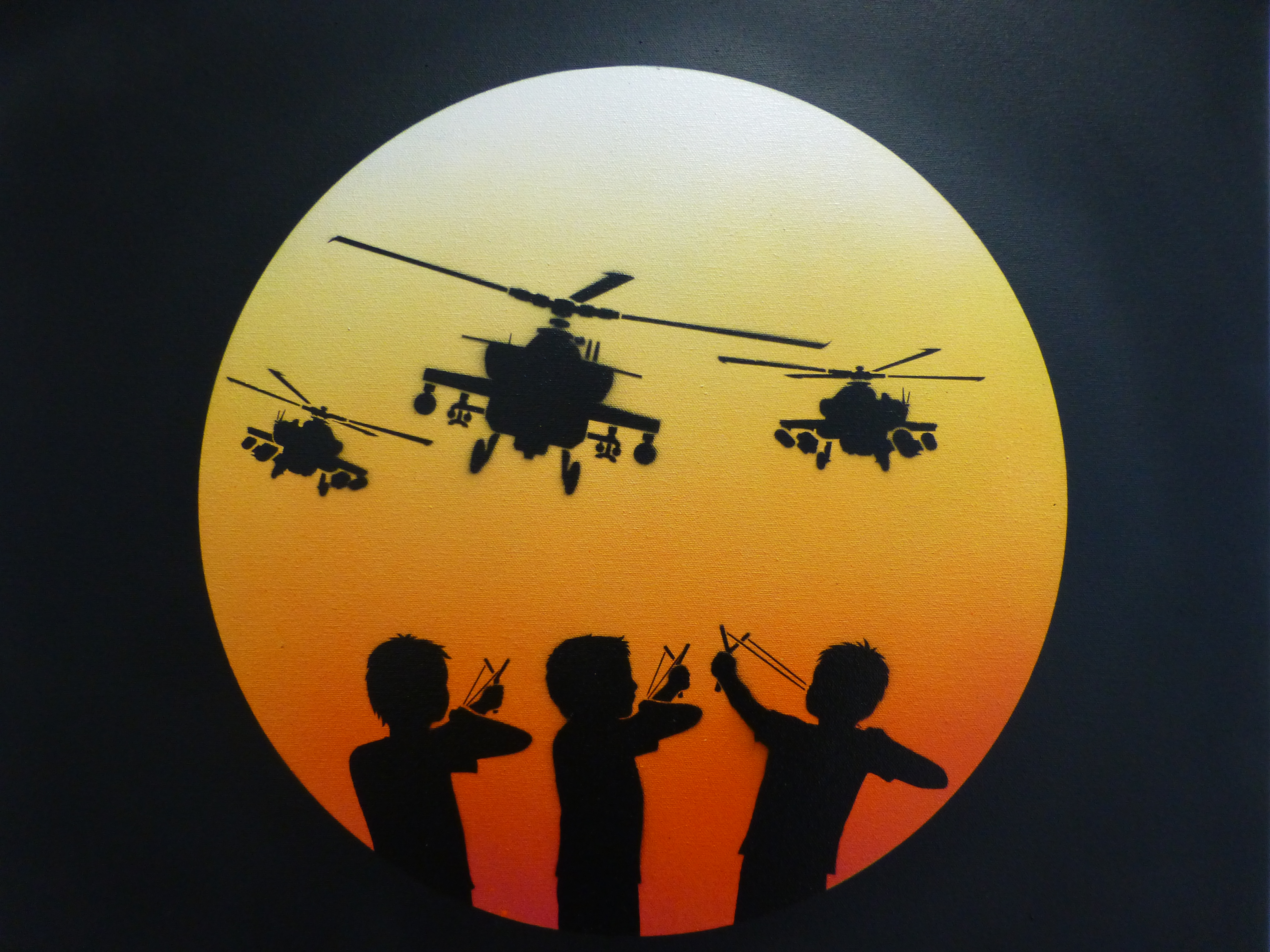 Otto’s painting styles range from the abstract and surreal to the stark and brutal. Working predominantly with oil paint, and incorporating practices such as collage, illustration and stencil. The themes behind his compositions read in a personal, metaphorical sense with a sharp, ironic touch. Otto has long been a major star on the London street art scene and it is easy to see why with his works offering a combination of the creative and fun with his ‘ribbon’ effect style creations which offer so much depth and intricacy to look at and lose yourself in, and offer a glimpse at his former career as an architect, countered by his stark and incredibly powerful silhouette pieces, which really do just stop you in your tracks and provide something to think about.
