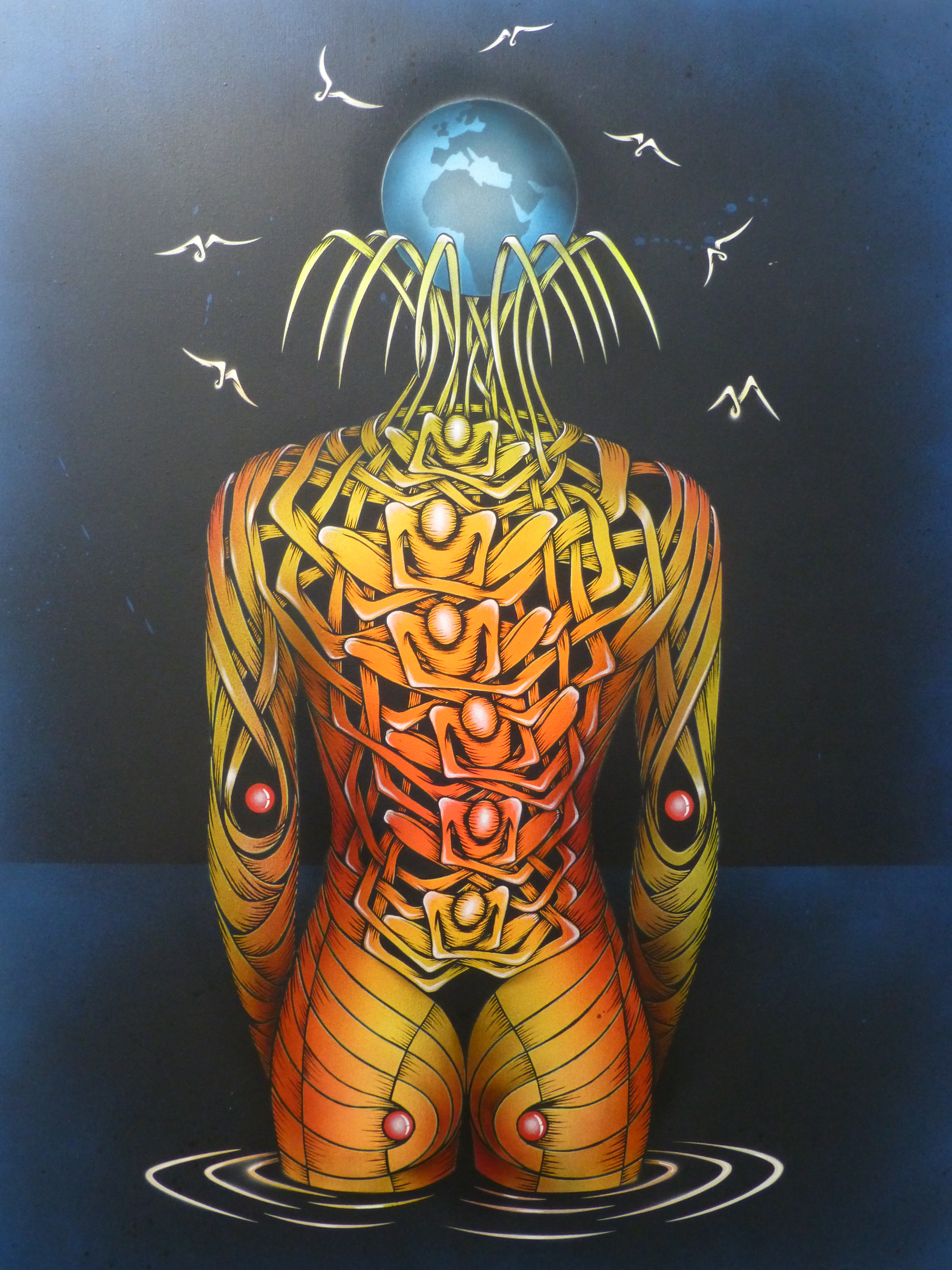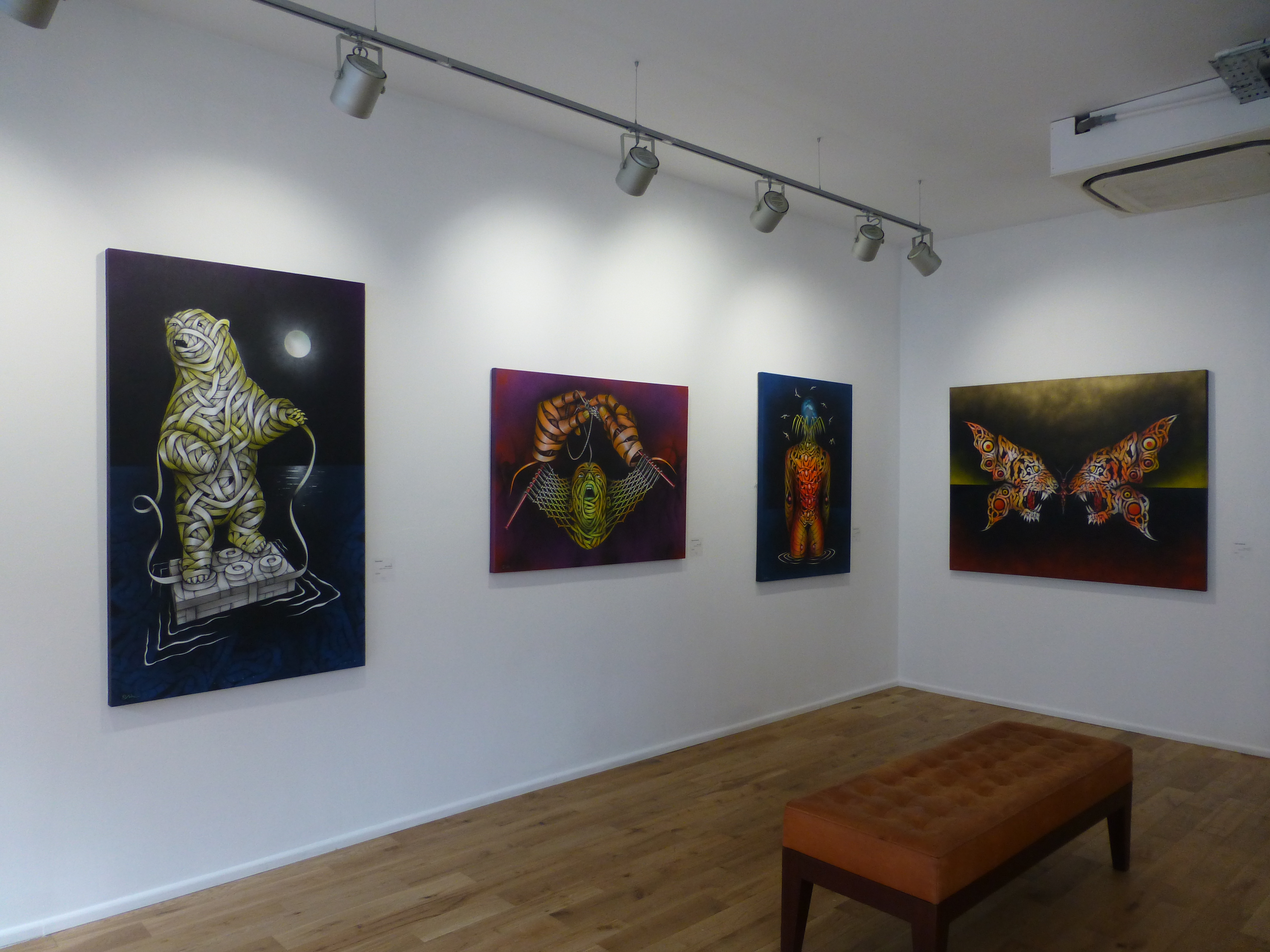 Last Thursday night at the Well Hung Gallery in Hoxton, Chilean born, but London based Street Artist Otto Schade’s latest exhibition opened and it is certainly worth a visit. Otto Schade was born in Chile. where he initially studied Architecture at the Bio Bio University and Construction and Design Architecture in Concepcion, Chile. In his career as a successful architect, he has been awarded for both public and private projects. Artistically Otto has always felt a fascination for the Surrealists, and this influence has made Otto turn his creative skills to painting, which has become his strongest passion and for which he has also been recognized with an honorable mention.