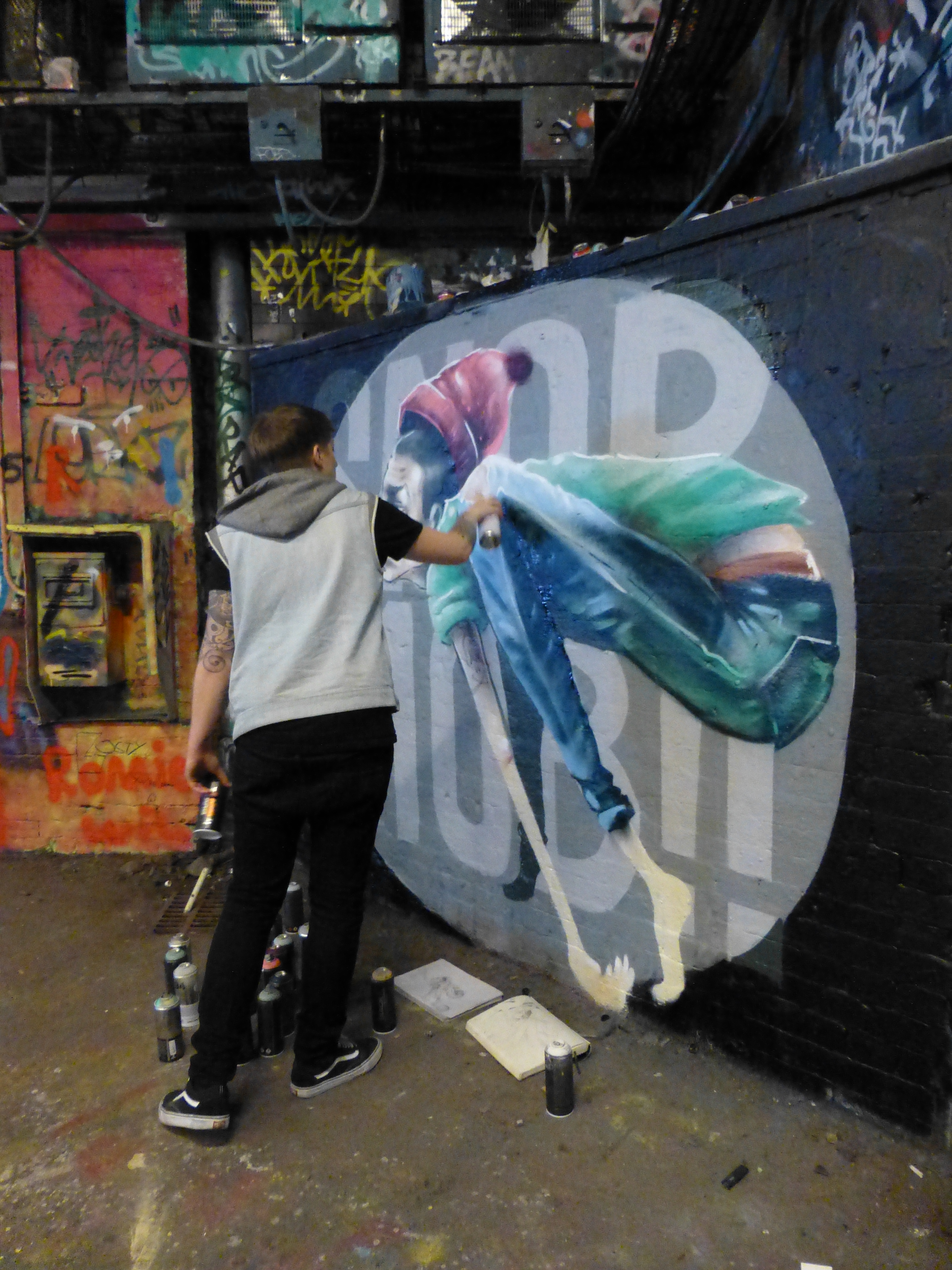 On Sunday we were fortunate enough to catch Manchester based duo Aylo and CBloxx, aka The Nomad Clan, at work on a little number in Leake Street before heading home following CBloxx’s two days of work at St Paul’s Cathedral (covered here). Never missing the chance to paint whilst in London, combined with the fact they wished to use up their paint before heading up North, the duo set to lay out this ‘Snob Mob’ piece, which though lacking the time and attention this pair normally apply to their works, is very cool indeed and instantaneously recognizable as being by Nomad Clan. We absolute love the output from this talented pair and are always delighted to hear they will be London bound, so until the next time, enjoy this work.