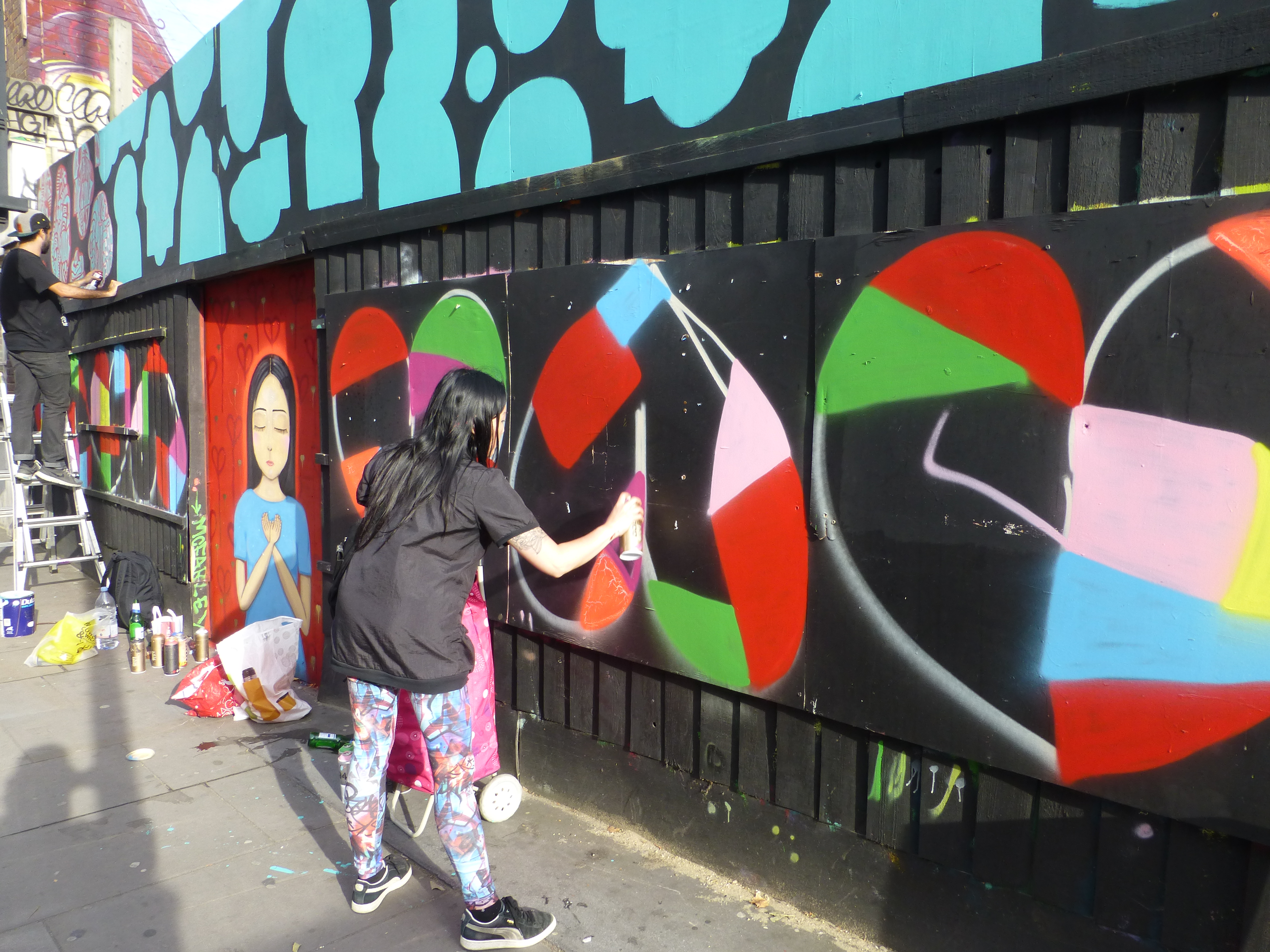Waleska Nomura is an entirely self-taught artist, who started her career as a Graffiti Writer on the streets of Sao Paulo, moving onto canvas and developing her own brand of warm and soulful characters taking her work in a more figurative direction on the streets. Her work is currently driven by her message of “Spreading the Love and Positive Energy to the World”.