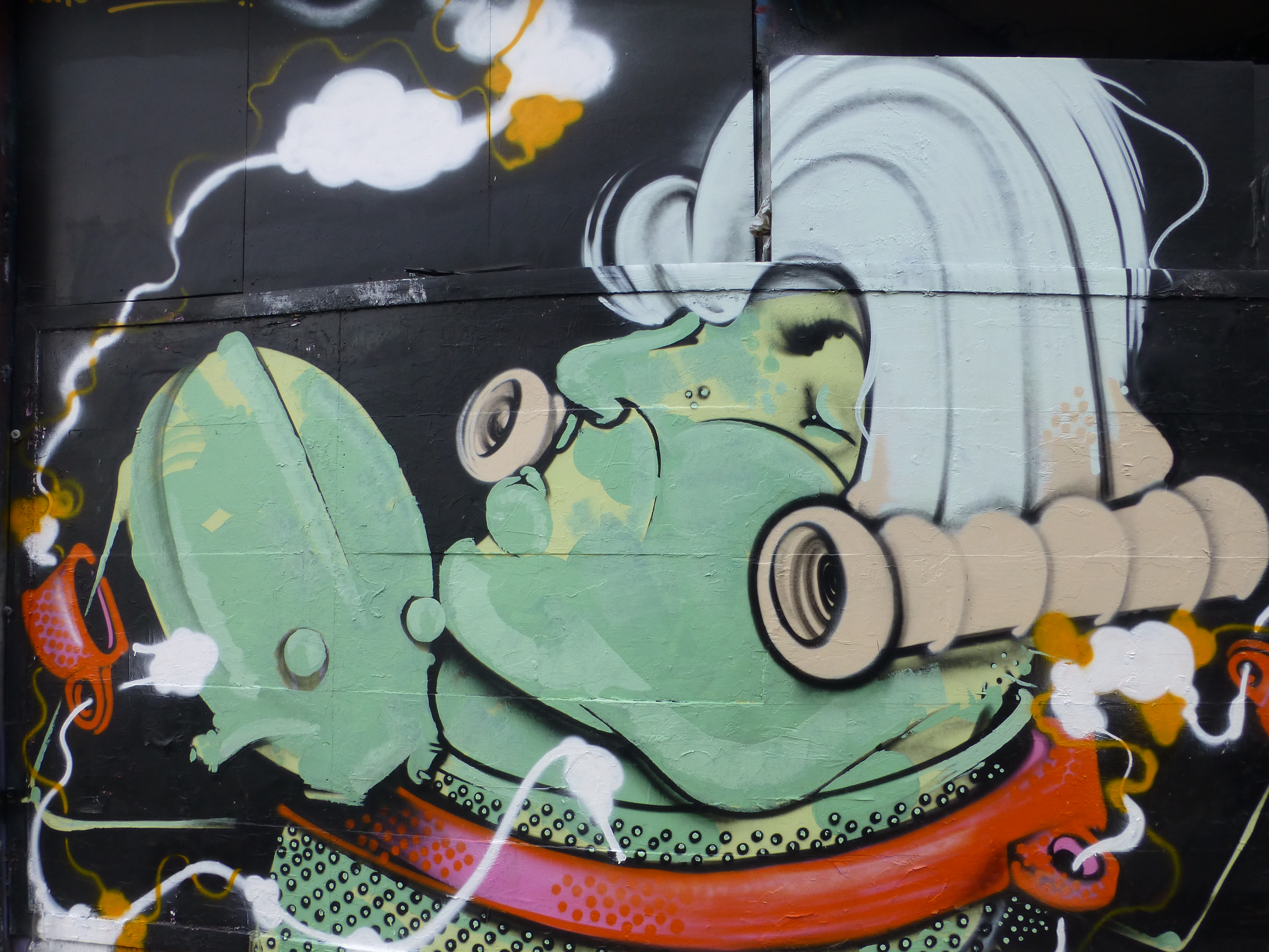 We attended the opening night of the group exhibition on Thursday night and were impressed by the range of styles and works on offer in this small exhibition. We were familiar with two of the artists in this group, having both painted in London this year, but were delighted to also get to see works in the gallery as well as on the street by a further four artists previously unknown to us.