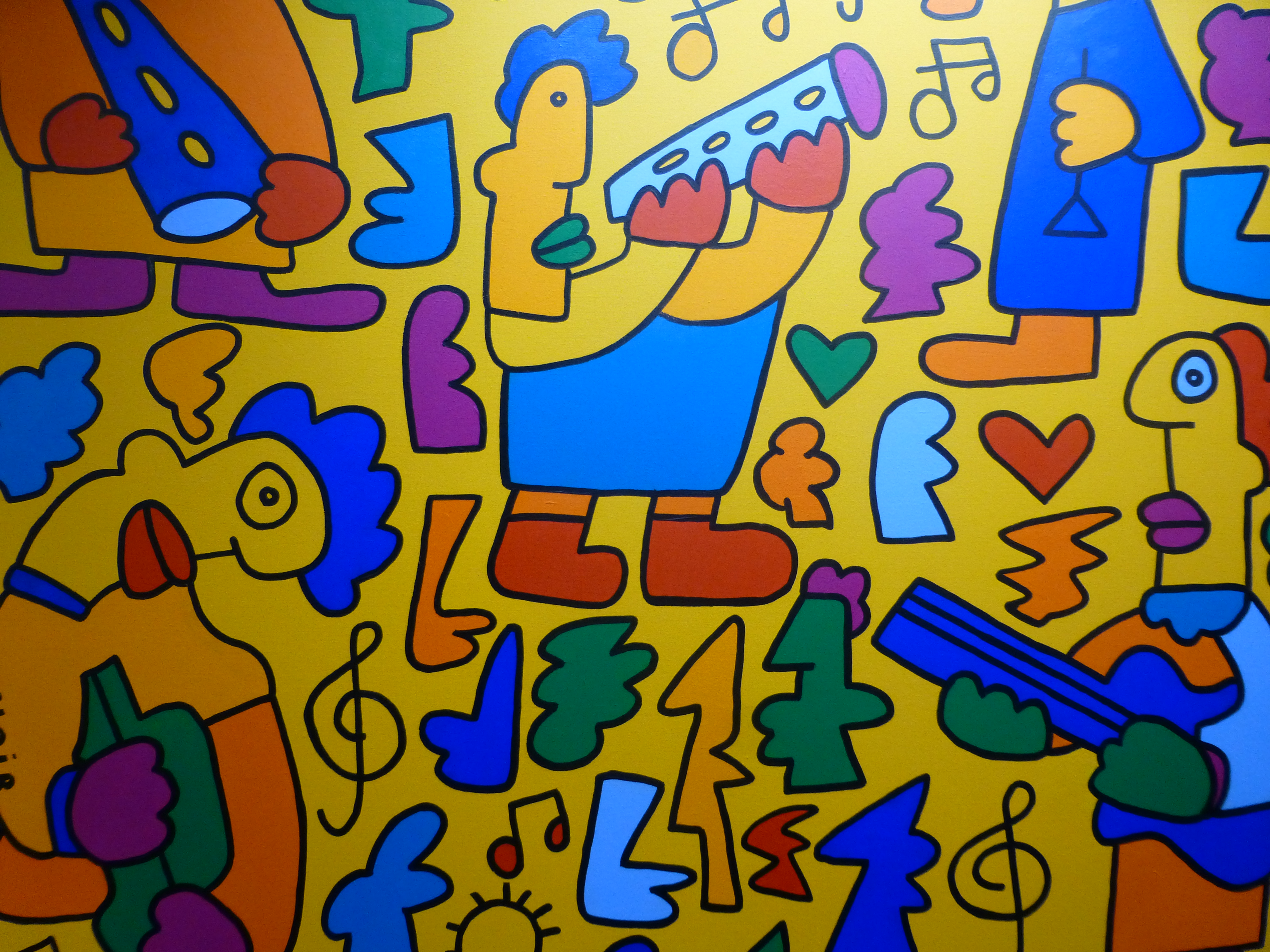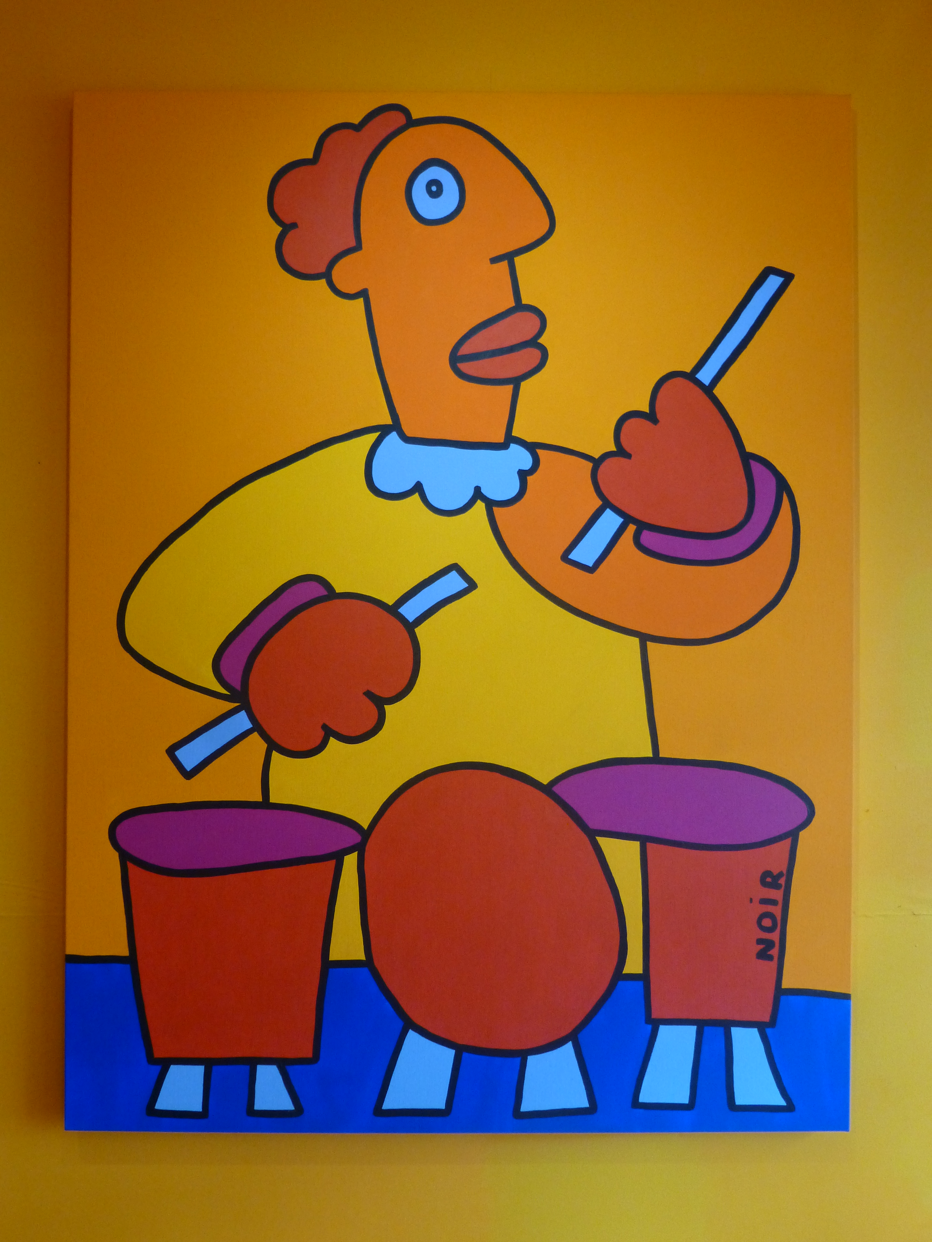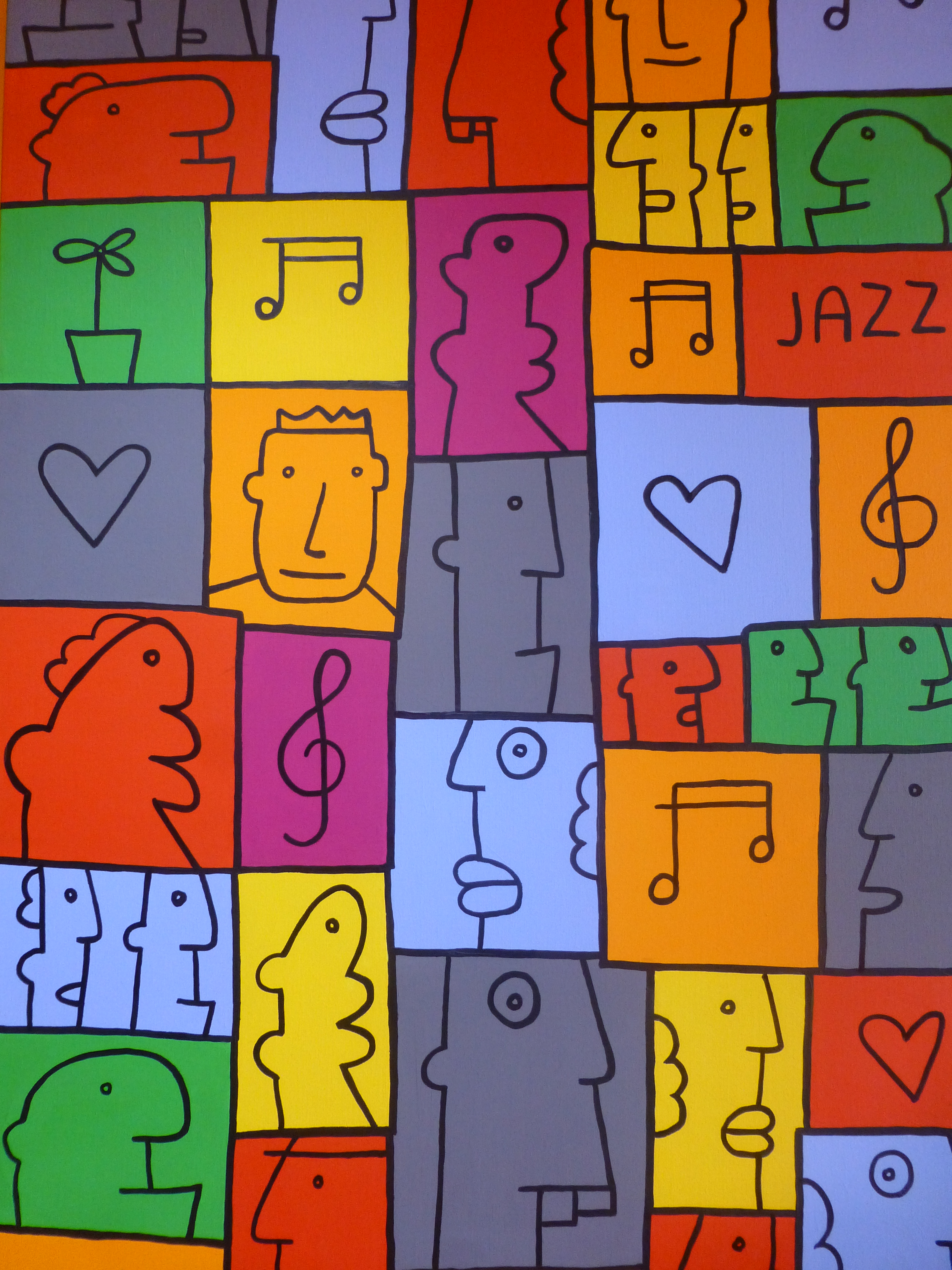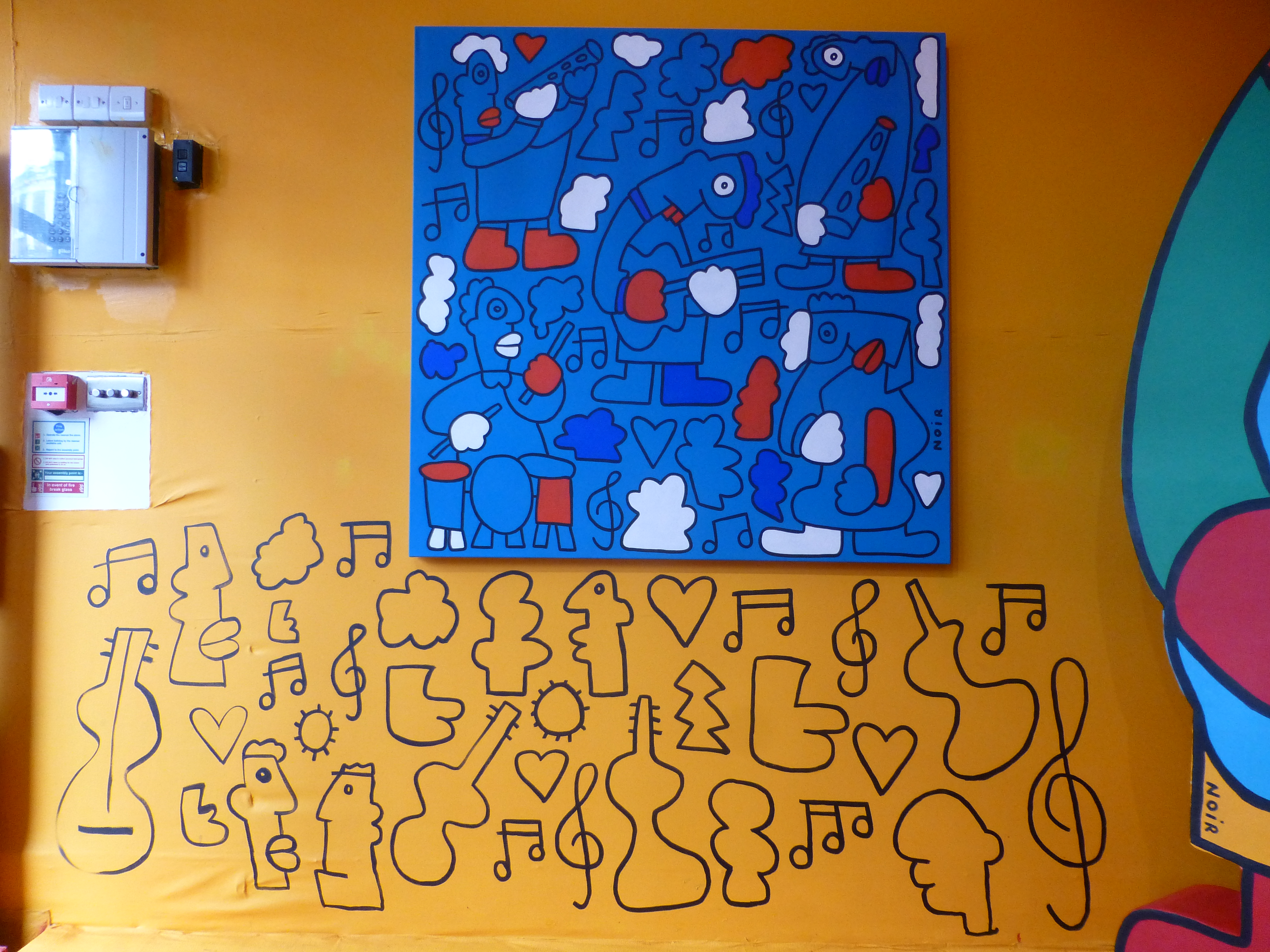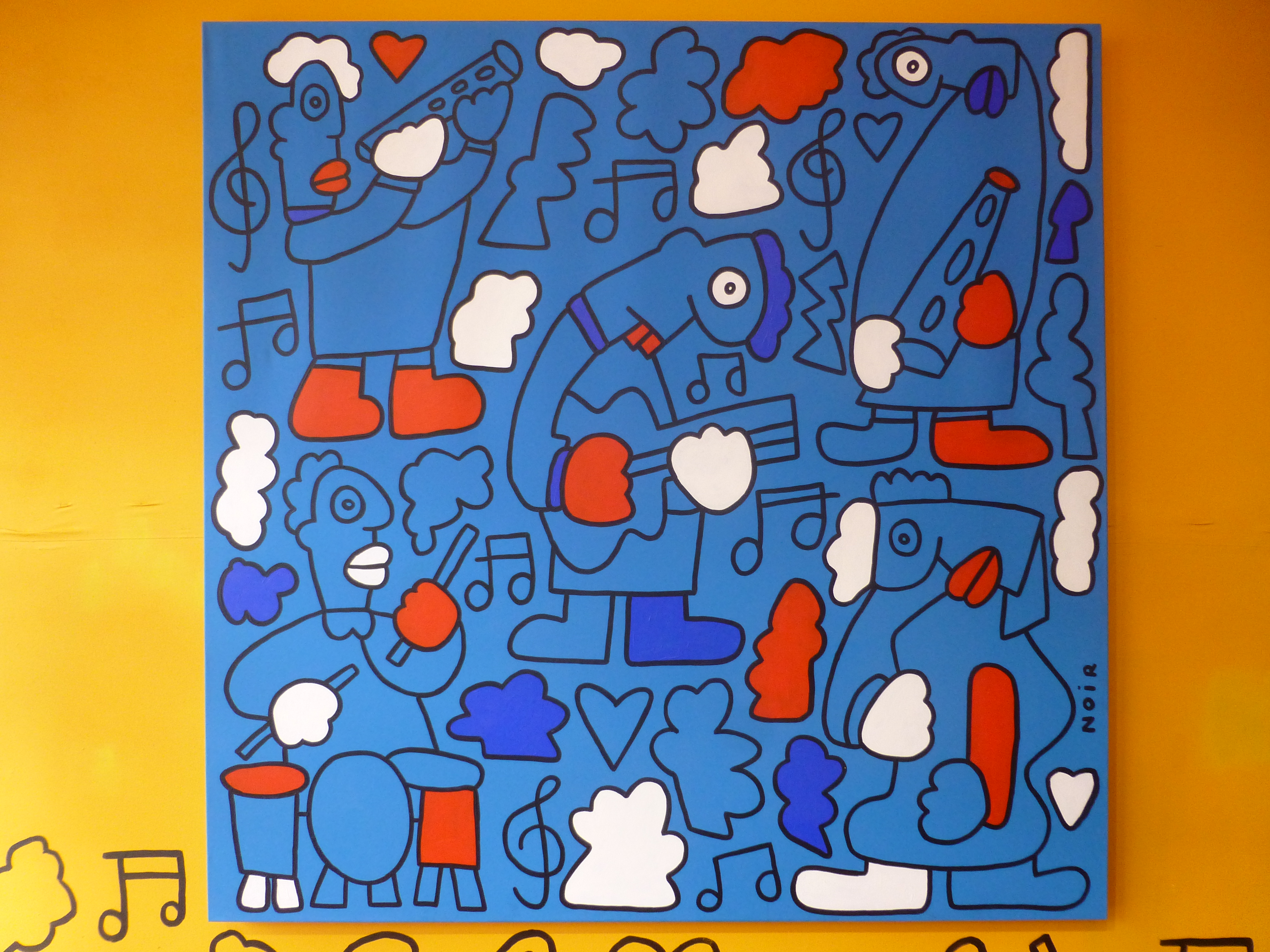 Thierry Noir who is credited in art history as the first artist to start painting large works on the Berlin Wall in 1984, and proceeded to paint on it virtually every day for the next six years, at a time when such expressions of ‘freedom’ where completely forbidden, has brought his latest exhibition, ‘Jazz’ to the Howard Griffin Gallery. The theme of the exhibition is defined by Noir returning to the musical influences which led him to Berlin in the 1980’s, which in turn defined his very future. For Noir art is a performance, one which he considers to be fluid and energetic, like jazz. So the pieces for this exhibition set to draw upon the parallels and harmony between these two practices.