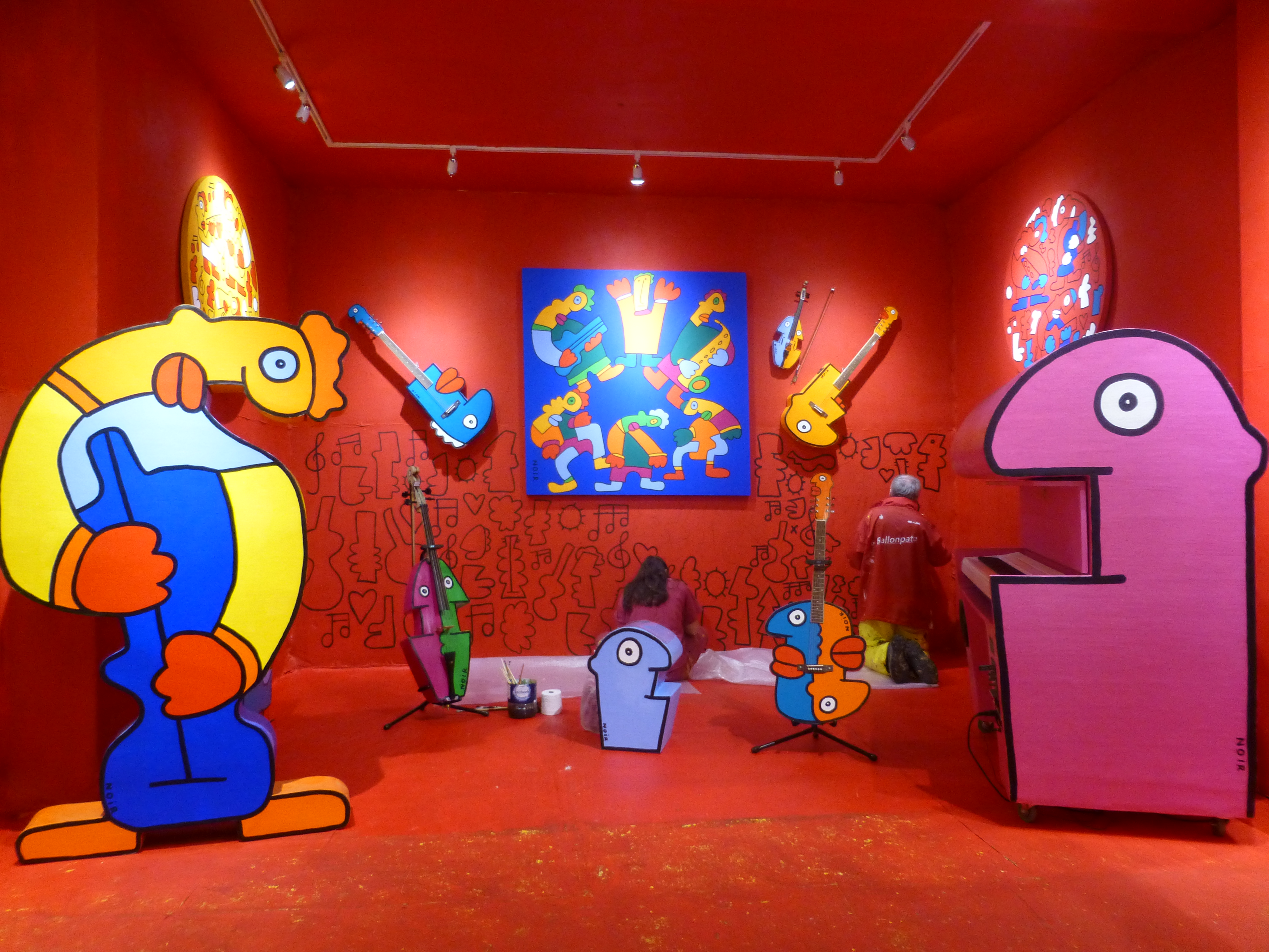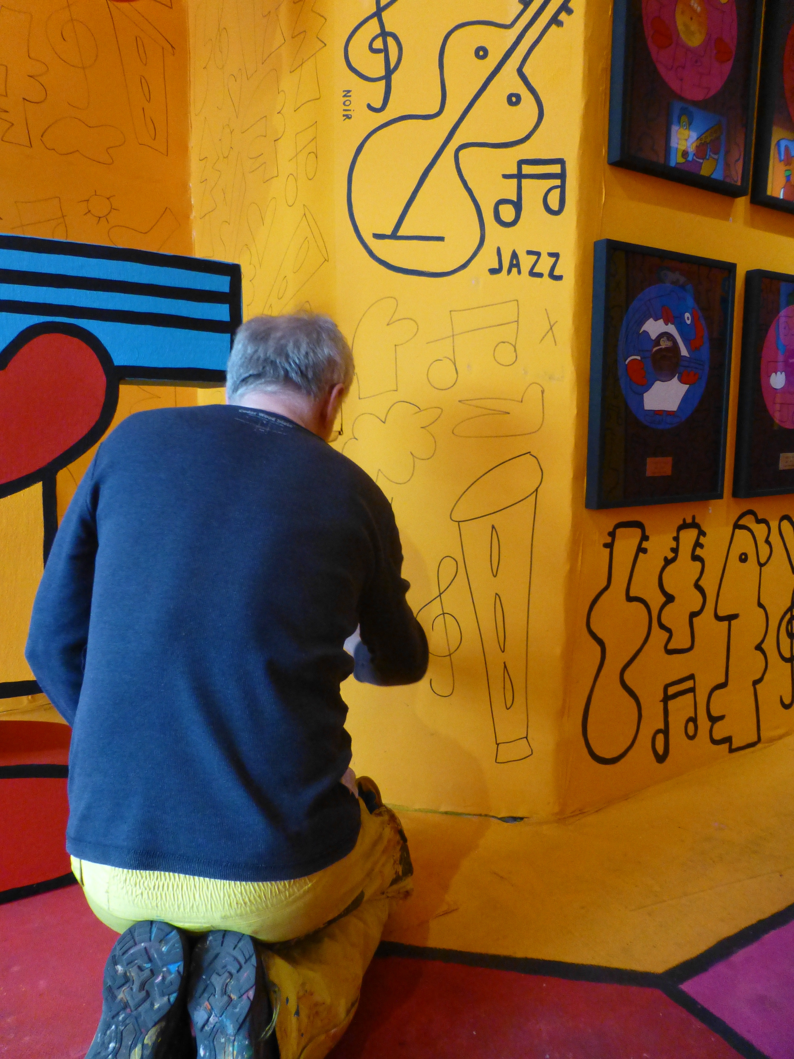 Thierry Noir at work on adding some extra additions to his full on installation exhibition.