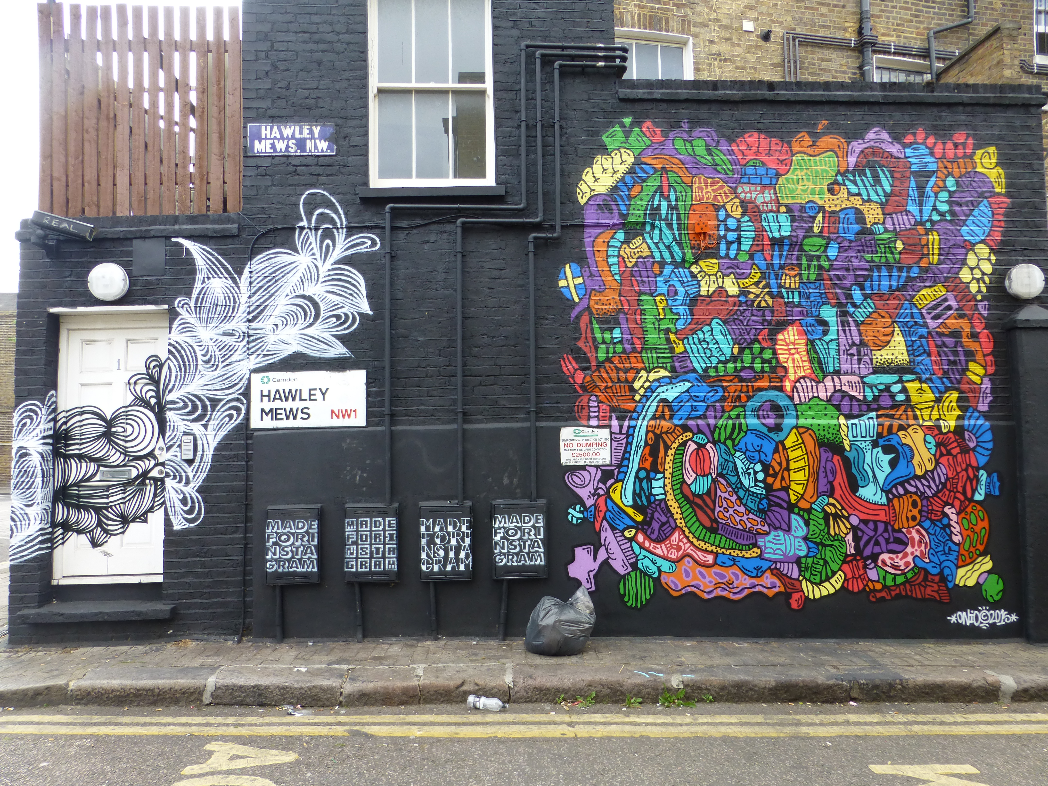 On Sunday, following the end of the three day LATA Street Culture Festival taking place at the Red Gallery in Shoreditch, two of the participating Street Artists from Brazil, Onio and Goms made a stop in Camden Town and hit up some delightful pieces with support from The Real Art of Street Art and Pigment.