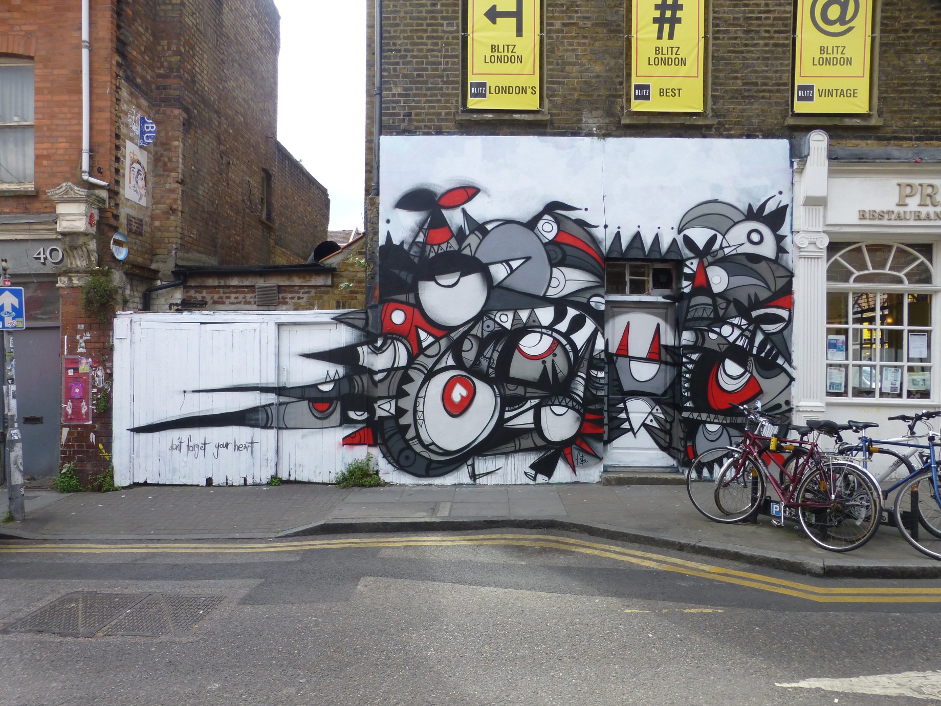 We are playing catch up here, but we really wanted to share this delighful work, which was placed up three works ago. Following her appearance at The Whitecross Street Party, Arabian Street Artist Fathima Mohiuddin, aka Fats, hit up this delightful piece, entitled ‘Don’t Forget Your Heart’, in Hanbury Street. The work was placed up predominantly over a series of three midnight sessions. Born and raised in Dubai, Fathima is of Indian origin and works from Canada. Her distinctive work is defined by her bold and intricate black line works, often accompanied by grey and red. Her work is influenced by her very own cultural ambiguity, infused with ideas on social dynamics and interactions in the city, making for her subtle abstract pieces through which Black dominates speaking for her views on the beauty of darkness. The piece was painted as a part of the Breaking Cover project for this years Shubbak Festival, London’s premier festival dedicated to Arab culture.