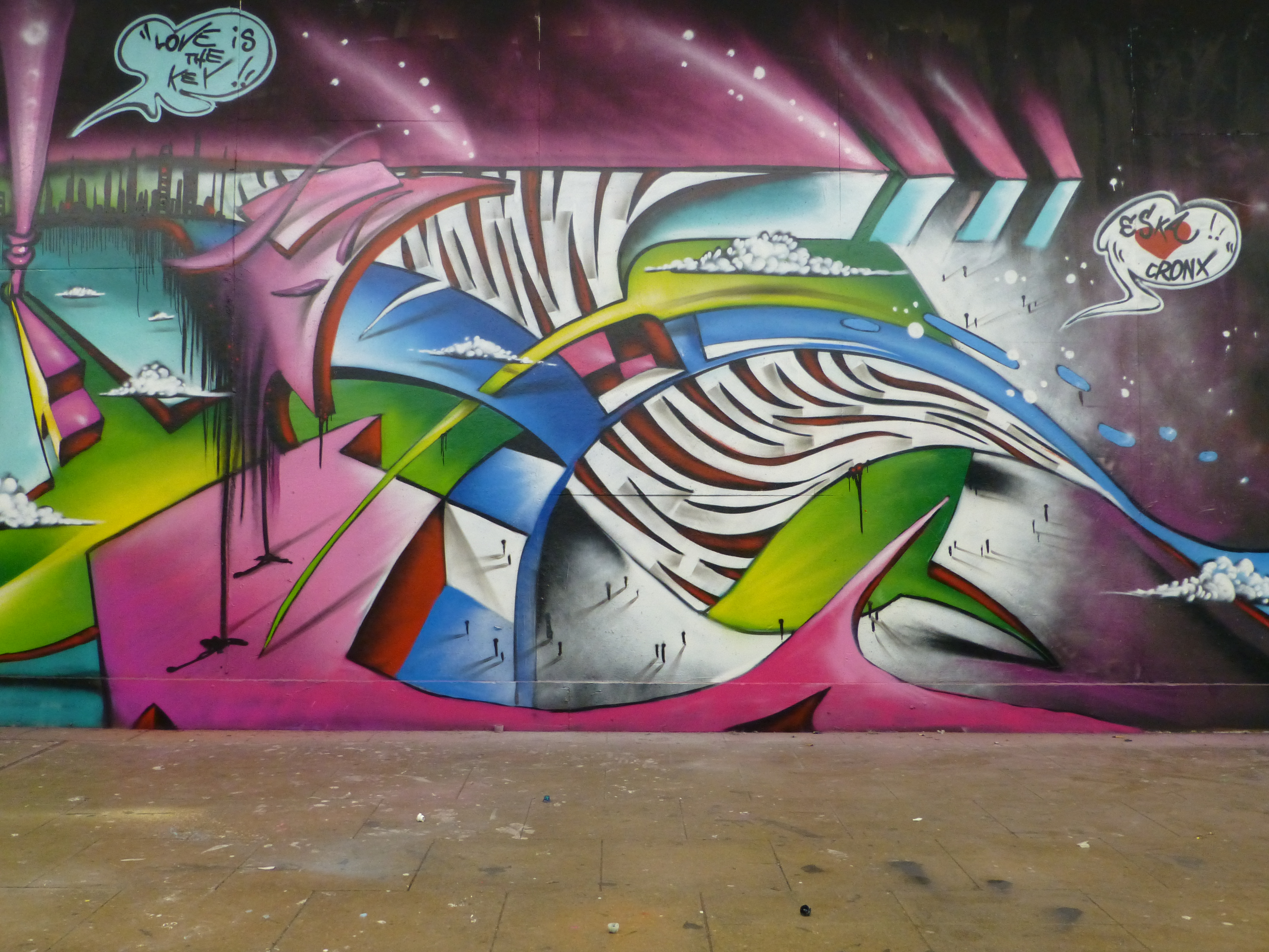 Yesterday whilst passing through Croydon, we decided to take a detour through the Arts Quarter and were delighted to see a series of seven artists painting up on the Legal Walls on offer, and among them was Polish born, but London based, Graffiti Artist Eska, who was just finishing up this incredible 3D work. Eska works in what he dubs ‘2D, 3D & 4D’ and this now makes for the fourth piece of his we have been treated to in Croydon this year, and without contest the best of his solo works, having hit up a couple of collaborations with Morgazmik also. The piece is bright, vibrant and offers so much depth, portraying the tiny individual characters, seemingly consumed by the environment, and all set to a lovely cosmic border. that at current makes for one of the stand out pieces in Croydon’s well tended Arts Quarter.