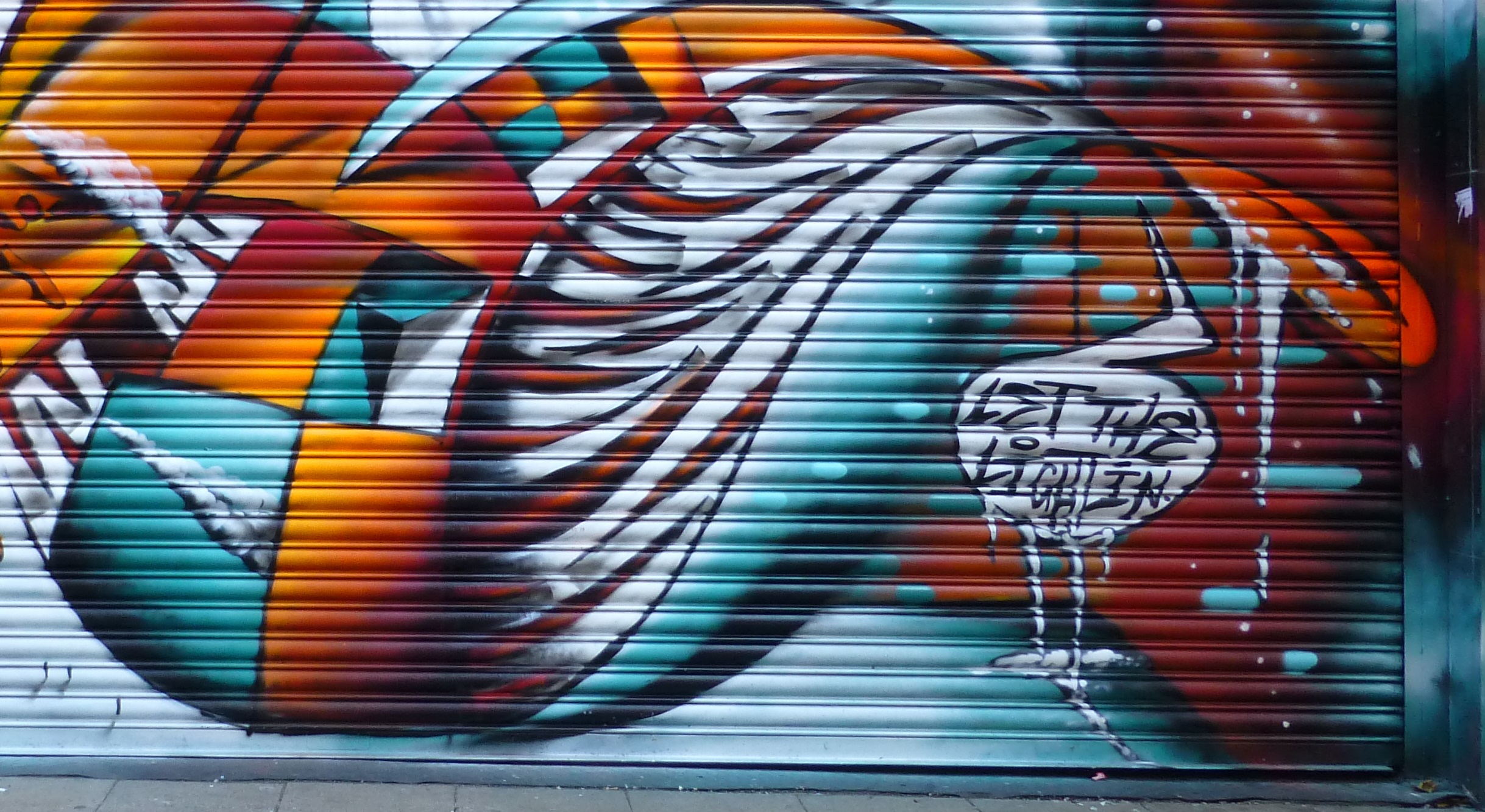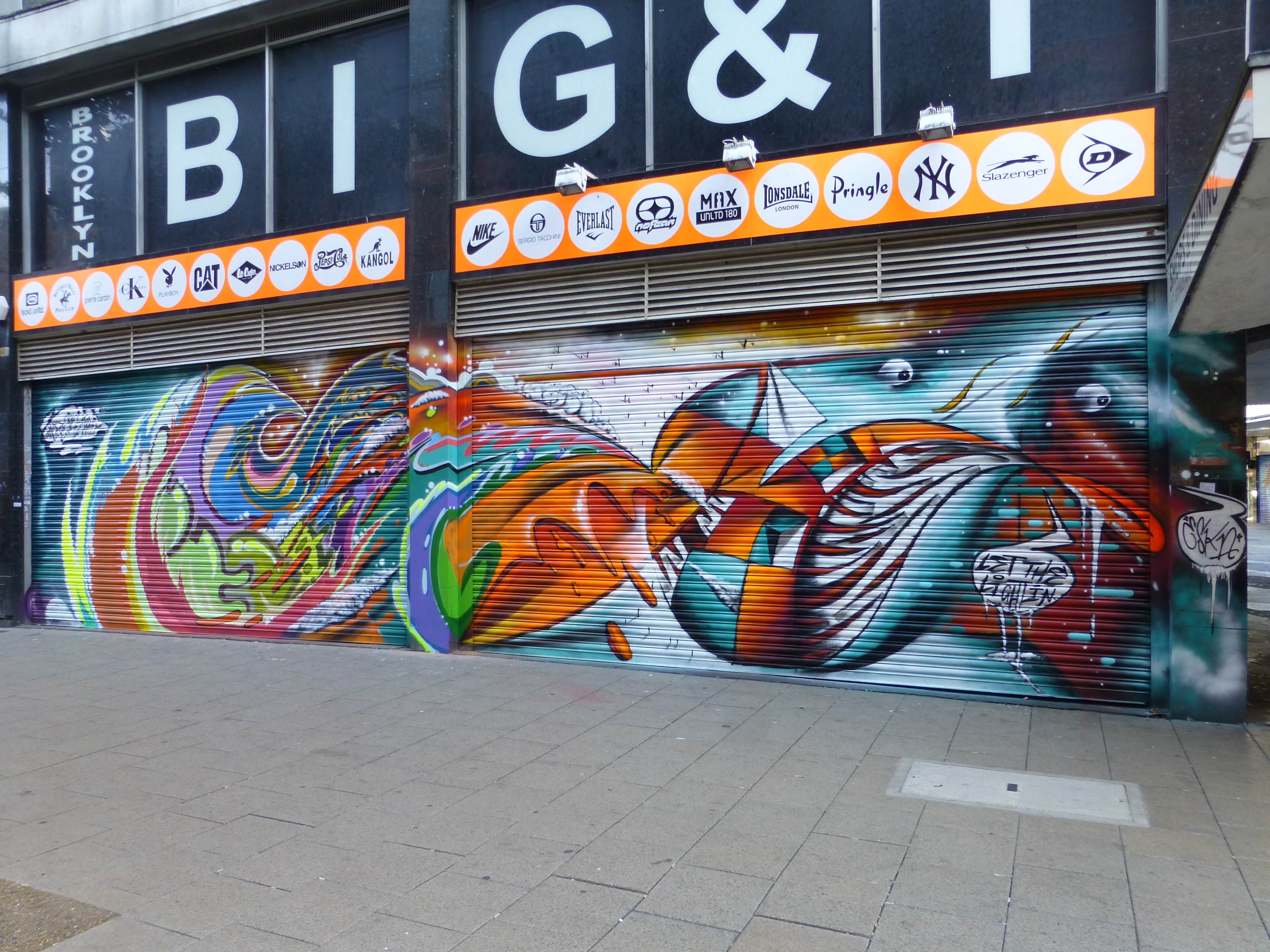 When we passed through Croydon on Sunday we had the opportunity to catch up with a superb collaboration from Morgazmik and Eska, making for the third piece this duo have placed up in the Arts Quarter, that was put up over the previous couple of Sundays. The piece entitled ‘Let The Light In’ incorporates both of their distinctively geometric based styles, blending seamlessly and yet maintaining each artists signature styles. Morgazmik’s work on the left of the piece takes on a organic and fluid abstract based style that flows out of Eska’s more abstract solid block 3D reality.