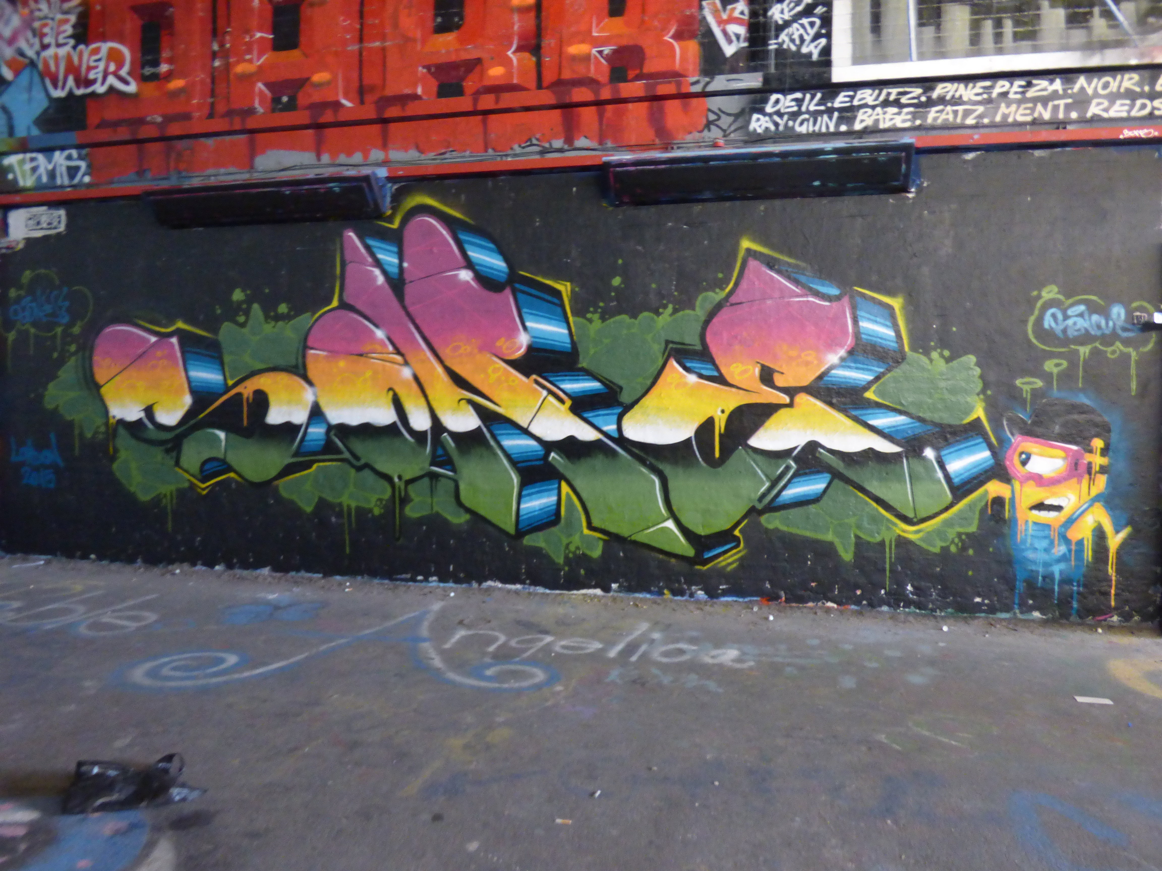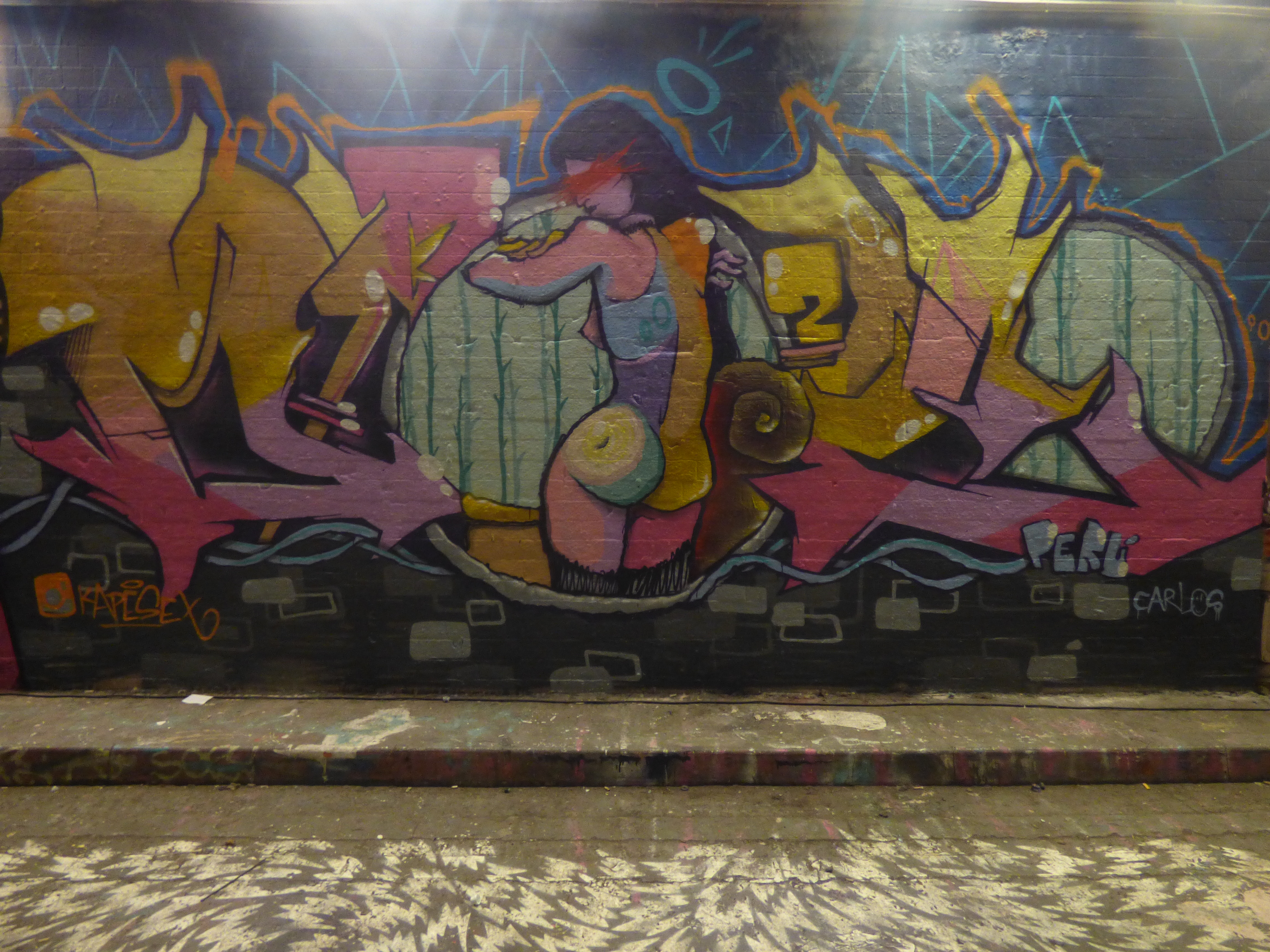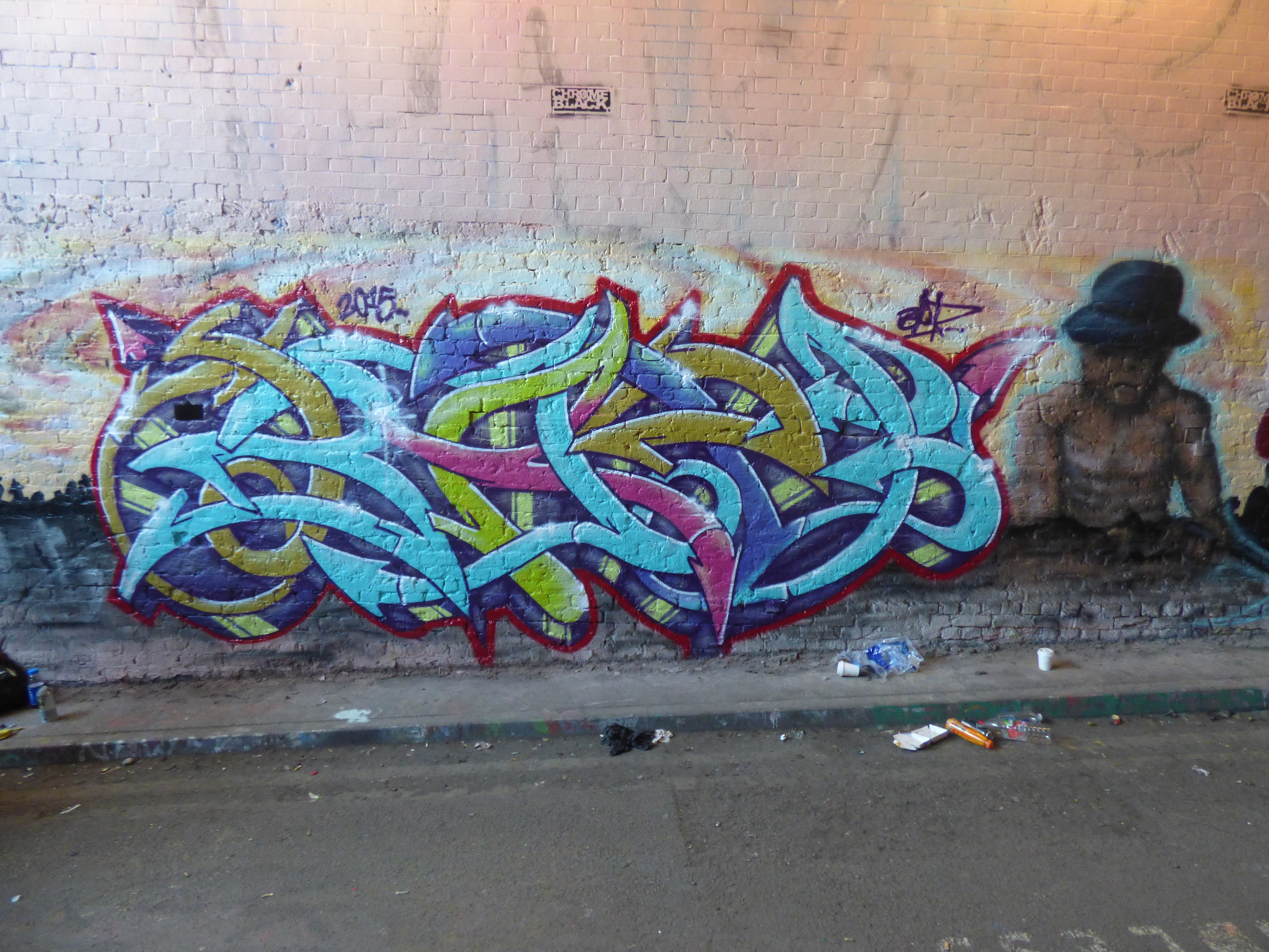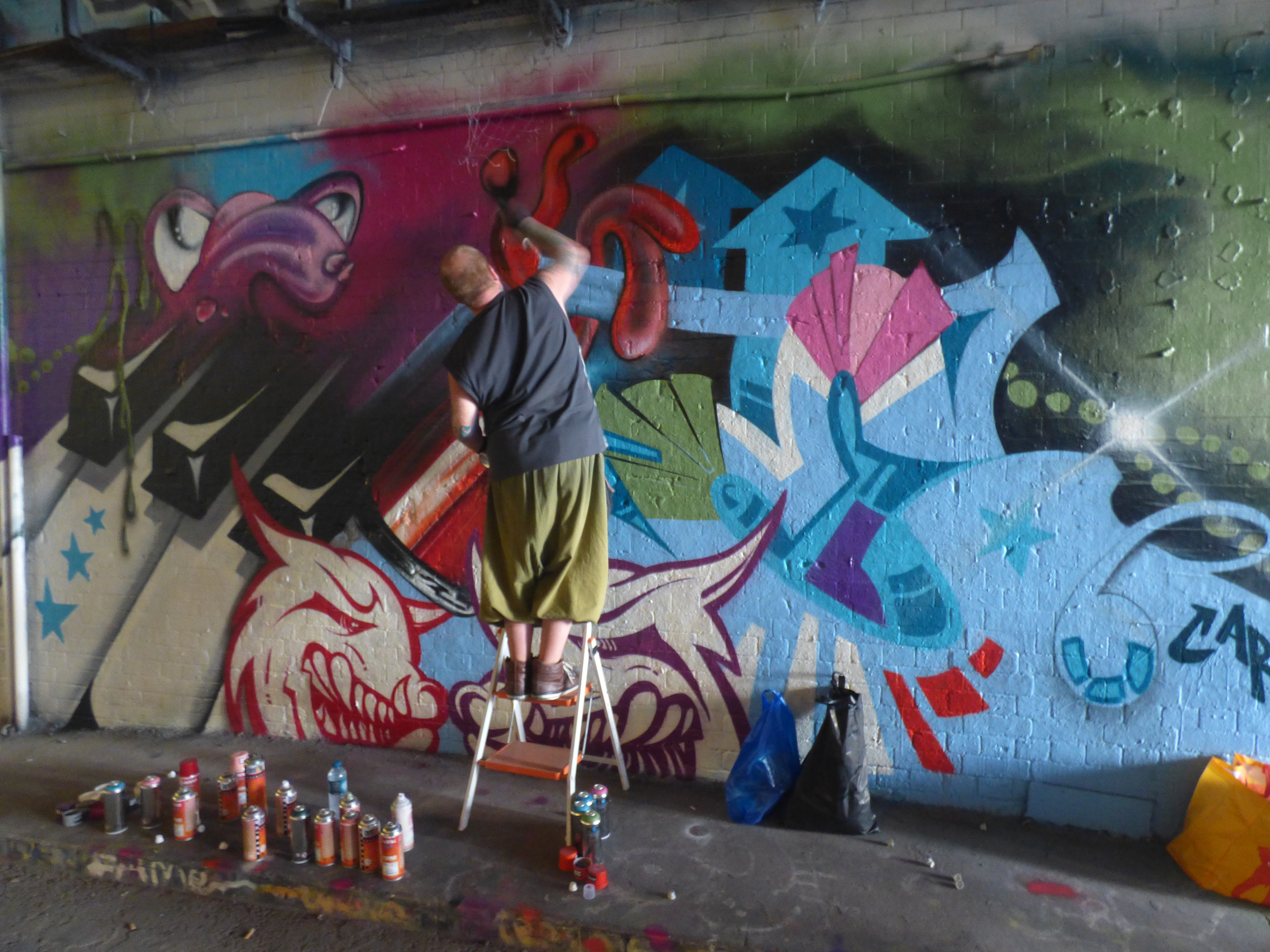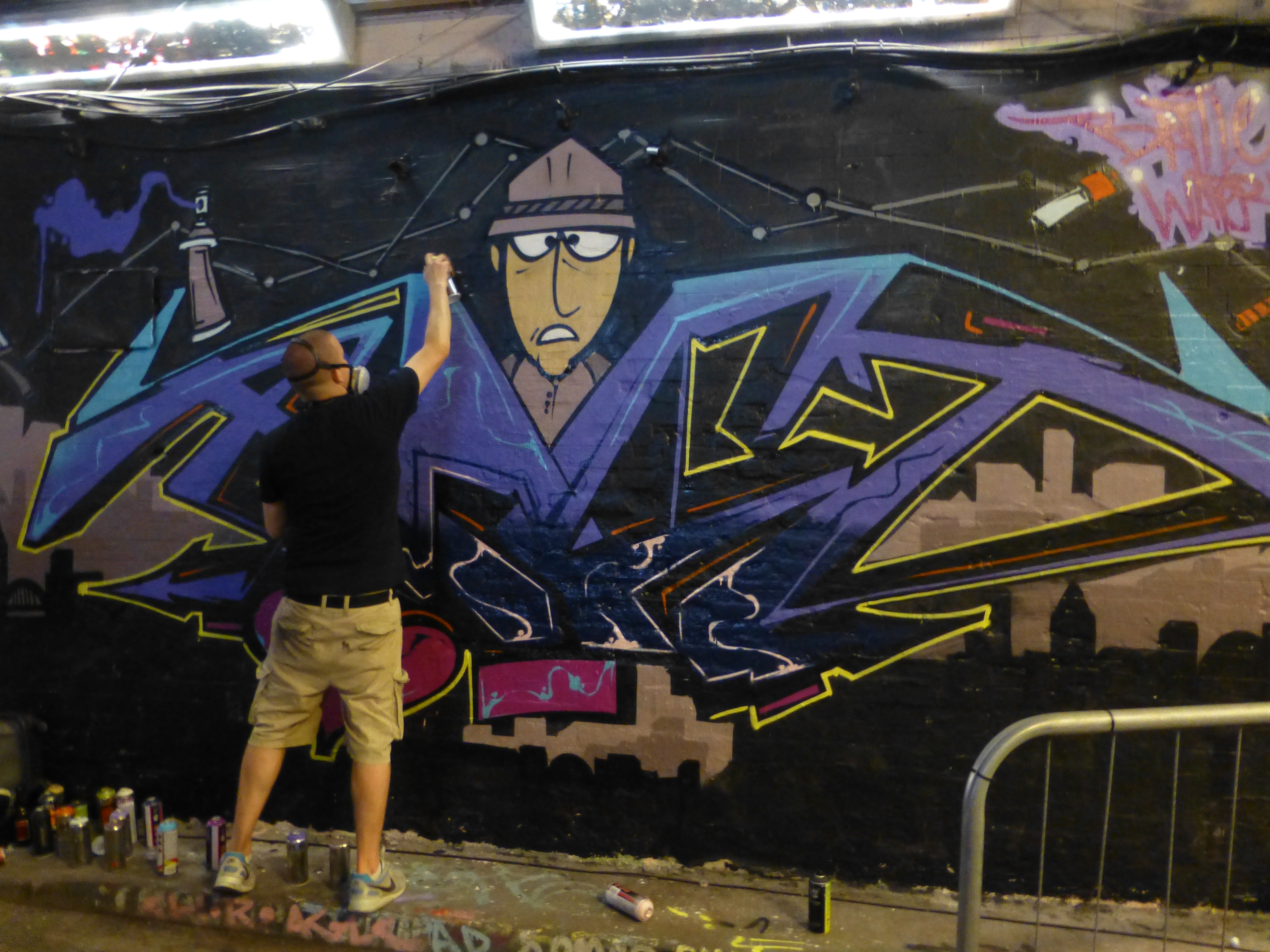 The event was certainly a success, set to the booming music and a relentless stream of passers-by packing the tunnel out. with thousands of people streaming by throughout the event, there was also a section of walls in the open end of the tunnel made available for kids workshops and painting, not to mention the forty or so artists working for the first prize. A great job and event put on by Chrome & Black.