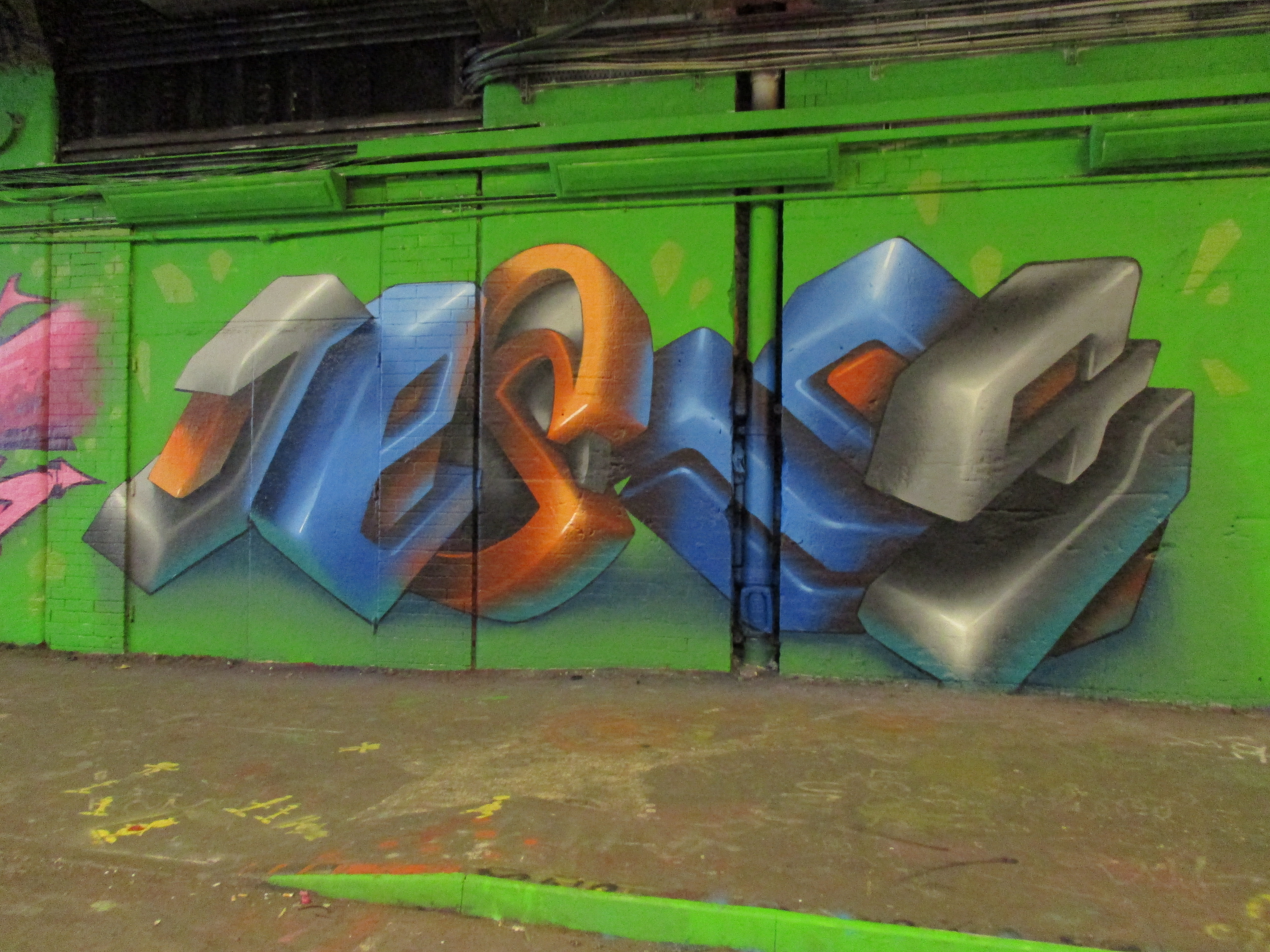 On Thursday in the Leake Street tunnel, 3D Graffiti Artist Lovepusher laid out his latest work. We don’t generally focus on Graffiti as much, however for us here Lovepusher is certainly one of the most impressive Graffiti Writers at work. Having began painting in 1995 and since then has transitioned from painting a more traditional urban form of typography to his current futuristic 3D creations. In the process developing his own glowing style of painting using light, shade and perspective in order to make his works pop off the walls on which they adorn. What is also noticeable is that Lovepusher is an exception to the general rule of Graffiti Writers writing their Artist name as their signature tag, however Lovepusher’s tag is Jesus, which as a subject certainly works with the glowing effect his works are imbued with.