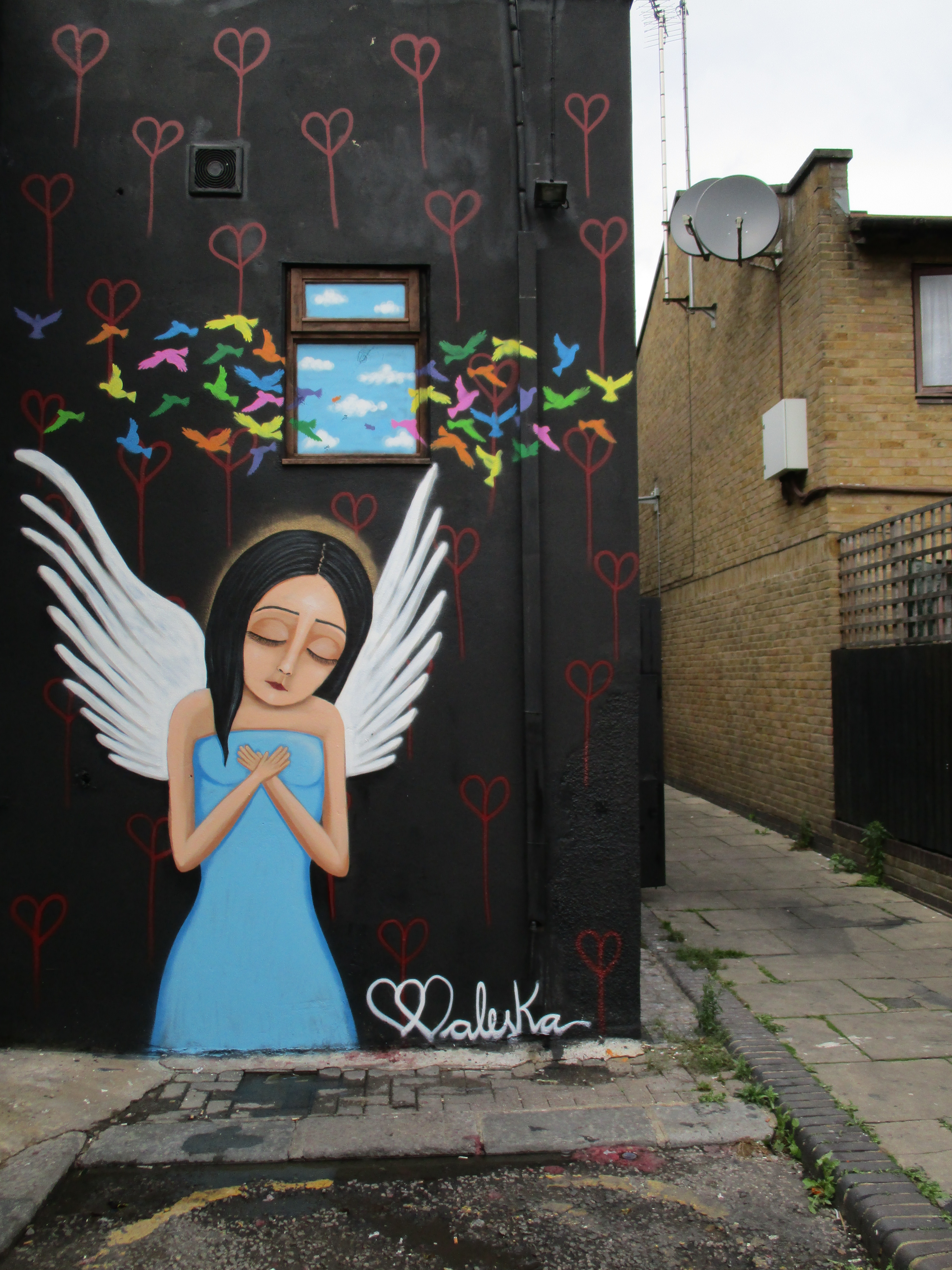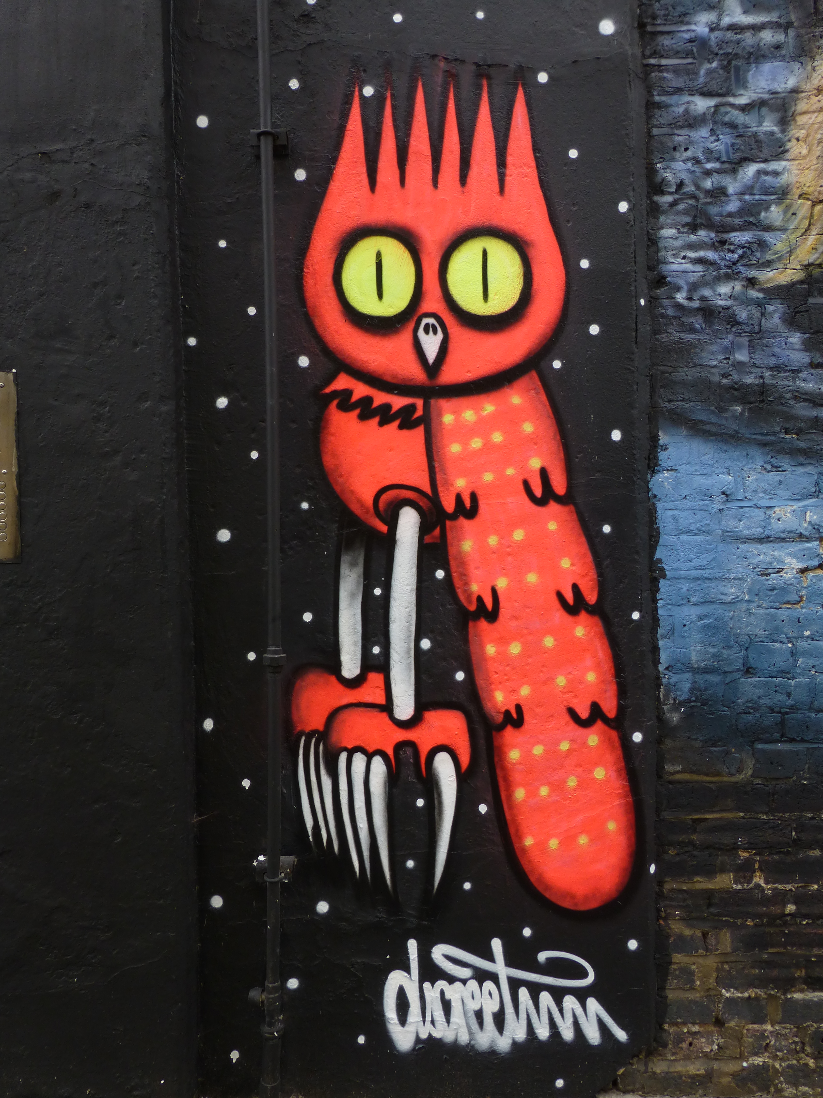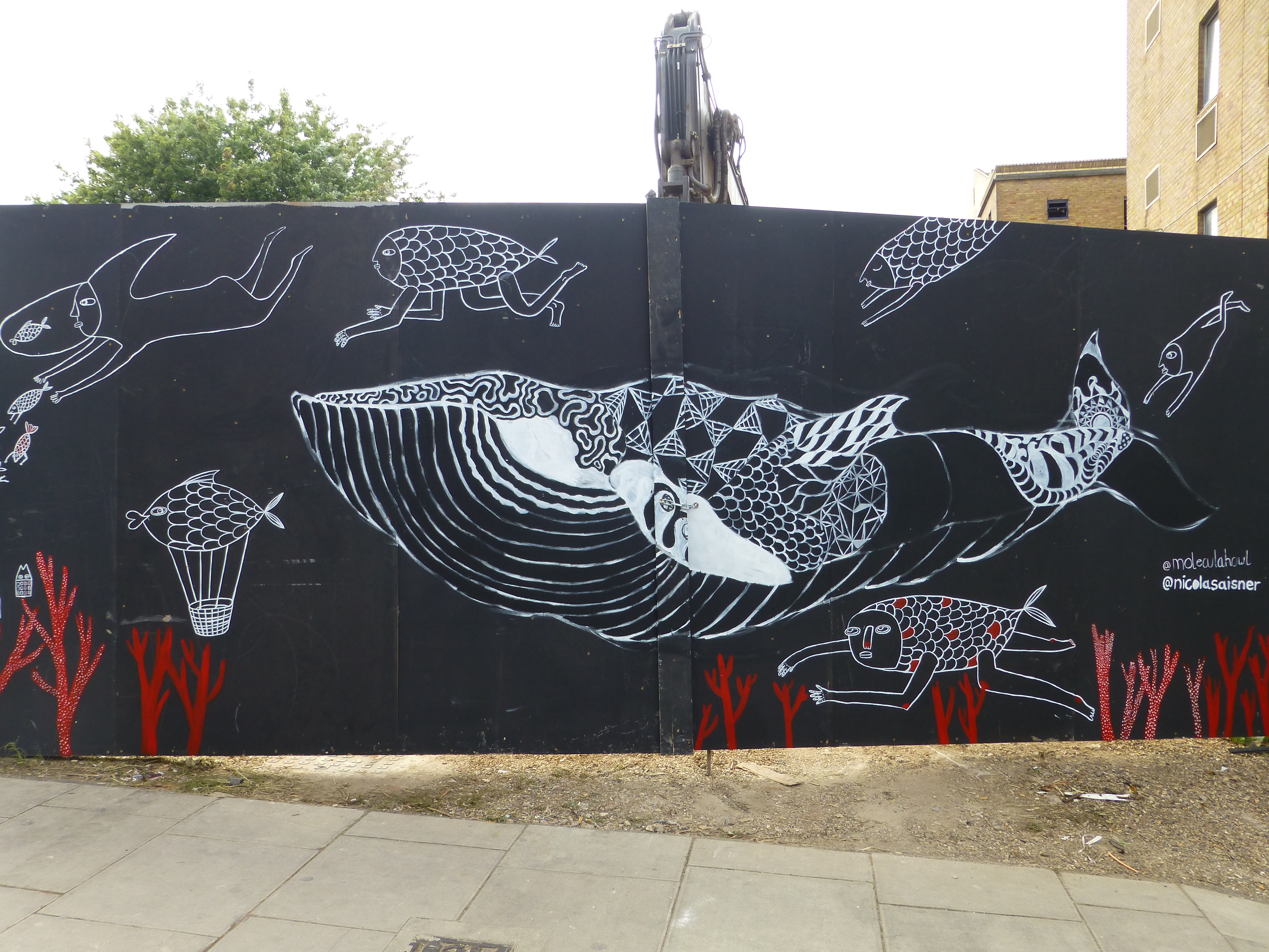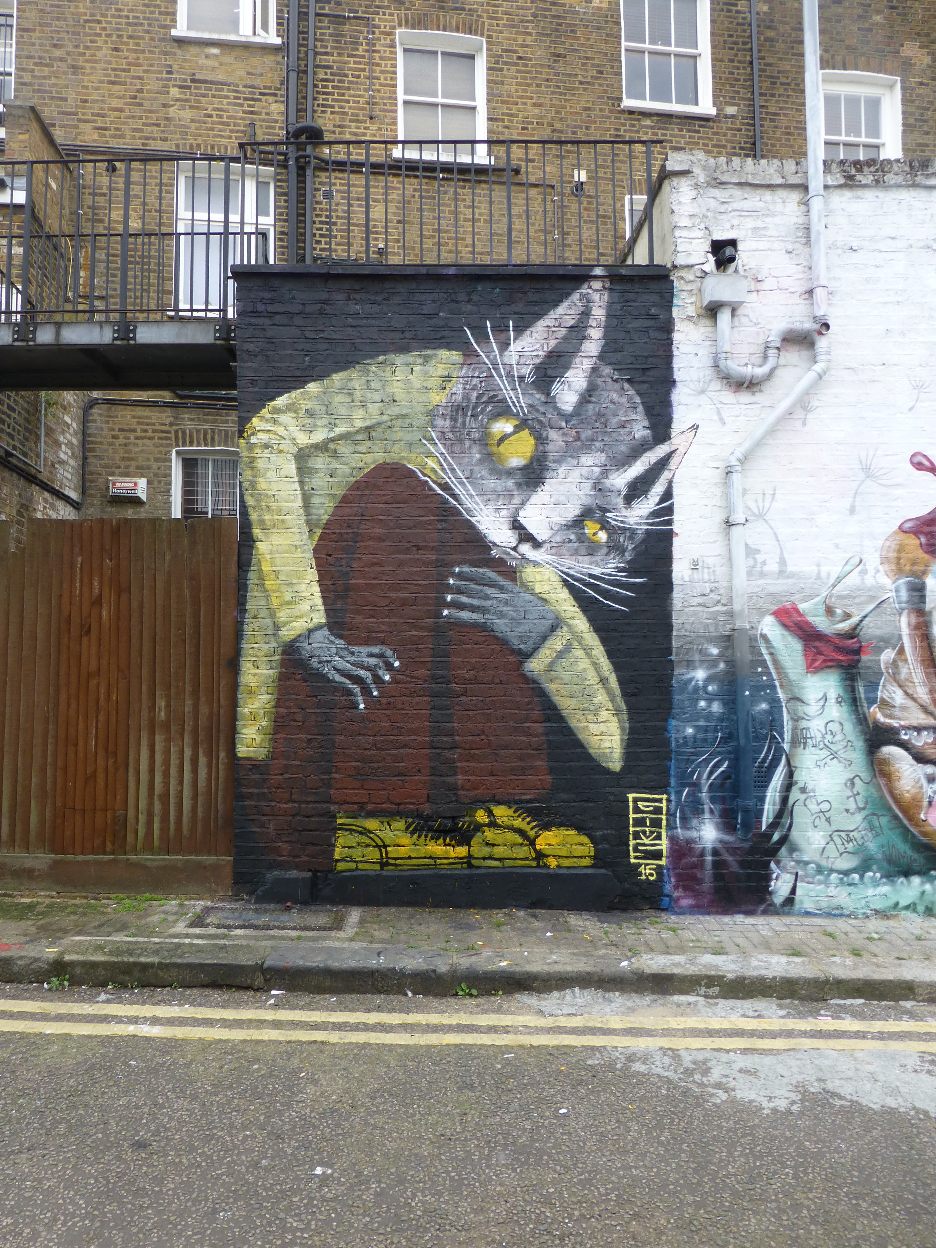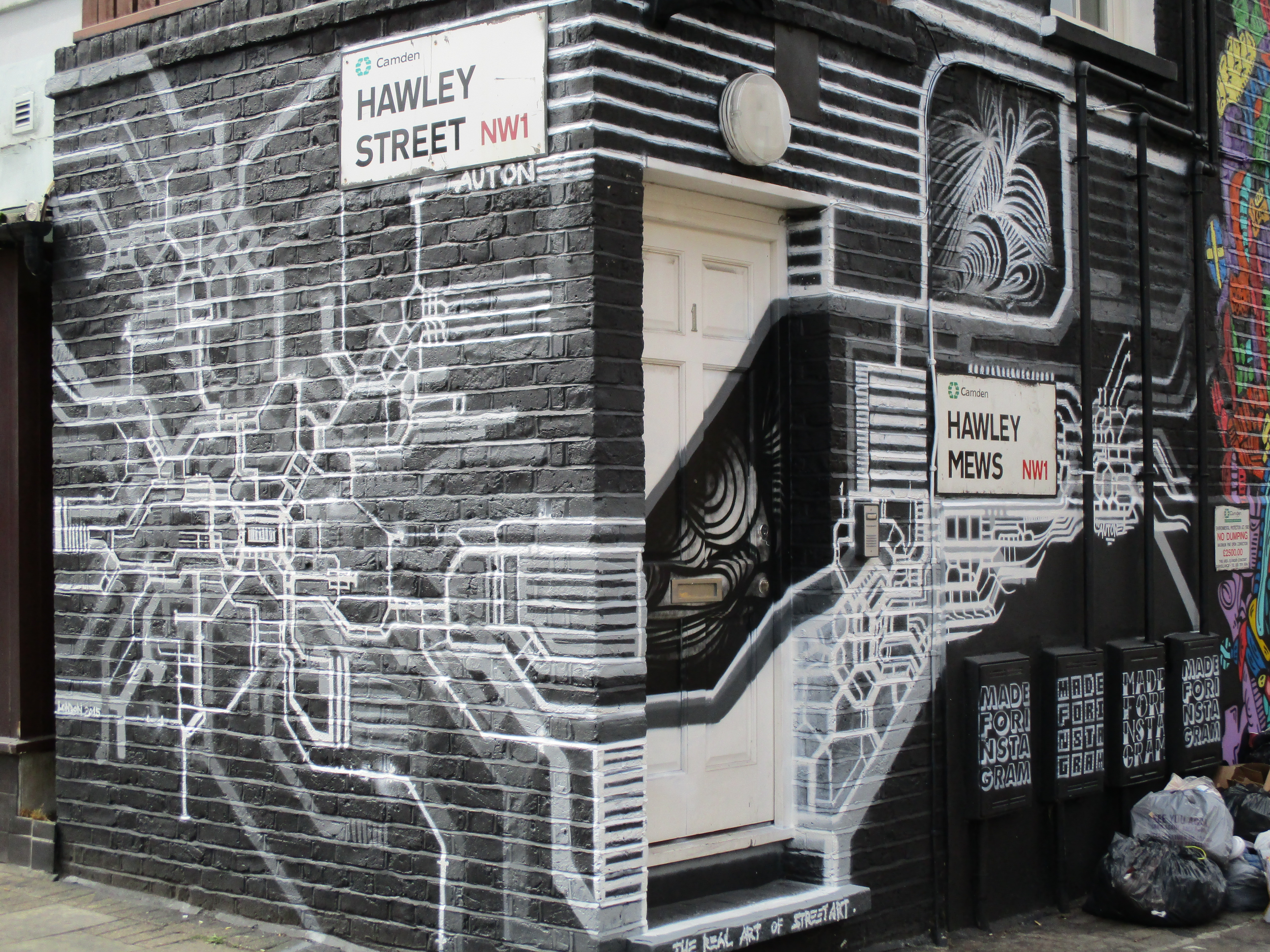 Well it’s been another month in Camden Town, and more so than any calendar month this year the area has been adorned with many fresh new artworks, predominantly from the superb work of The Real Art Of Street Art, with numerous pieces being jointly organised with Pigment, regarding the works by Brazilian artists, Onio, Waleska Nomura and Goms. All pieces here were created with support from The Real Art Of Street Art, except the Roes work which was created with support from The Hidden Streets Of London & Monoprixx, and the pieces from Noriaki featured here.