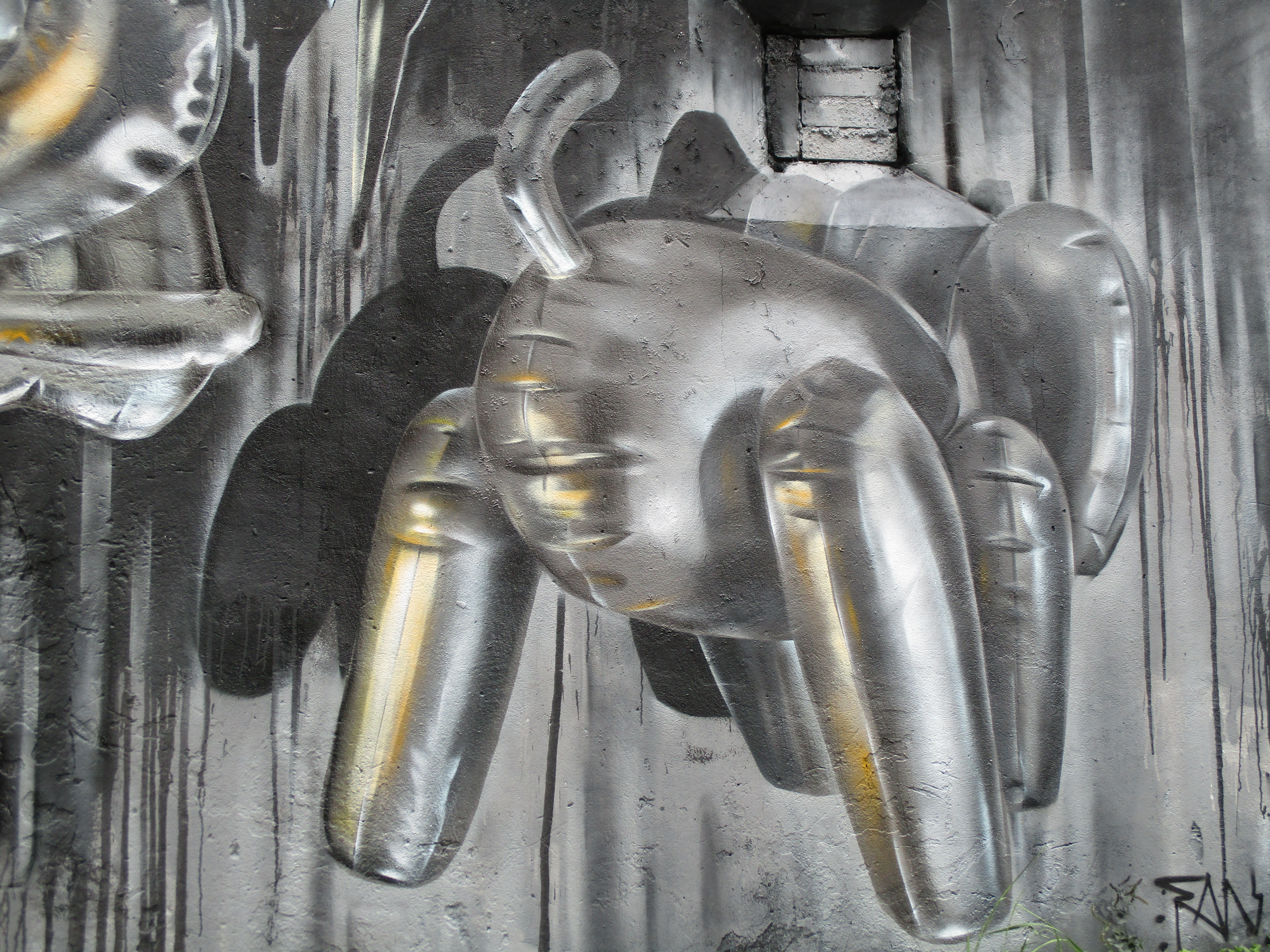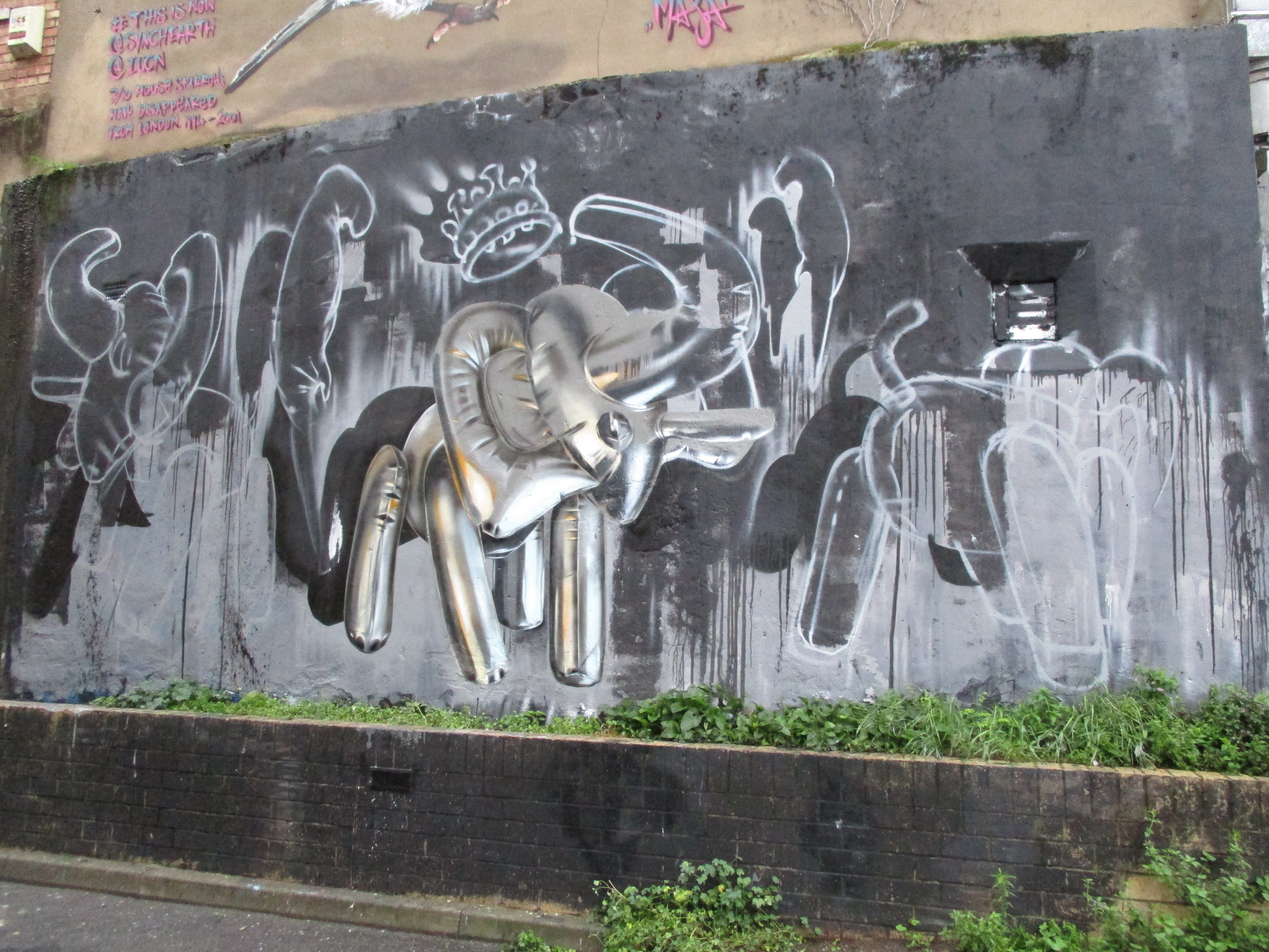 Earlier this week one of our favourite Street Artists Fanakapan was at work around Brick Lane, painting his newest and large scale mural, culminating in a good couple of days work spread out around the near constant torrential downpour that befell London this week.
