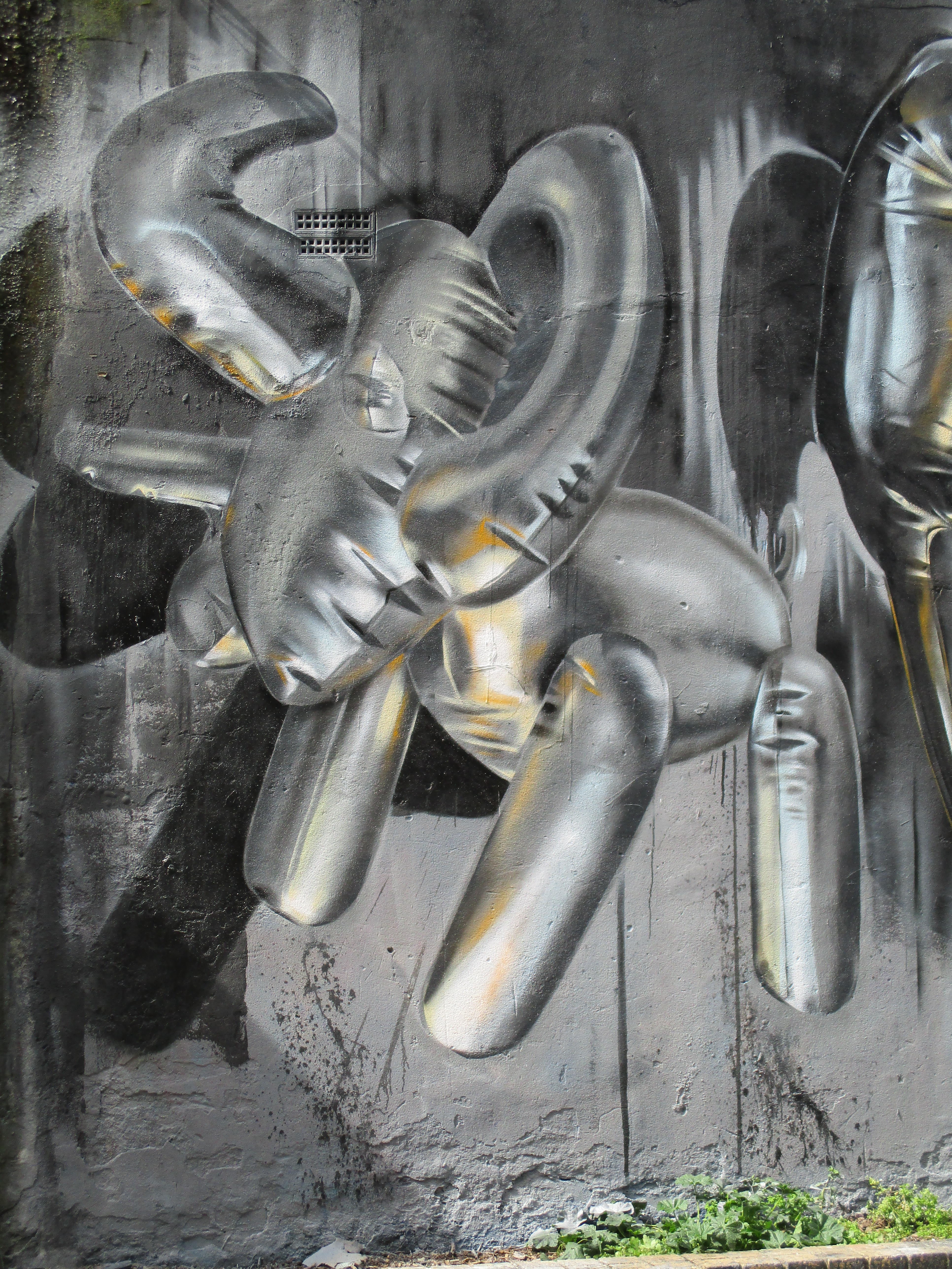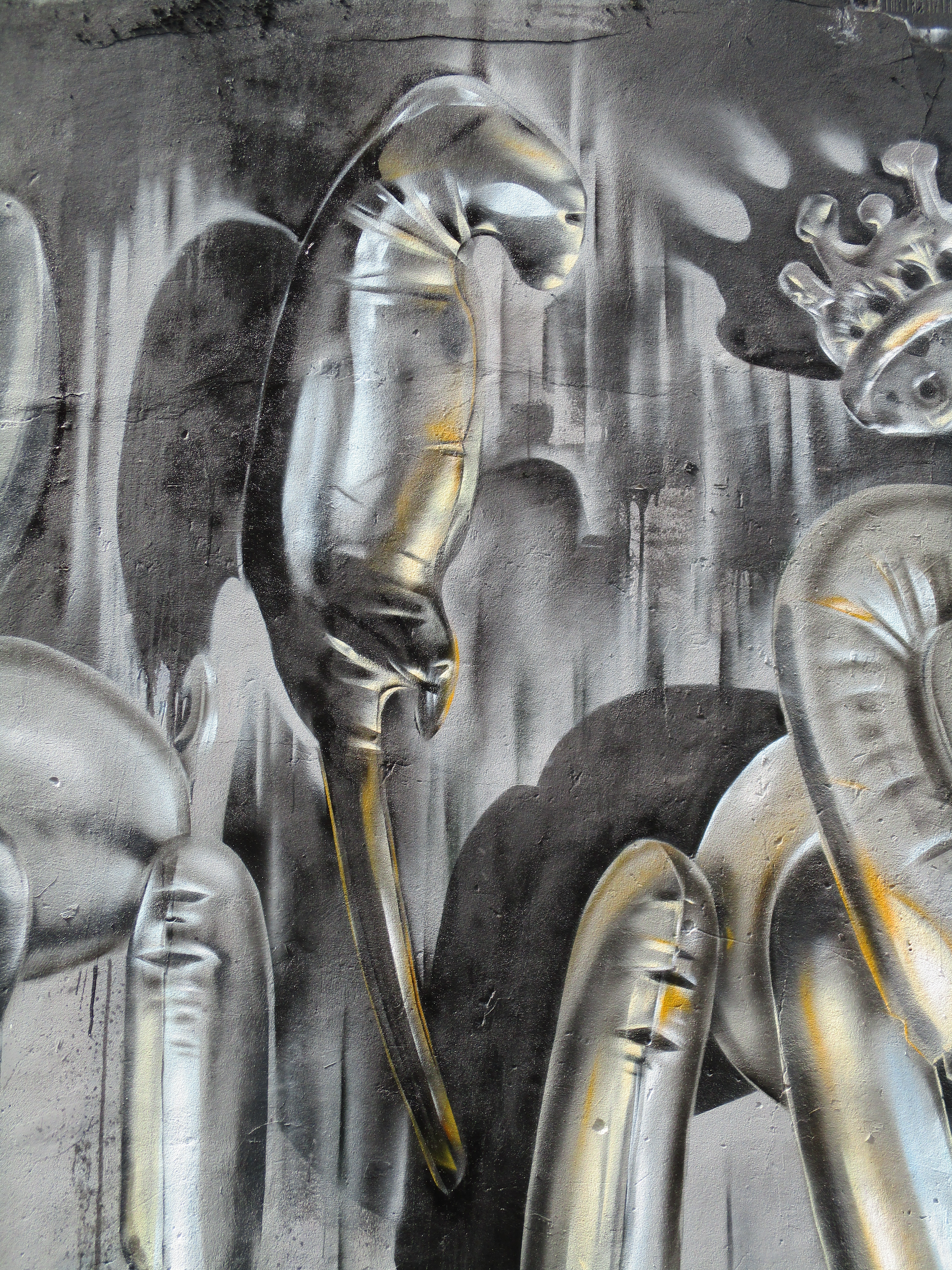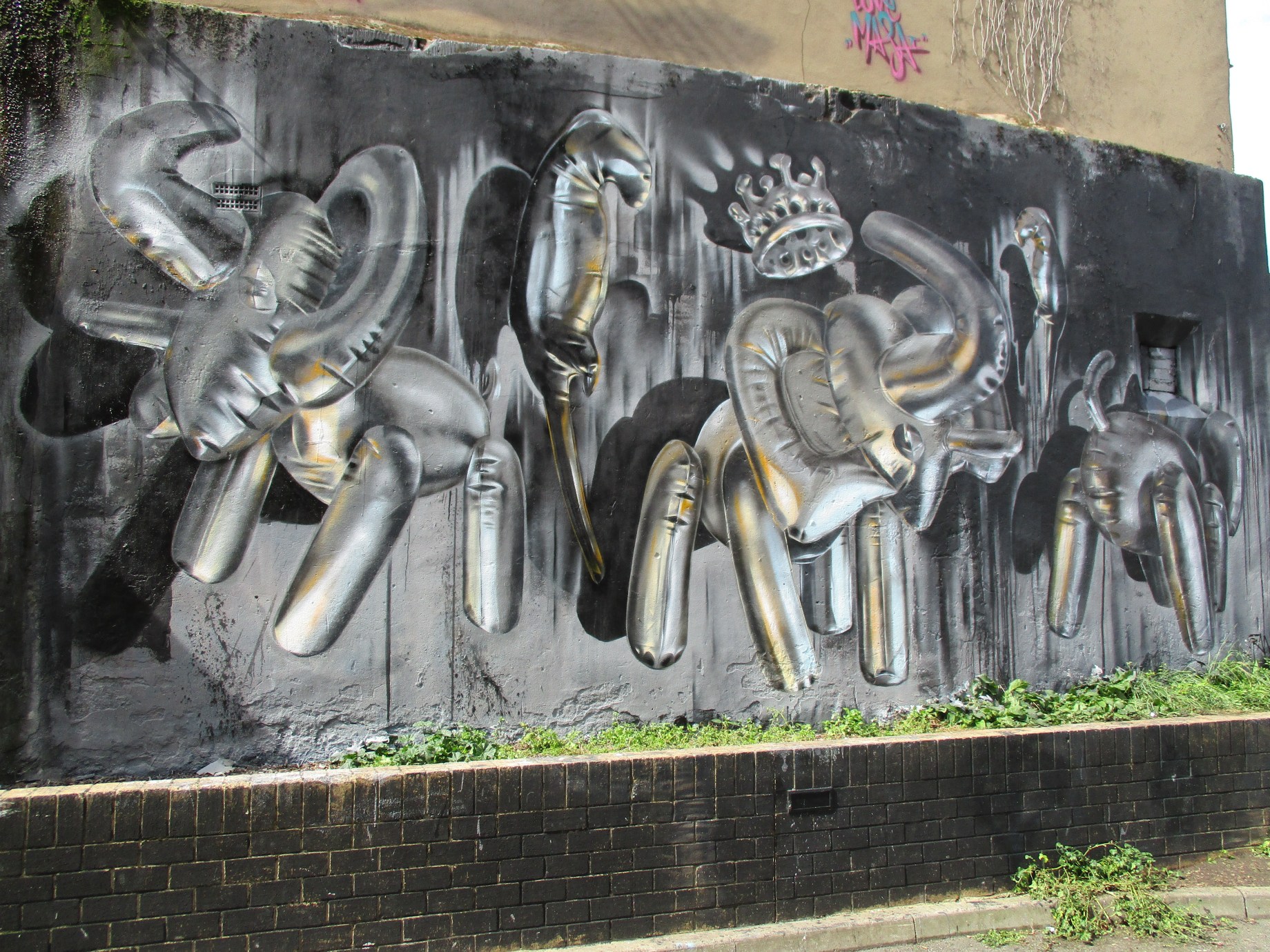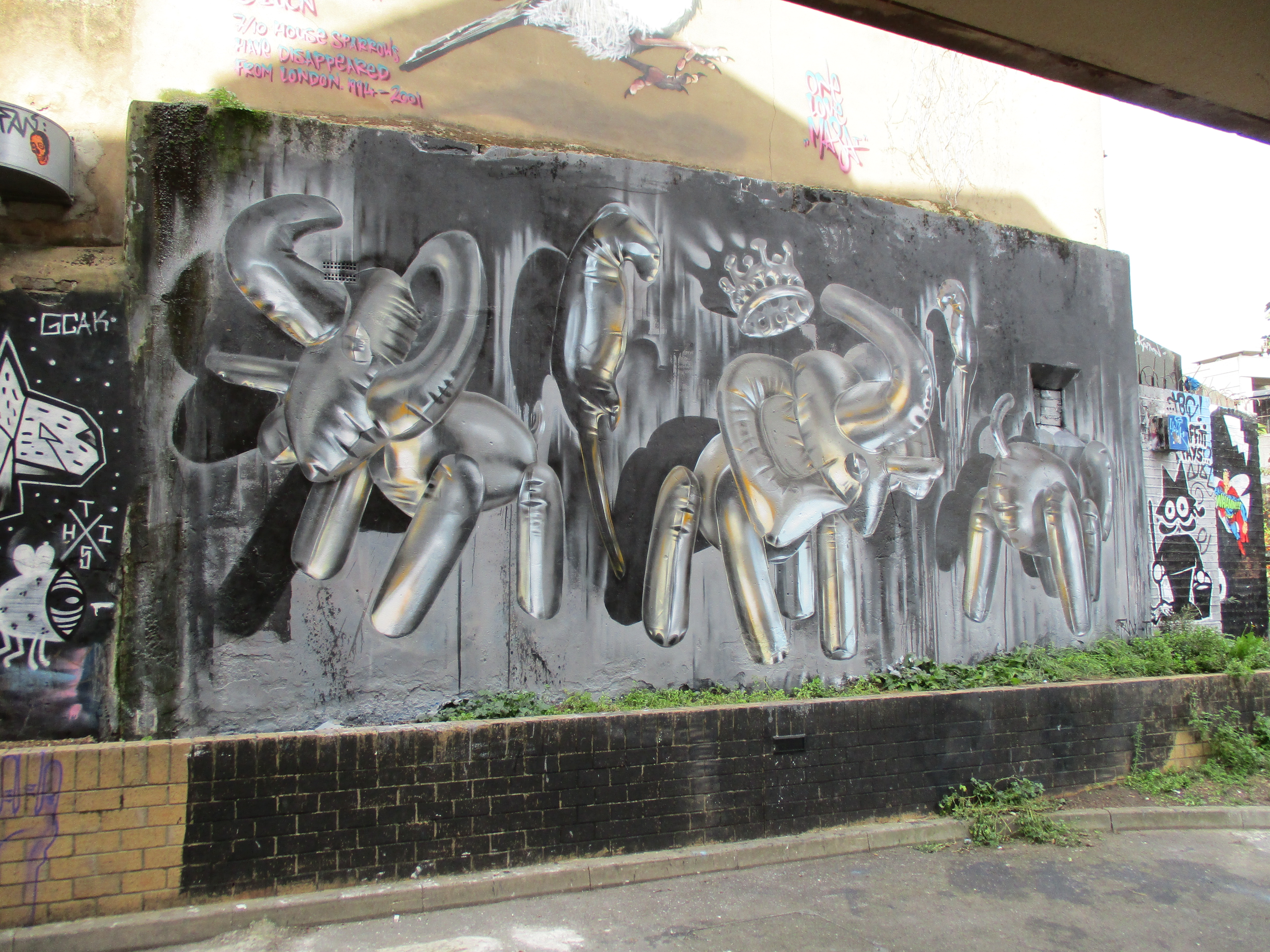 Further advancing his change of direction, moving into a more monochrome approach to his helium balloon creations over the last six or so months, the fun work depicts a trio of elephants, all in different stances and facing different directions, offering the maximum opportunity to demonstrate his superb use of shadow and reflective light highlights to make the work just pop of the wall. The elephants are accompanied by a floating crown in the centre along with the addition of two superb helium balloon parrots.