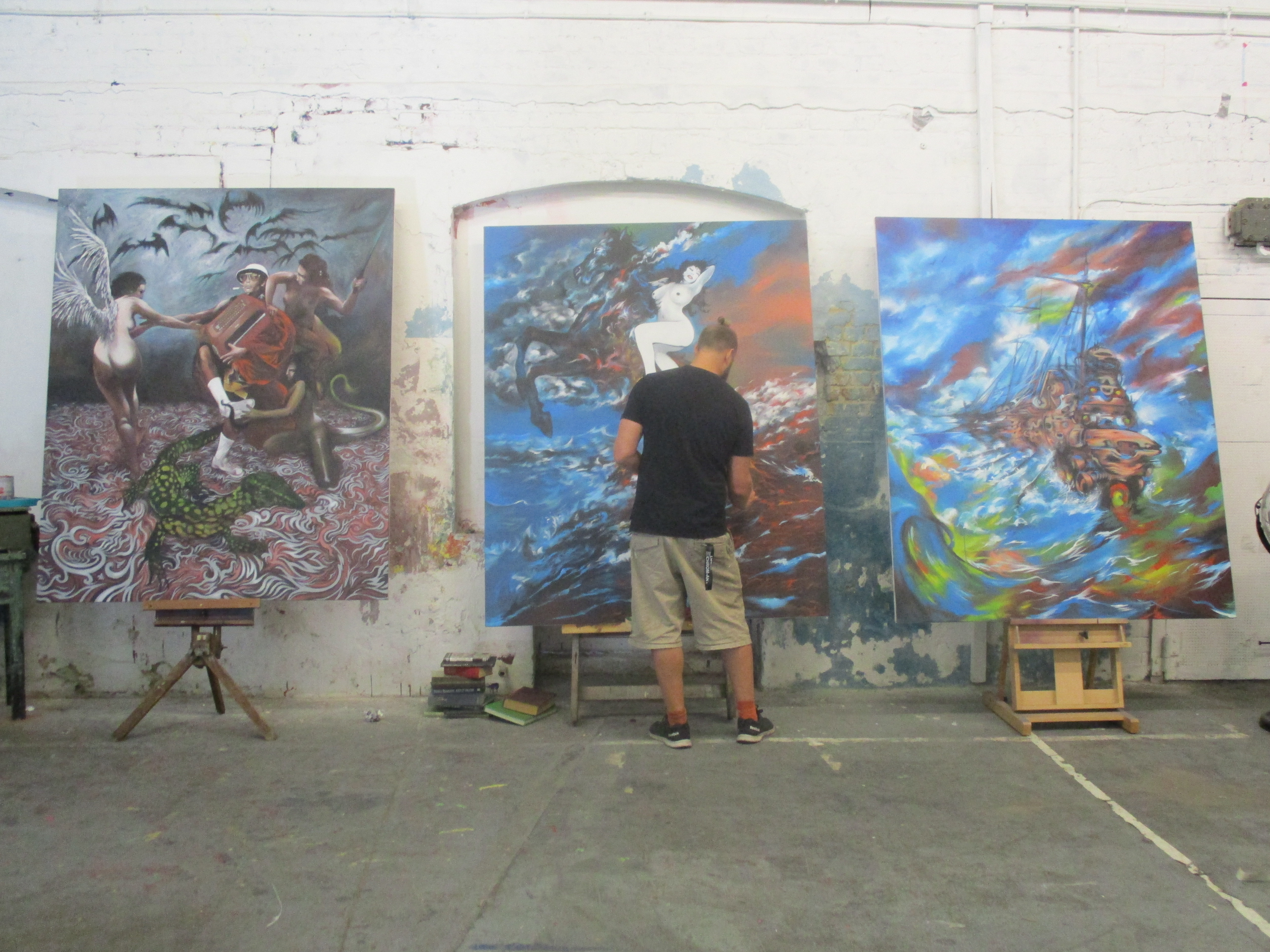 Jim Vision at work on one of his three works-in-progress on display at the event.