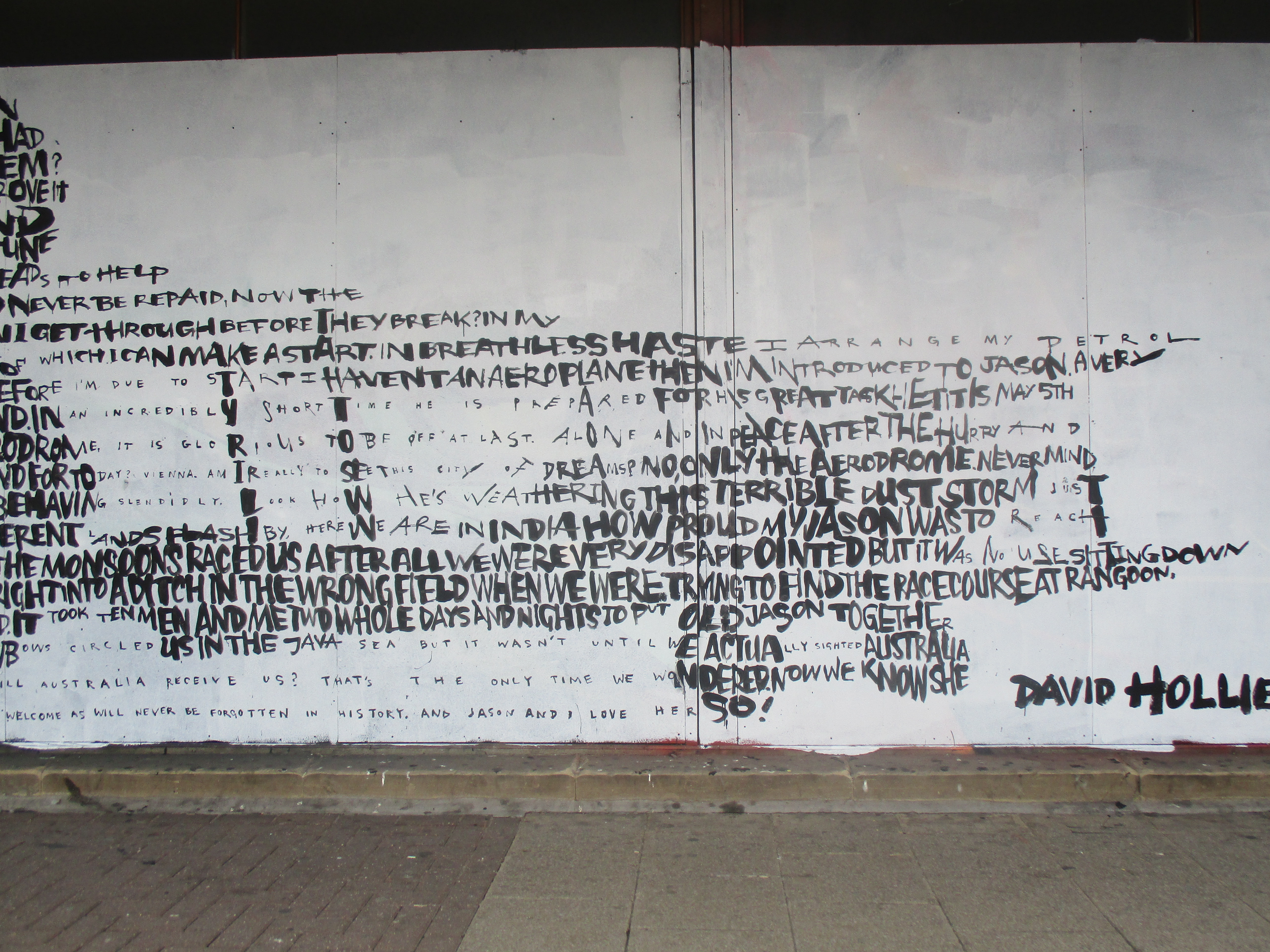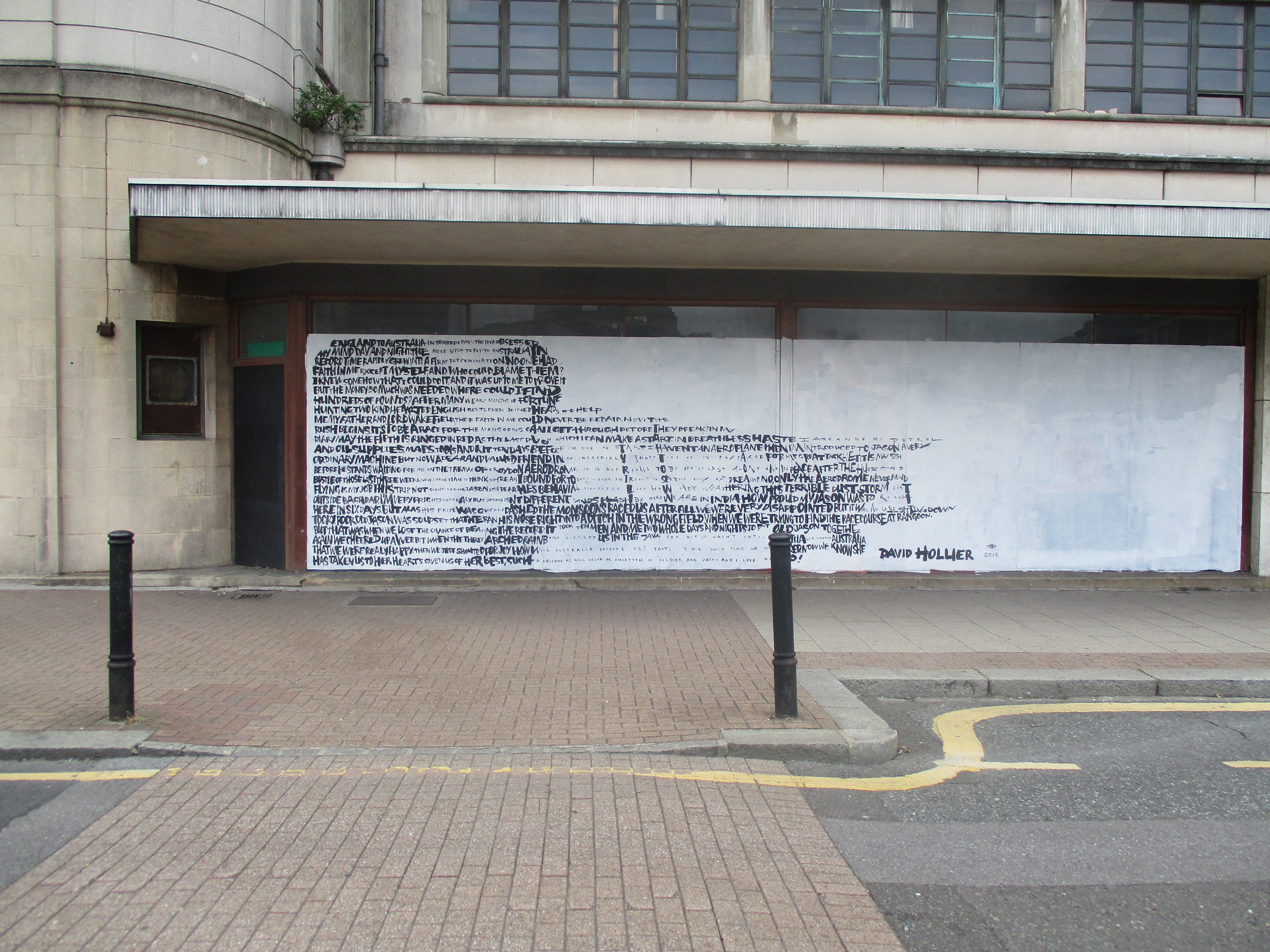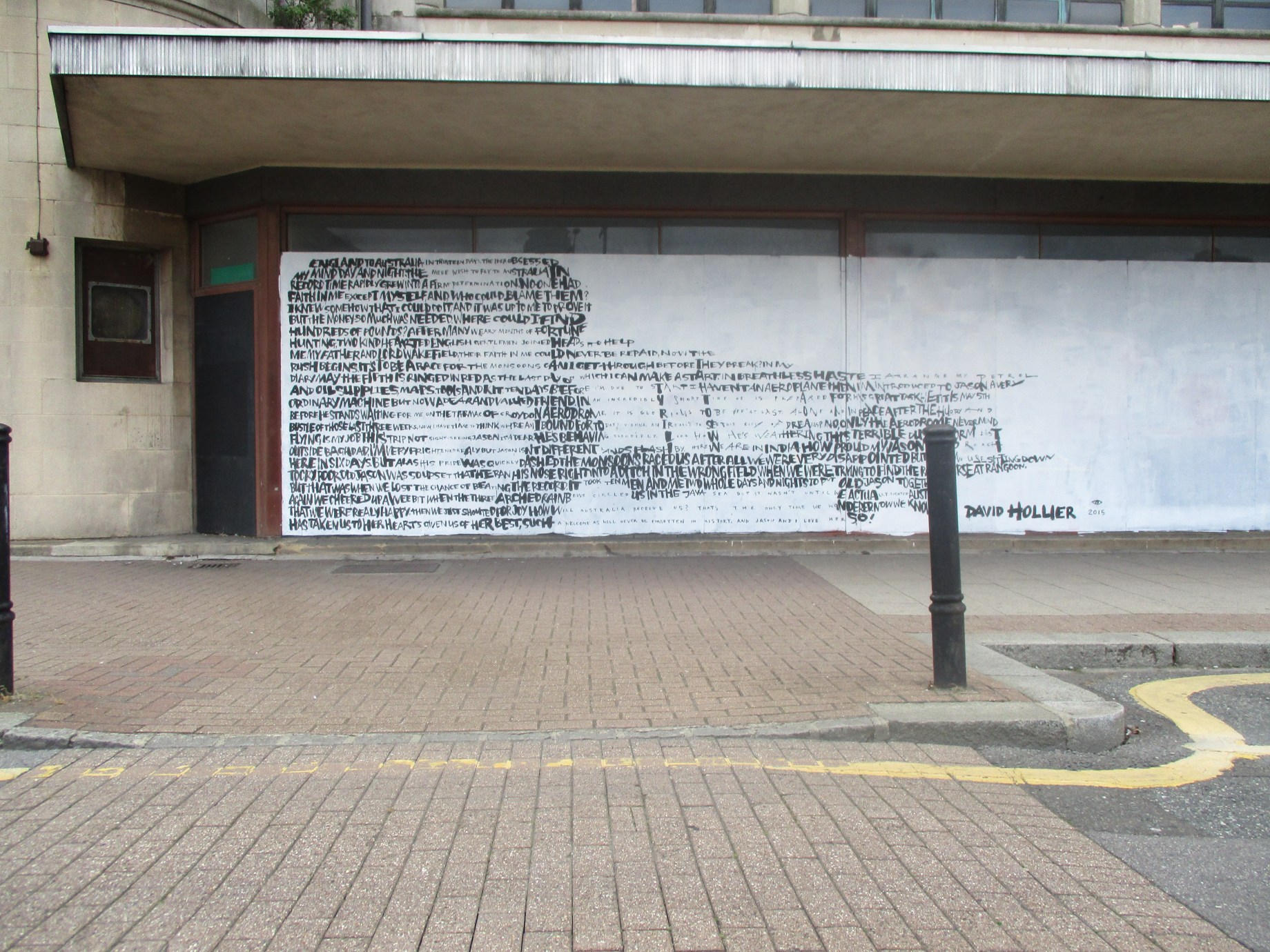 Over the last couple of weeks London was treated to a visit from English born, but US based Street Artist David Hollier, returning to his native country and whilst over laid out two works in the capital. David Hollier’s distinctive works feature portraits of notable people in popular culture and history made up through words, often with relevance to the chosen subject. The first and more impressive work of the two was laid out in Croydon’s Arts Quarter and features a depiction of Amy Johnson, whilst the second work was hit up in Shoreditch and features a portrait of Michael Jackson.