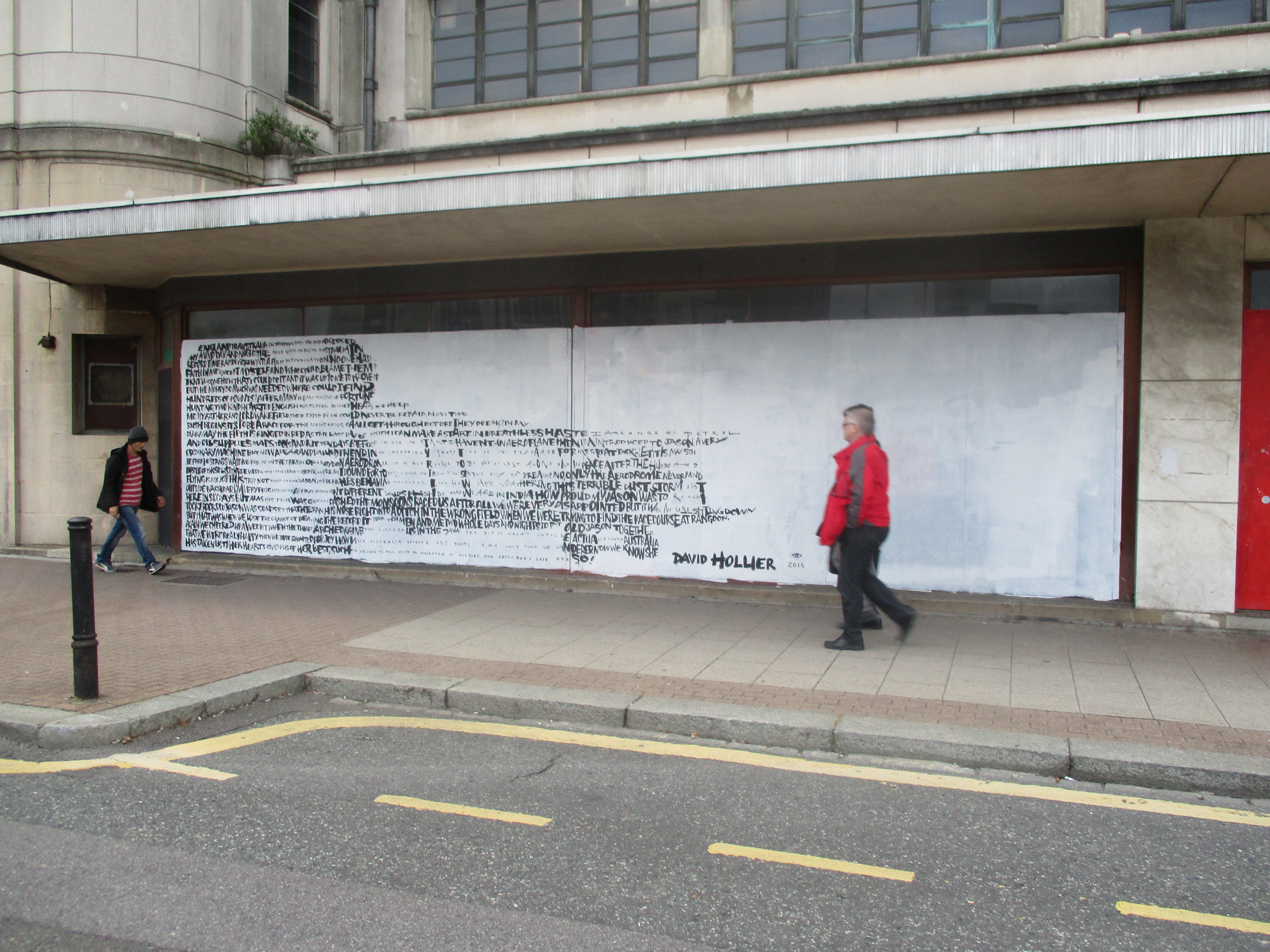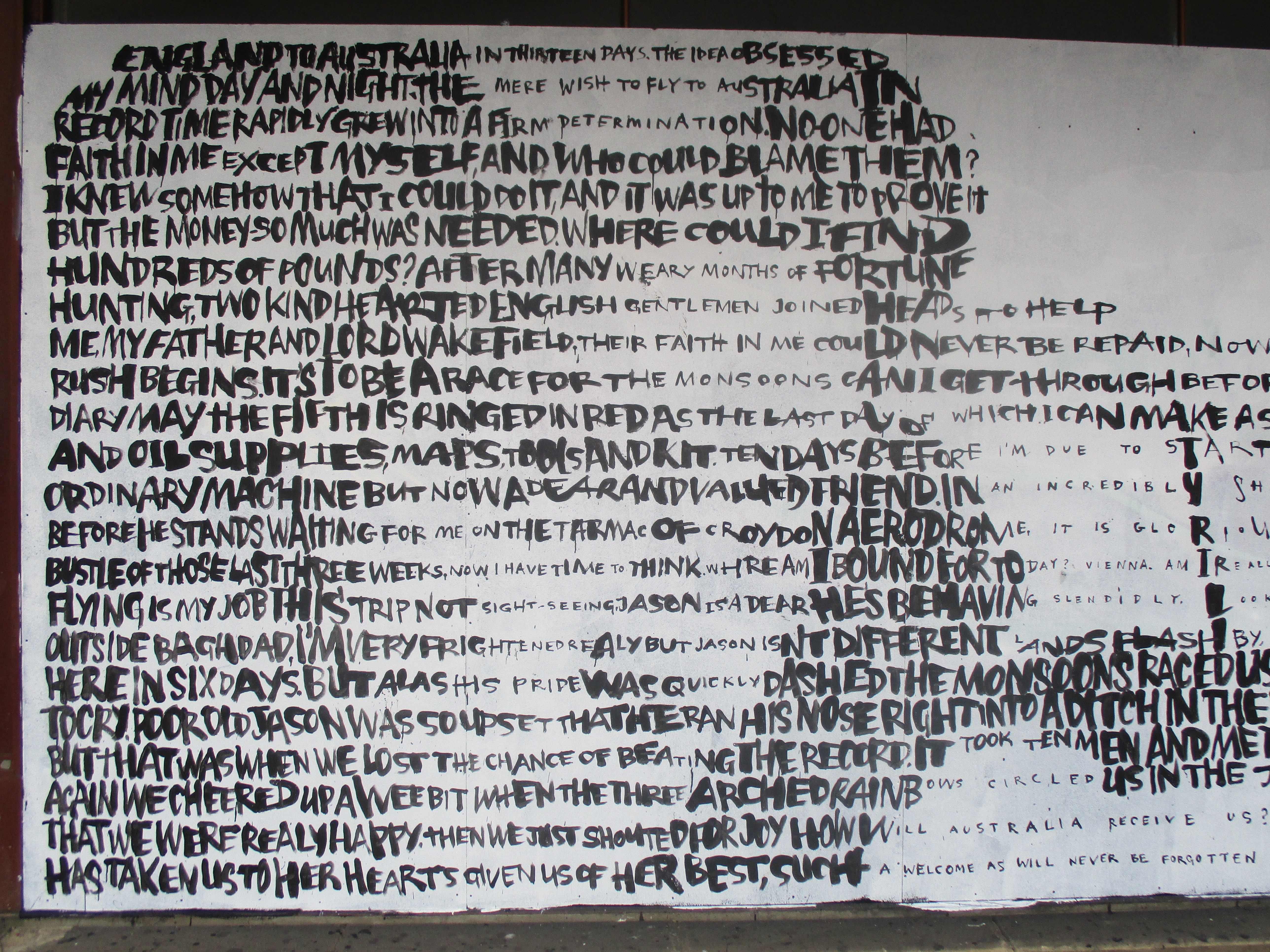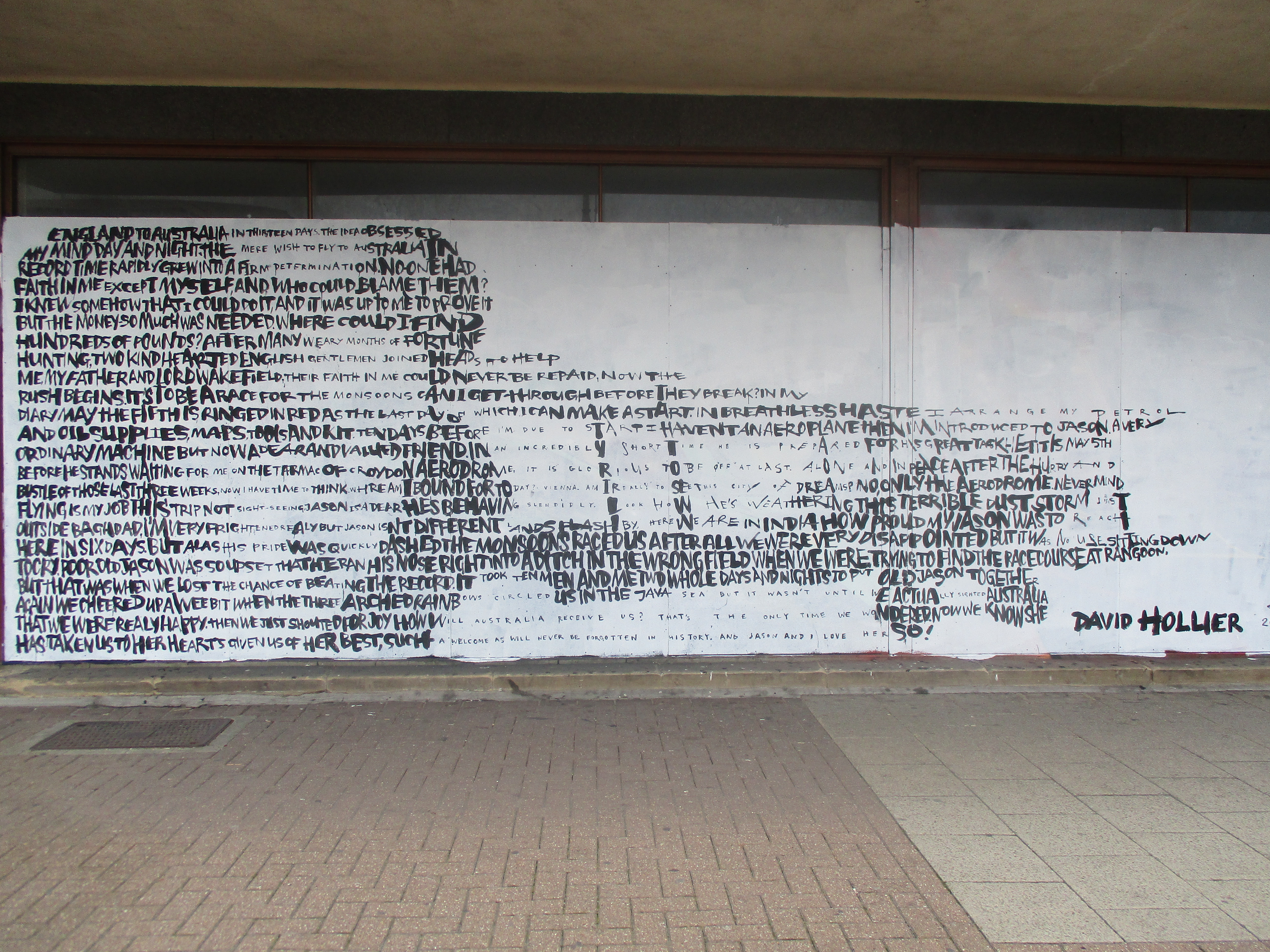 Over the last couple of weeks London was treated to a visit from English born, but US based Street Artist David Hollier, returning to his native country and whilst over laid out two works in the capital. David Hollier’s distinctive works feature portraits of notable people in popular culture and history made up through words, often with relevance to the chosen subject. The first and more impressive work of the two was laid out in Croydon’s Arts Quarter and features a depiction of Amy Johnson, whilst the second work was hit up in Shoreditch and features a portrait of Michael Jackson.