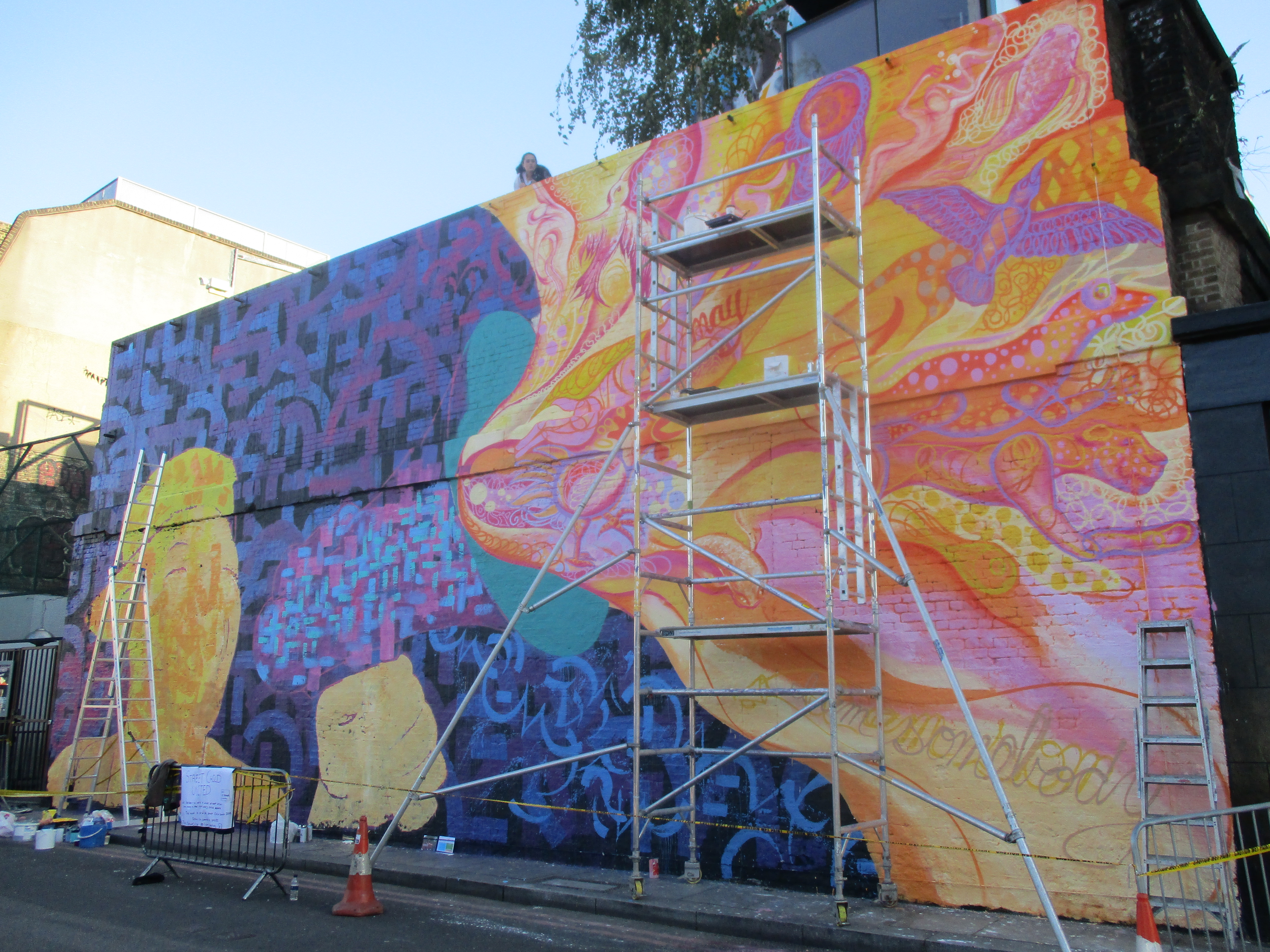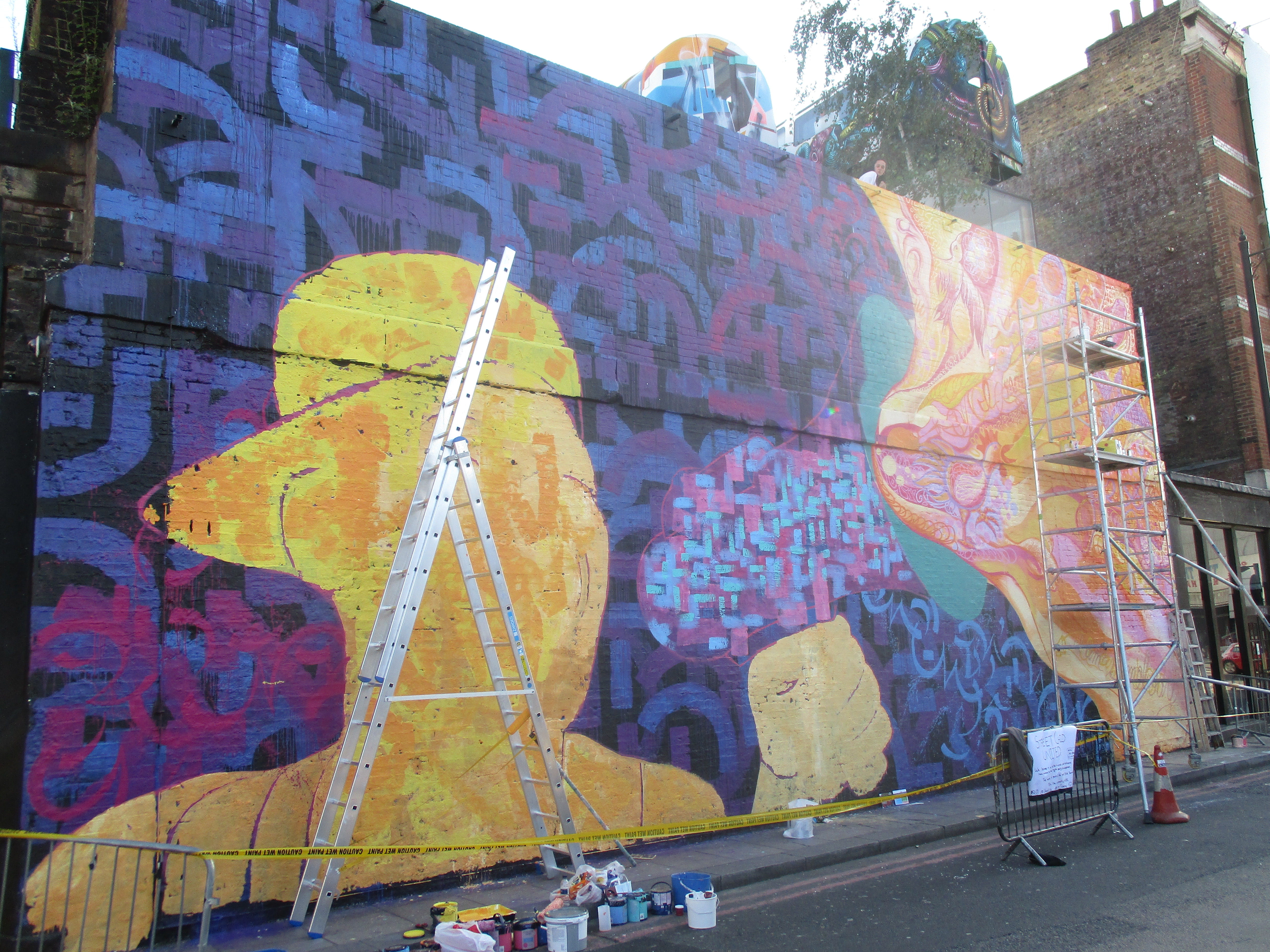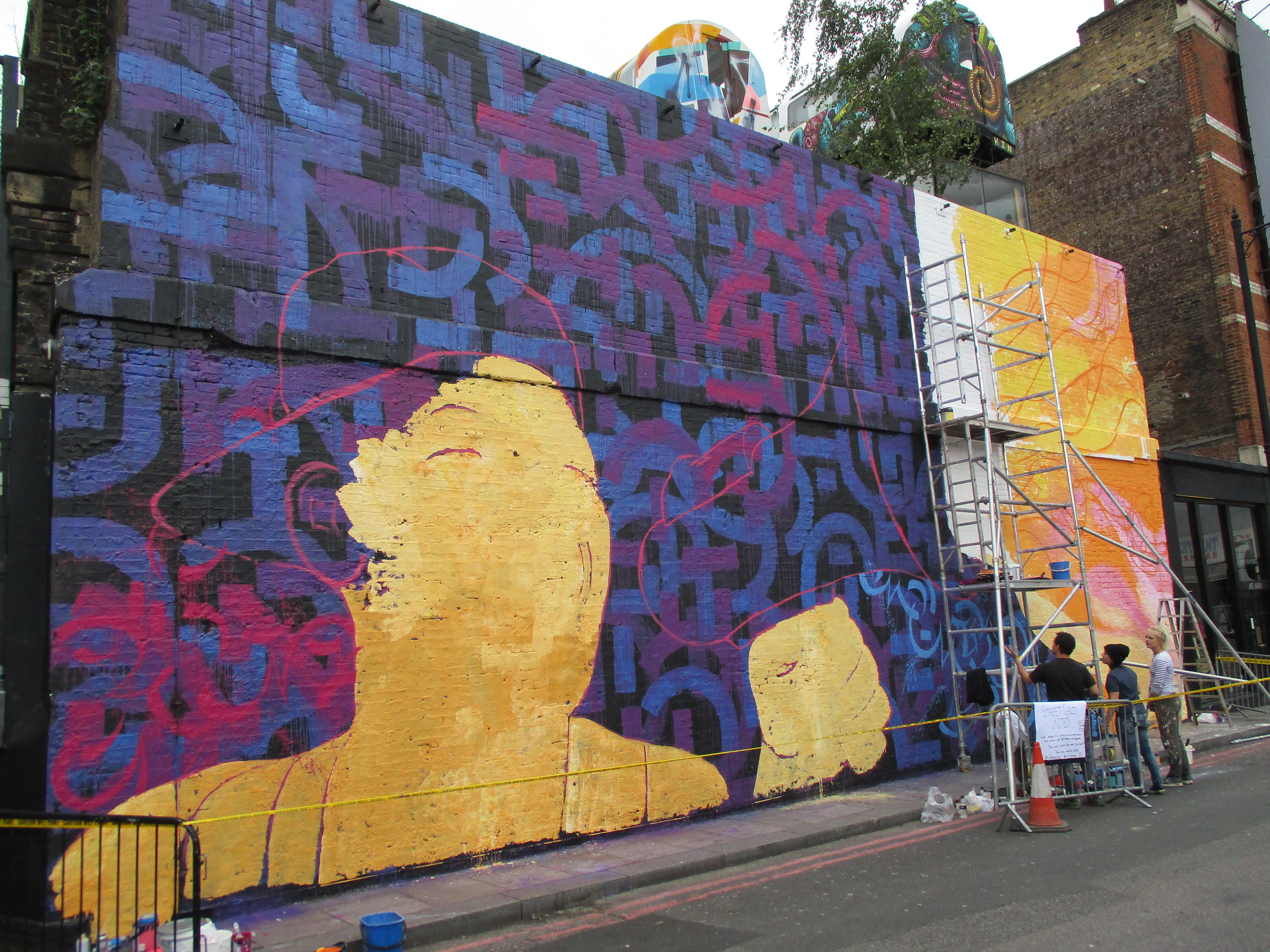 Well the Village Underground in Shoreditch, a wall that is always offering something new, exciting and often from artists that previously haven’t painted in London has received over the last several days its latest fresh coat of paint from US artist Joel Bergner, and what an unbelievably incredible job he has done with it indeed. This piece took some four days to create, in this time Joel Artista had two helpers in the form of Bec Dennison and Meghan O’Malley and the work has been created for Street Child United who provide a global platform for street children to be heard so that they receive the protection, support and opportunities all children deserve.