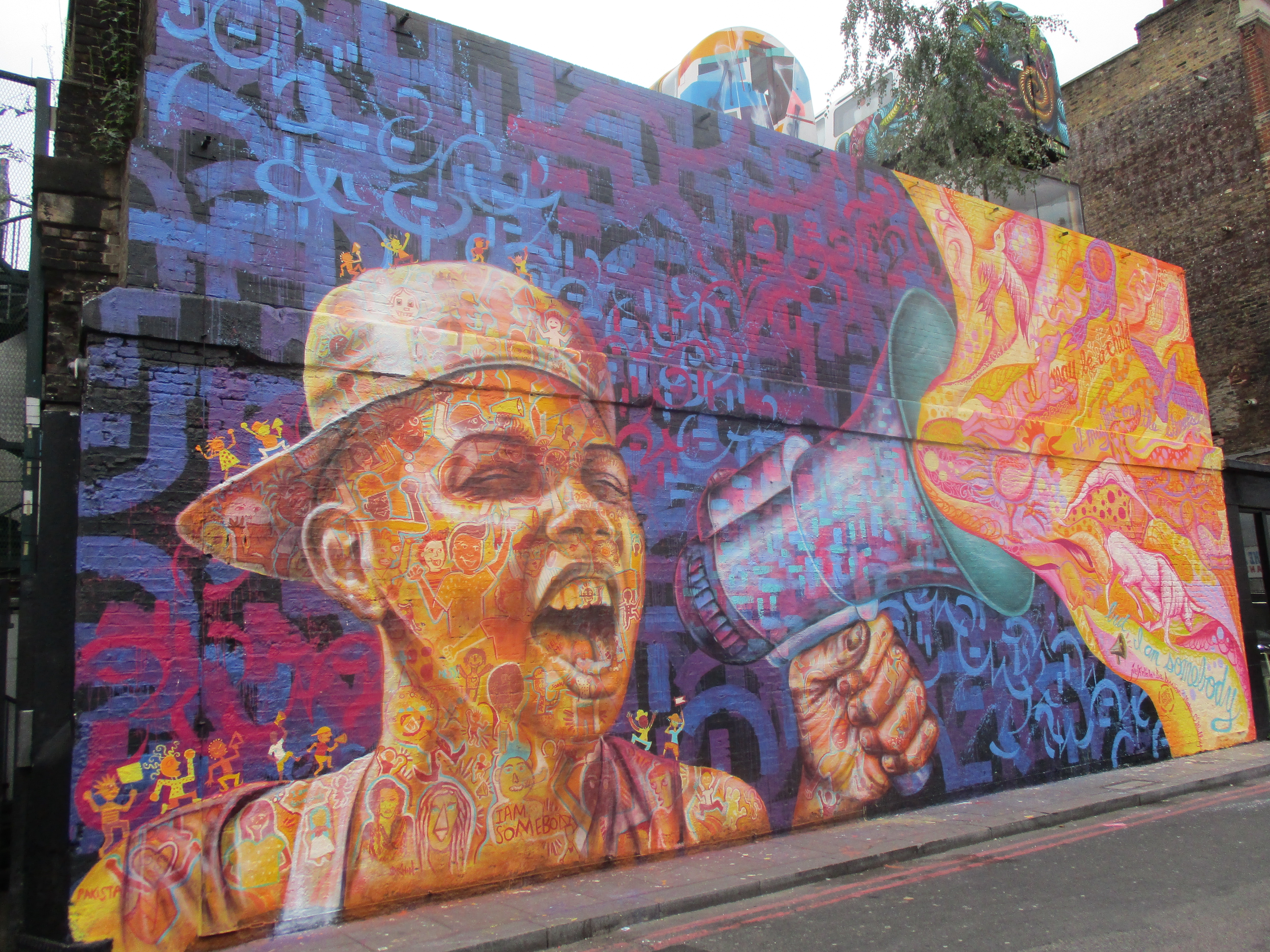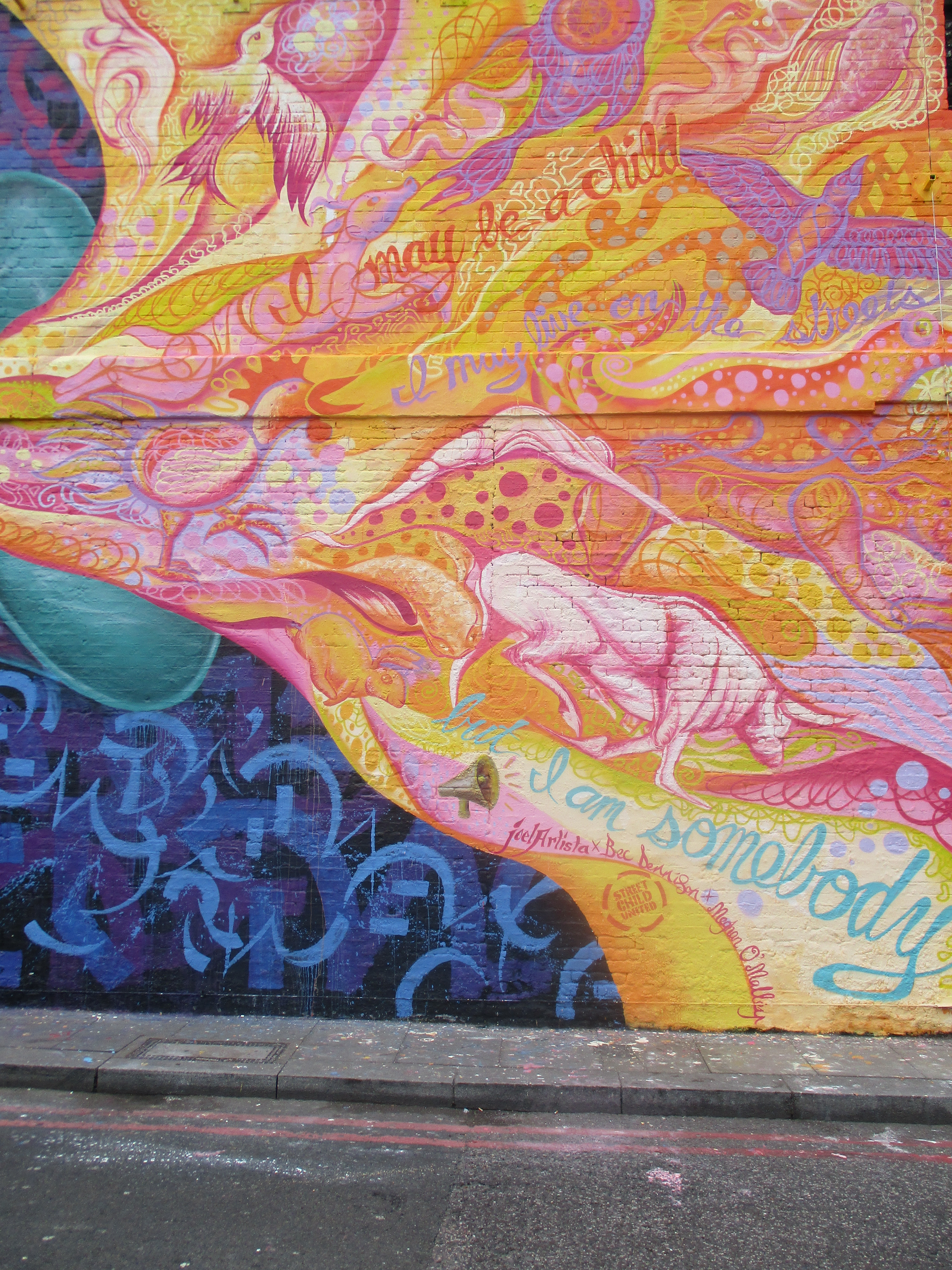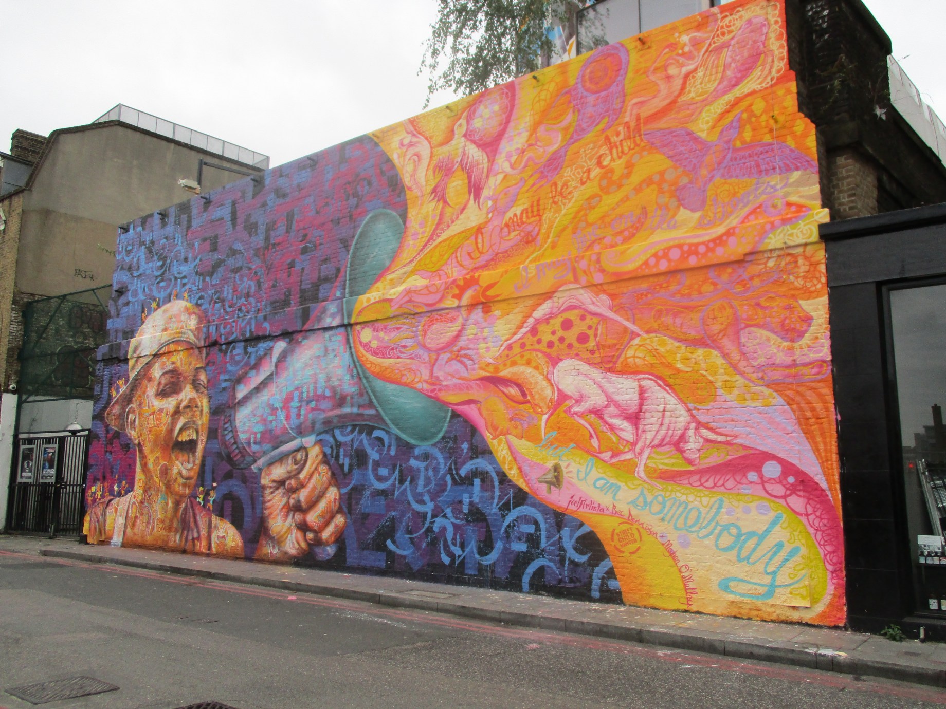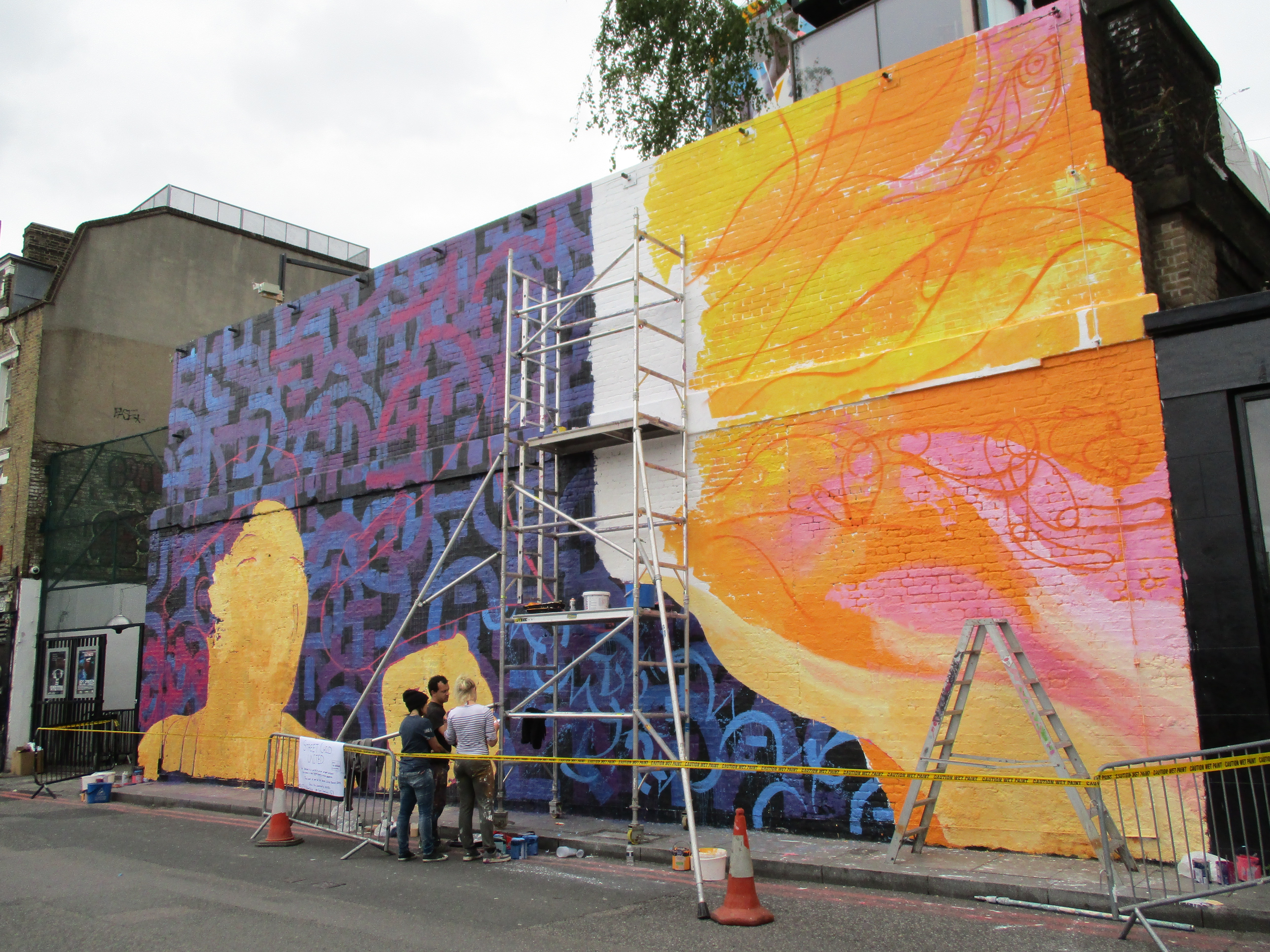 Well the Village Underground in Shoreditch, a wall that is always offering something new, exciting and often from artists that previously haven’t painted in London has received over the last several days its latest fresh coat of paint from US artist Joel Bergner, and what an unbelievably incredible job he has done with it indeed. This piece took some four days to create, in this time Joel Artista had two helpers in the form of Bec Dennison and Meghan O’Malley and the work has been created for Street Child United who provide a global platform for street children to be heard so that they receive the protection, support and opportunities all children deserve.