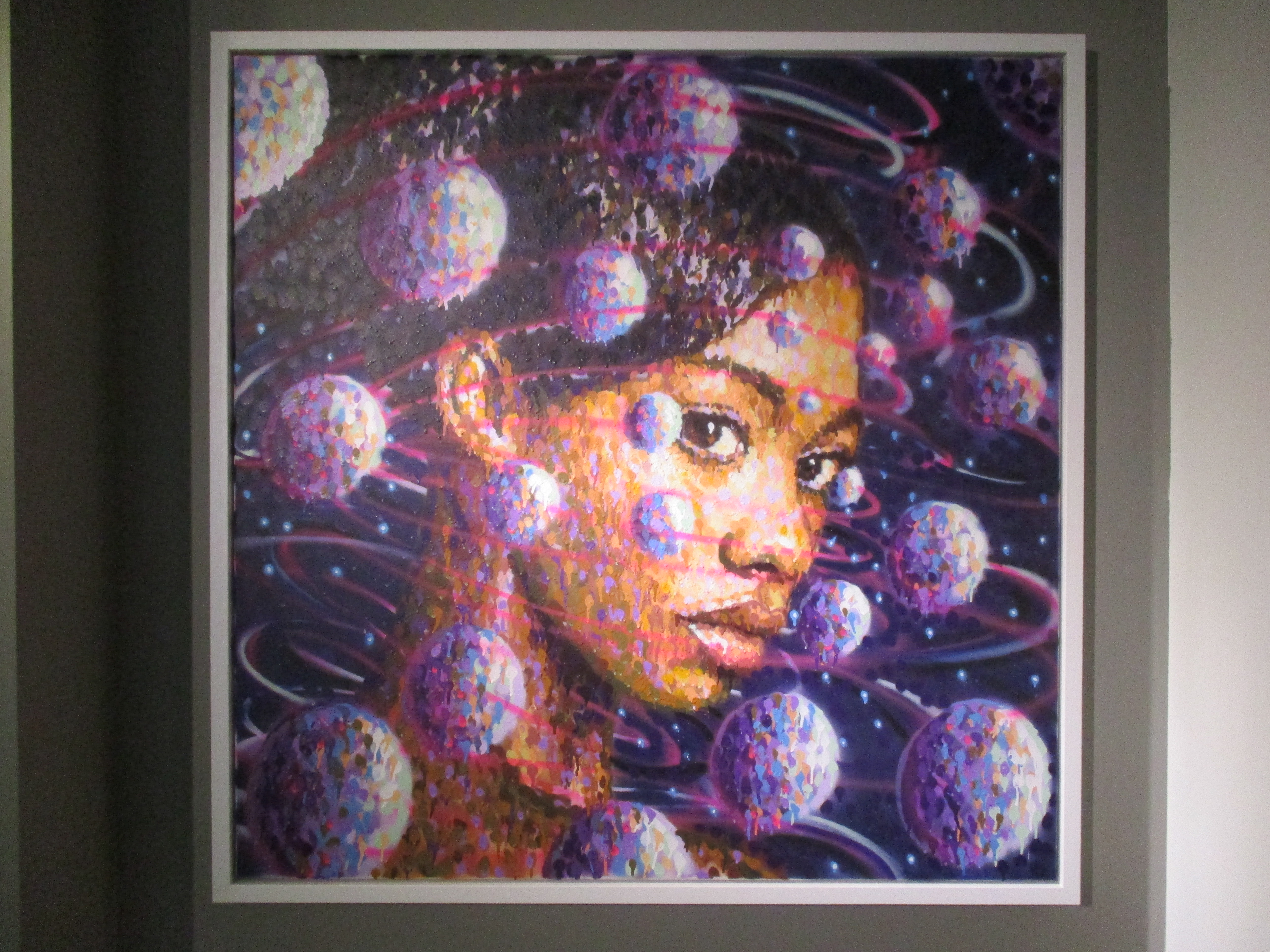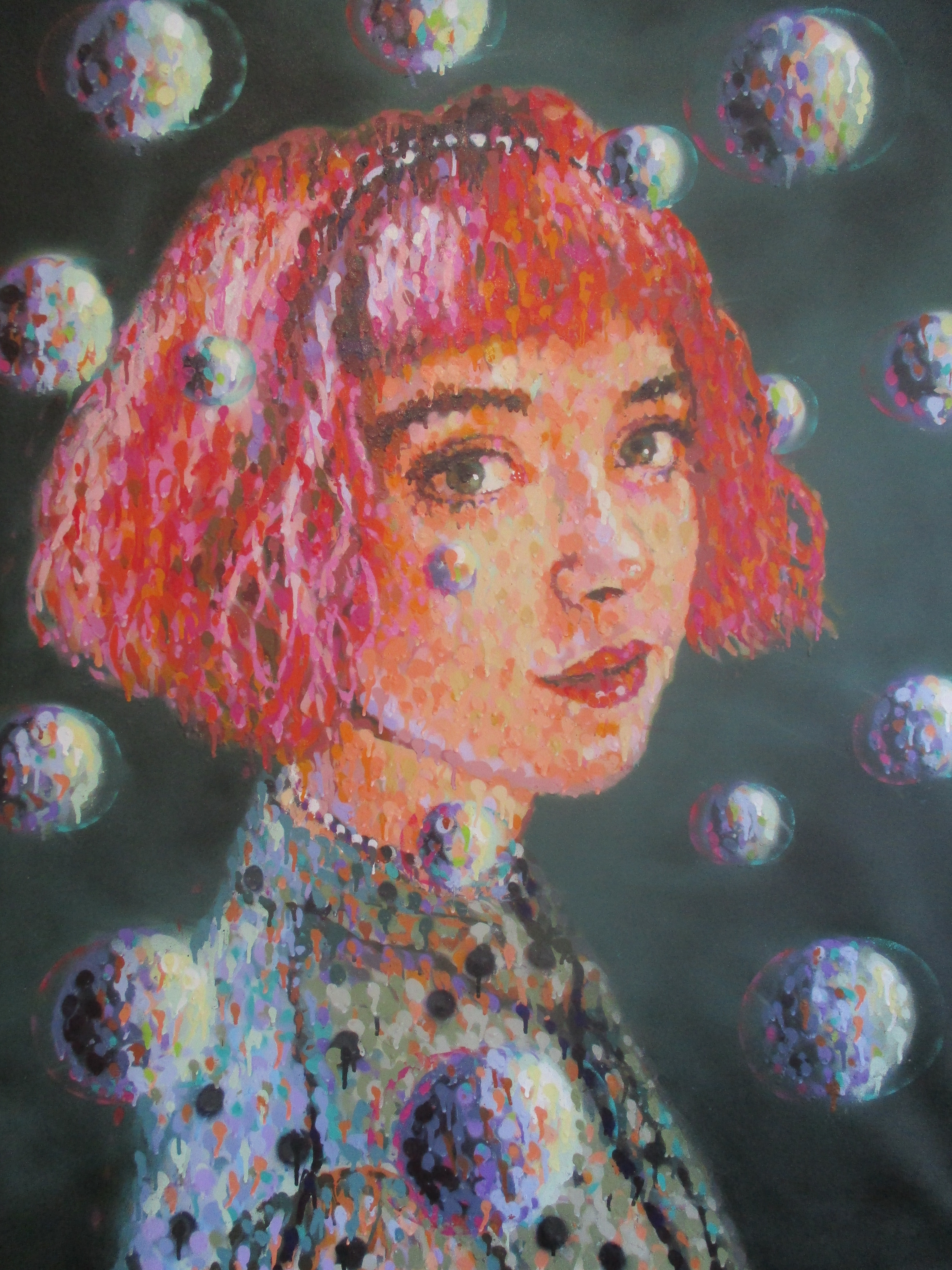 Our favourite work from upstairs, a delightful portrait with the well placed sphere’s locating the girl at the centre of the universe.