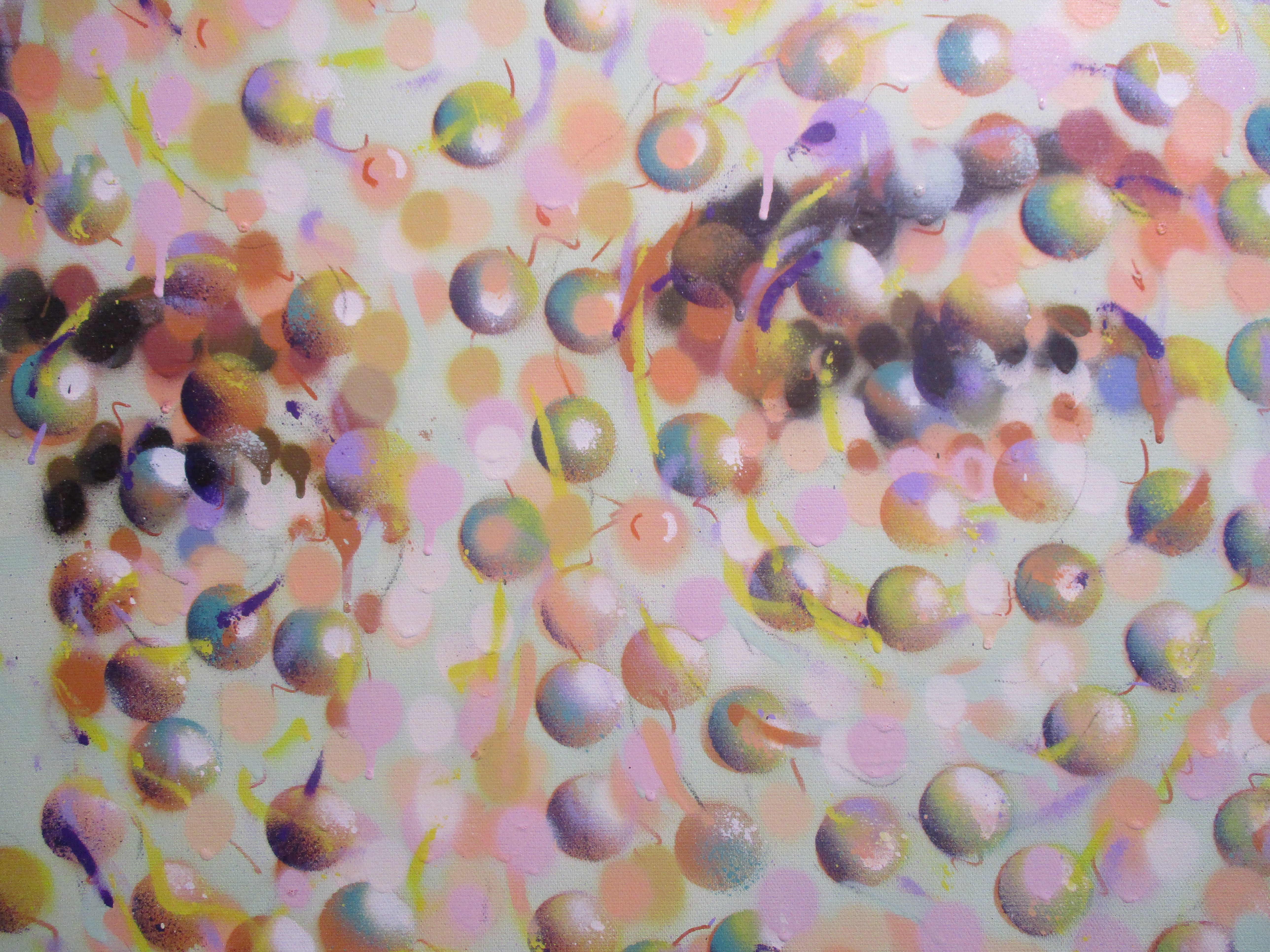 Another recurring theme in this superb show is the use of circular and sphere driven motifs, alluding to traditional perception of such images rooted in symbology as the sun and planets, arousing a celestial overtone in many of his works. This imagery takes new tones in the context of the show with the sphere at the smallest level representing the atom, demonstrating how it is the smallest elements that contribute to the whole, creating Jimmy C’s works in his Pointillist driven styling.