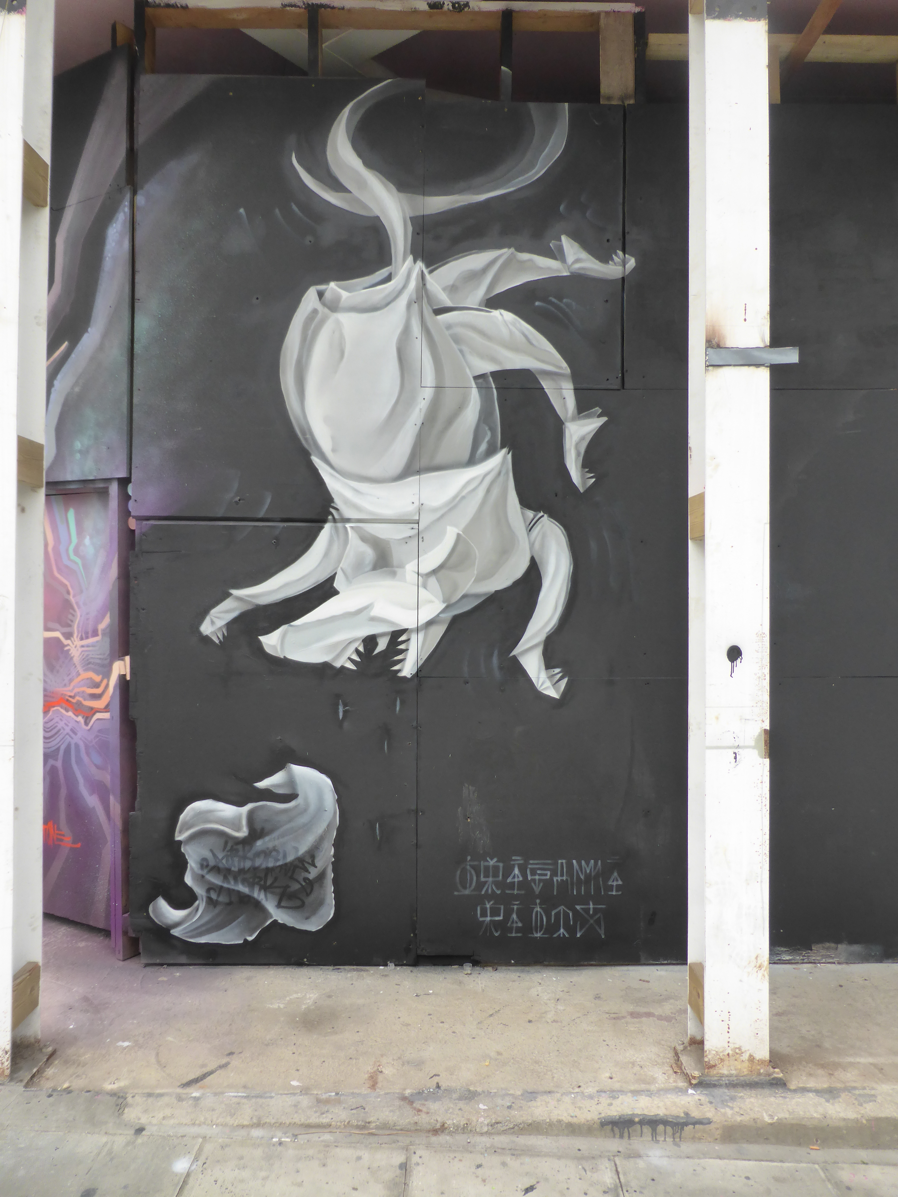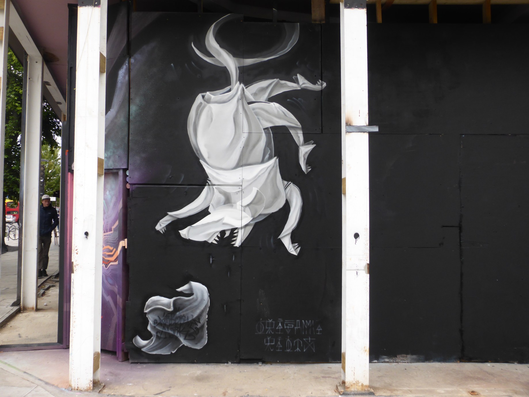 This work, based on freestyle sketches from Airborne Mark is entitled ‘The Dangling Origami Rat’, which tells you all you need to know about this piece, and you can see for yourself how good it looks, the work speaks for itself, a great design, thoughtfully placed and superbly executed. The shadow and fold effect Airborne Mark creates to make his works pop off the wall is always a pleasure to gaze upon and really shows how meticulous he is in his work, something we appreciate progressively with each new work we see from this artist, never one to disappoint us here at London Calling Blog.
