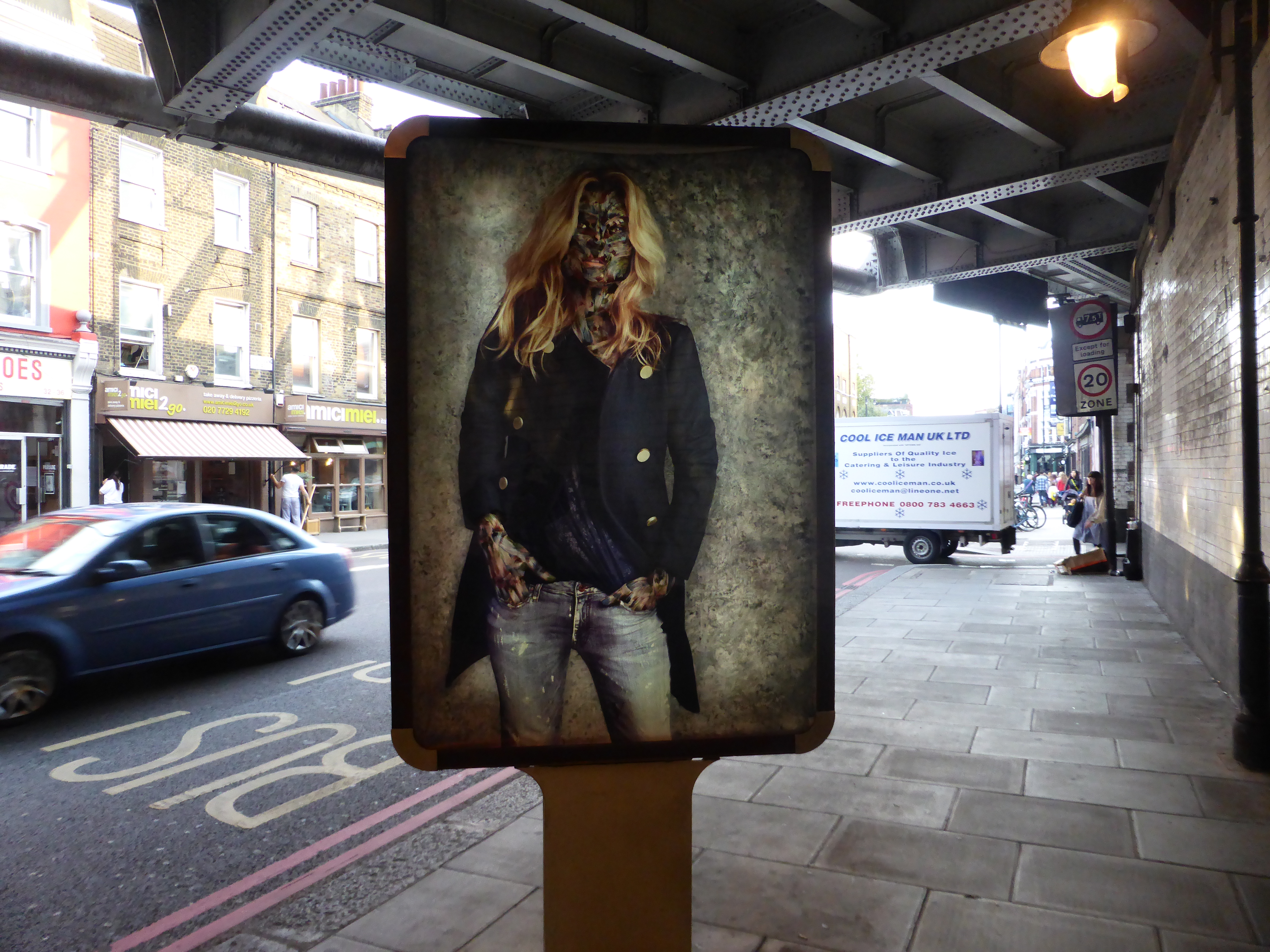 The project is set to analyse the true beauty of the individual and the manner in which such views as imposed from above by the advertising world and enforced through its constantly reinforced proliferation in the public sphere. The project involves Vermibus carrying out what he calls a series of ‘interventions’, entailing the commandeering of a public advertising platform, such as a bus stop or stand-alone light-box, and replacing the advertisement within with his art. The pieces are very subtle, something you wouldn’t necessarily notice as you pass by. For all intents and purposes the artworks from Vermibus are identical to the original advert from which he has based each work, however if you look closer you will see the models in each piece, don’t look as you would expect. The artworks set to draw attention to the way real beauty is lost and hidden to make-up and the retouching processes that are prevalent within the fashion industry. They certainly do this, the works we have seen thus far are beautiful, very intricately constructed, and in all absorbing.