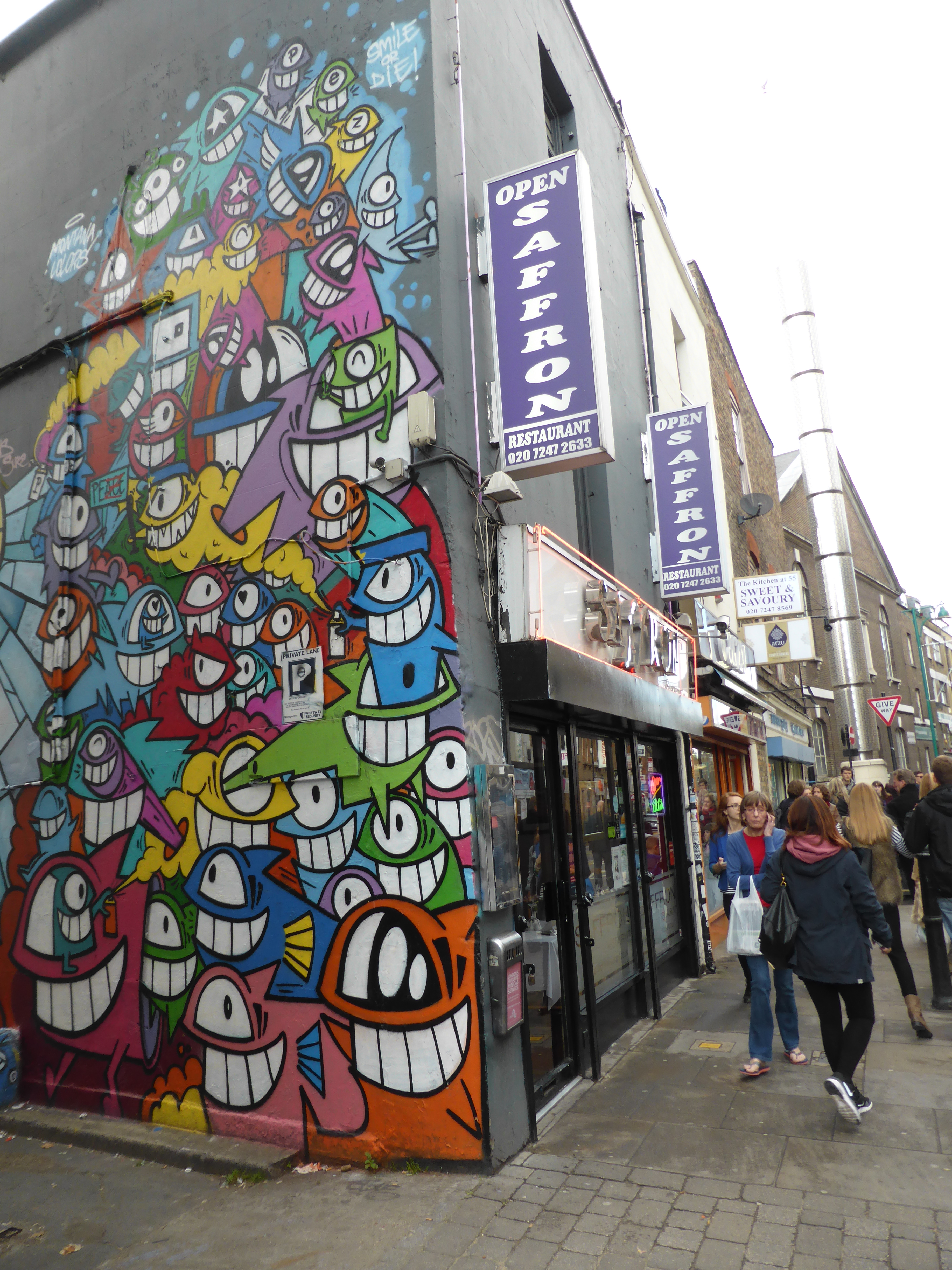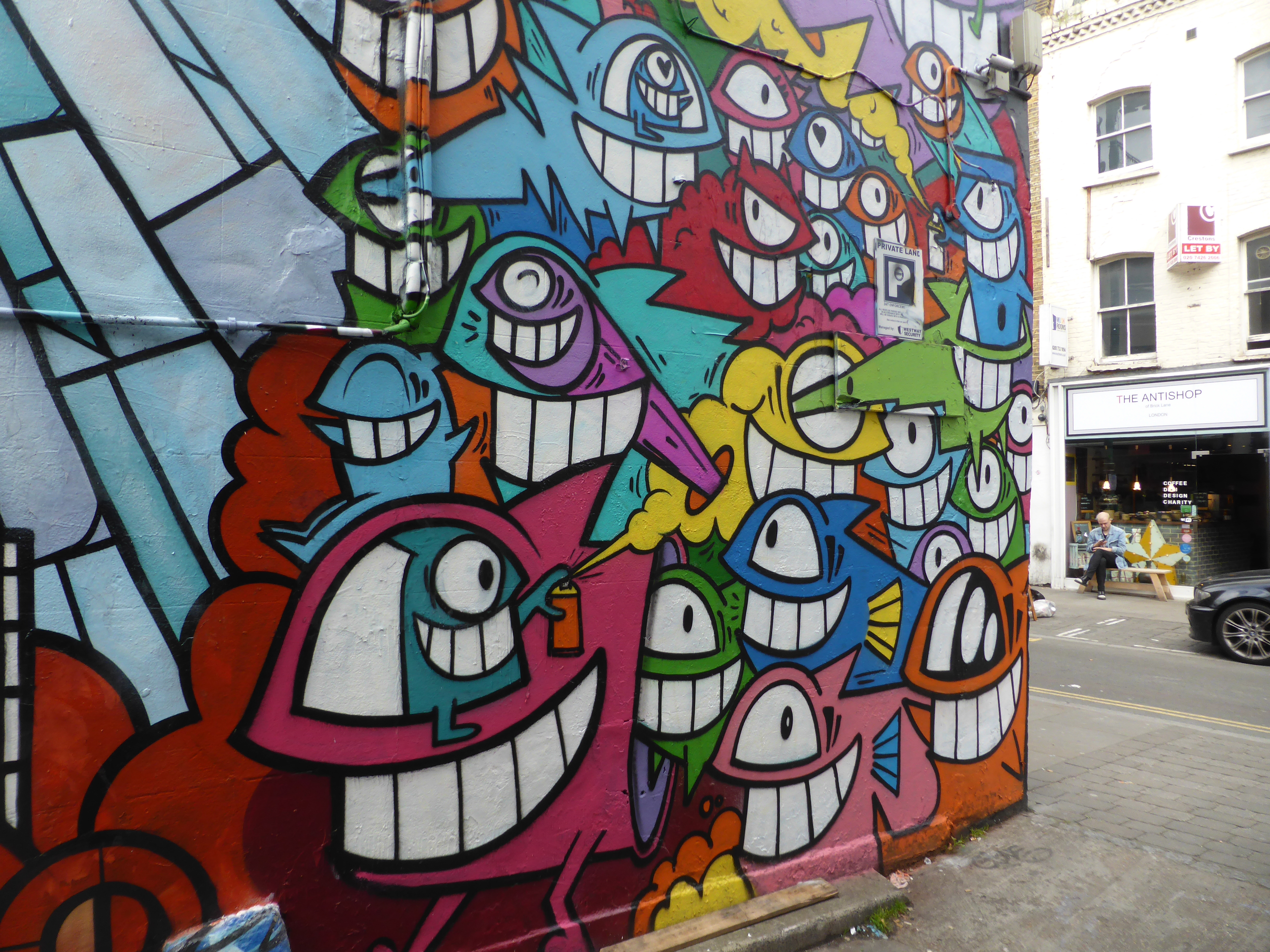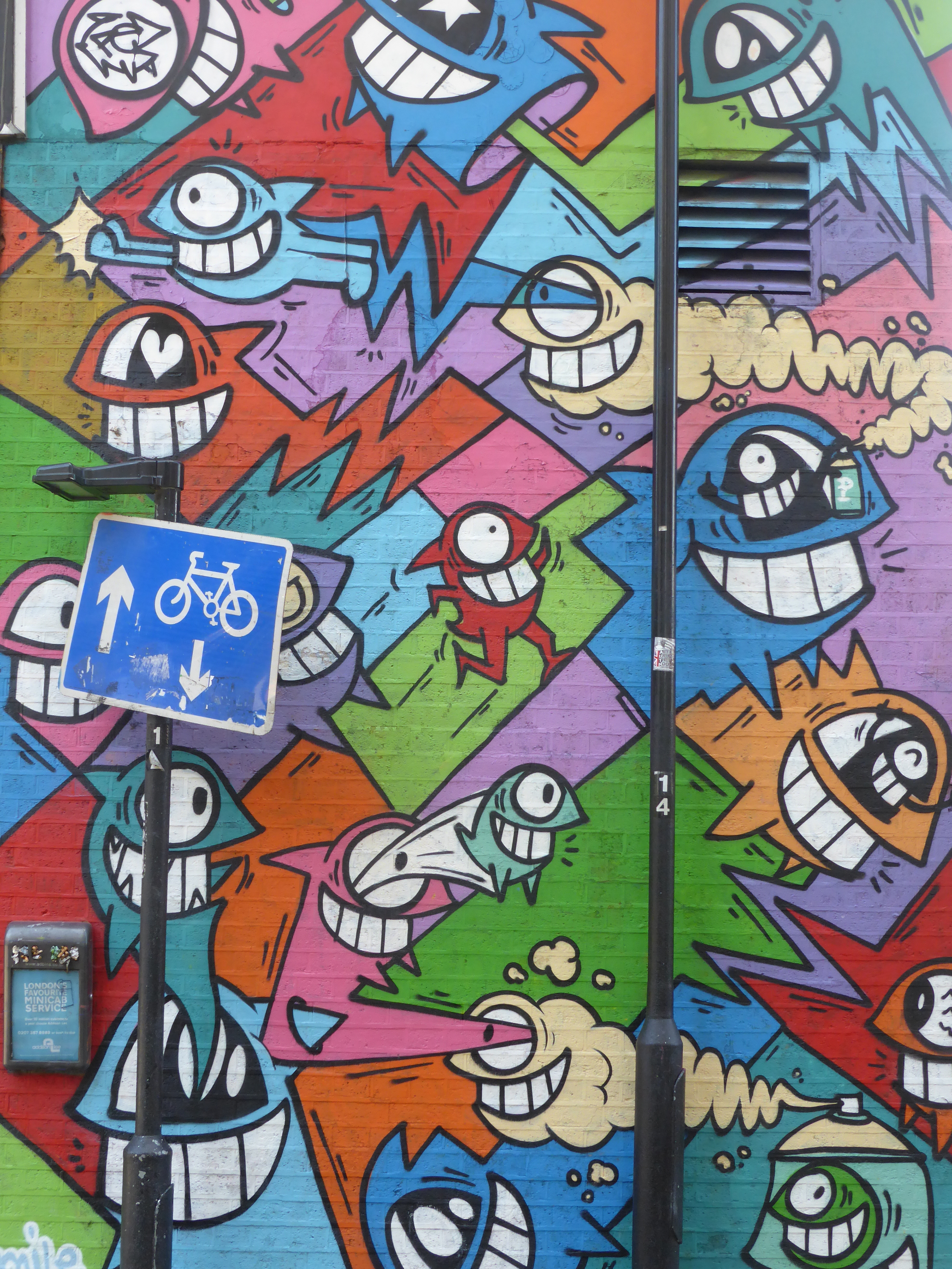 Nearly two weeks ago now London was treated to a visit from Barcelona based artist El Pez, who was over for the launch of his book at the West Bank Gallery, and while over took the time to hit up three delightful works spreading his infectious message of happiness and joy.