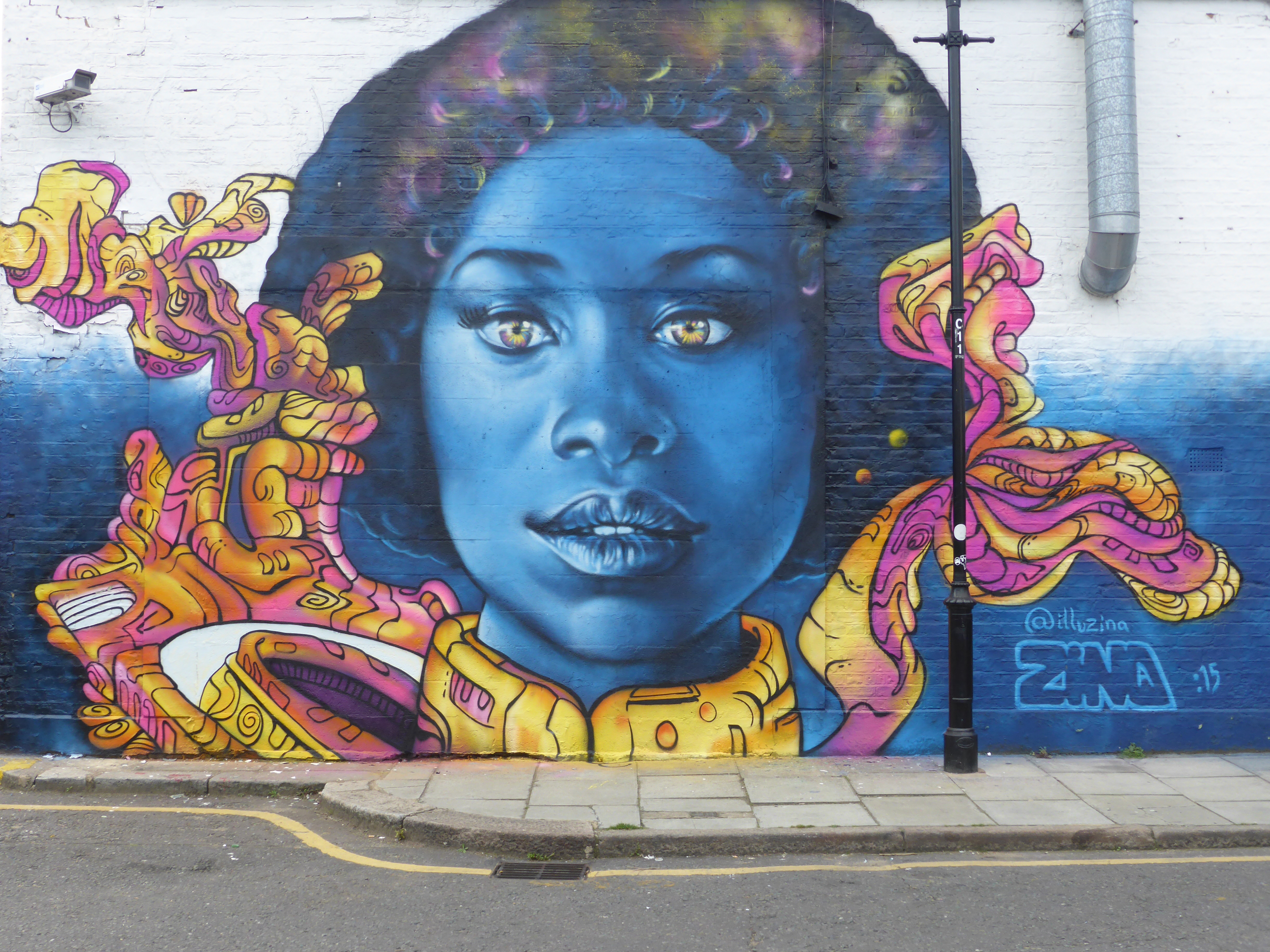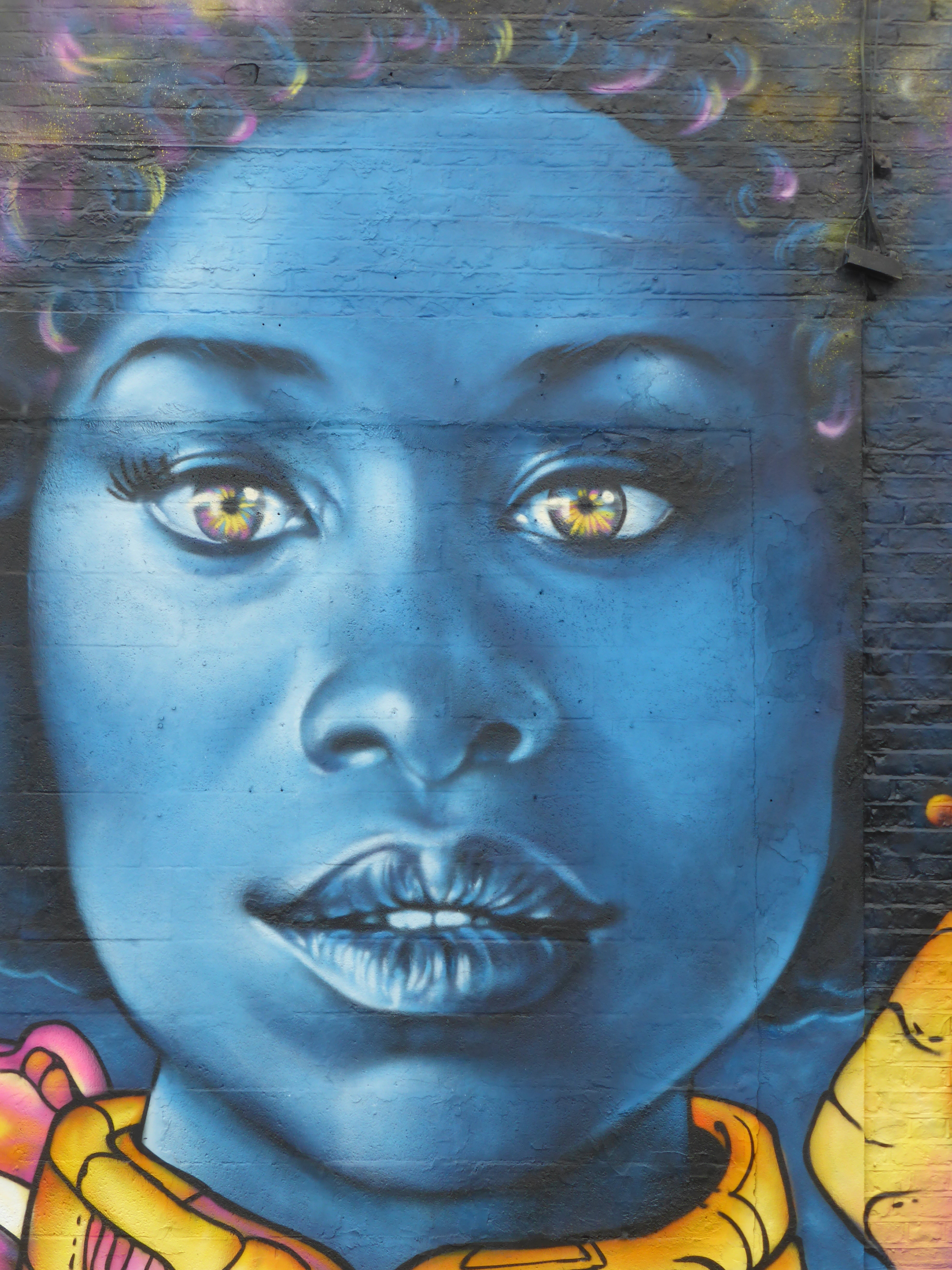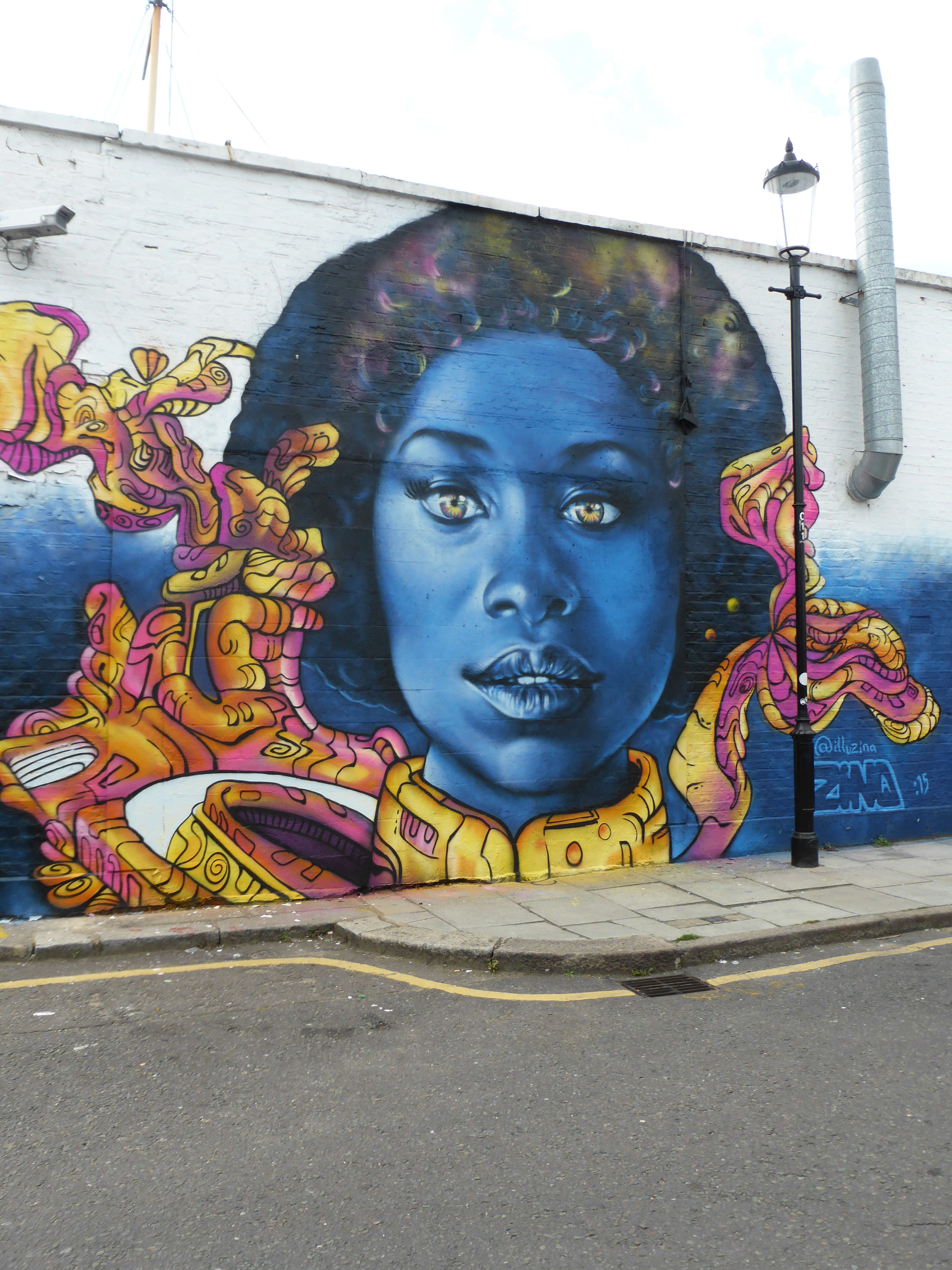 1. I do love the blue ladies Zina paints… As for the location I have been to loftus road to see QPR play many times in my younger days!!!! I think Zina has painted on a shutter in the Shepherds Bush market under the railway arches a few years ago. Is the market still there as I knew it was under threat of development?.. I really like the last snap with the lady looking down the street…. Very well taken!