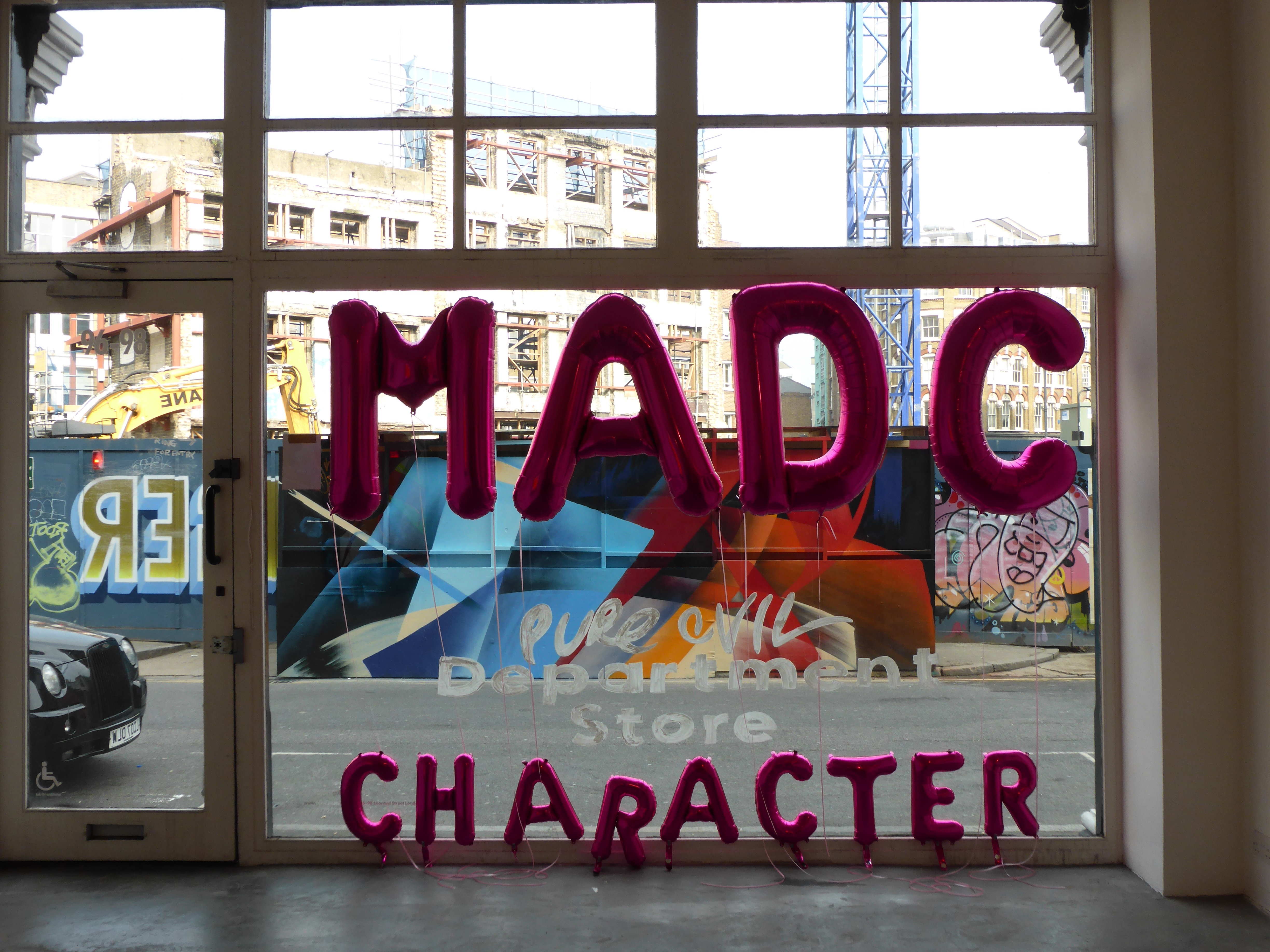 Last Thursday at the Pure Evil Gallery in Shoreditch Mad C’s latest exhibition ‘Character’ opened presenting an impressive collection of beautiful abstract paintings. Mad C, started out as a Graffiti Writer as a teenager and has since gone on to become accomplished in the realm of graphic design, fine art and typography. Over the last decade Mad’c style has developed dramatically, with her current works featuring transparent layers of calligraphy and typography set amid abstract structures, adapted from her original wildstyle Graffiti works. Developed through a process that has tried to retain the bold colours and energy from wildstyle Graffiti, but has gone on to abandon the outlines and clearly defined layering of shapes, creating an almost set of transparent forms that fuse together, that are just absorbing.