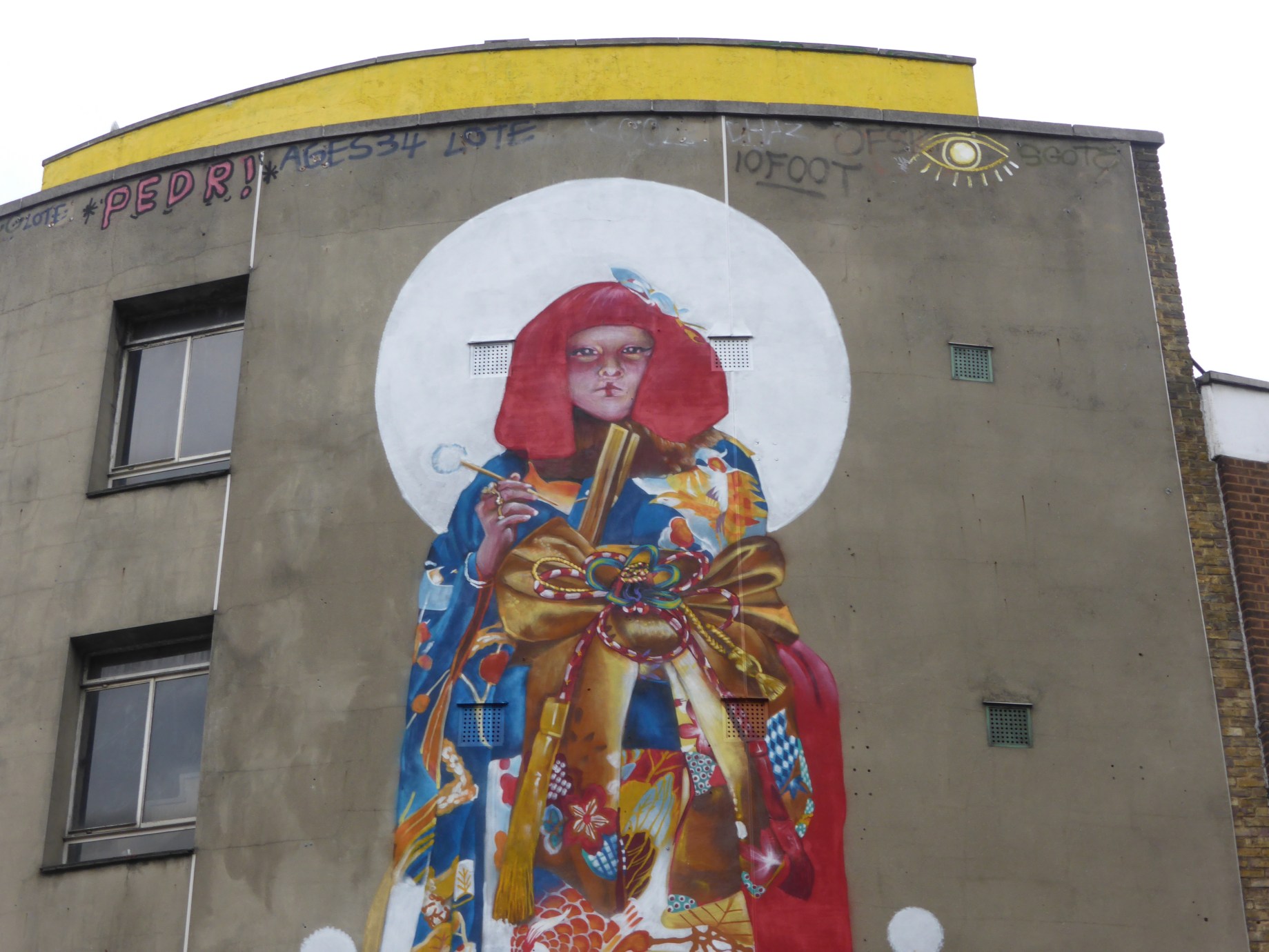 The latest mural departs from the more Graffiti driven style of last weeks work in Shoreditch and on this occasion took a much more realistic depiction as the focus of the stunning mural. The pair spent some three days at work on this beautiful depiction of Ayakamay that now just dominates this corner of London. Ayakamay’s residency at the Red Gallery may now be over, but what Shoreditch is left with is a lovely piece that aptly reflects upon the cultural diversity within London as a city.
