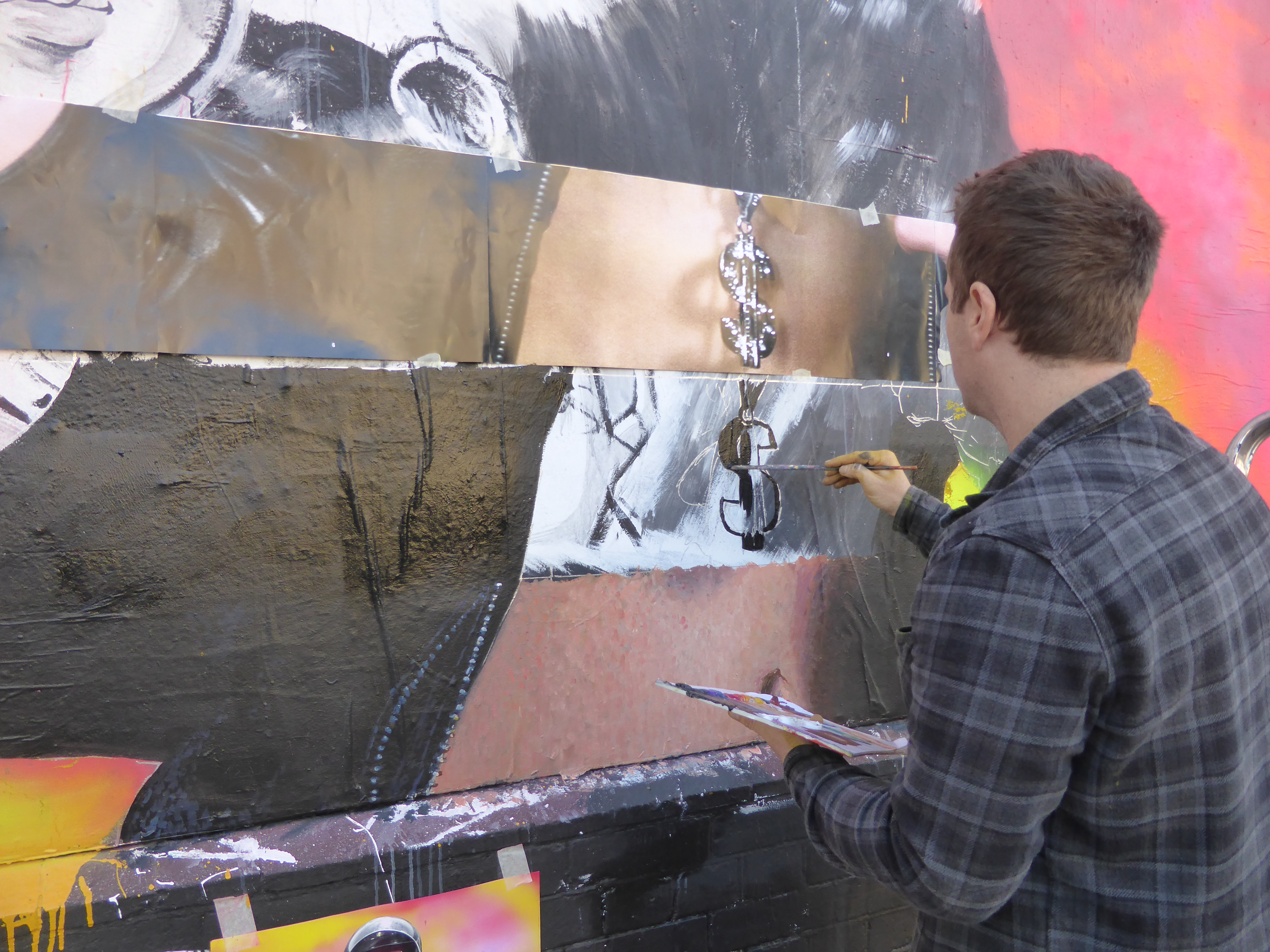 Nick Flatt’s paint palette for the piece.
