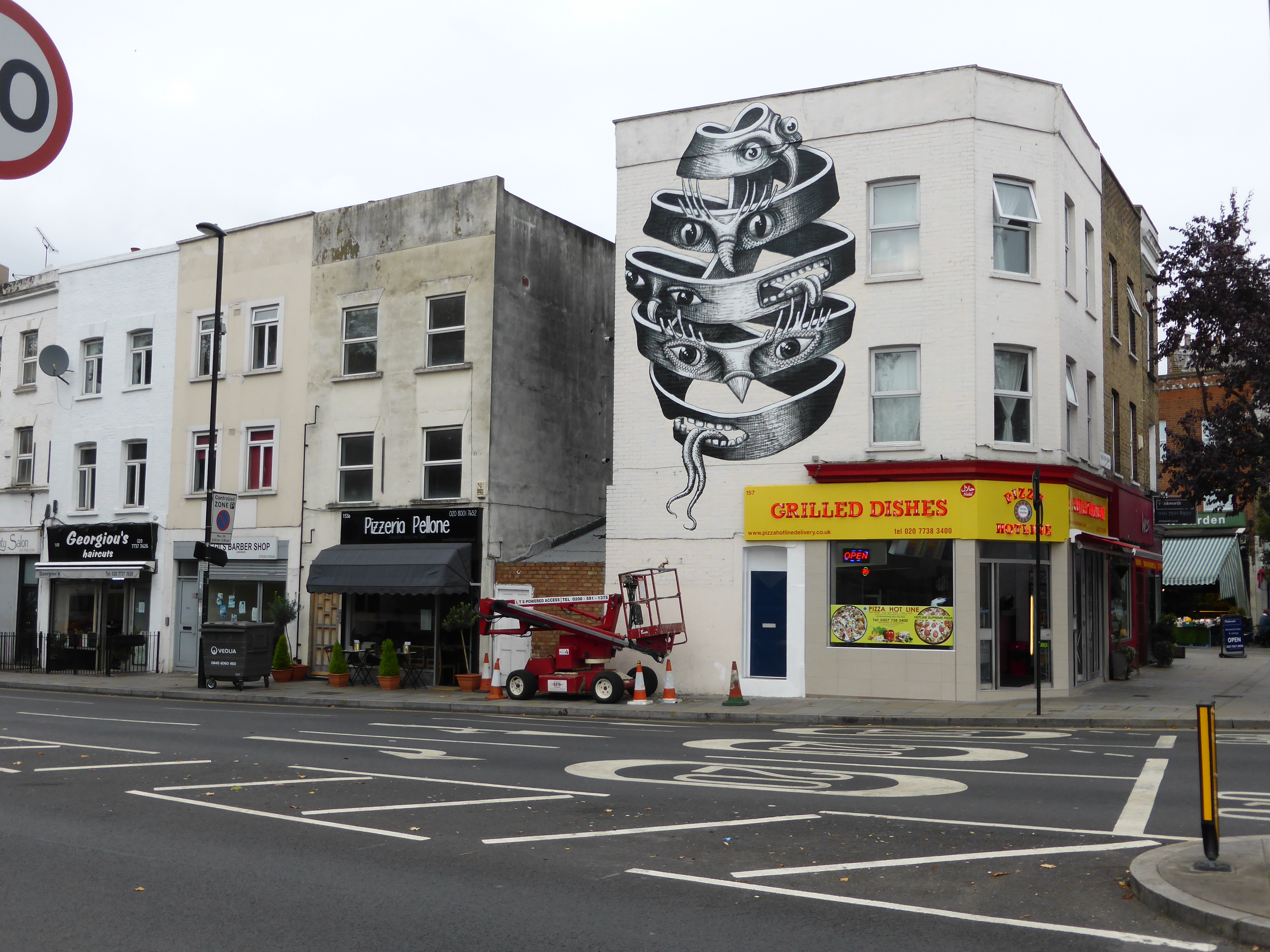 Over the course of last weekend Street Artist Phlegm was at work in Herne Hill on his newest London work and additionally the latest work to have been curated by the Dulwich Picture Gallery. This stunning and surreal took some two days to create, quite a feat considering it’s size, however not that large when put into the context of scale for some works Phleghm has thus far created around the globe.