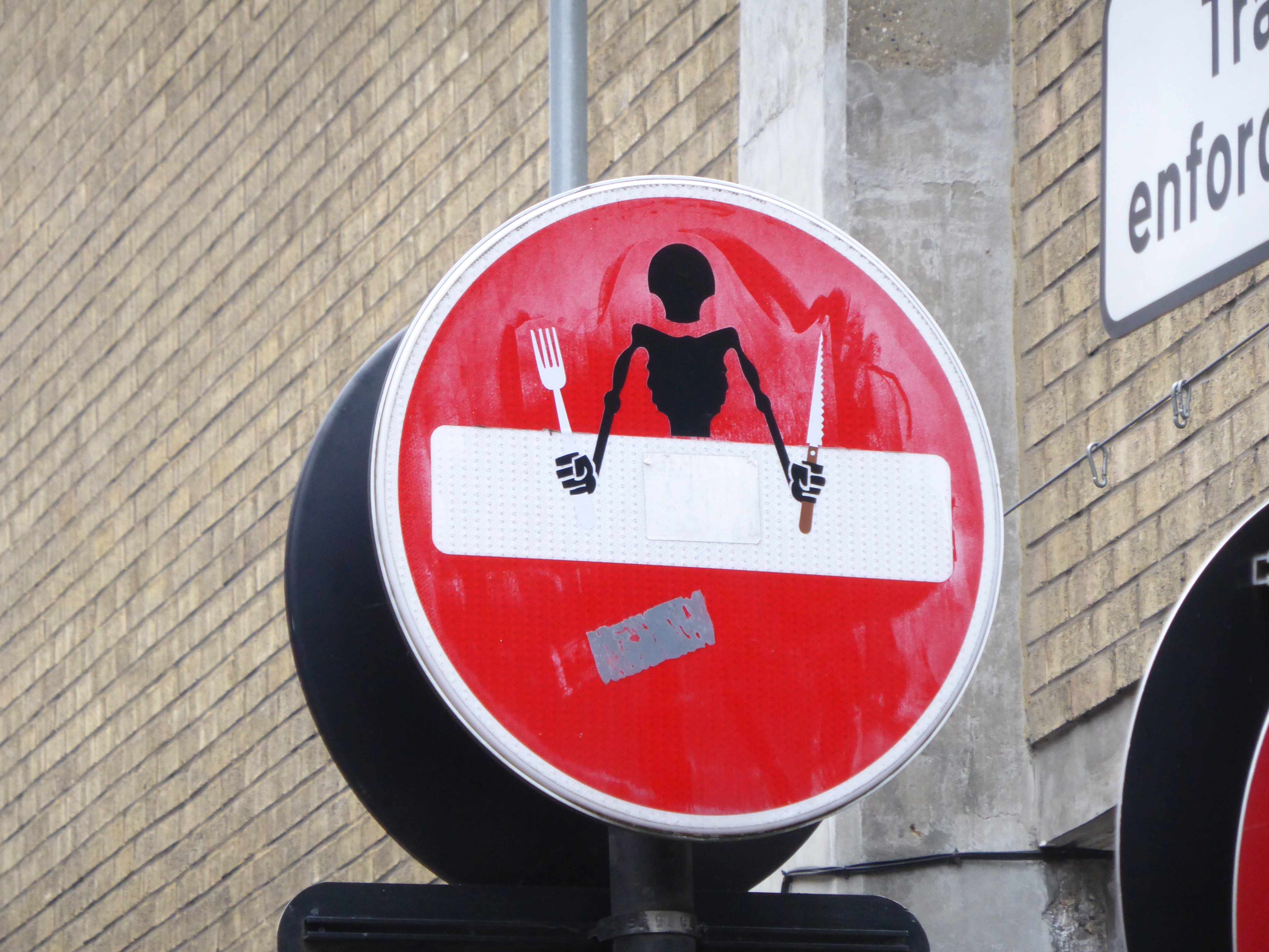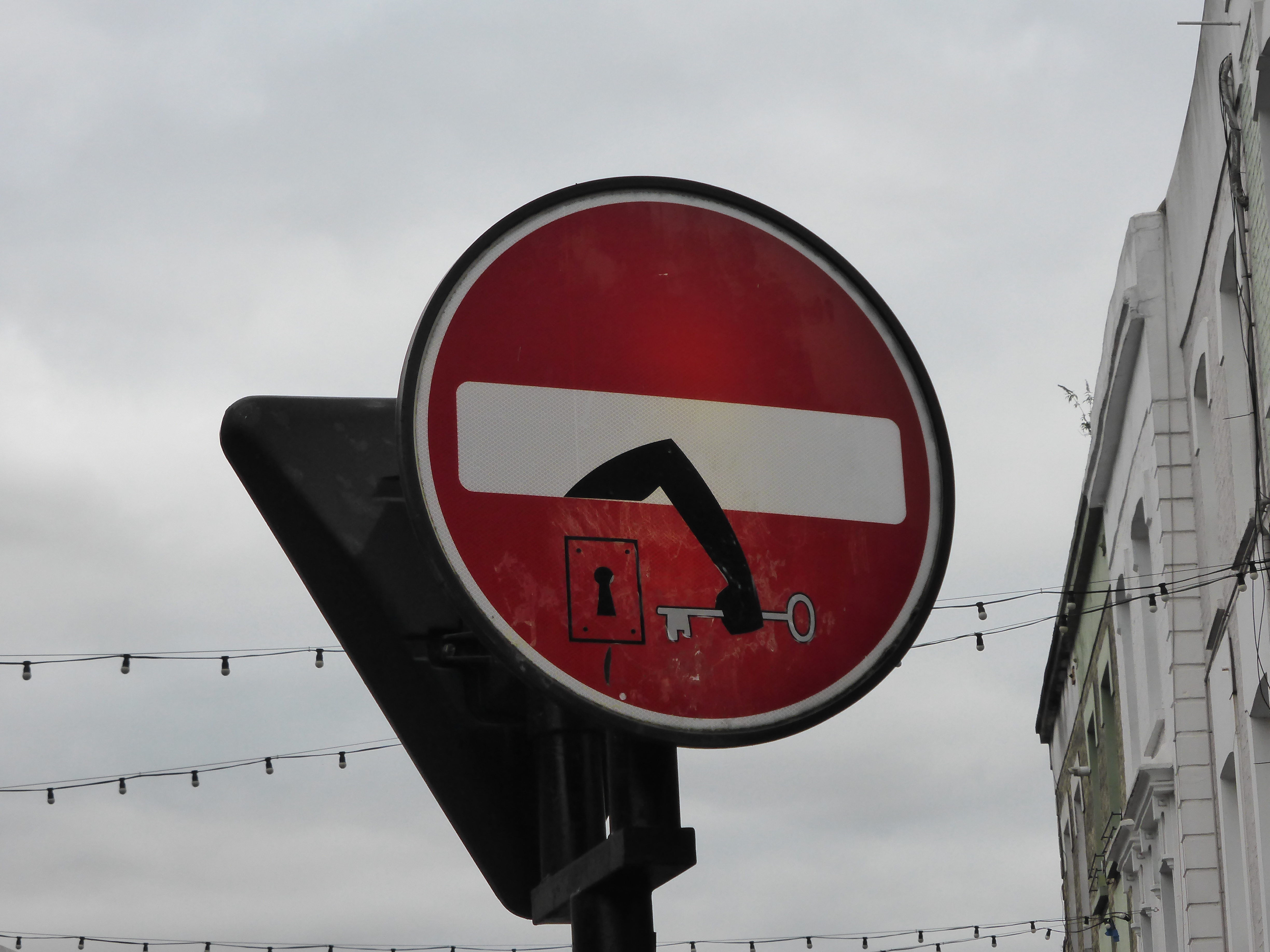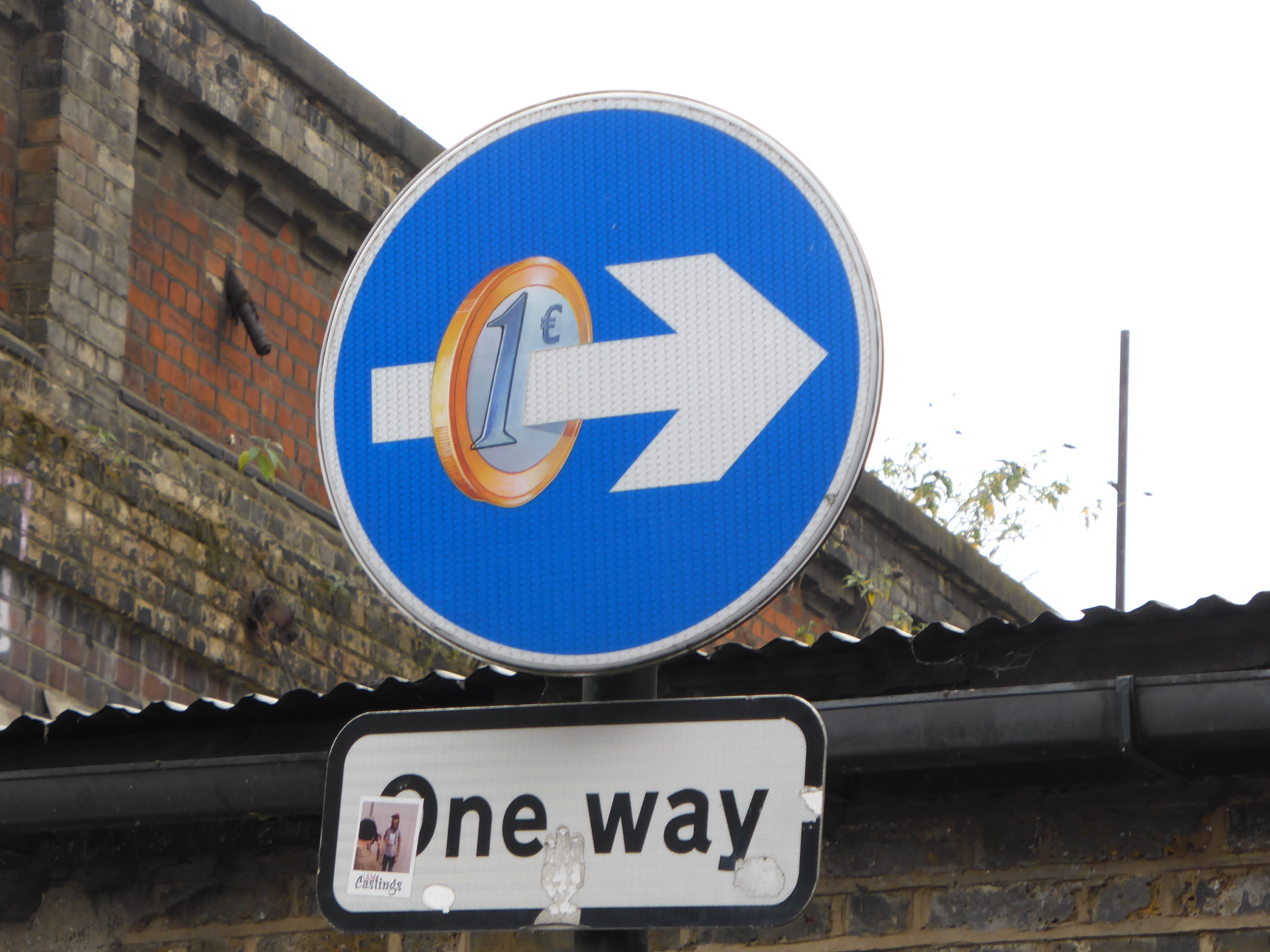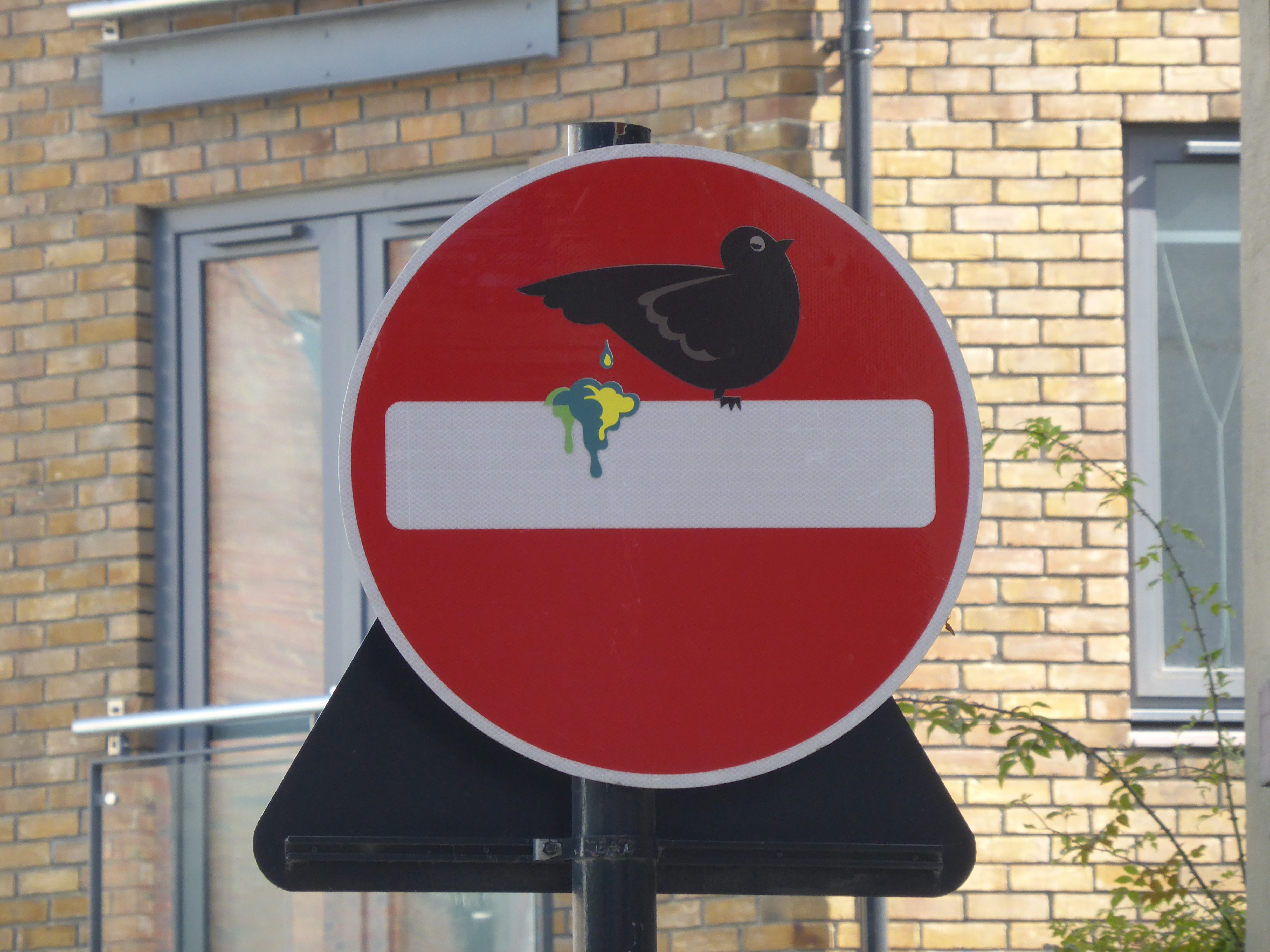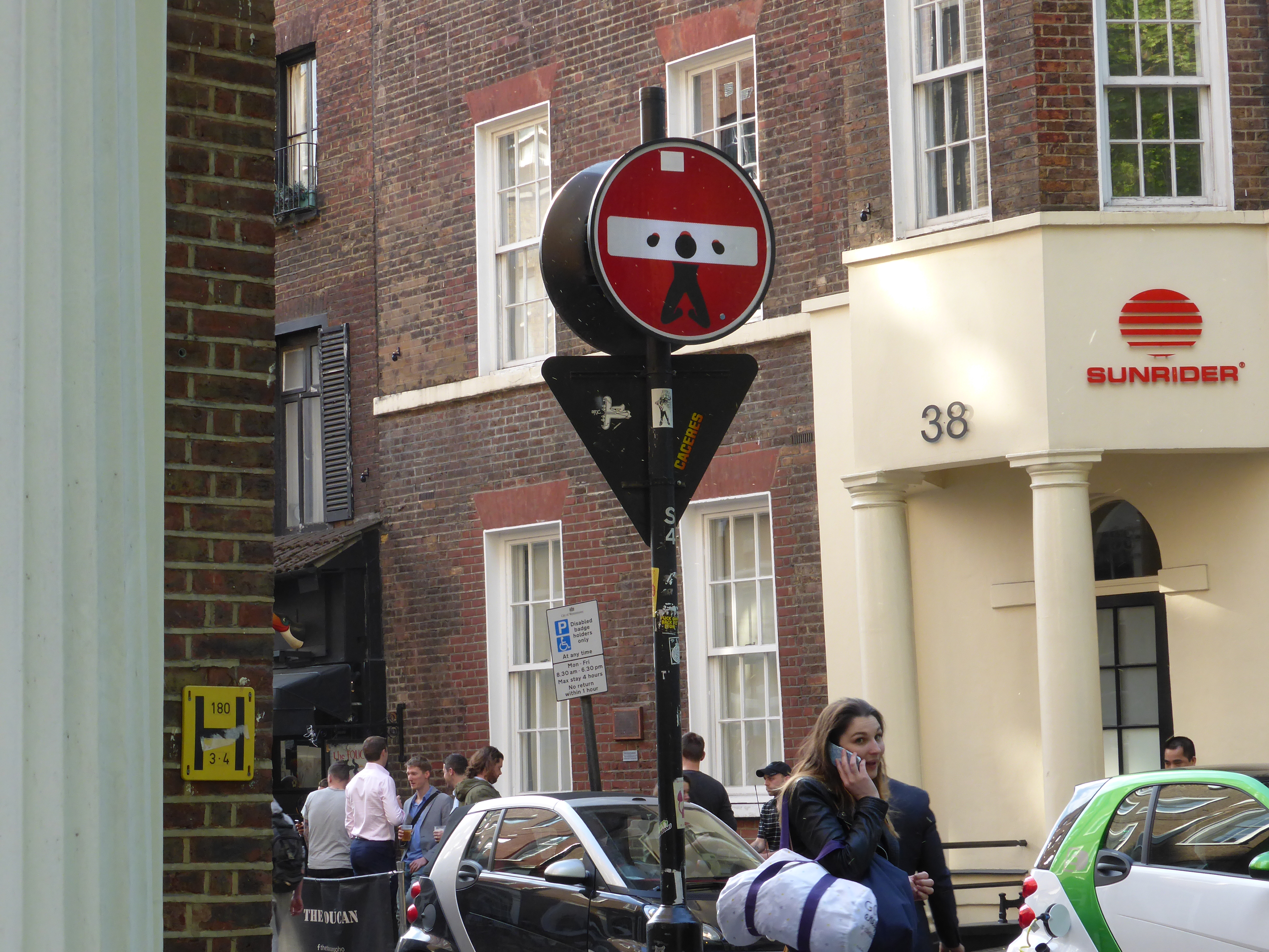 Just over a week ago Street Artist Clet Abraham made his most recent visit to London whilst he was over with the Graffik Gallery who showcased his work at the Moniker Art Fair (covered here) and to present his very first UK exhibition at their own gallery (covered here). It’s been five years since Clet Abraham started his unique and humorous approach to guerilla Street Art, and four years since he first visited London. Utilizing this opportunity Clet went on a short but prolific tour of applying his unique brand of witty humour to many of London’s street signs, primarily around East London in the Brick Lane area and along Portobello Road in west London.