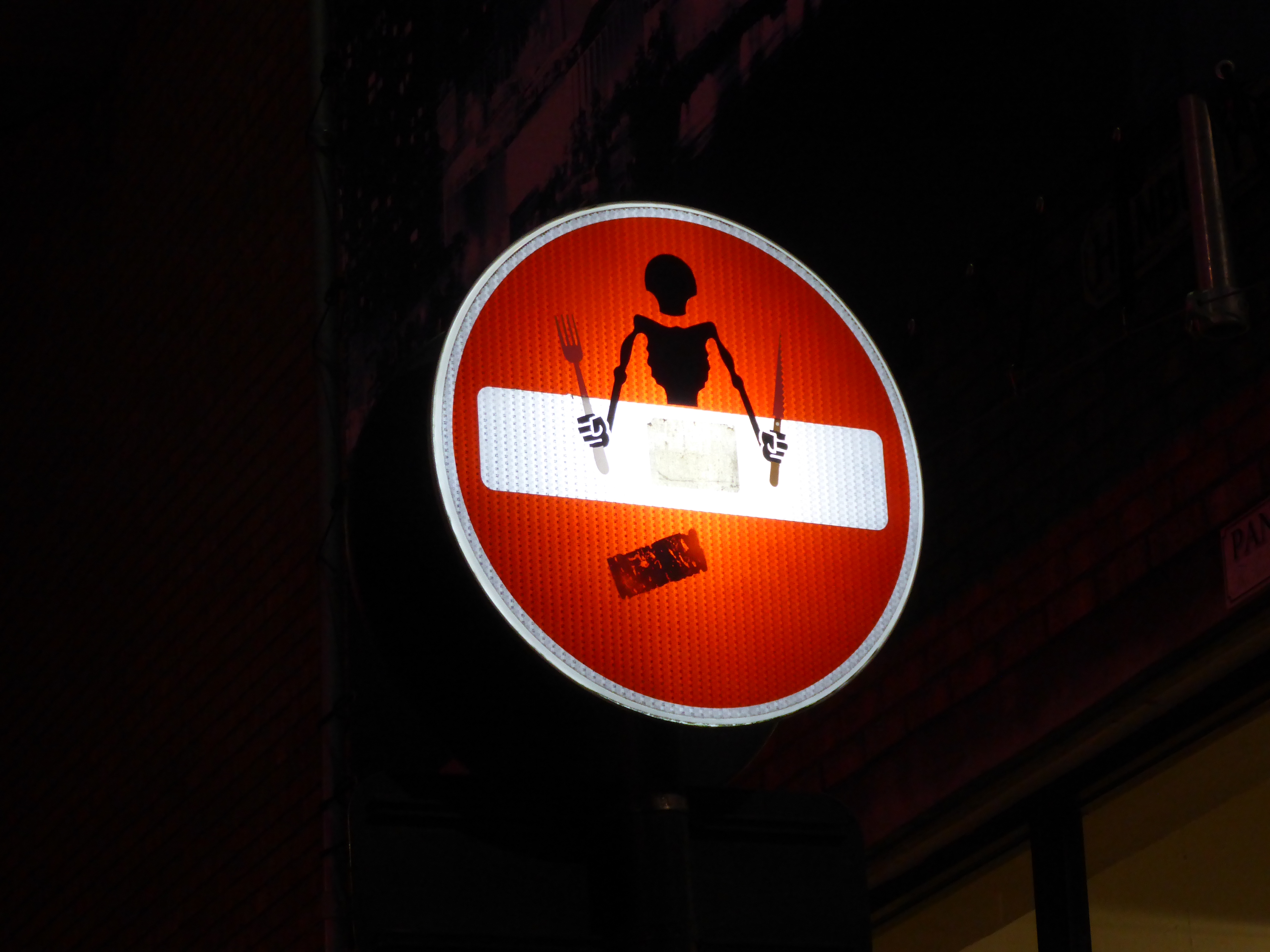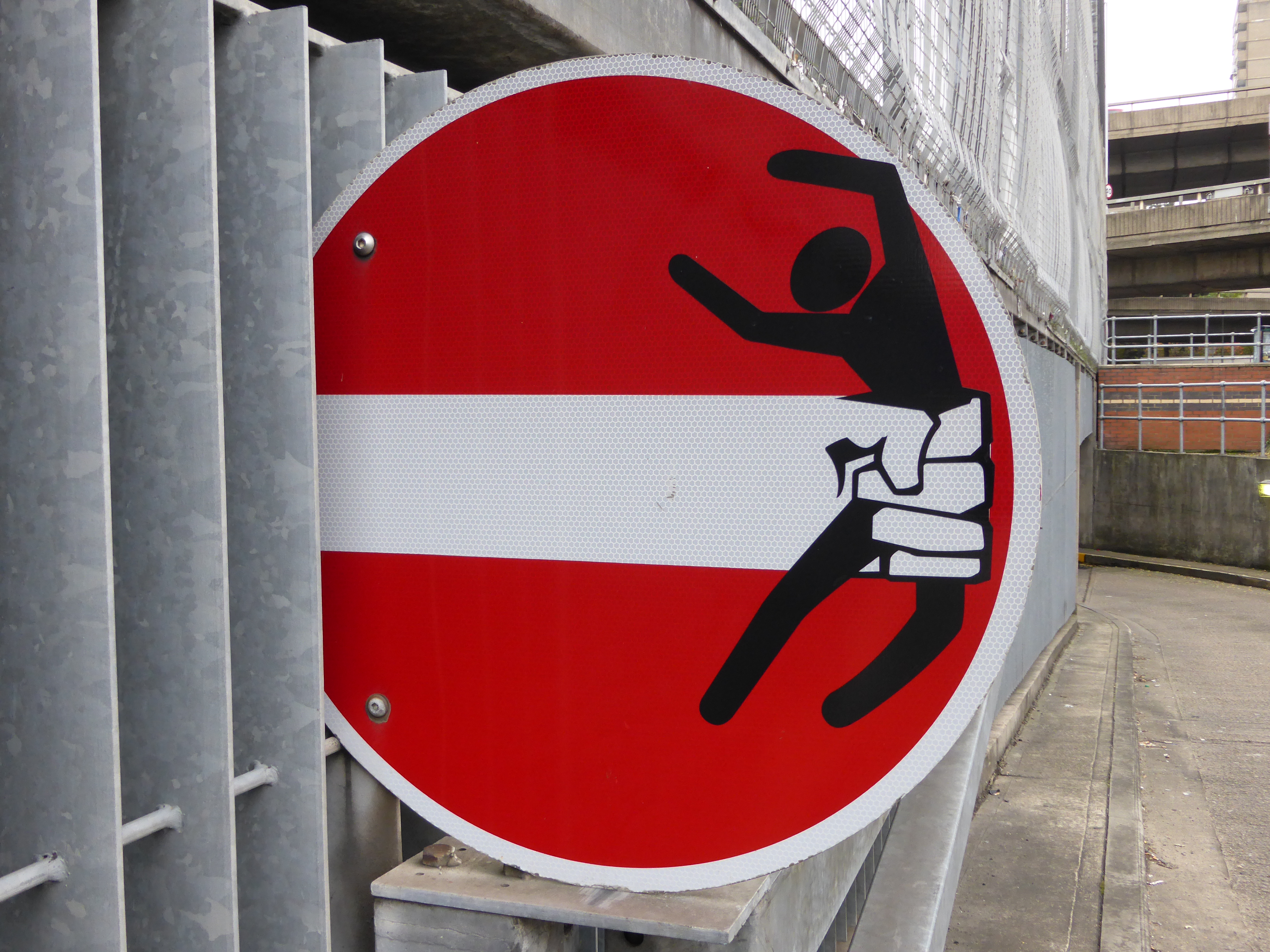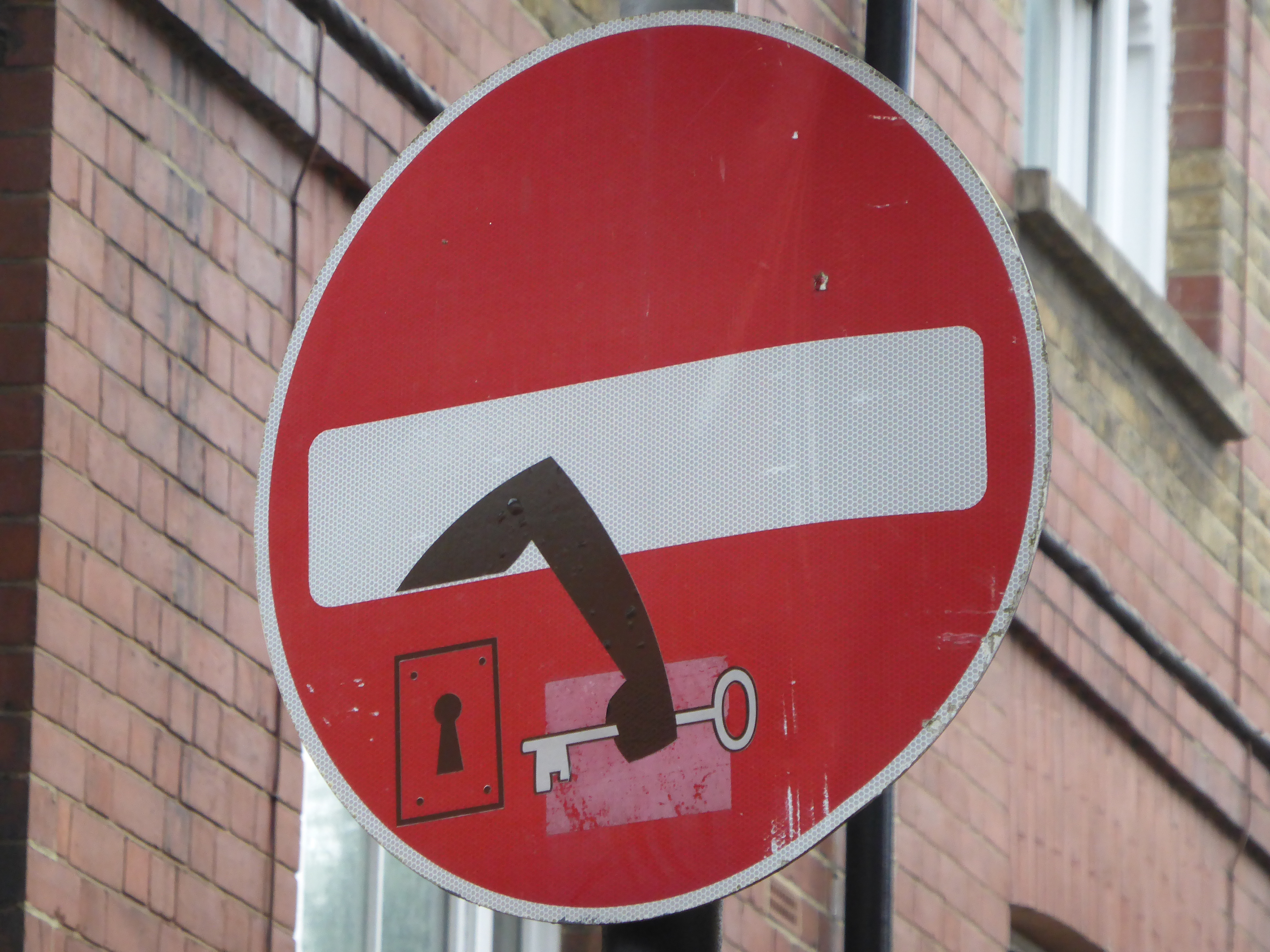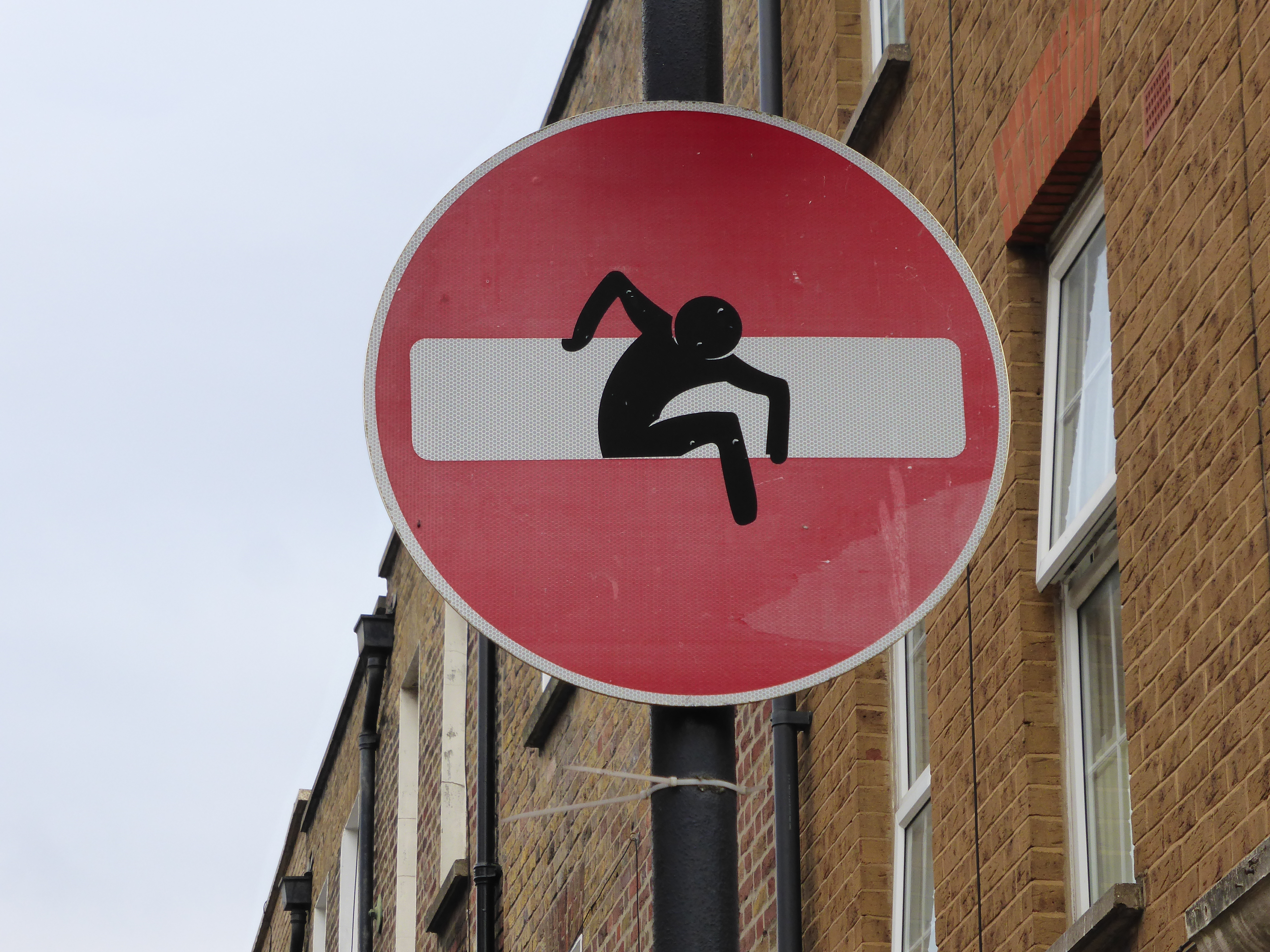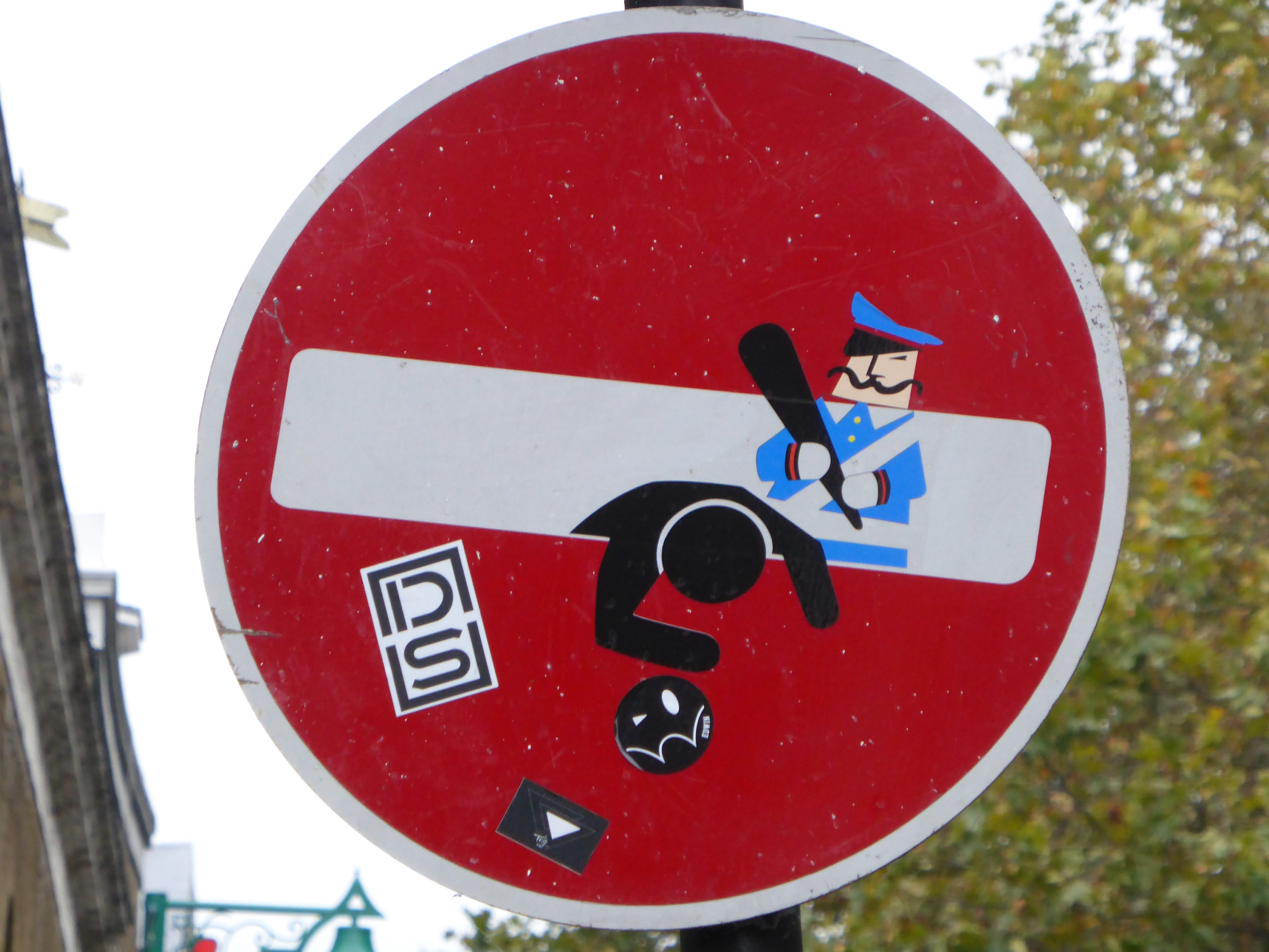 On the street Clet Abraham uses hand-cut reflection paper images, covered in protective plastic, set to the same standard of image quality as the actual signs they adorn. We were fortunate enough to meet the artist and get a few insights into his choice of subjects to express himself, for Clet Abraham the idea was born from the view that street signs are an order, a dictation from the authorities, just one more medium in which society is told what to do. In reaction to this Clet Abraham decides to answer back, democratizing the situation by responding to the order implicated with a series of witty and delightful images. Clet’s works when spied are always a treat and never fail to bring a smile to the face, his works are very original and often very subtle, you would be amazed how many times you casually pass by one of his alterations without noticing it. He has a very unique approach to Street Art and very much has the something to say in the process.