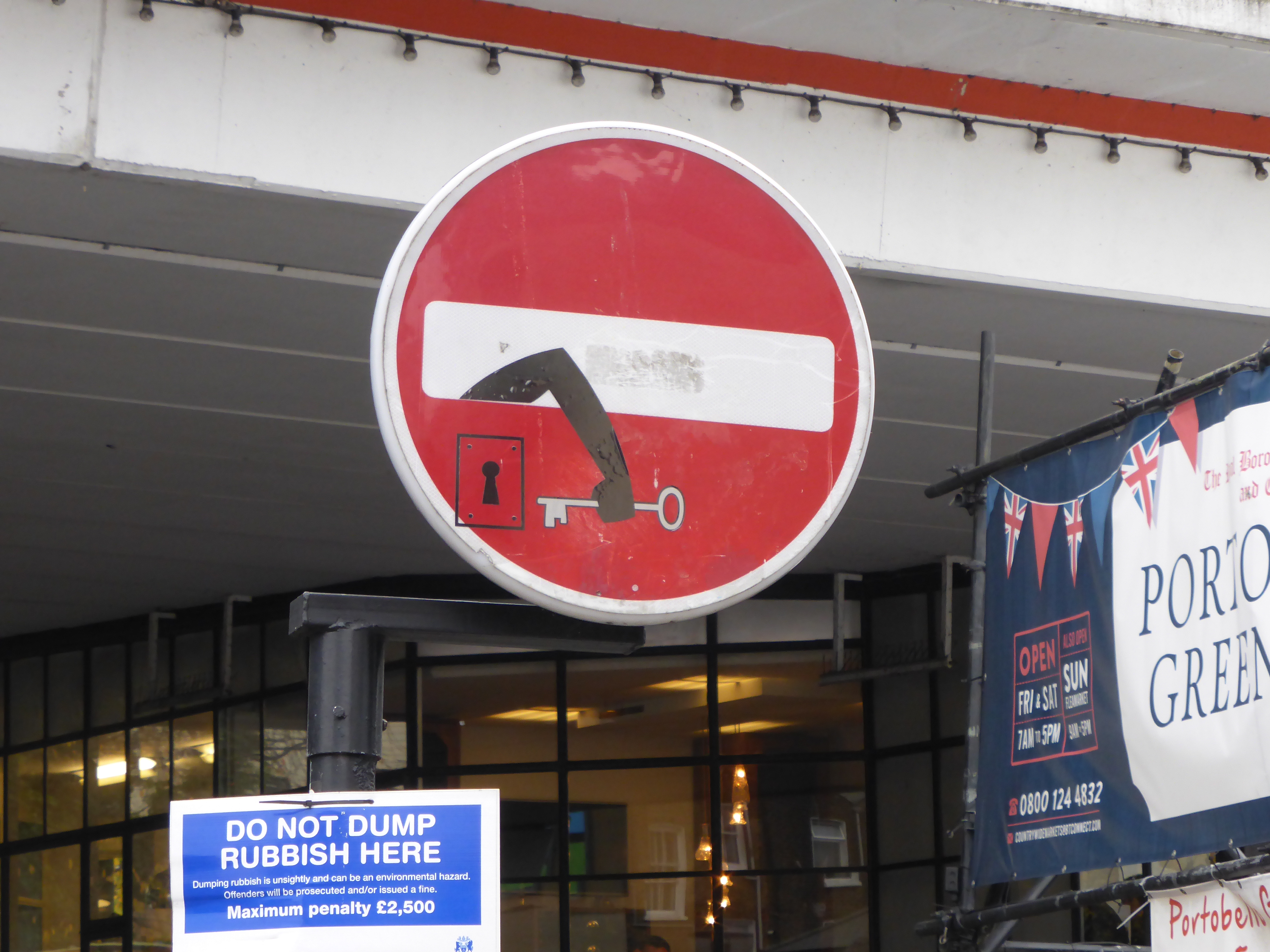 Ah, good to know. I probably read the post too fast the first time. btw – some of the West London works have already gone. Crowthorne Road – both pieces. It was v busy on Portobello – so I might have missed them – but I couldn’t spot sexy lady, The Clash, climbing out of the sign, the hand grab and the pigeon. But I did spot one you’d missed. And I look forward to your night shots later.