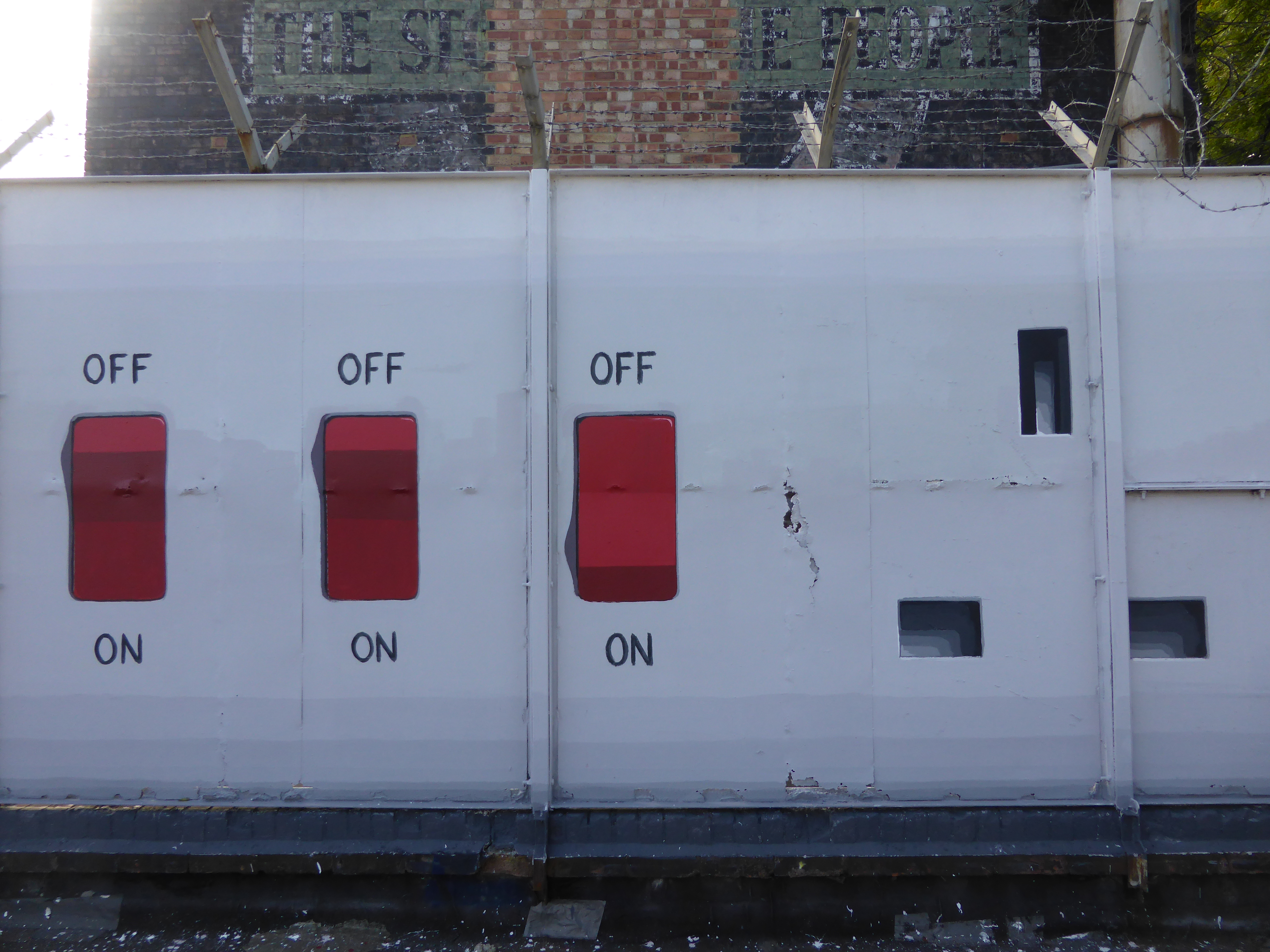 This fantastic and frankly surreal choice of subject provokes ideas of the way we try to control the elements that control our lives, with the flick of a switch we can allow certain actions to continue or stop. A piece set to define the way society tries to control and regulate its very existence.
