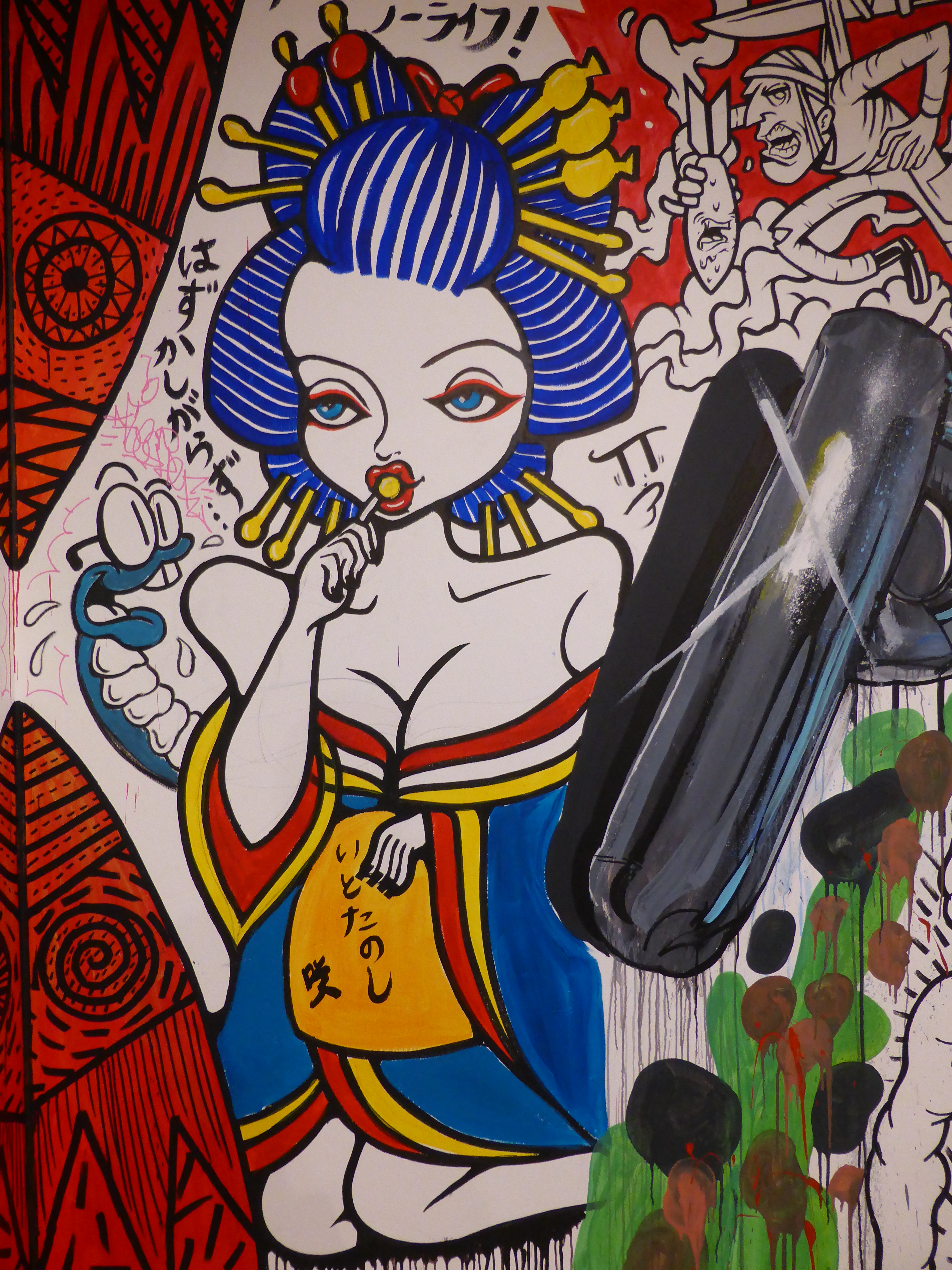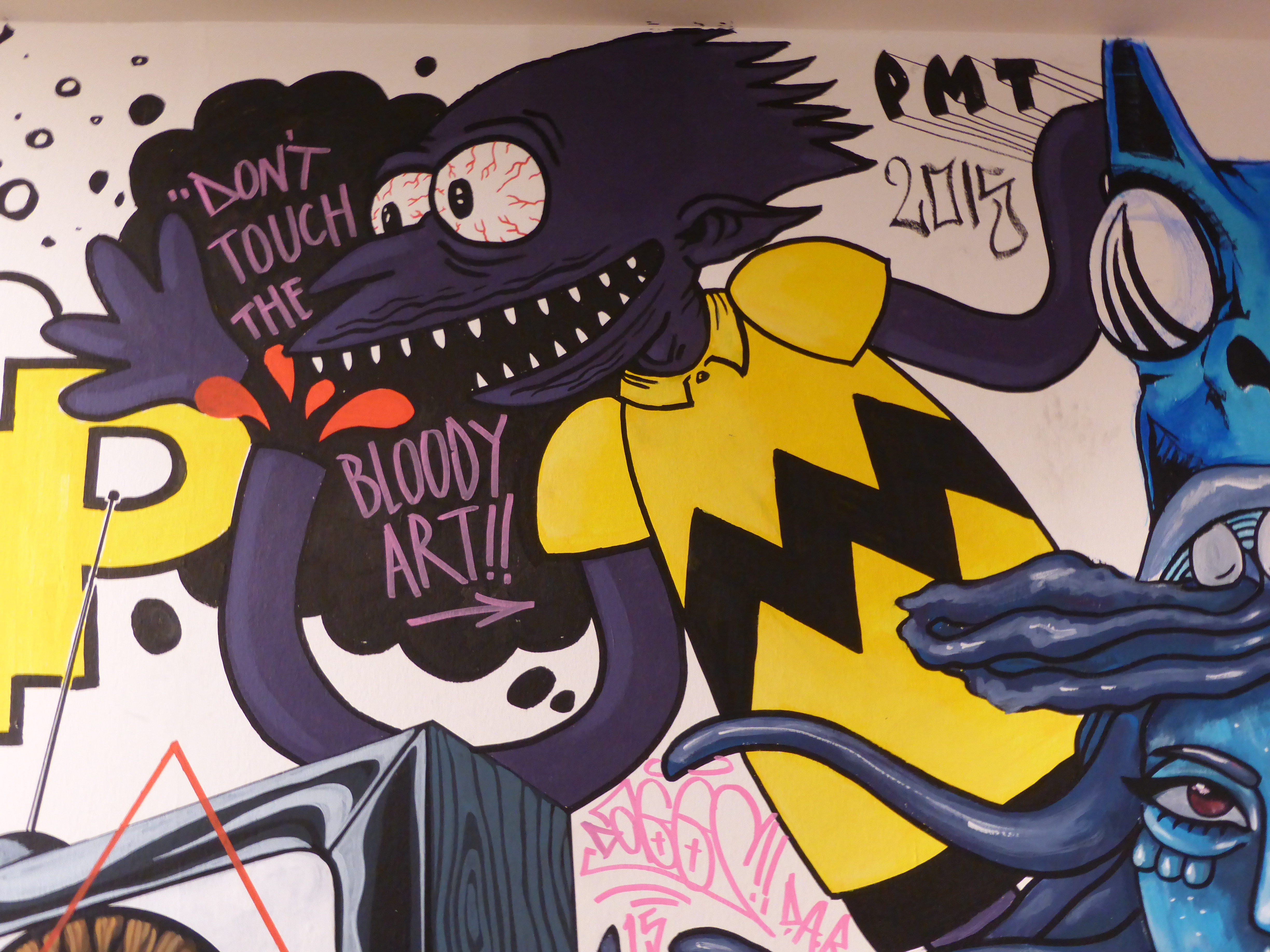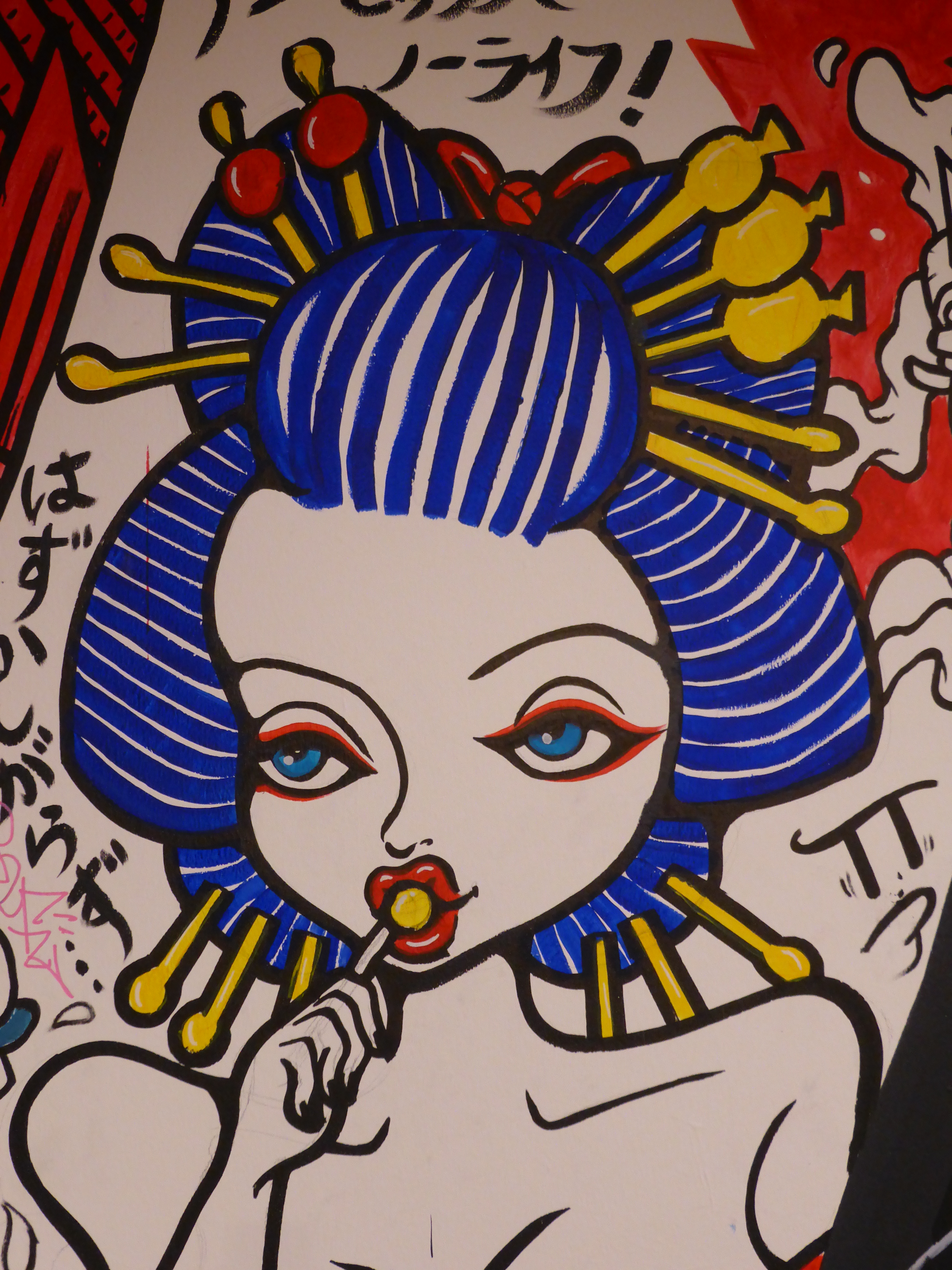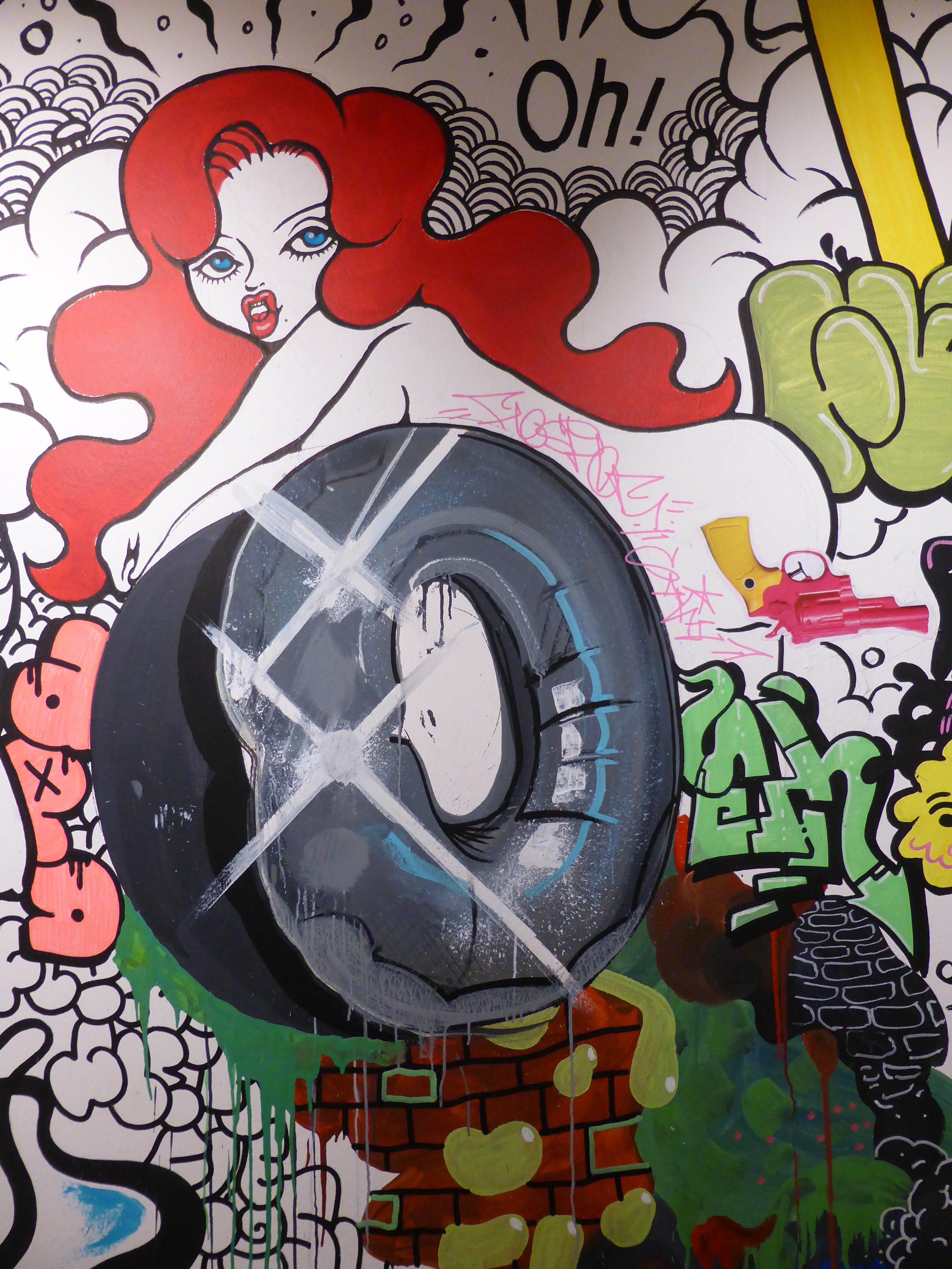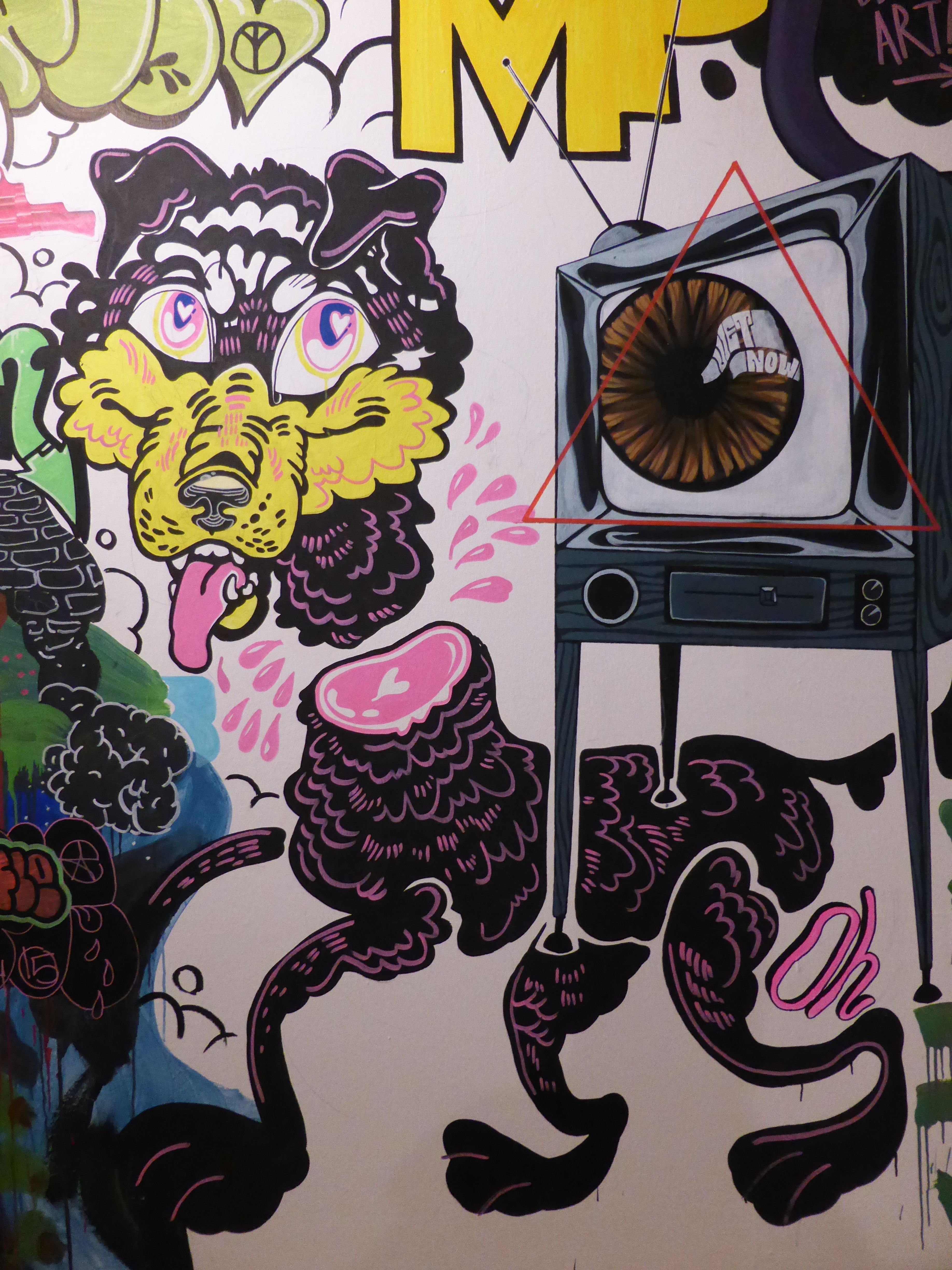Detail of work by SAKI&Bitches, with our favourite individual character painted on the wall, which really has such a strong Pop Art theme about it.