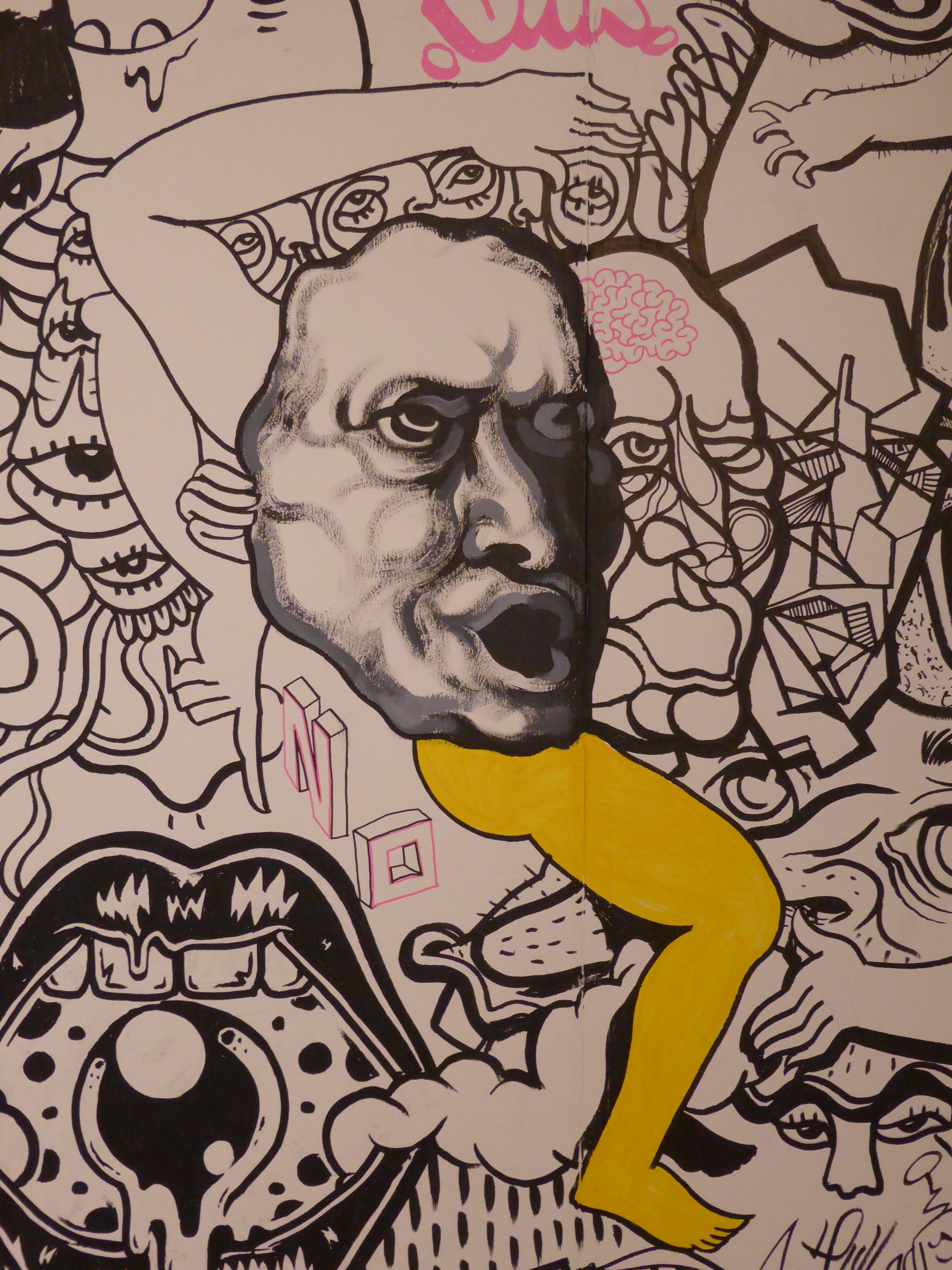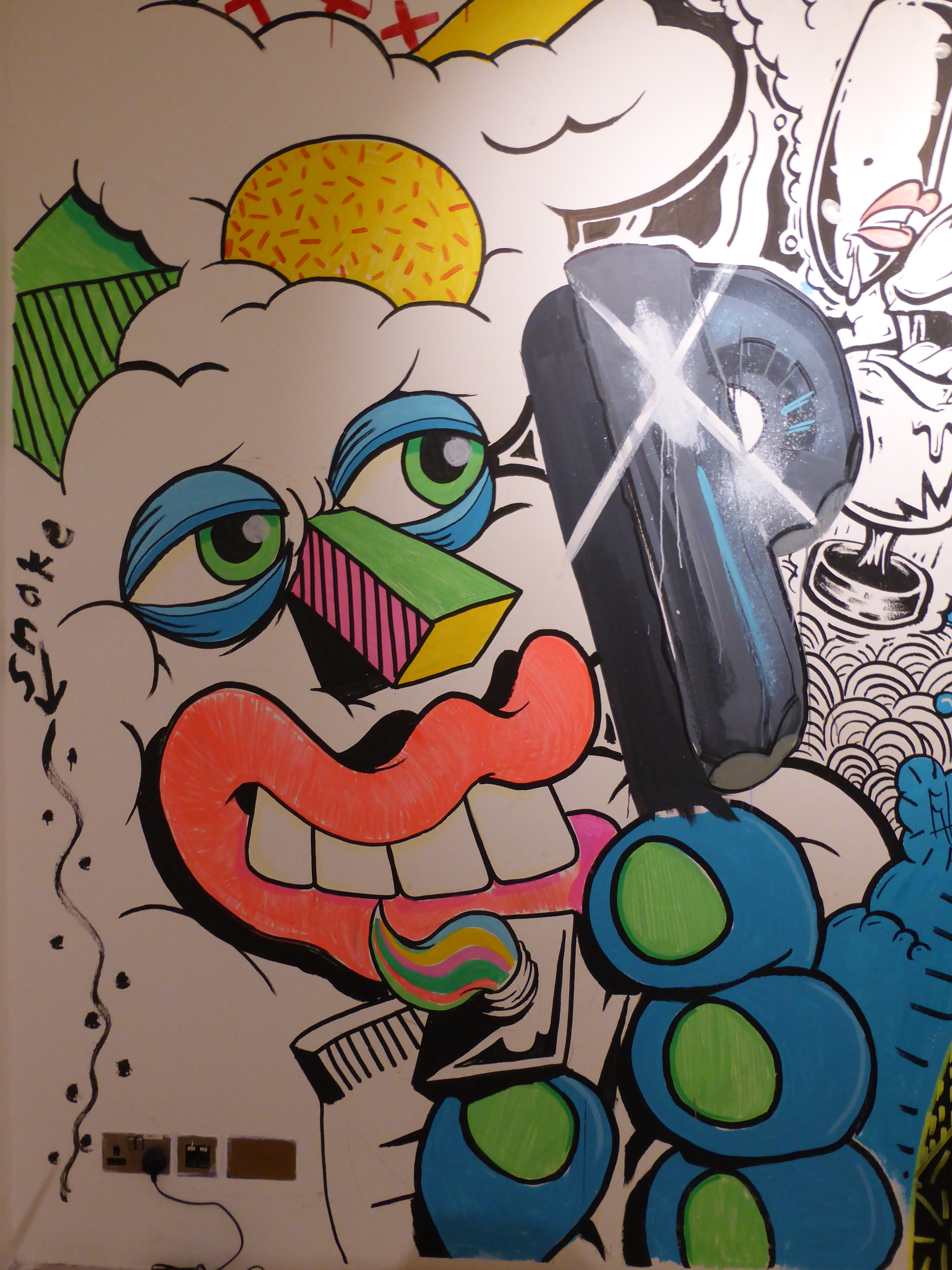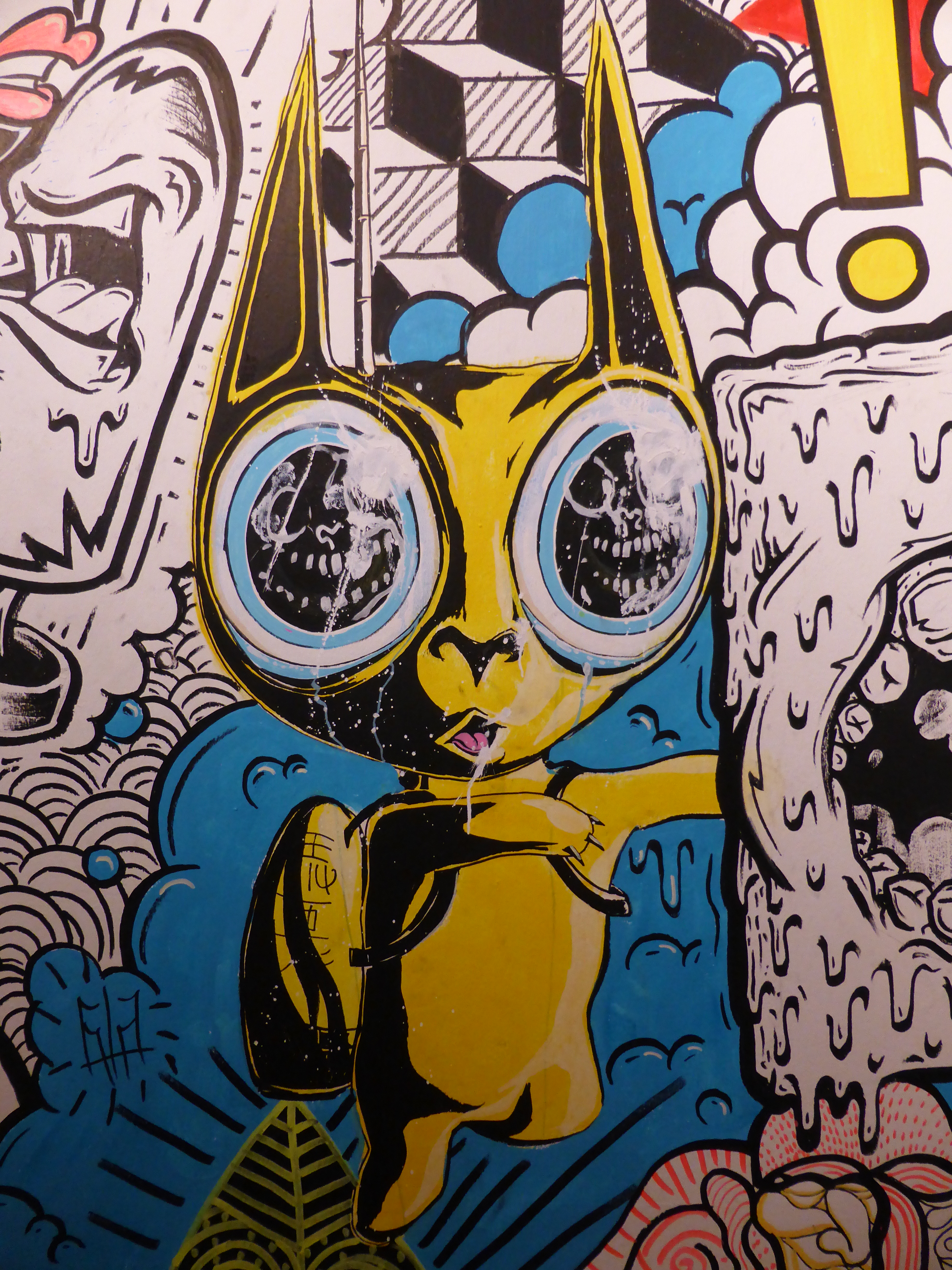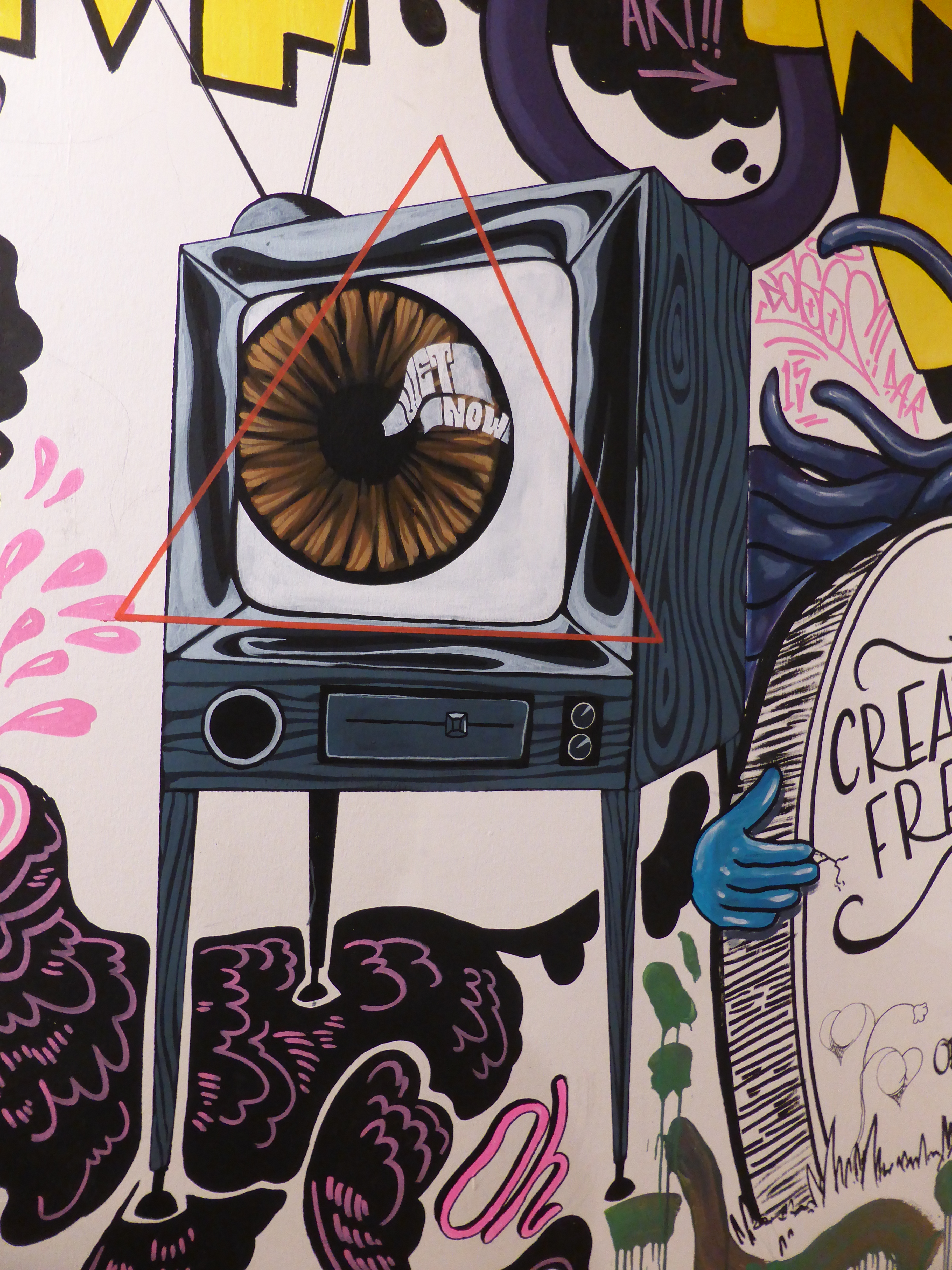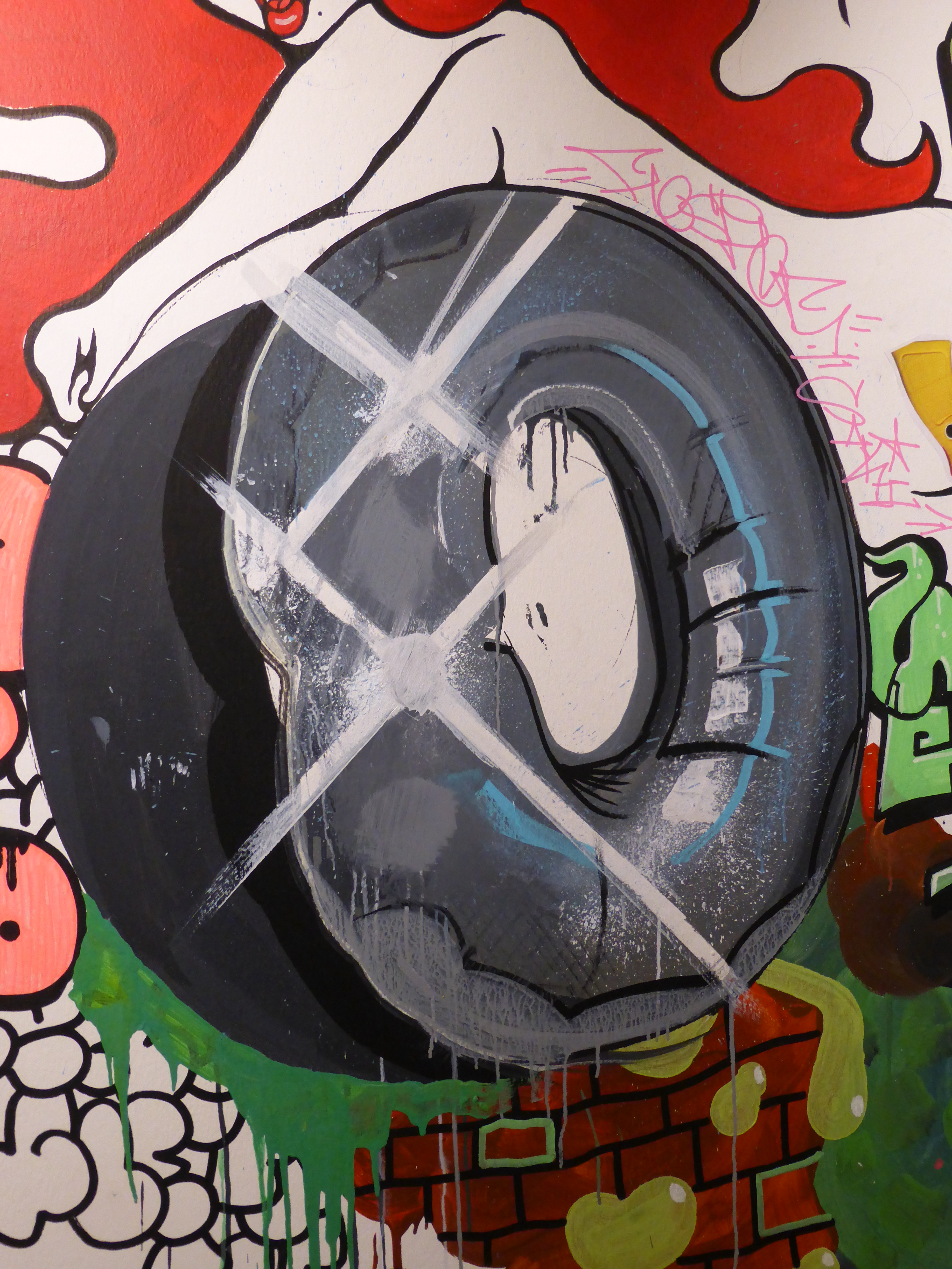 Detail of work by SAKI&Bitches, with our favourite individual character painted on the wall, which really has such a strong Pop Art theme about it.