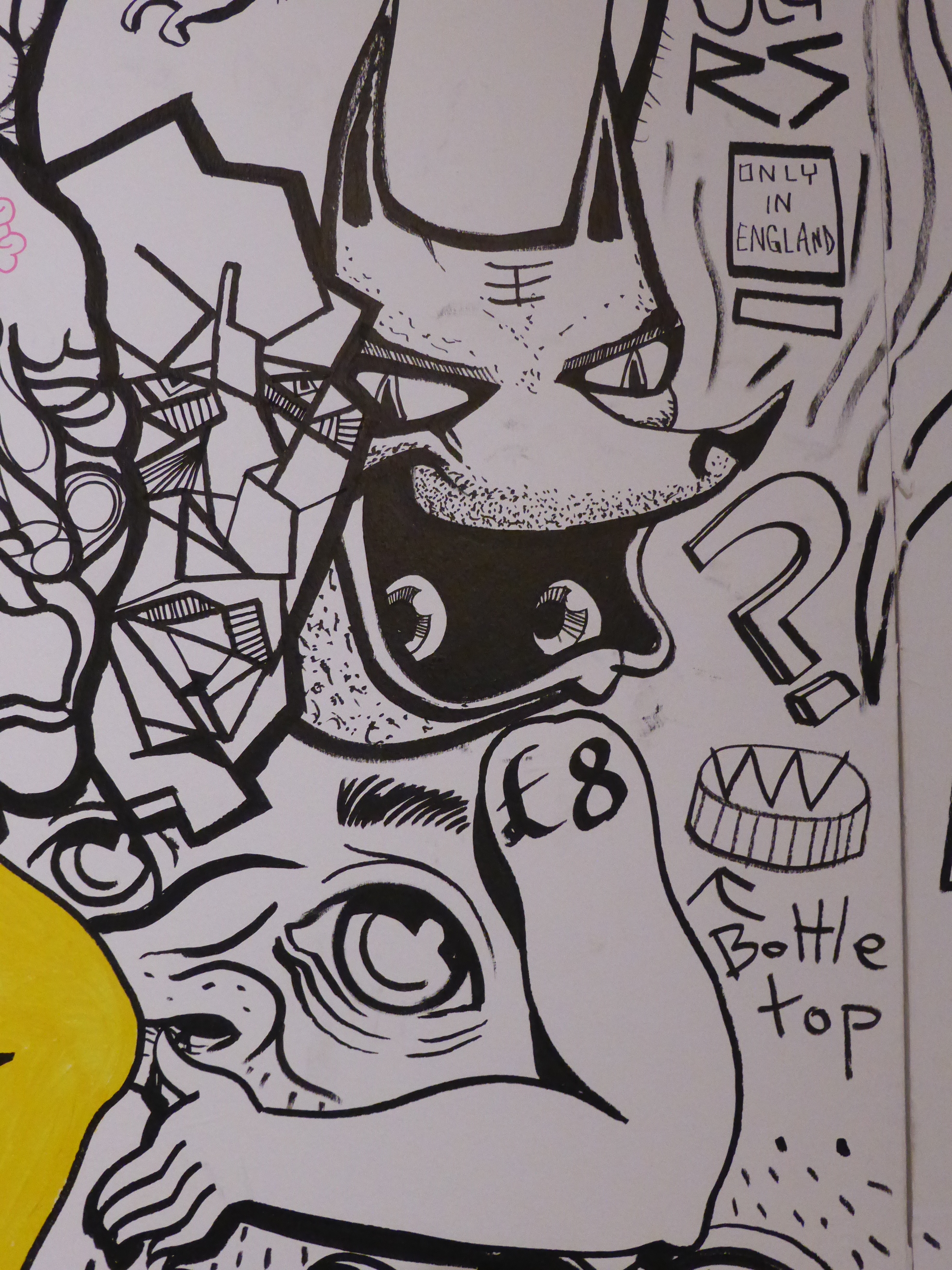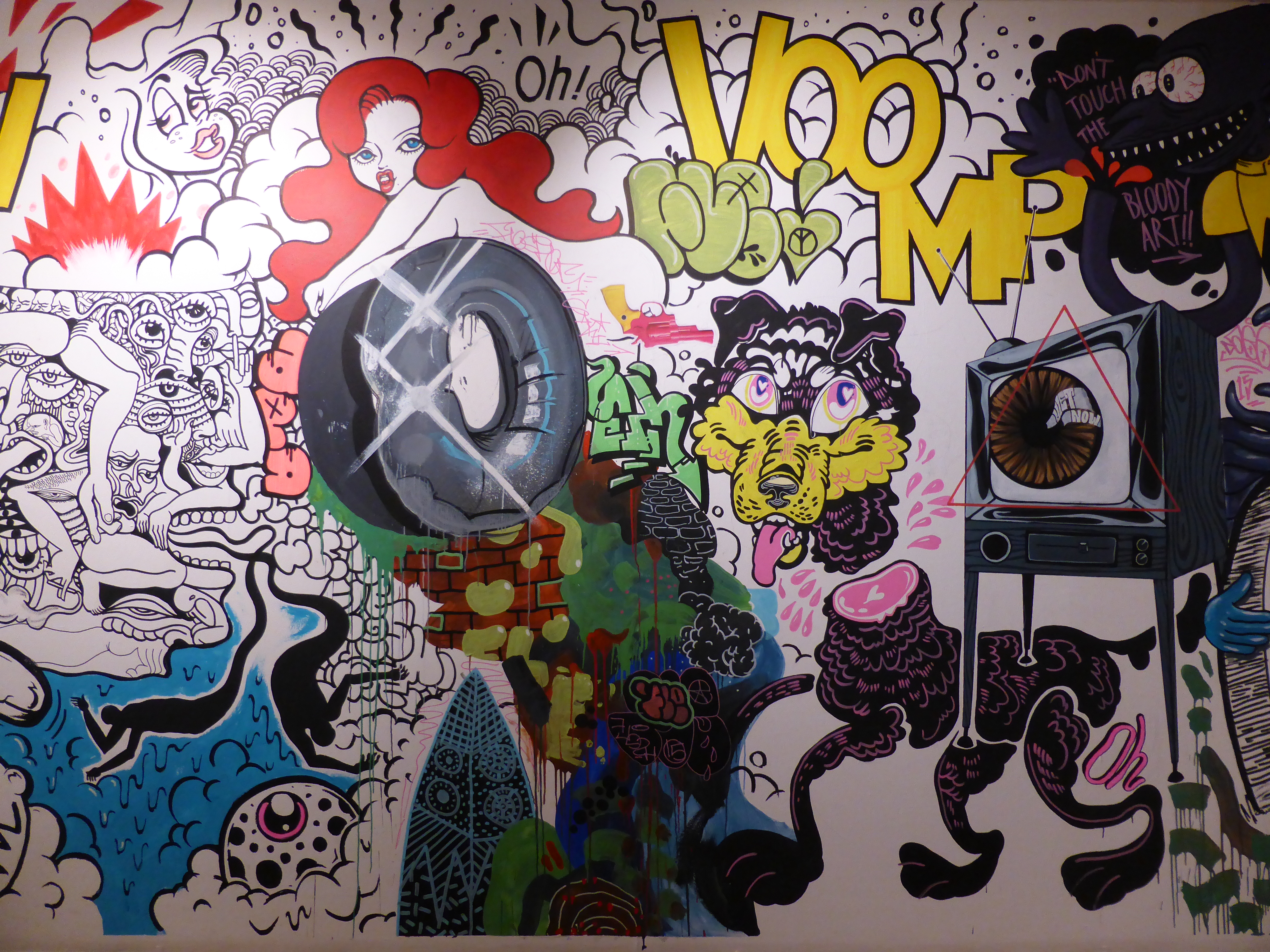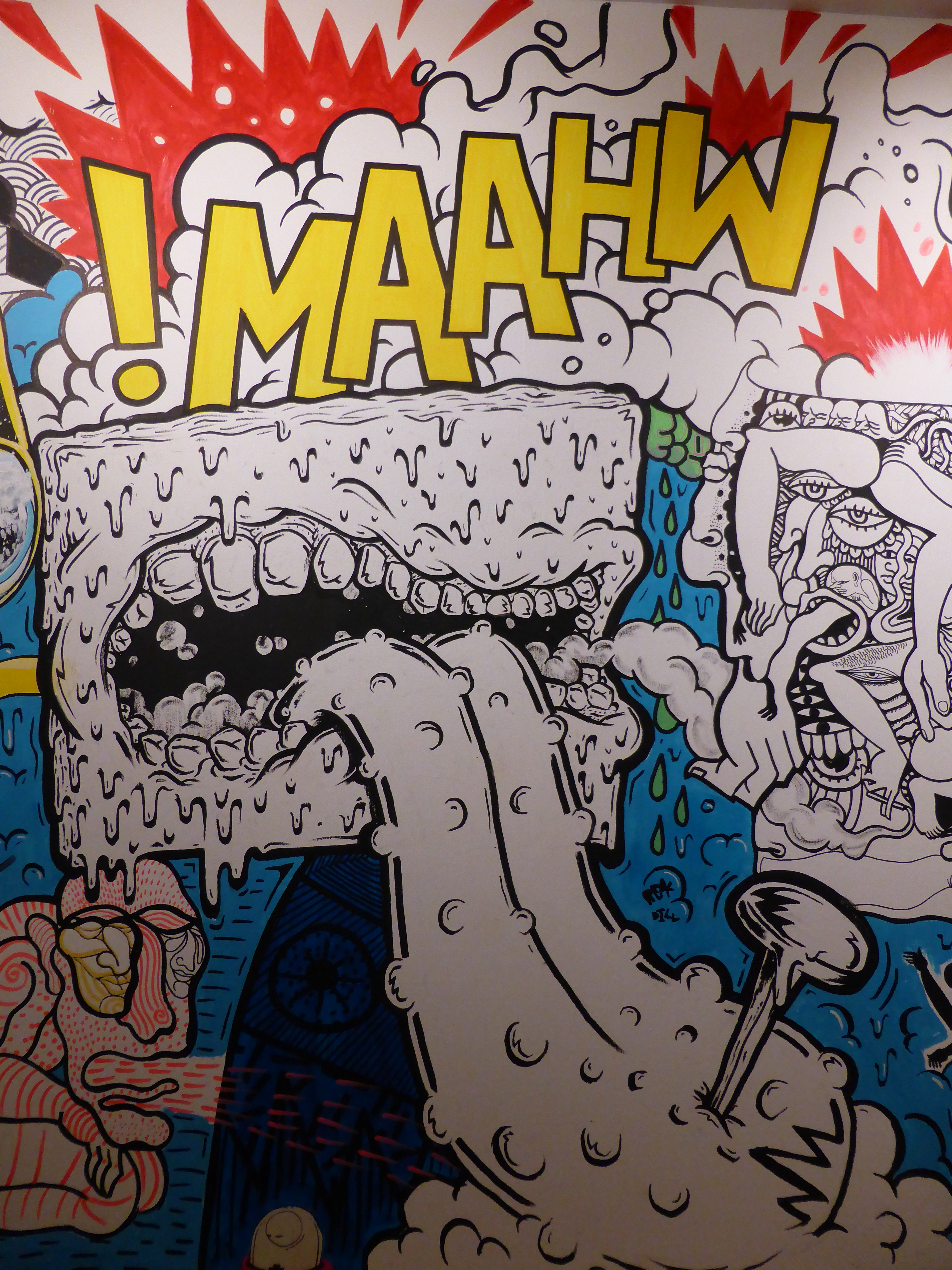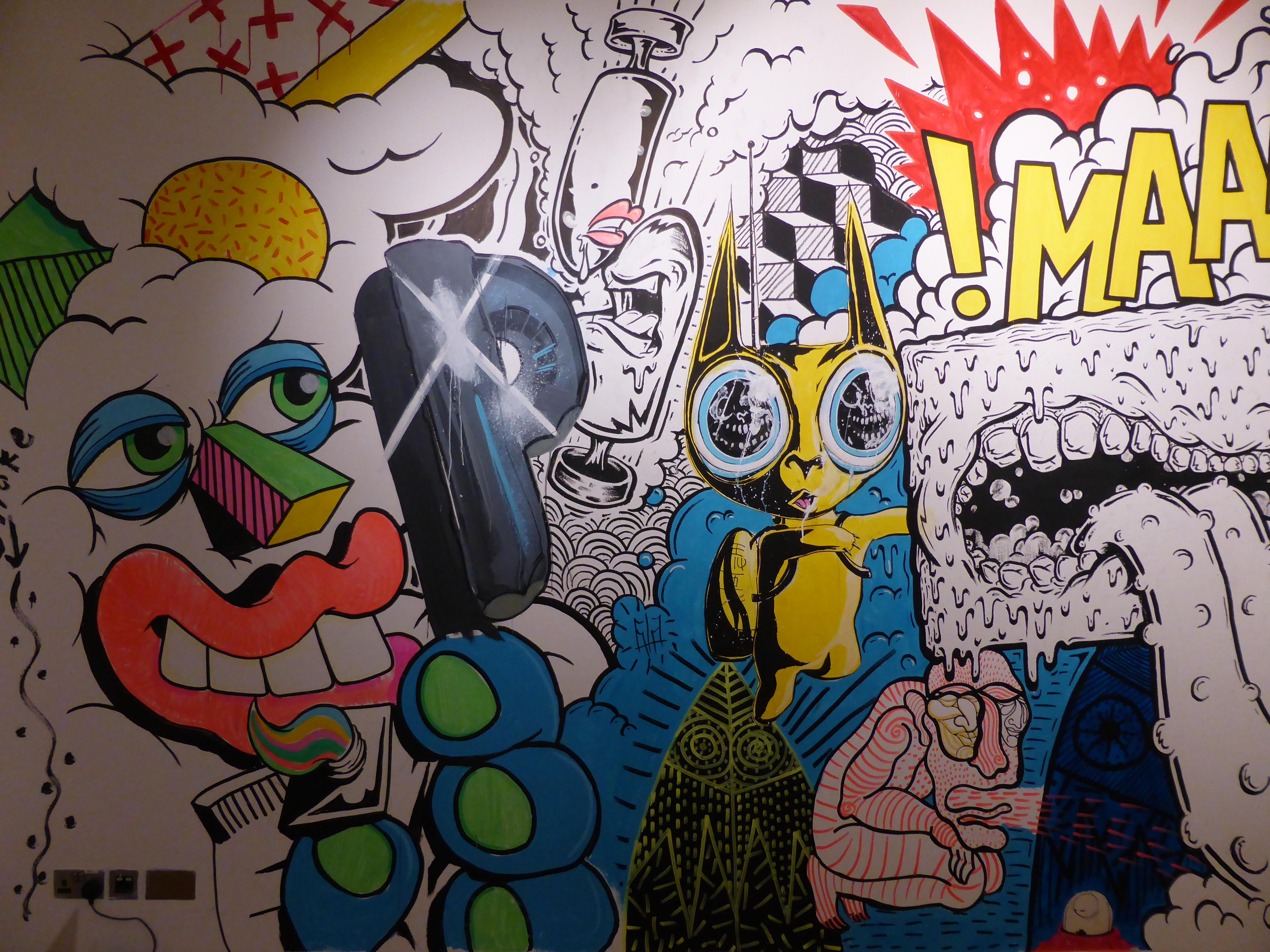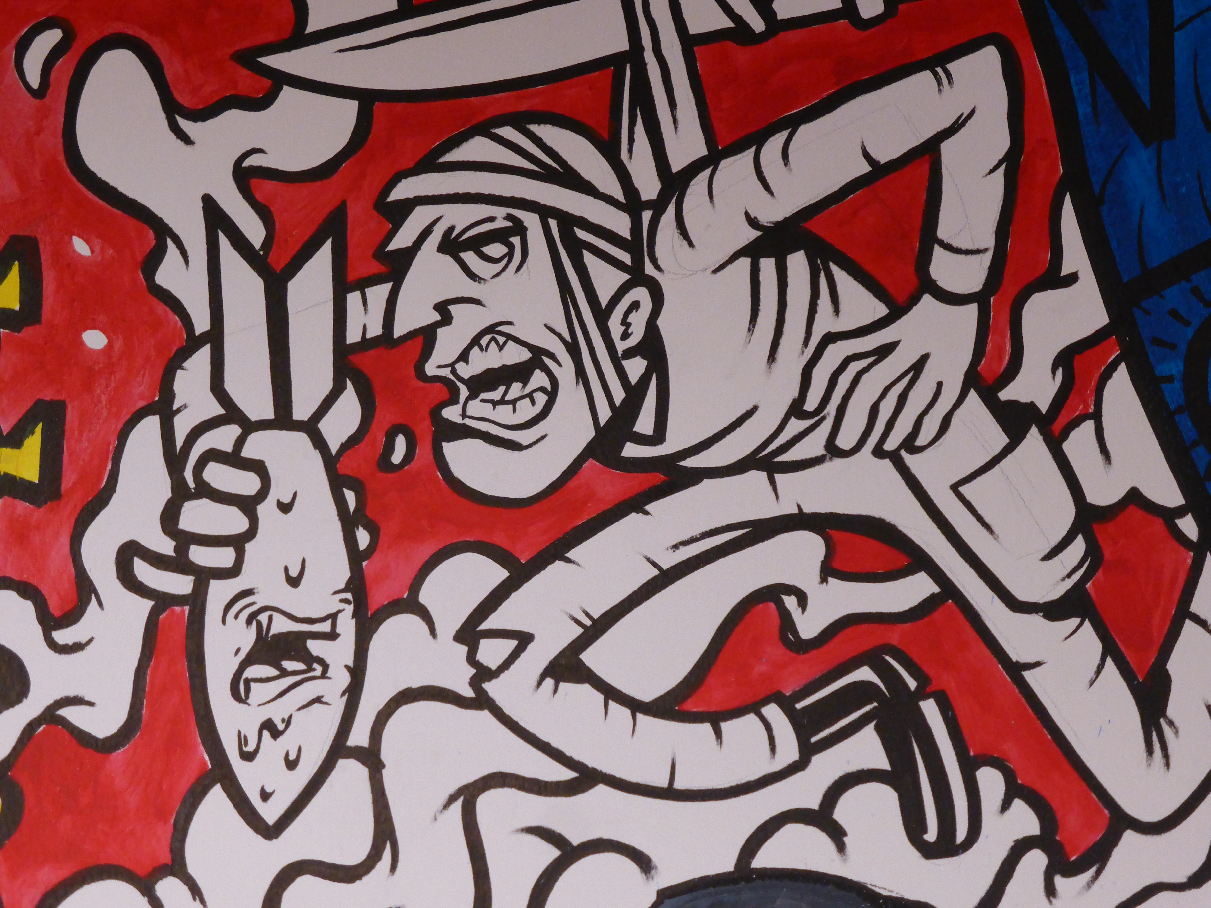 Detail of work by SAKI&Bitches, with our favourite individual character painted on the wall, which really has such a strong Pop Art theme about it.