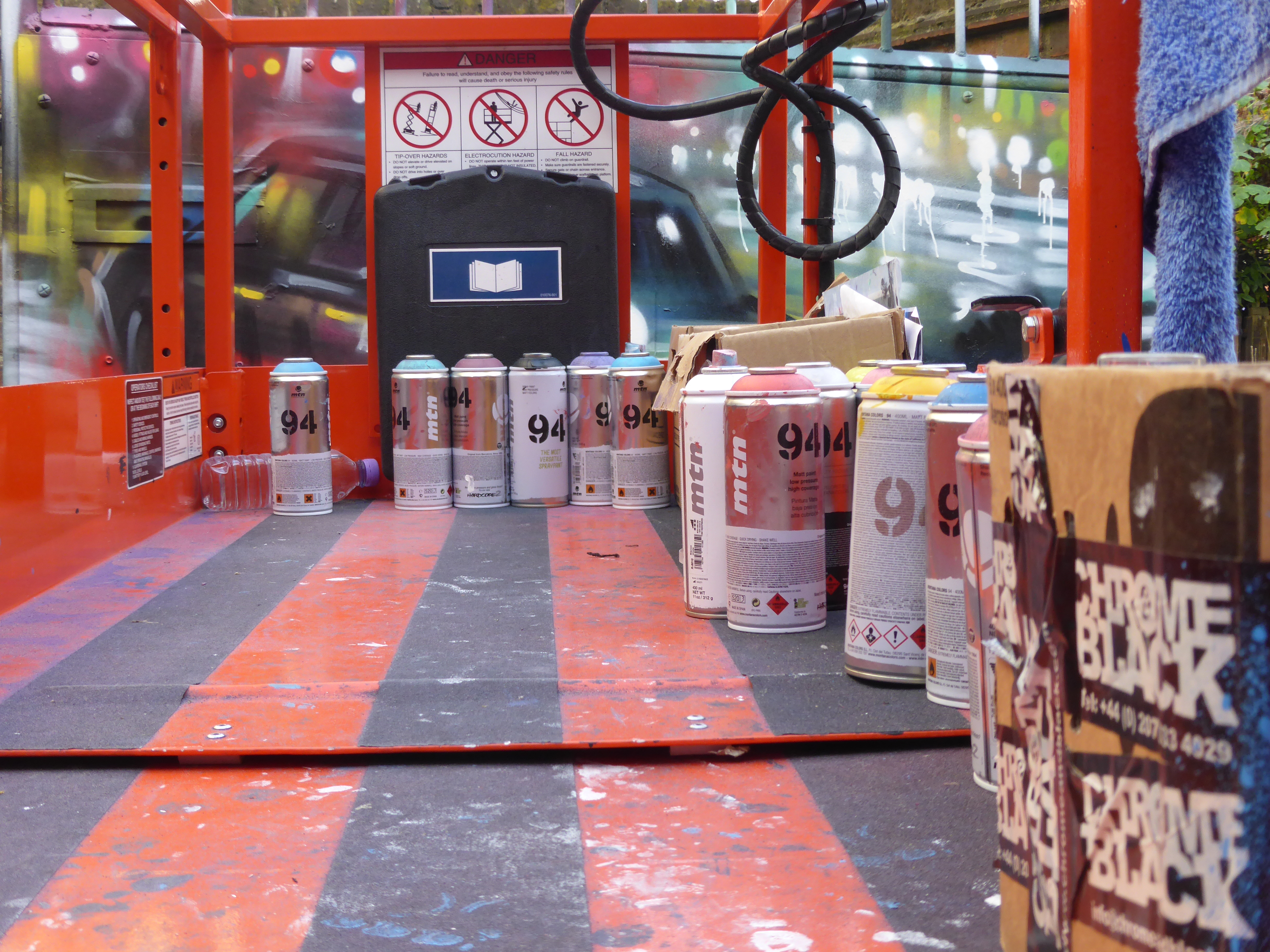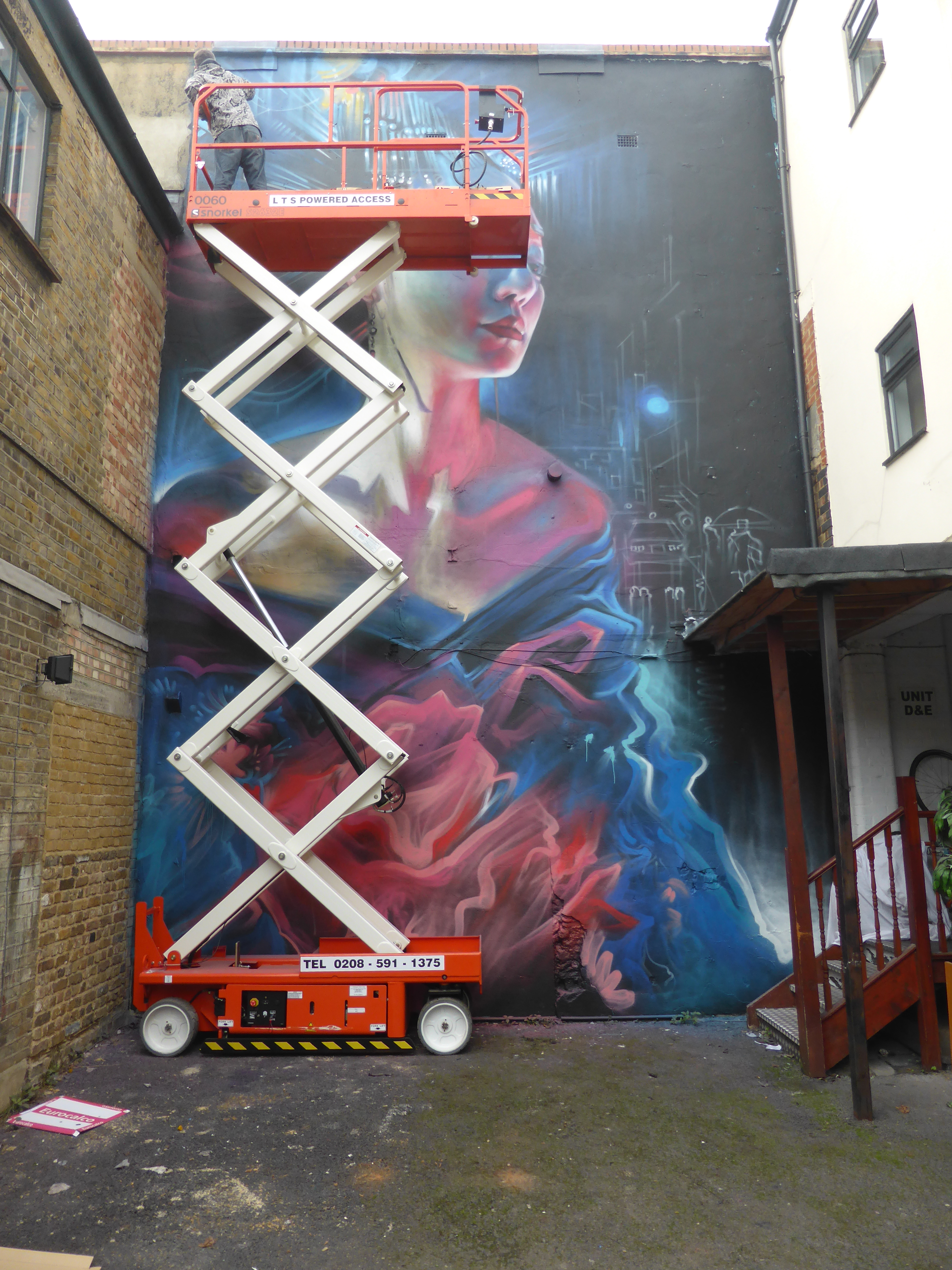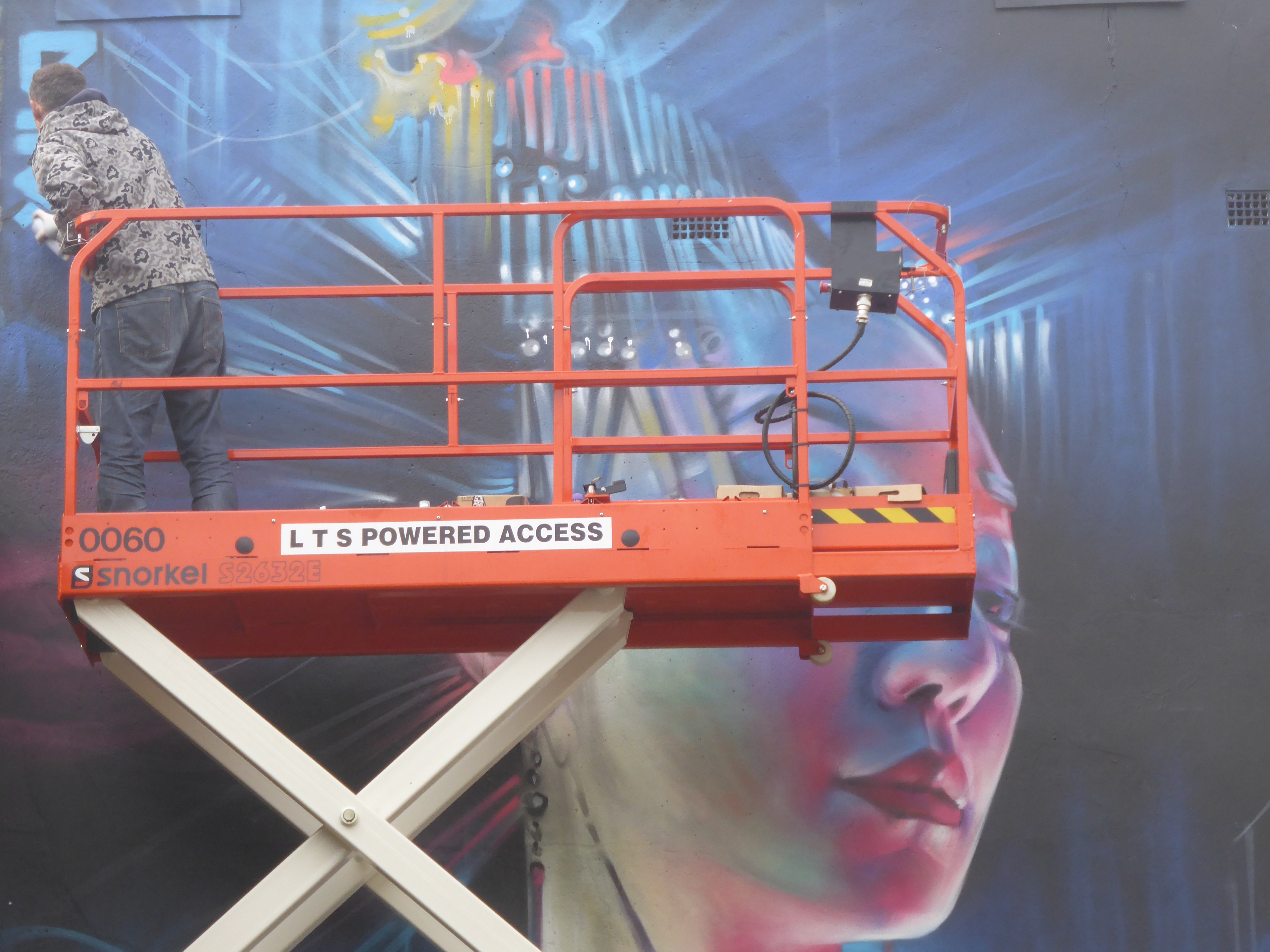 The stunning finished work, unfortunately as the light was dropping by this point our finished shots taken from aloft the scissor lift don’t do the colours in this work justice.