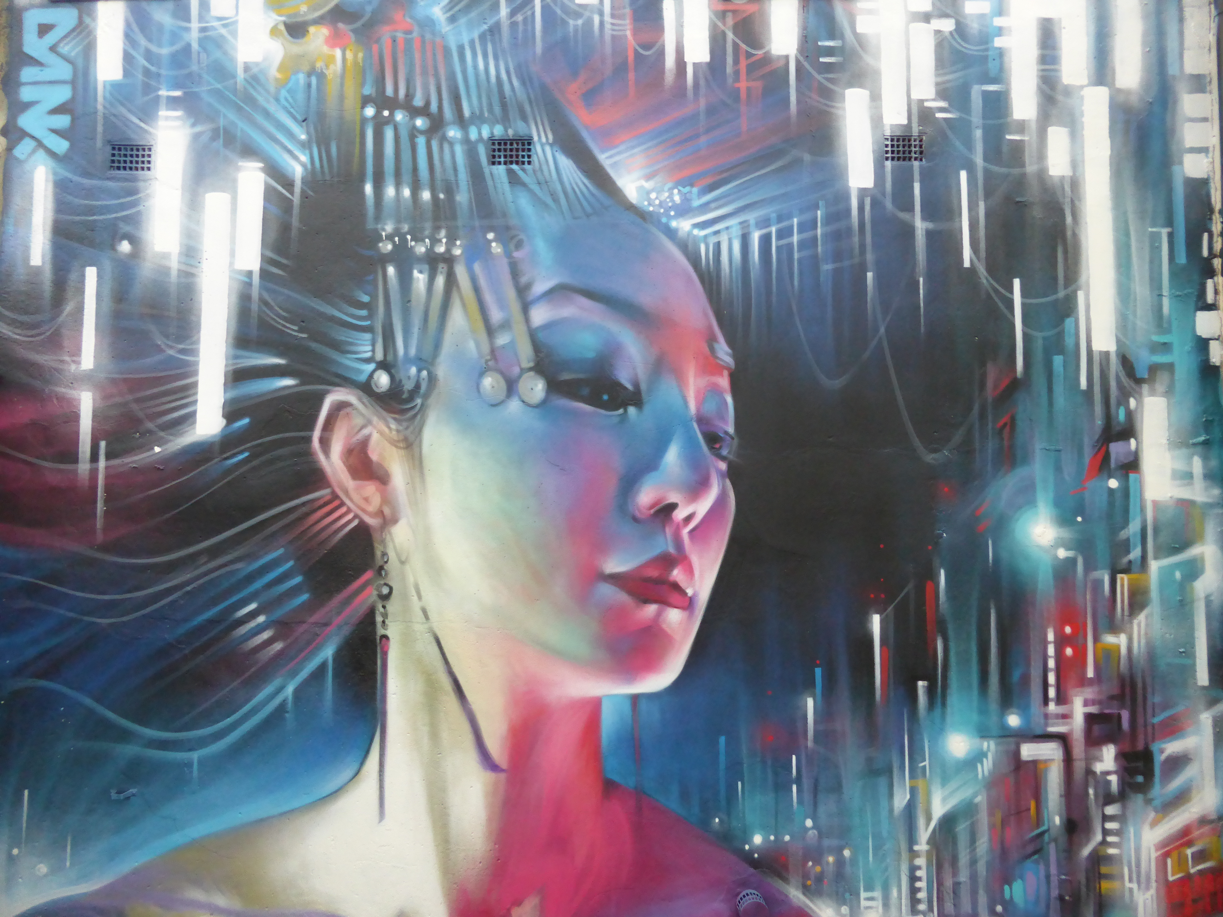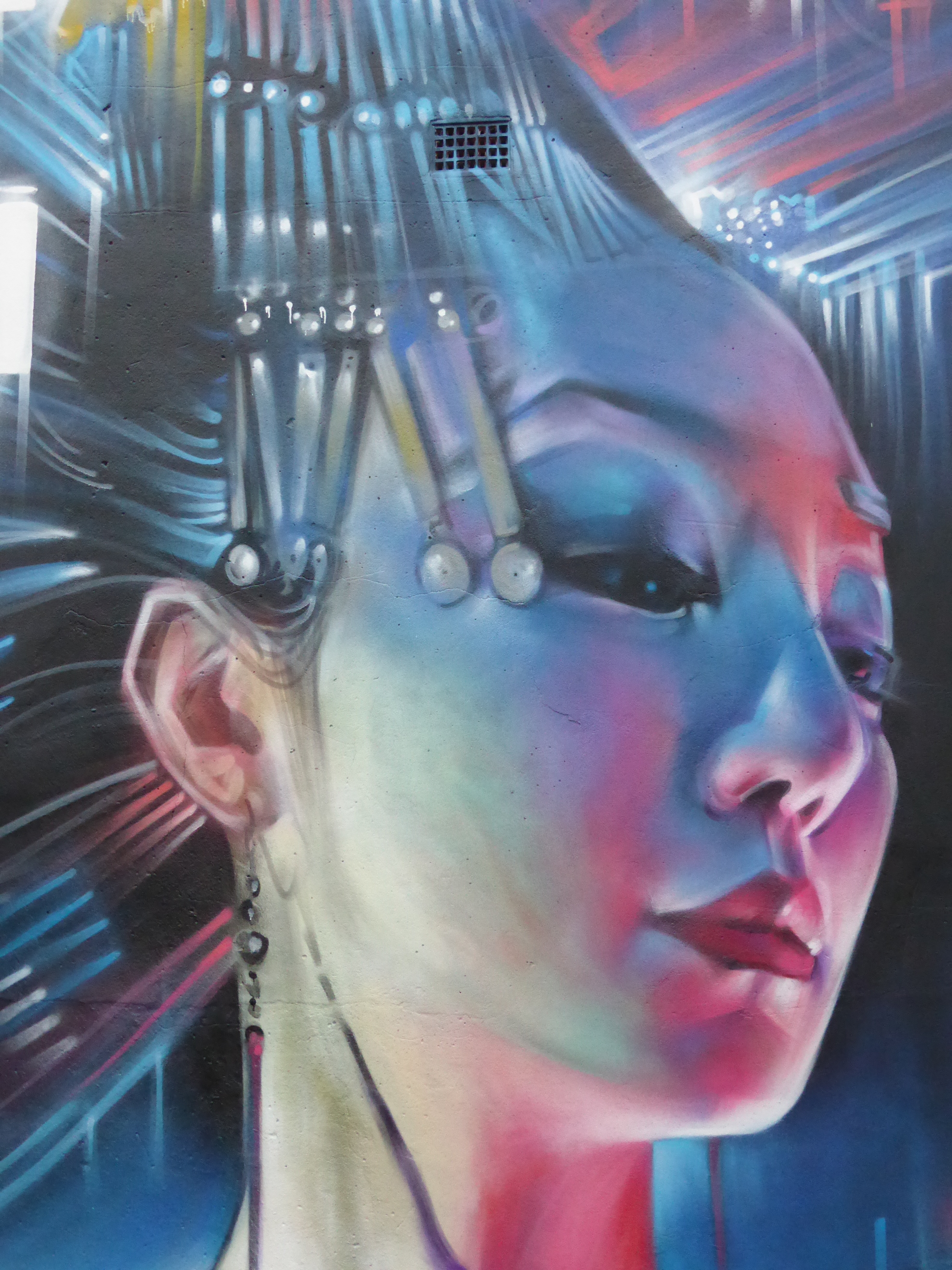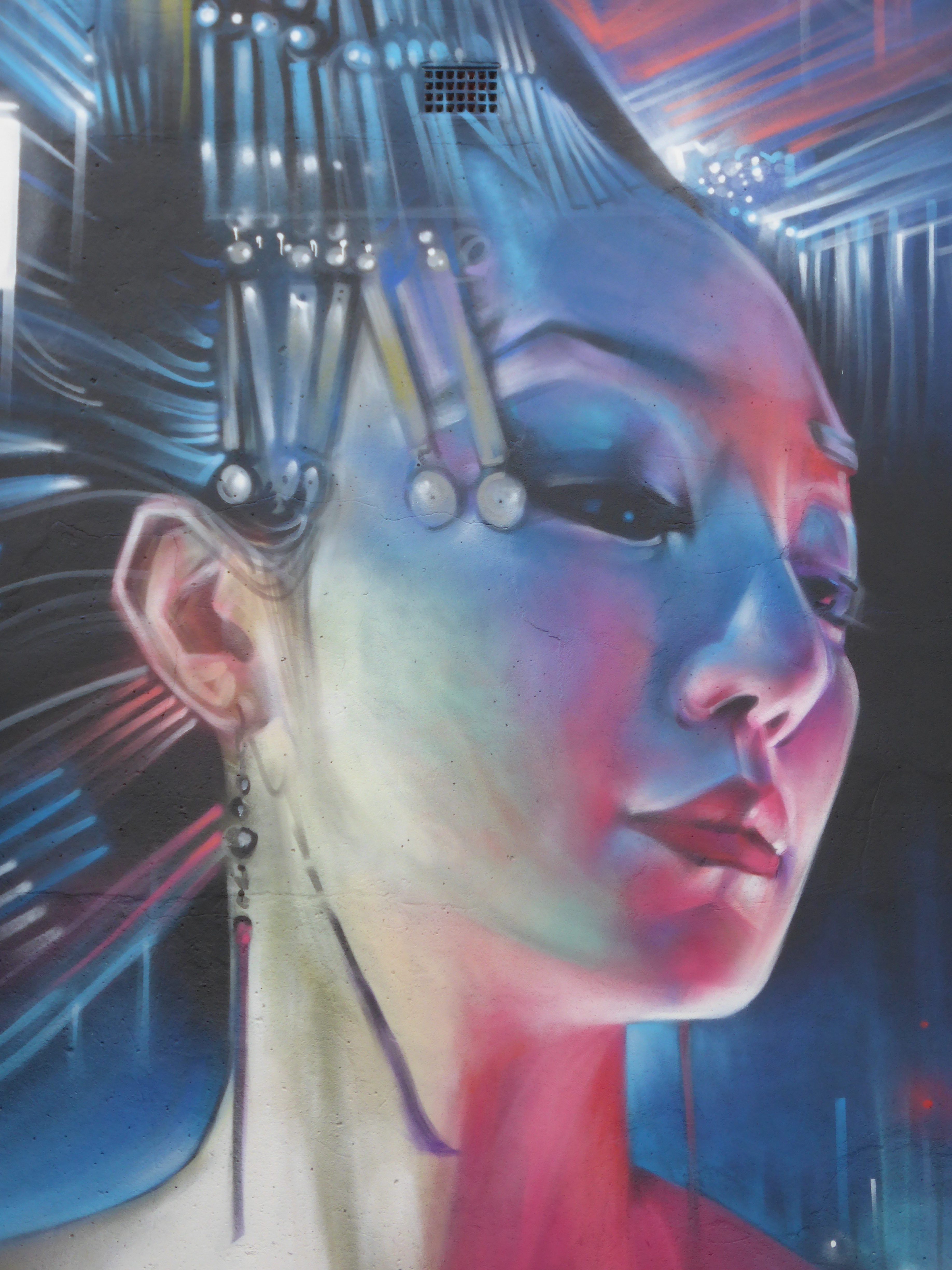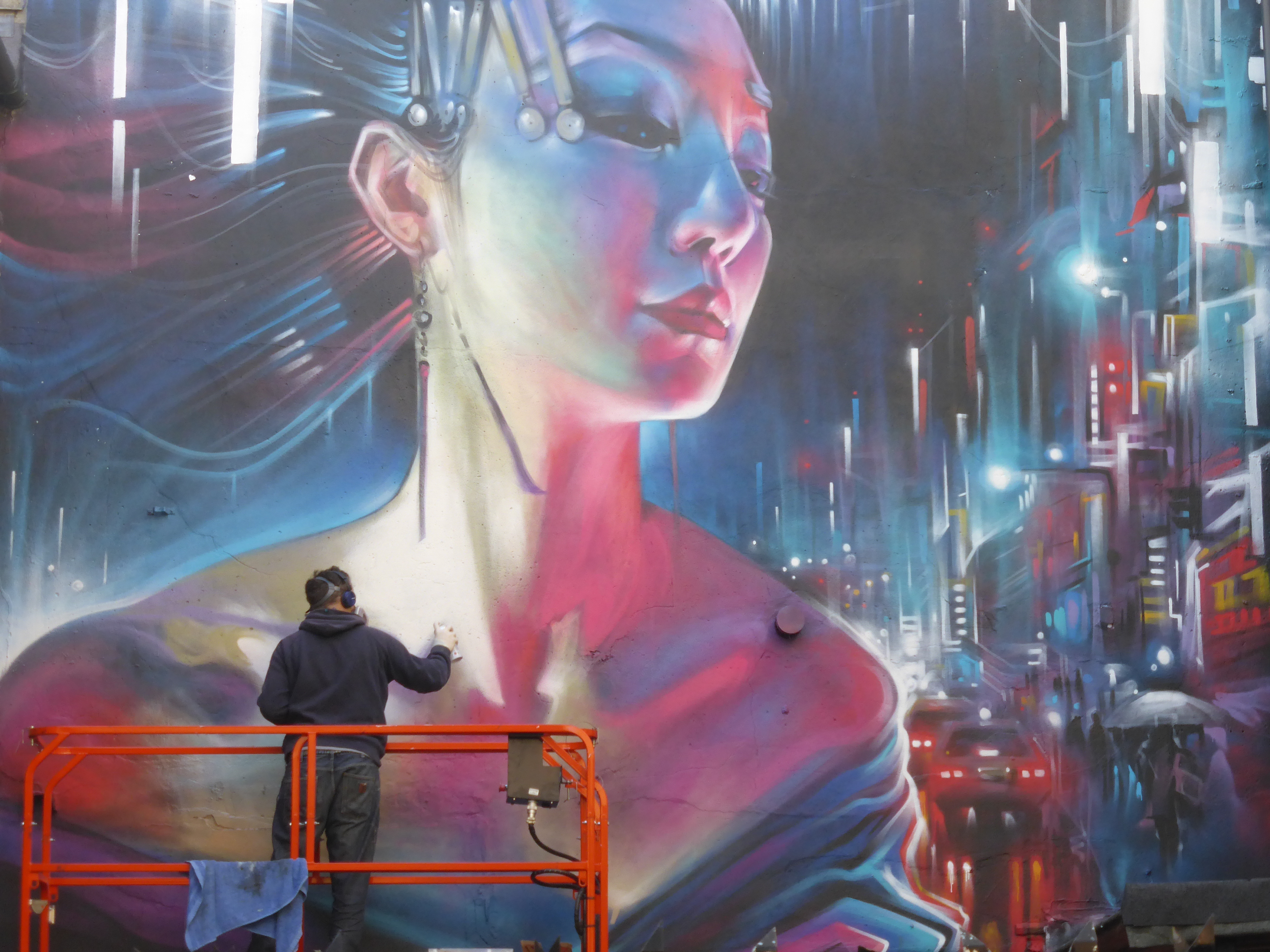 Our favourite progress shot of the work, with Dank’s Geisha giving the him a look of appearing disinterest, she is the essence of a major city and doesn’t have time for such trivial matters as someone painting.