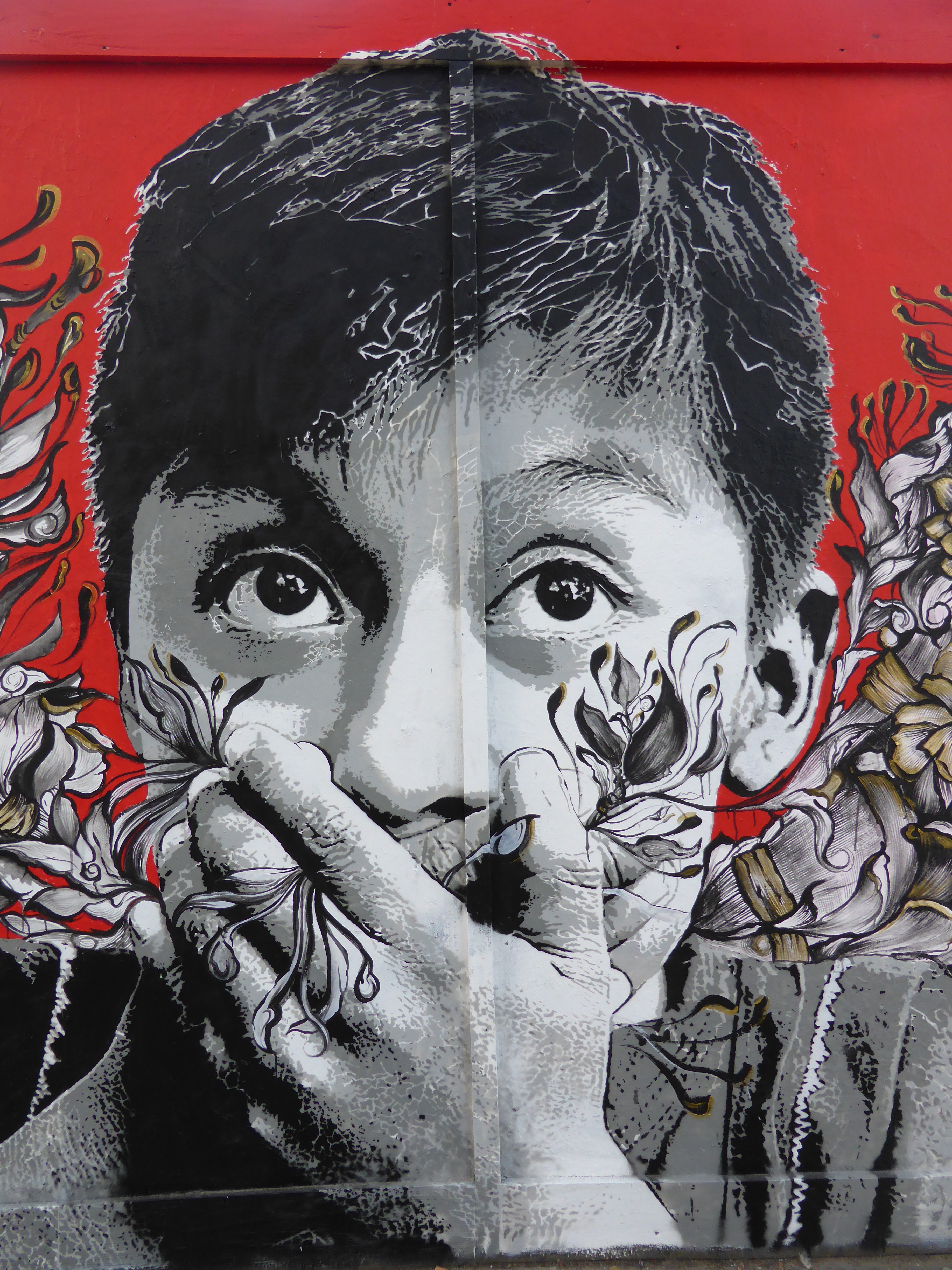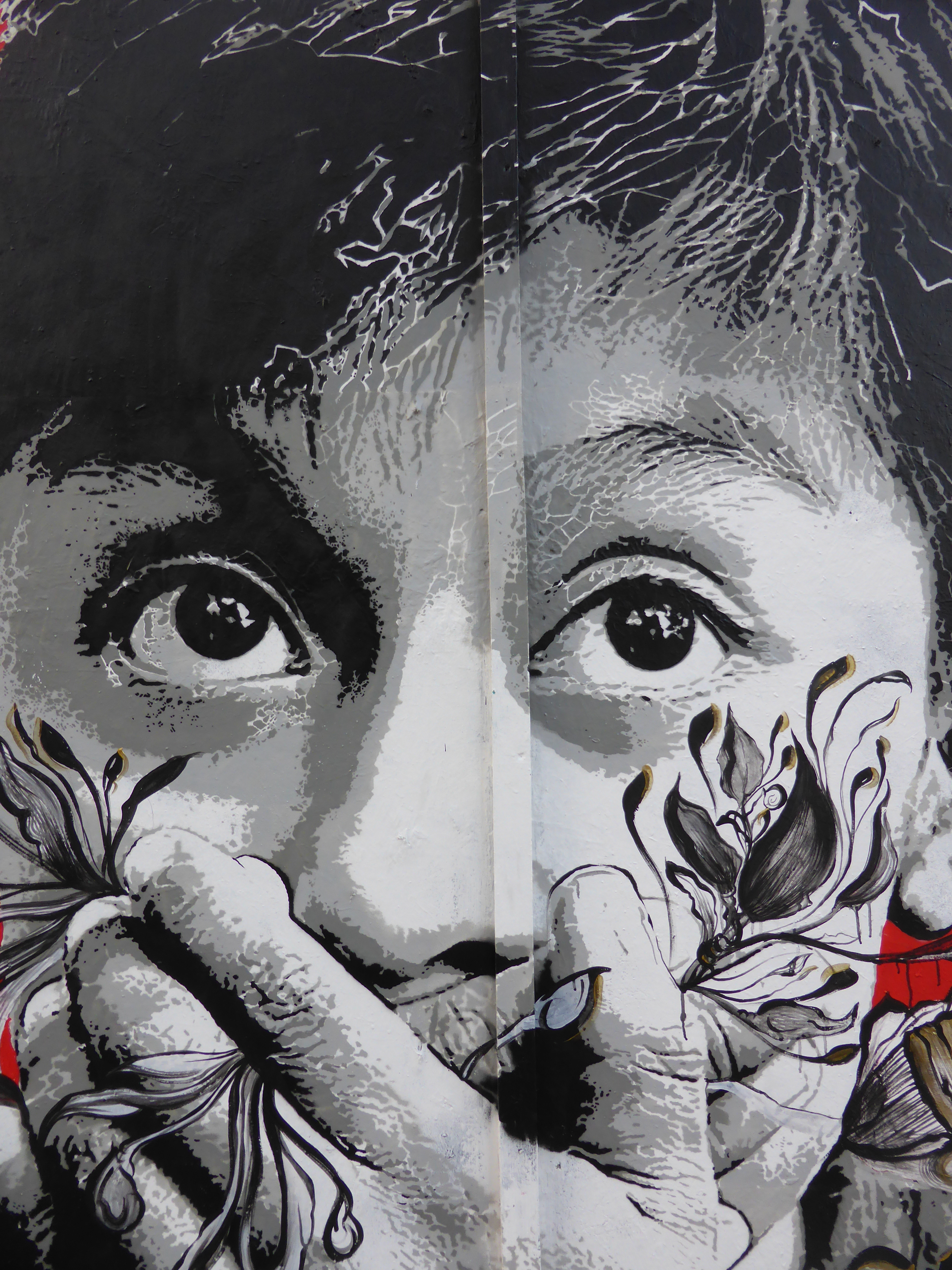 Today Lapiztola is the creative force responsible for much of the street art in Oaxaca. The collectives name is a juxtaposition of the Spanish words for ‘pencil’ and ‘pistol’. Their art is striking, publicly owned and sets to offer inspiration to take action. Many of the artists images highlight issues around child welfare and focus on empathy towards children, as reflected in the subject of this stunning and intriguing work. The collective states that “Our style emerged from the need to express and demonstrate against what has been happening in our city”.