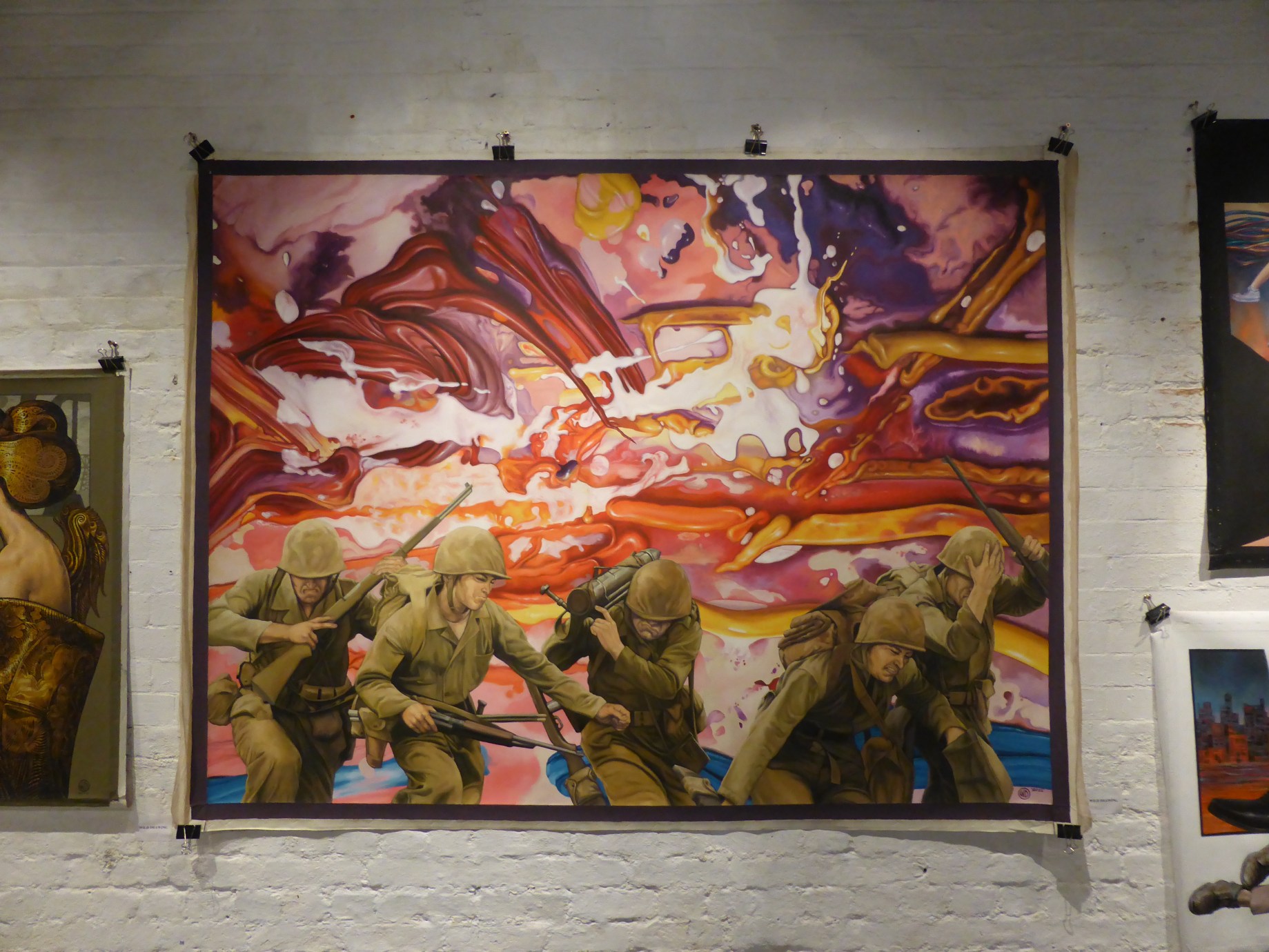 Work by Wild Drawing, love the manic tone of the charging soldiers set to such a bright explosive backdrop.