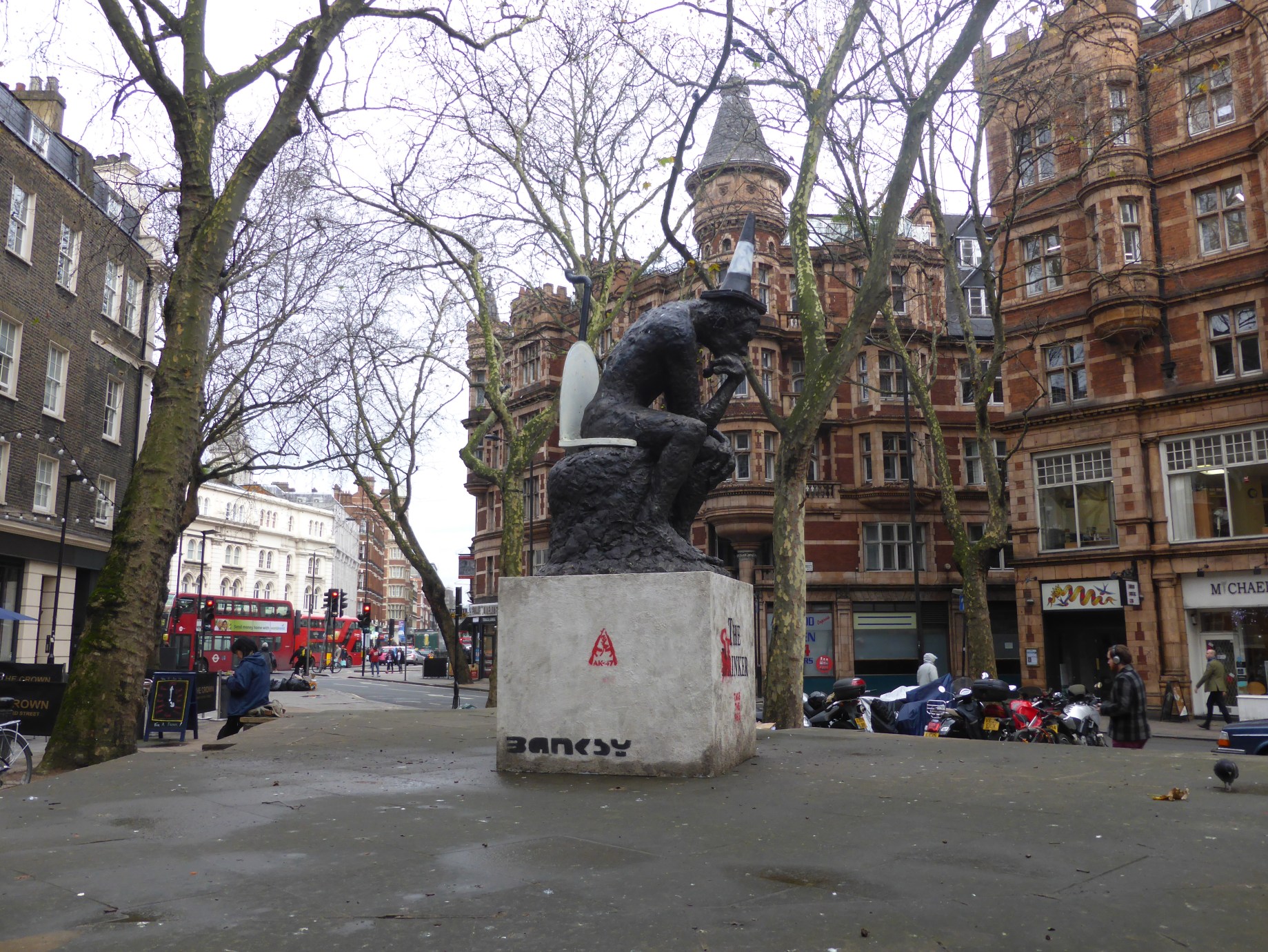 Originally placed up in a Shaftesbury Avenue in a little square adjacent the Shaftesbury Theatre in 2004, the statues lifespan was cut short when it was stolen by artist AK47, following a feud he had with Banksy over an unsigned print he had purchased. In response to Banksy’s refusal to sign said print AK47 decided to take revenge by stealing ‘The Drinker’ which was subject to an illegal placing in the first place, resulting in no one reporting the crime, and unsuccessfully holding it ransom.