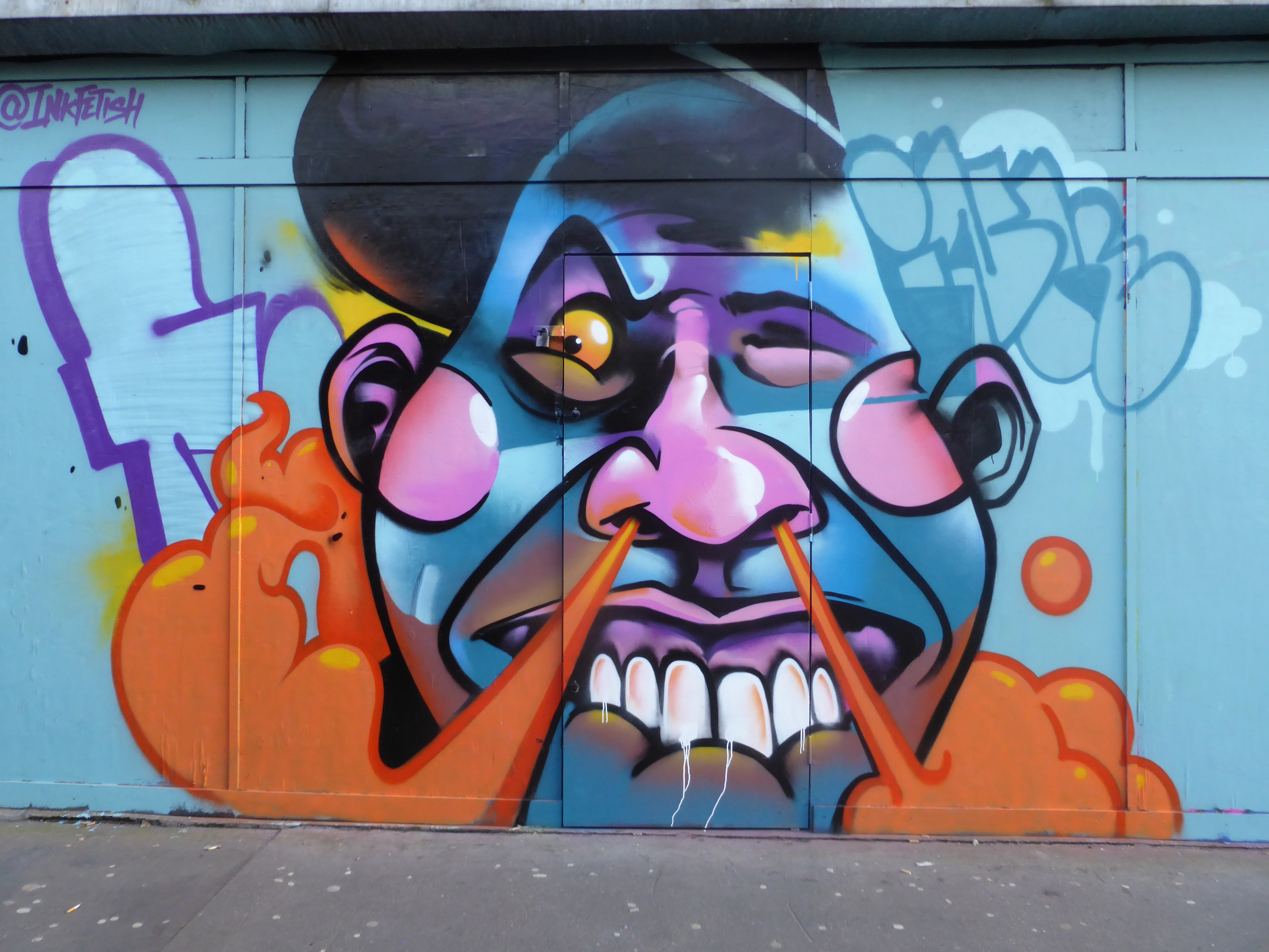 For the remainder of the year Croydon consistently provided a steady series of fresh works coming and going around the Arts Quarter. We have seen many impressive works in Croydon over the last year, and particular highlights have been the many fantastic works from seen from Morgandy & Eska, who really have done alot for Croydon this year, painting several wonderful pieces together and apart. The Femme Fierce Croydon event, our first Paint Jam and a day with great art and a great atmosphere, highlights of the day were works from Aylo & Cbloxx, Pang, Amara Por Dios, Giusi Tomasello and Zina. Additionally we have loved the pair of works from Mr Cenz last year, SkyHigh’s shark piece, Fio Silva painting her first UK wall and Dotmasters pair of characters. However our favourite work this year from Croydon goes to not one, but three pieces, all by Dan Kitchener with his trio of ‘Liquid Lights’ works in Park Street.