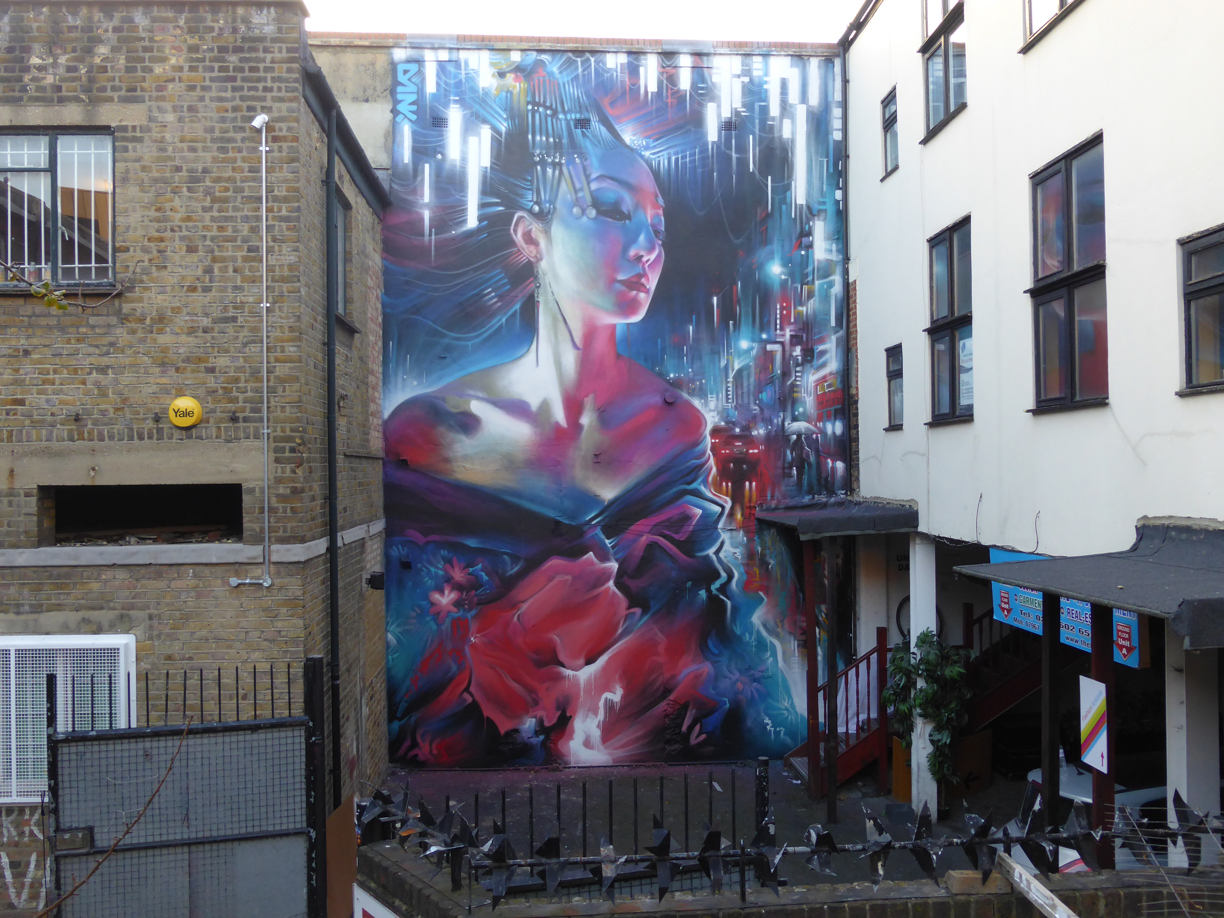 The stunning ‘Queen Of Neon’ mural outside the 5th Base Gallery. You can view more pictures of this work being made and finished in our post (covered here).