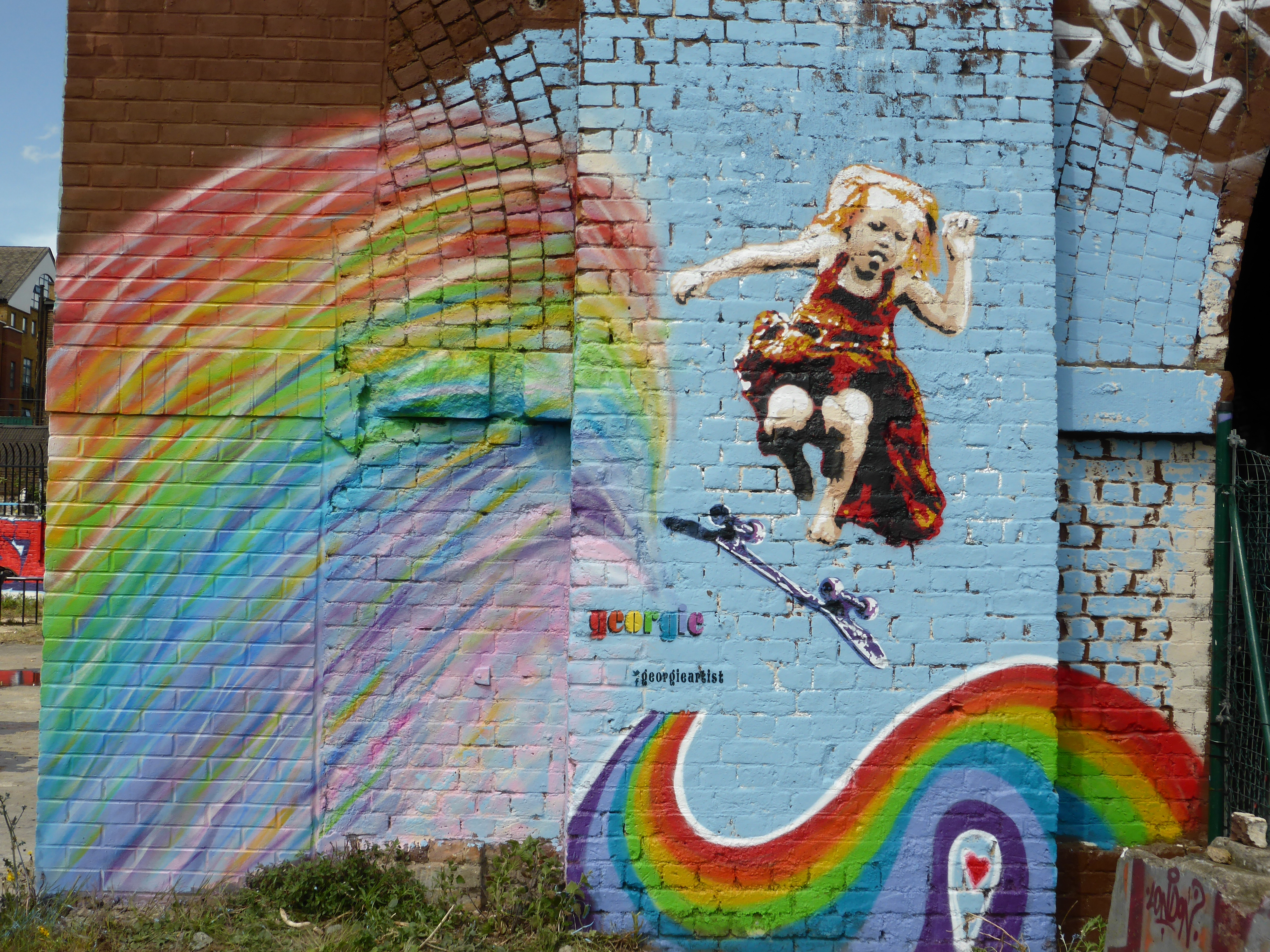 Colourful work spreading the ethos of the project, created by local children with some help from Roo & SkyHigh.