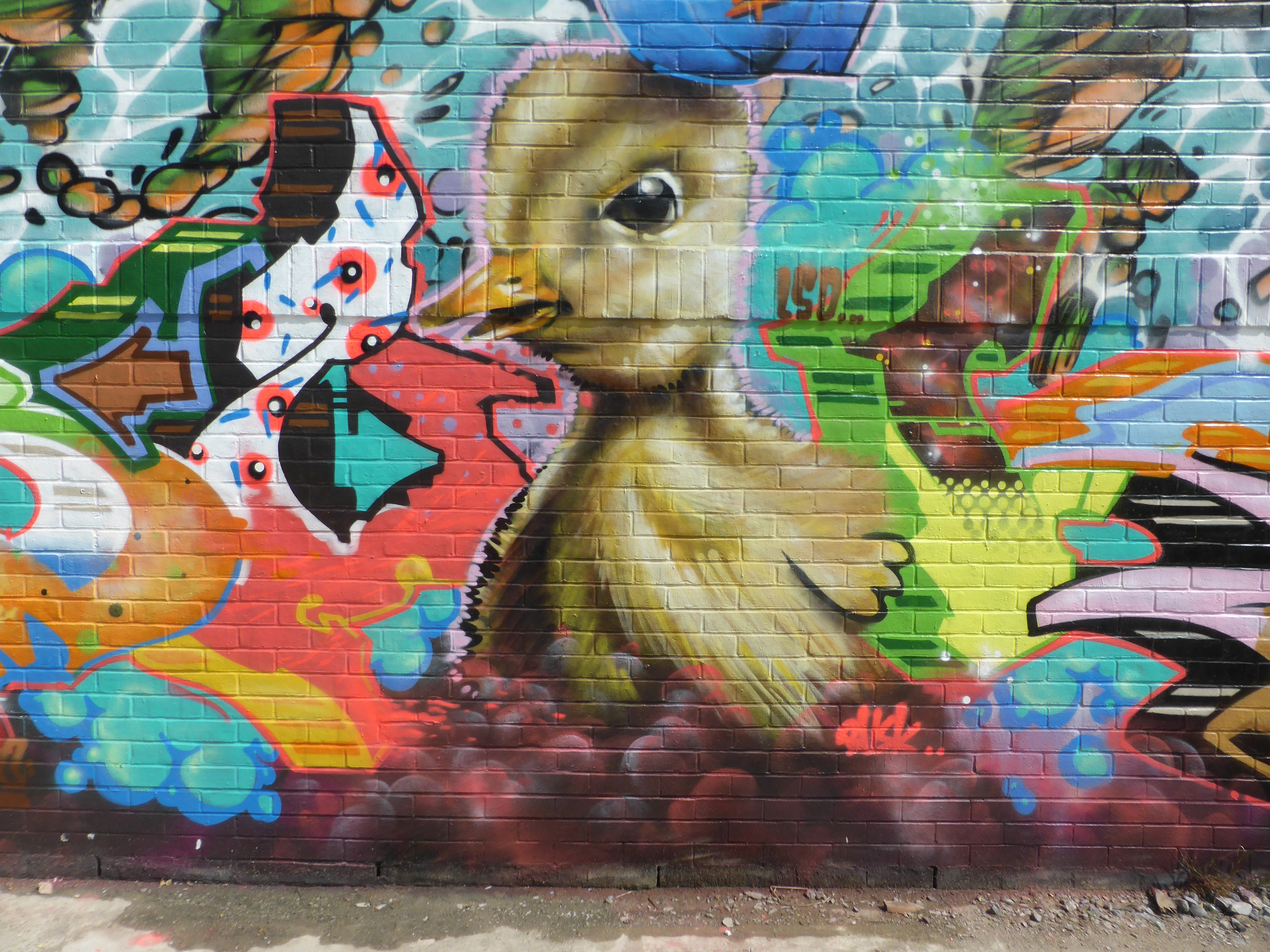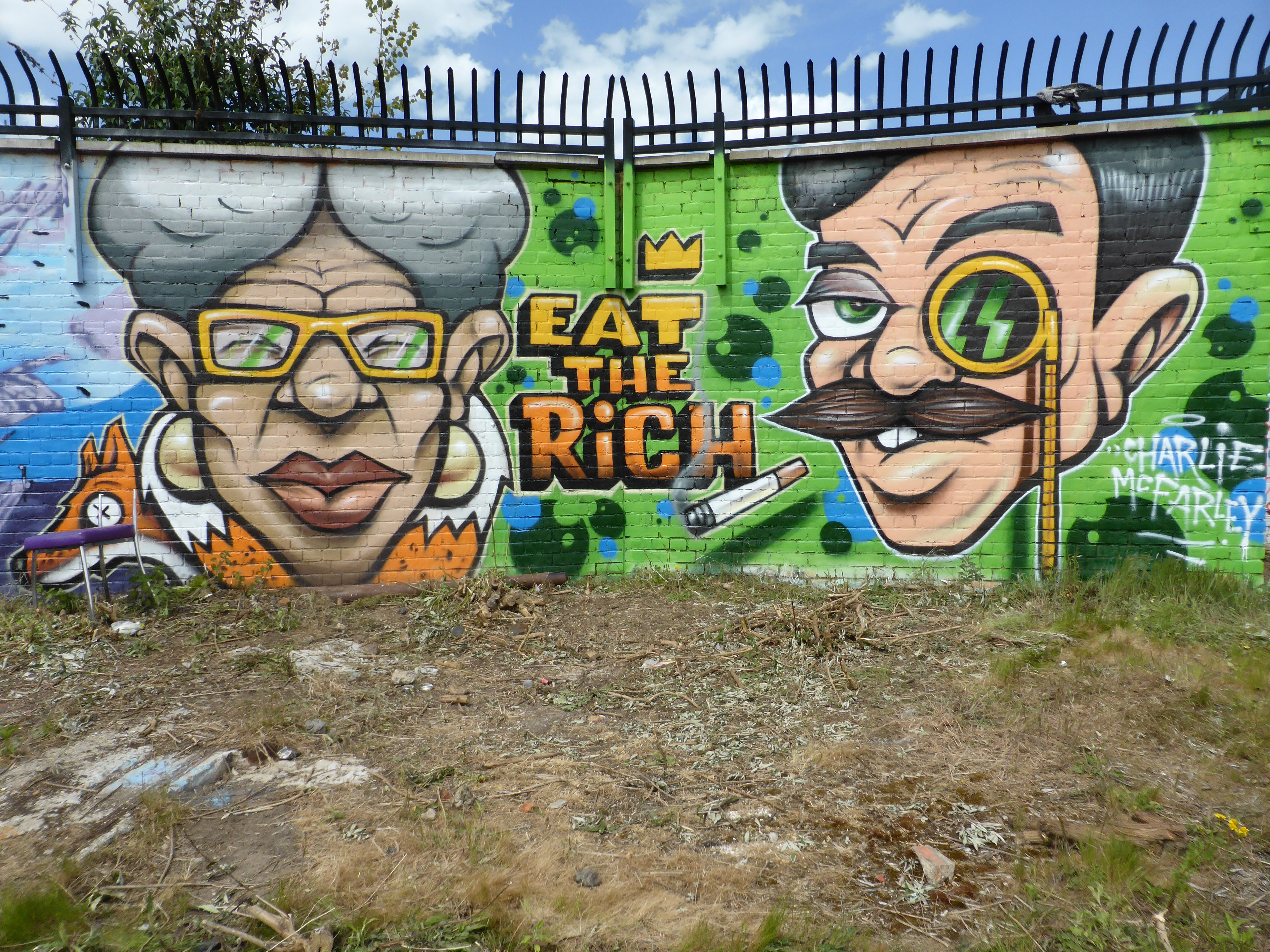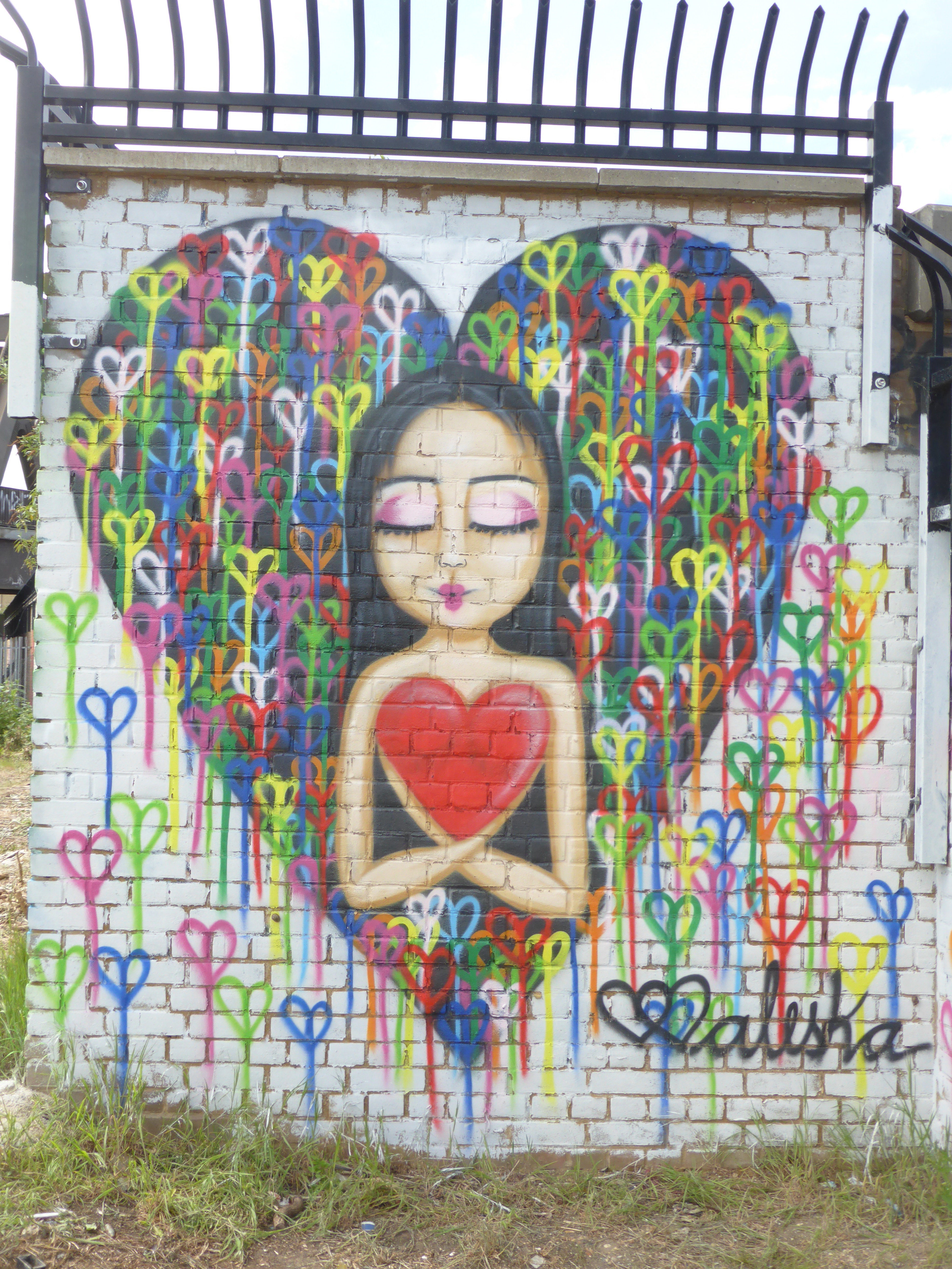 If anyone can let us the name of the art students who did this piece are, please let us know, so we can credit accordingly. They showed up on Saturday and had so much fun, asked if they could paint on Sunday, and were granted the wall to do this.